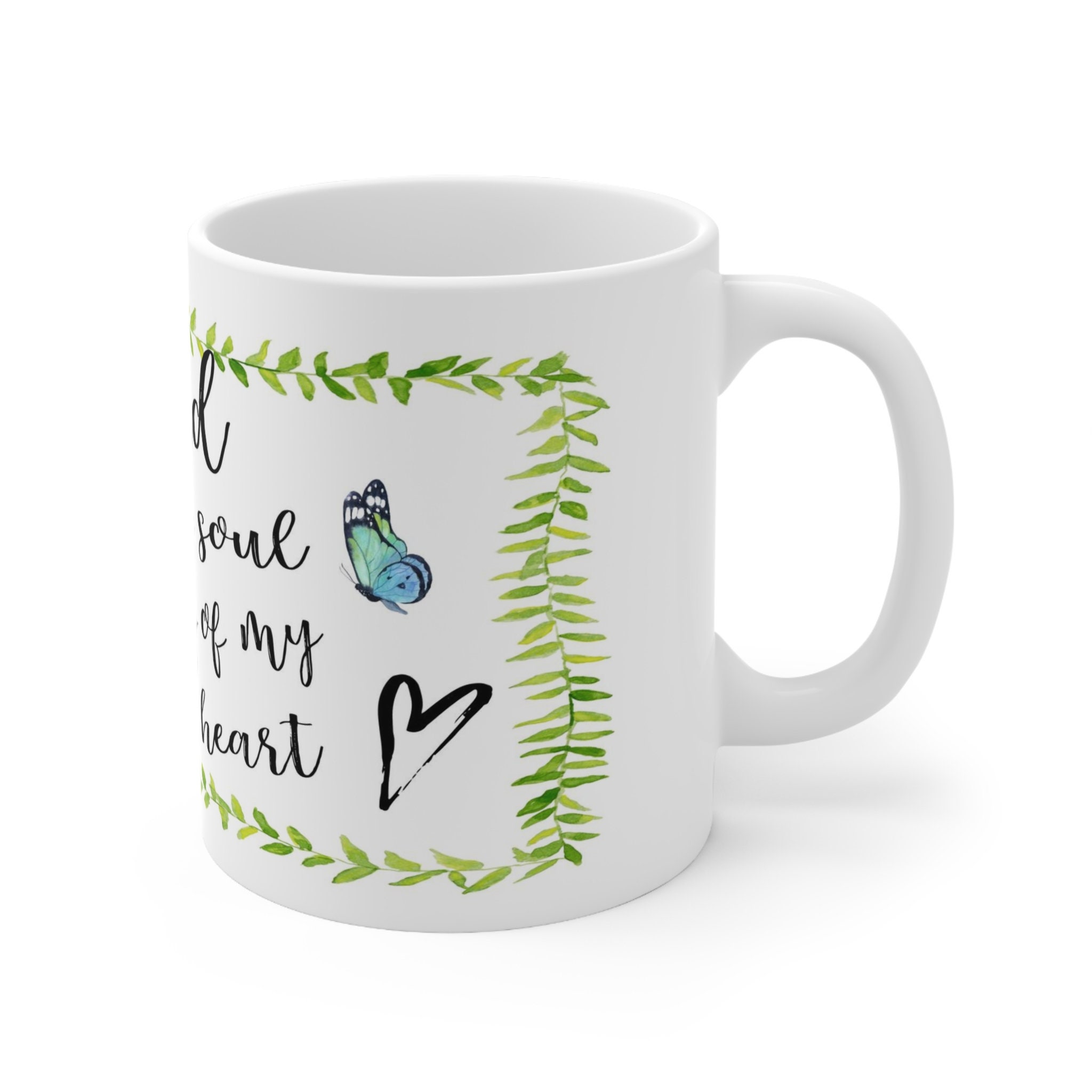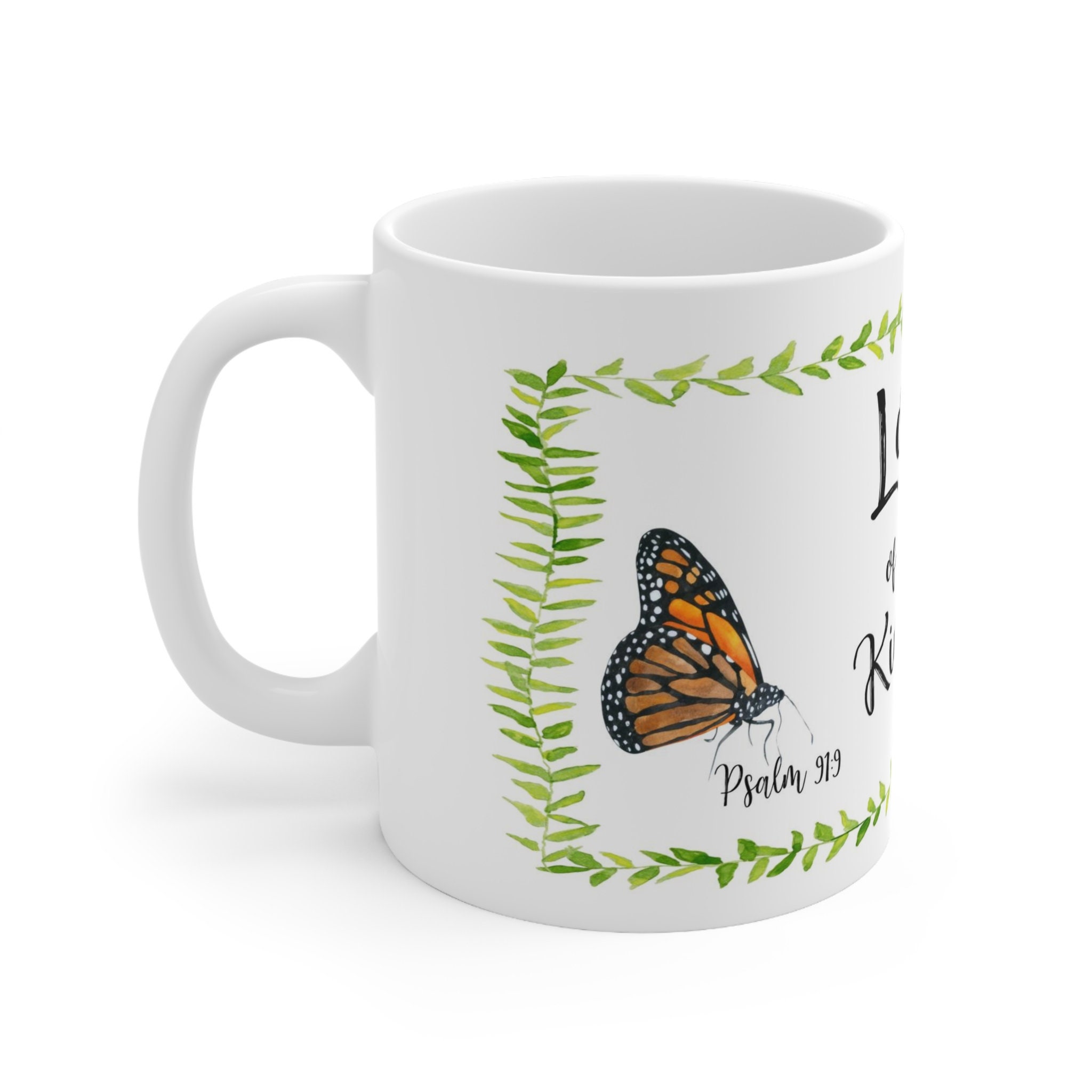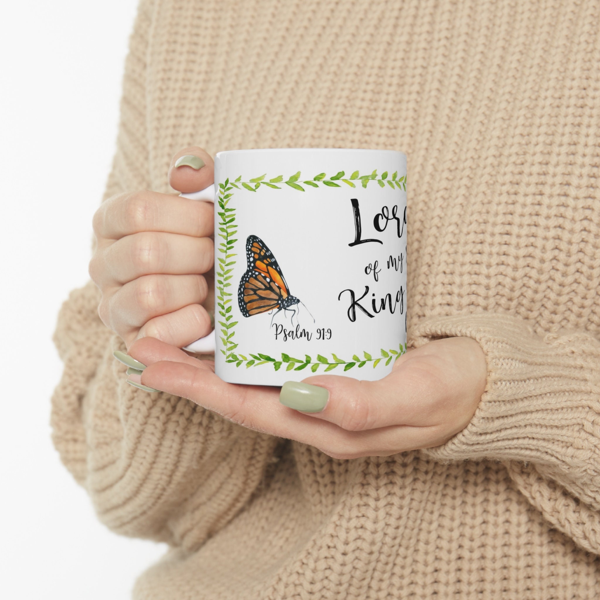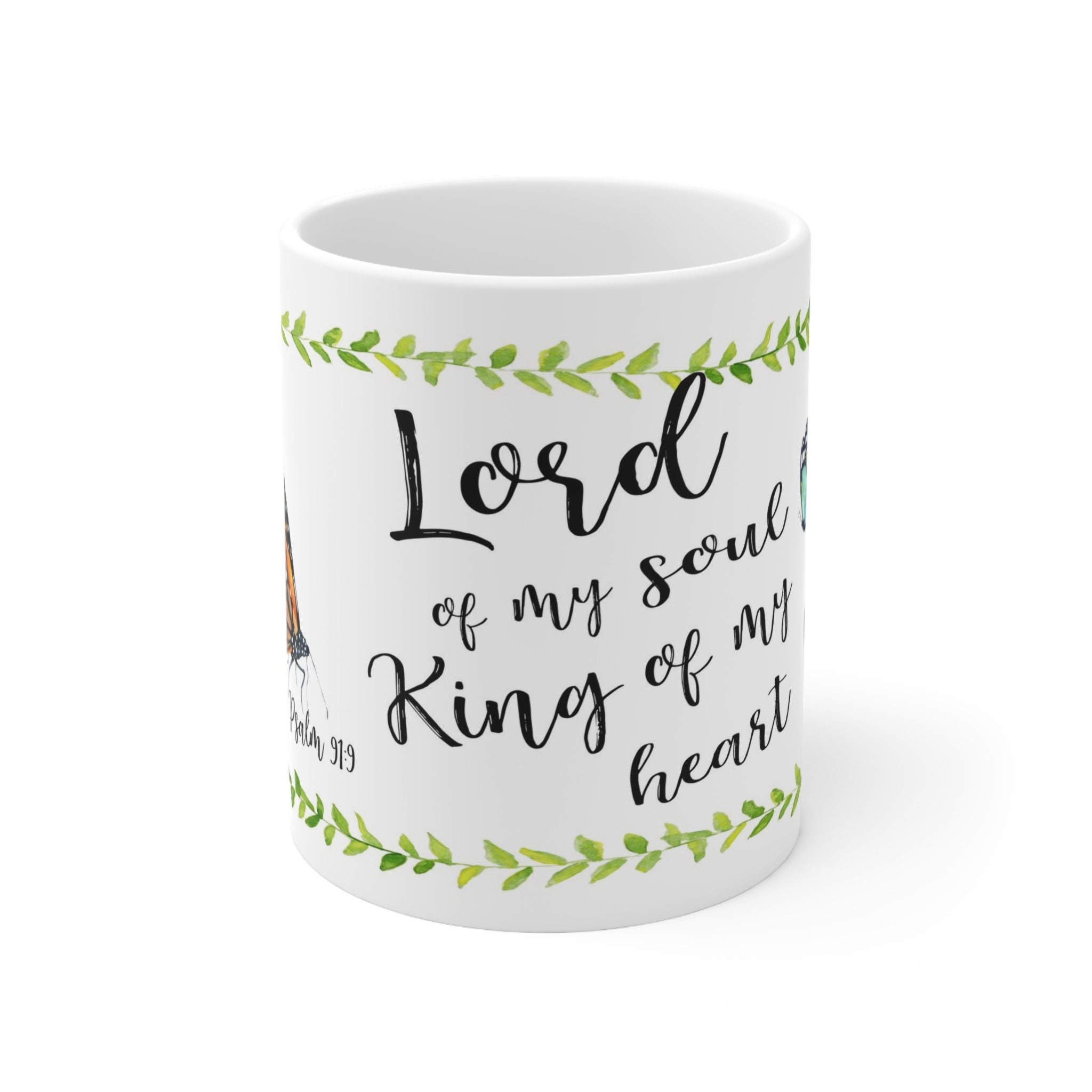 Introducing our beautifully personalized coffee mug with the uplifting words of Psalm 118:14, The Lord is my strength and my song; he has become my salvation. This mug is not just an essential morning companion, but a reminder that the King of our hearts is always by our side. Adorned with vivid, eye-catching colors and delicate butterflies, this mug is sure to brighten up your day and add a touch of joy to your morning routine. Whether you're sipping your first cup of coffee or enjoying an afternoon tea, this personalized mug will bring comfort and inspiration to your heart. Perfect as a meaningful gift or a treasured keepsake, let this mug remind you of God's love and His presence in your life.