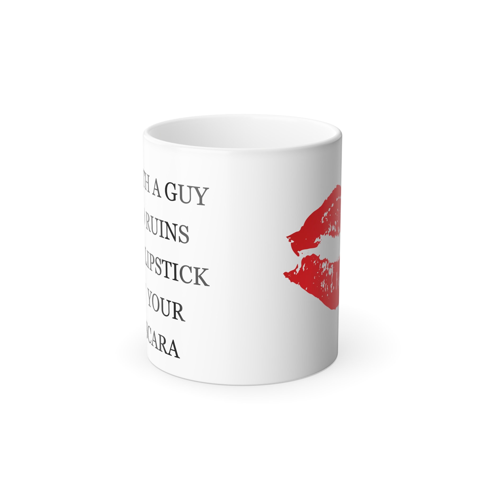 Introducing our fabulous Color Changing Mug, the ultimate fun girl gift perfect for Galentine's Day! This unique mug is not just a regular coffee cup; it has a special feature that will surely impress you. Watch in awe as the design magically transforms and reveals a vibrant burst of colors when hot liquid is poured inside. Reminding you to be with a guy who ruins your lipstick, not your mascara, this mug showcases a sassy quote that celebrates empowered women. Start your day with a touch of humor and enjoy your favorite beverage in style with this playful and trendy color changing mug. A must-have for every gal pal, treat yourself or surprise your bestie with this delightful gift that will make her smile day after day. Personalized mugs are super popular gifts for friends and loved ones.