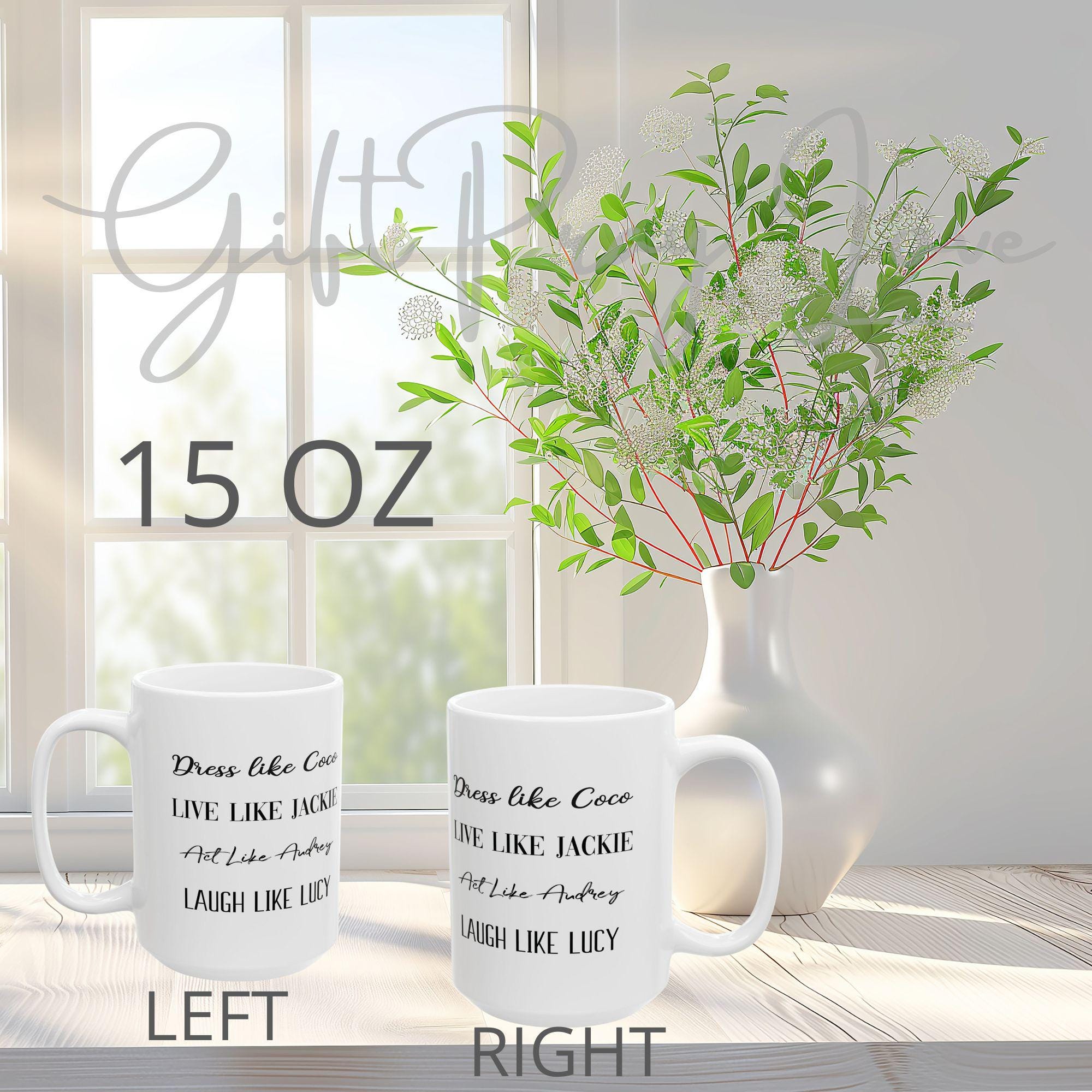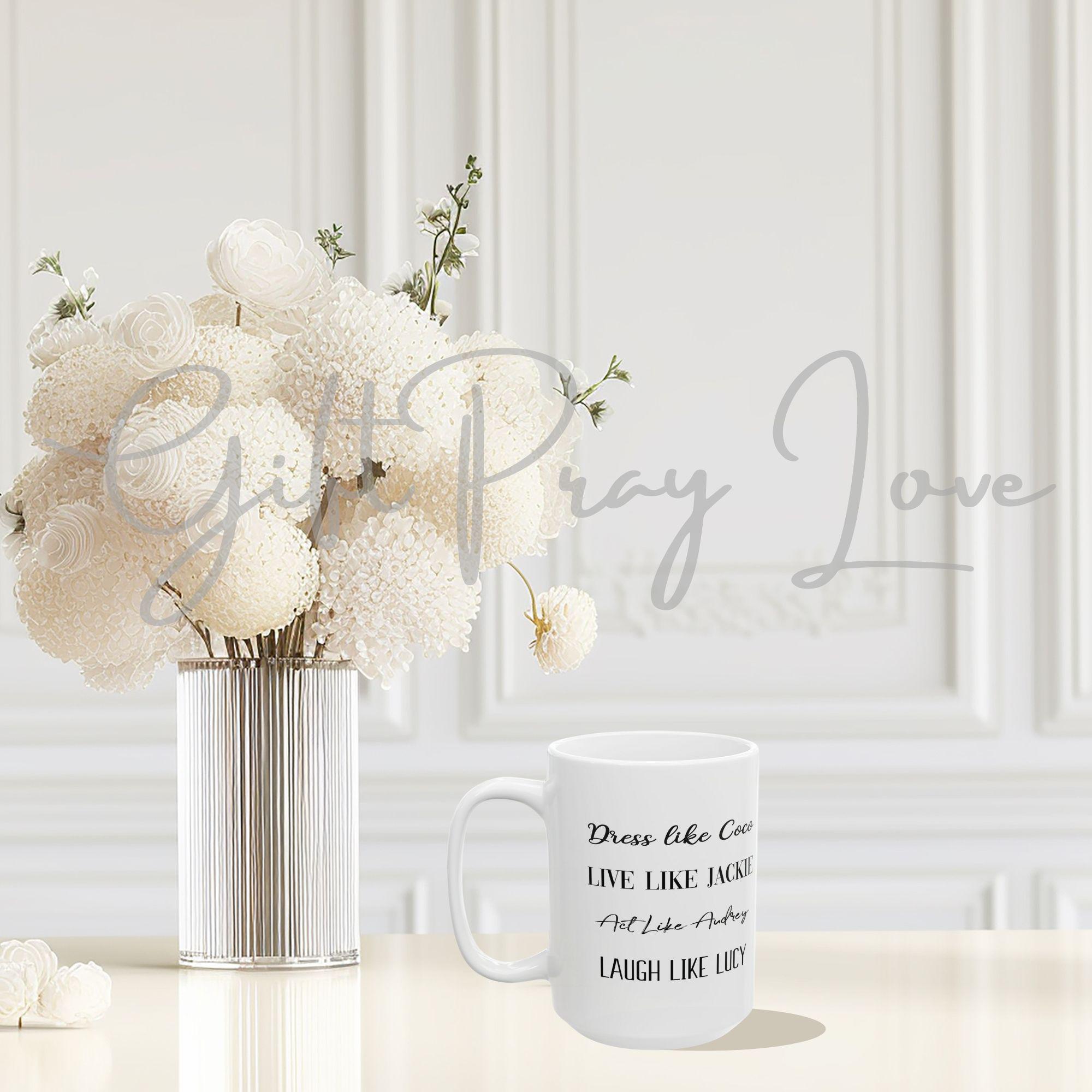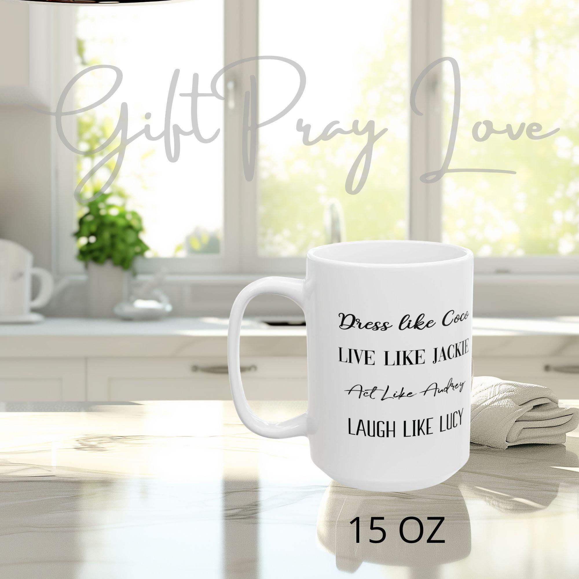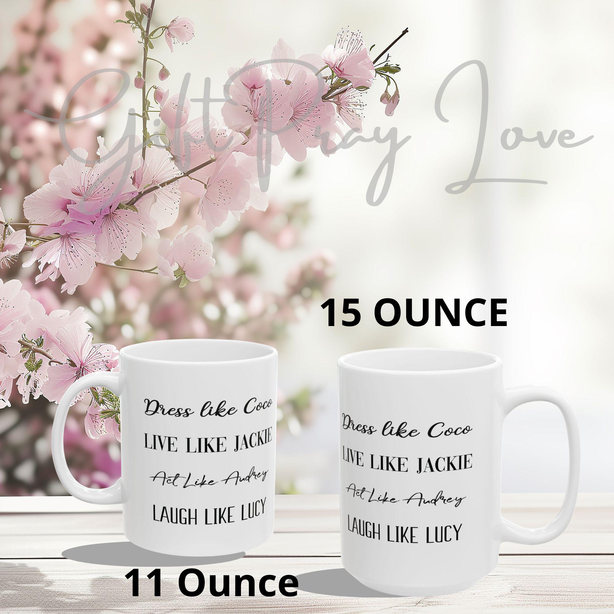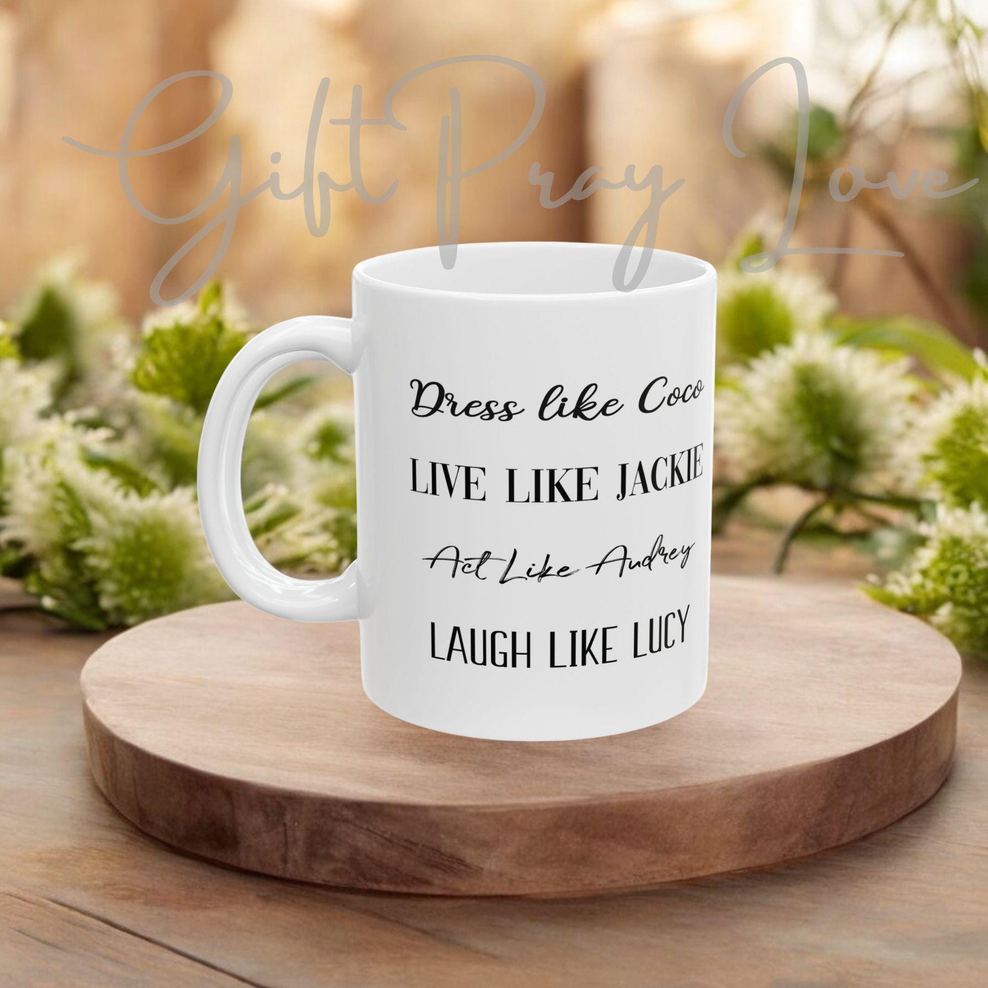 Introducing our stunning coffee mug featuring the legendary Coco, Jackie, Audrey, and Lucy, all icons of our time. Sip your morning brew in style with this captivating mug that pays homage to these timeless inspirational beauties. Crafted with high-quality materials, this mug ensures durability and a comfortable grip. Perfect for adding a touch of elegance to your morning routine or gifting to the vintage enthusiast in your life. Embrace the charm and sophistication of these iconic women as you indulge in your favorite hot beverage. Start your day with a dose of inspiration and glamour – grab this coffee mug today!