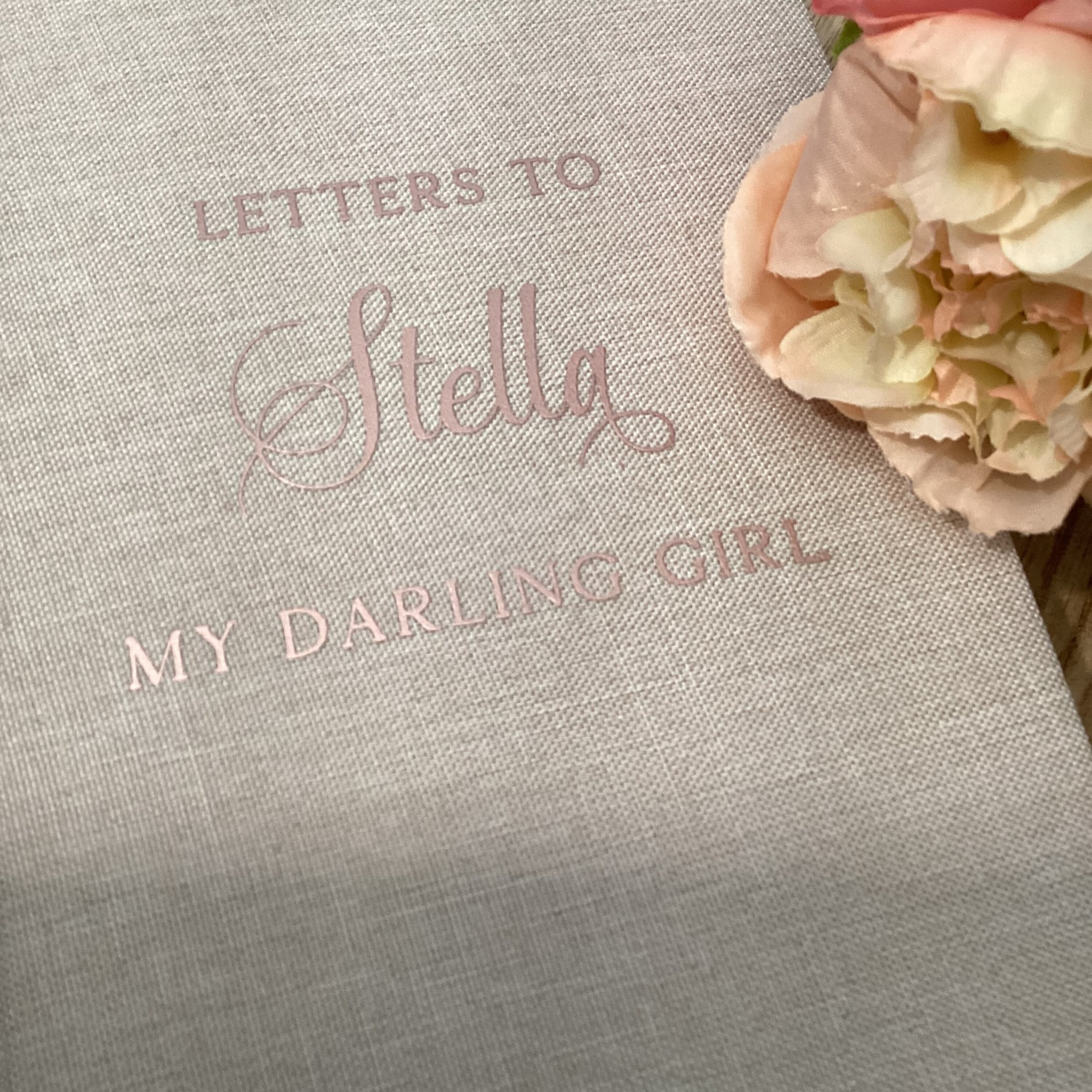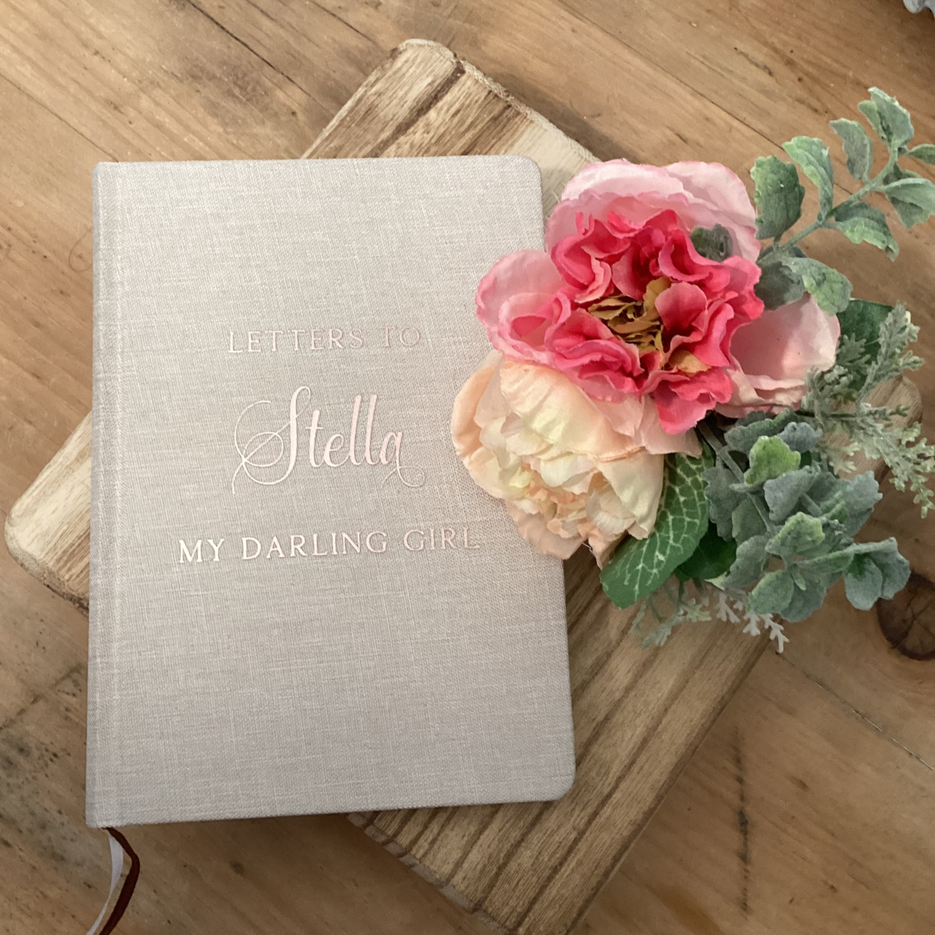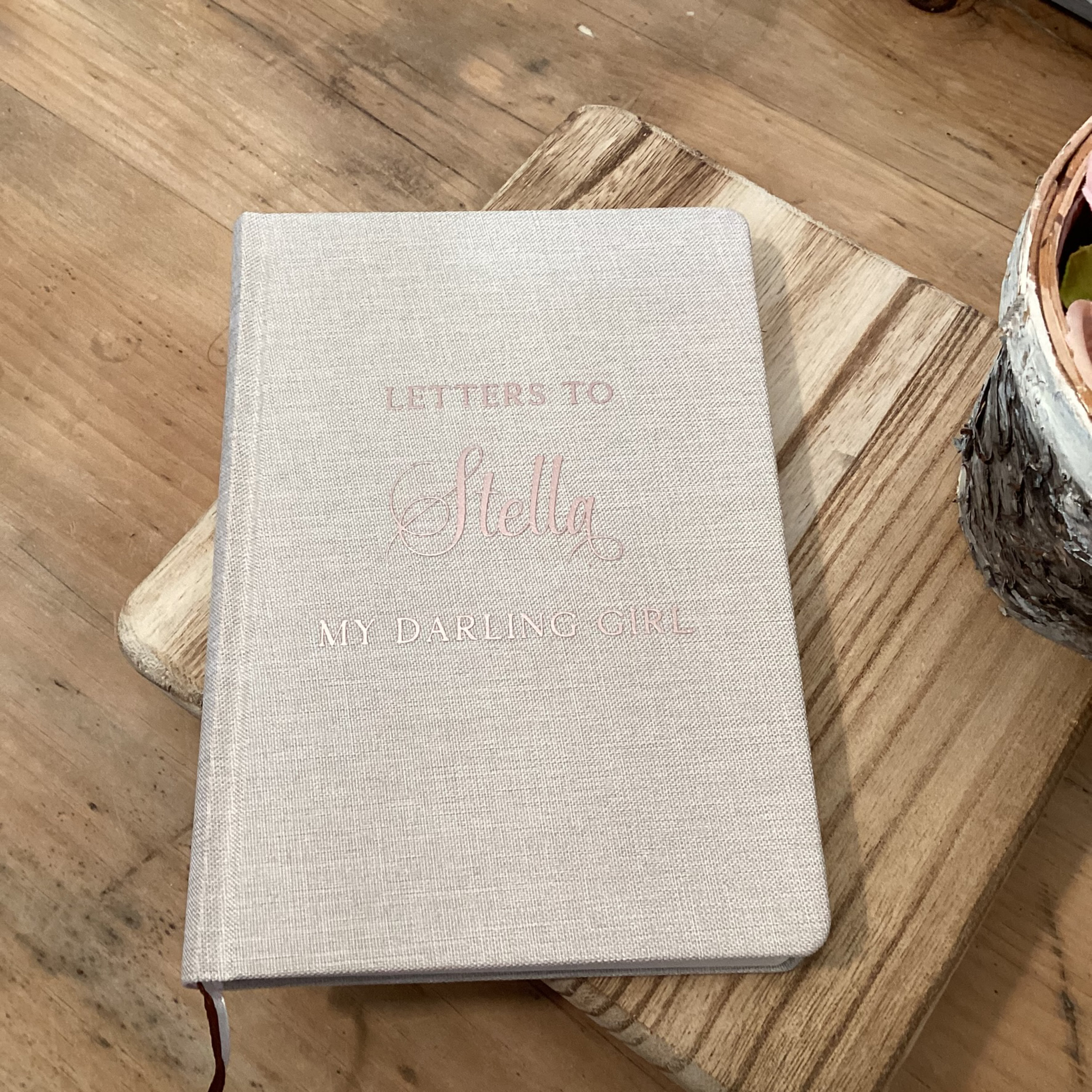 The book has a beautiful neutral linen cover and can personalized to your daughter with several choices of fonts and foils. Each book is 5.8 x 8.3 inches and has 240 blank pages.