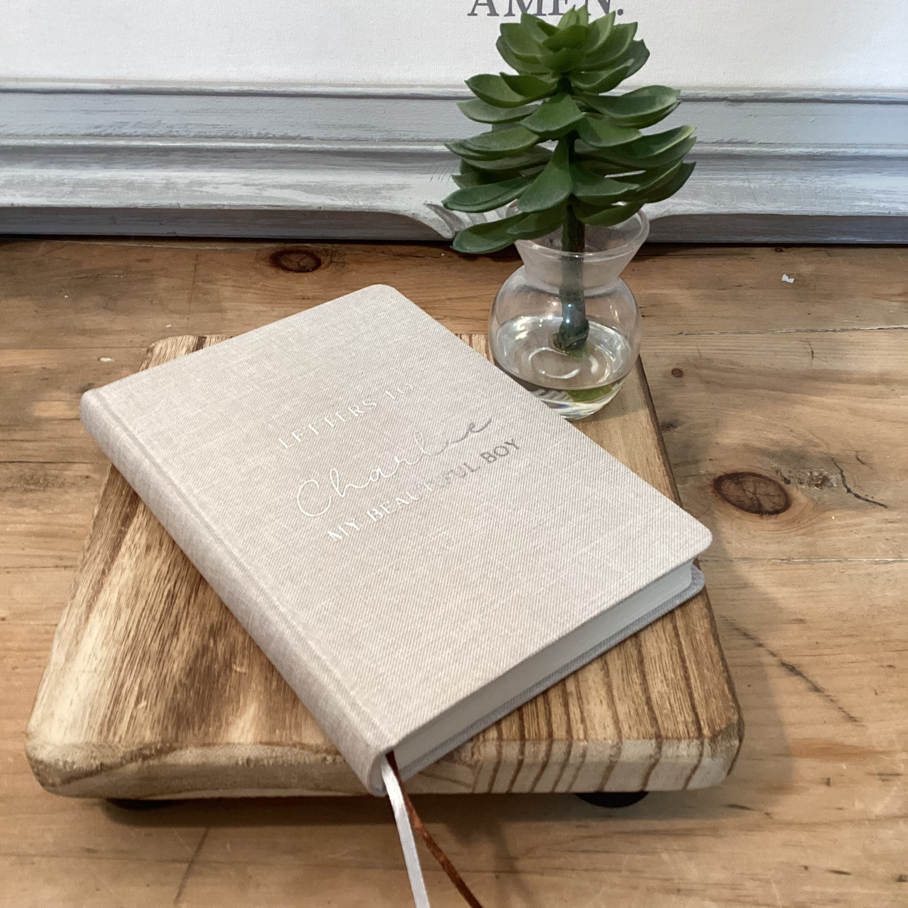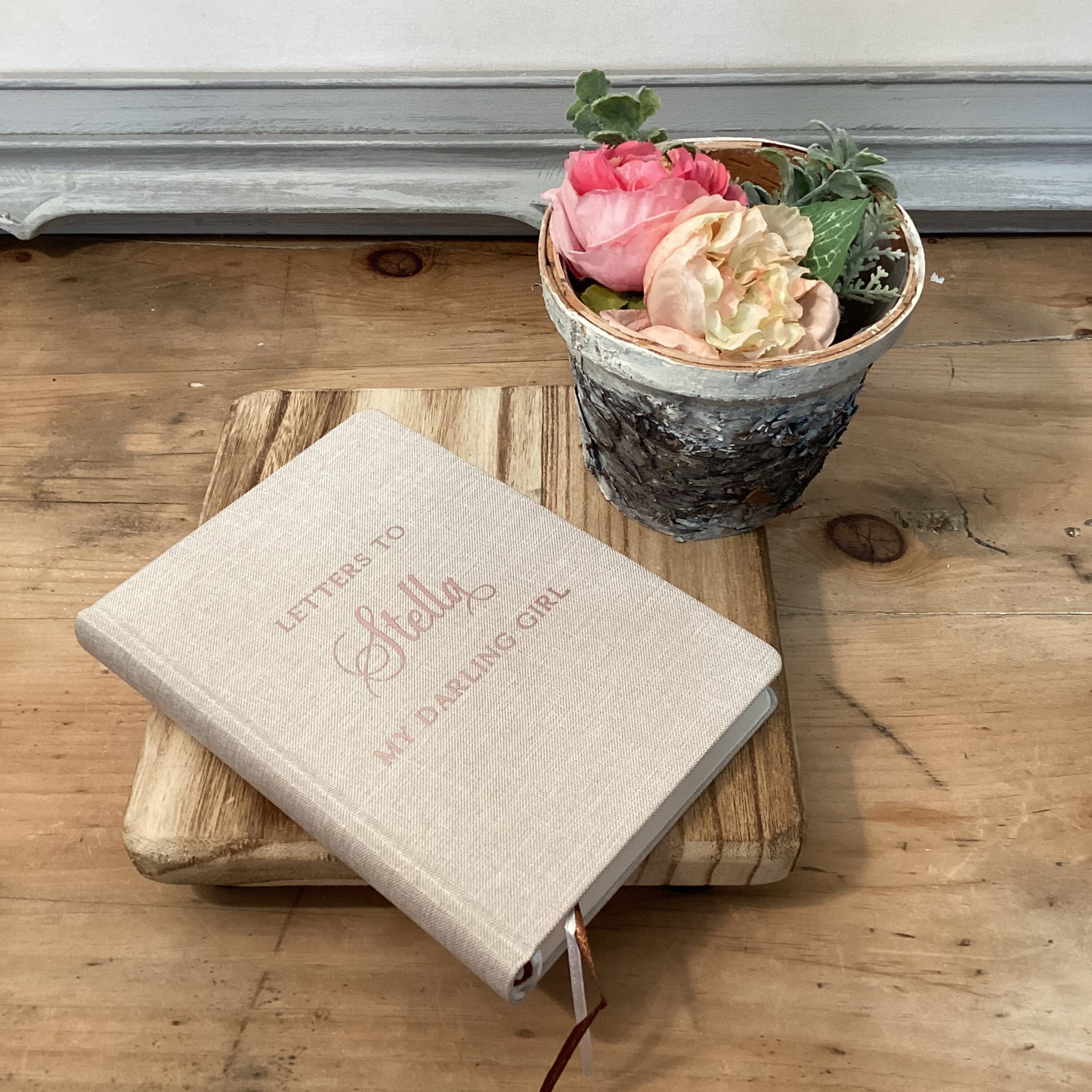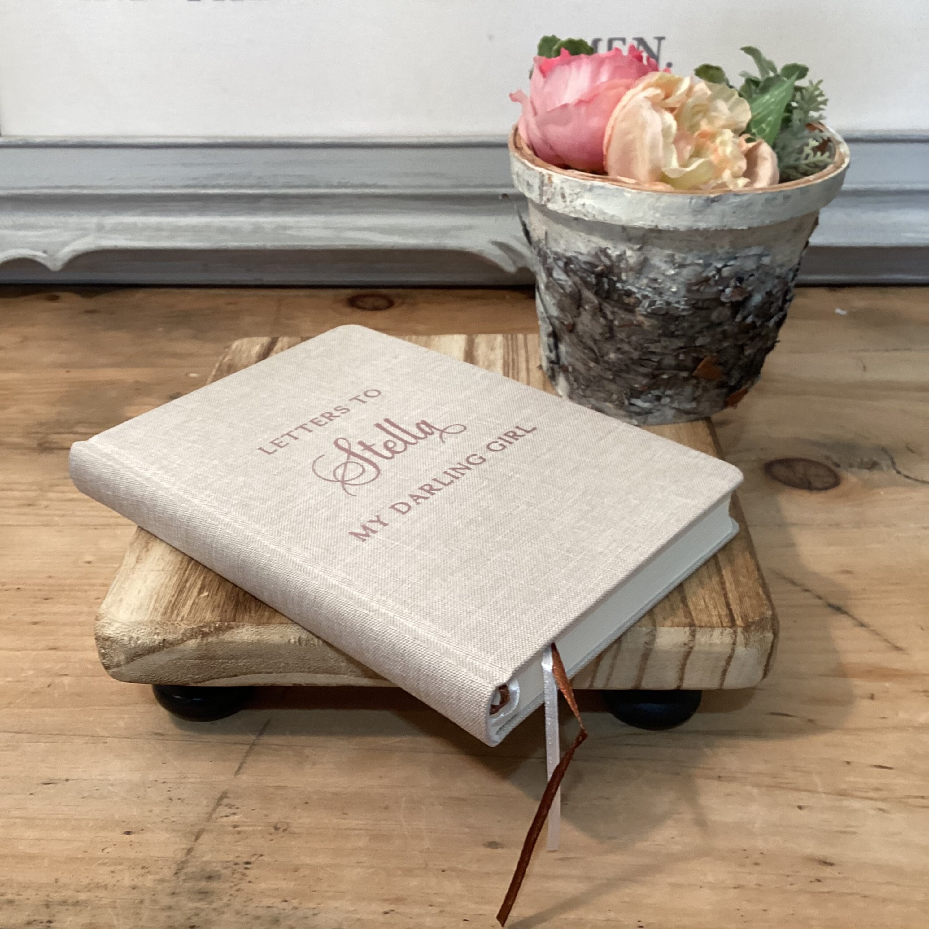 The book has a beautiful neutral linen cover and can personalized to your daughter with several choices of fonts and foils. Each book is 5.8 x 8.3 inches and has 240 blank pages.