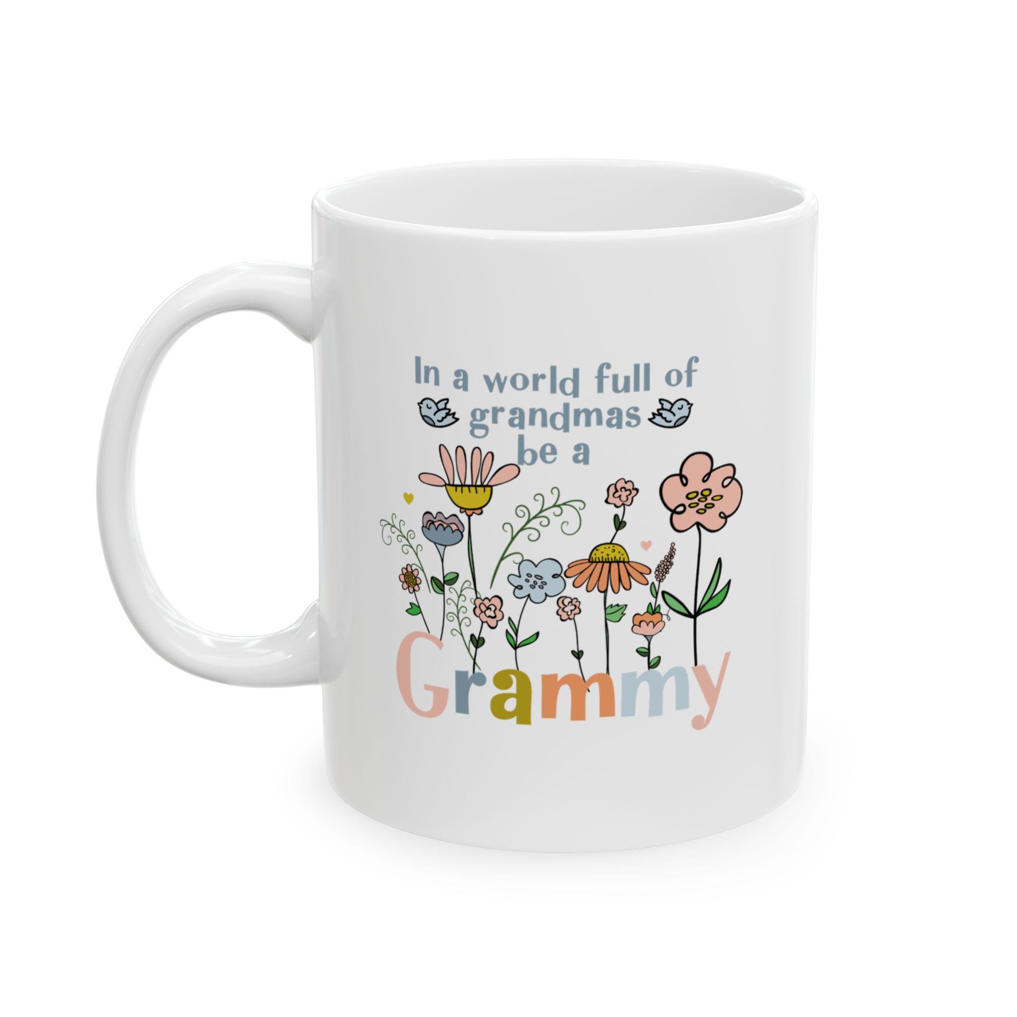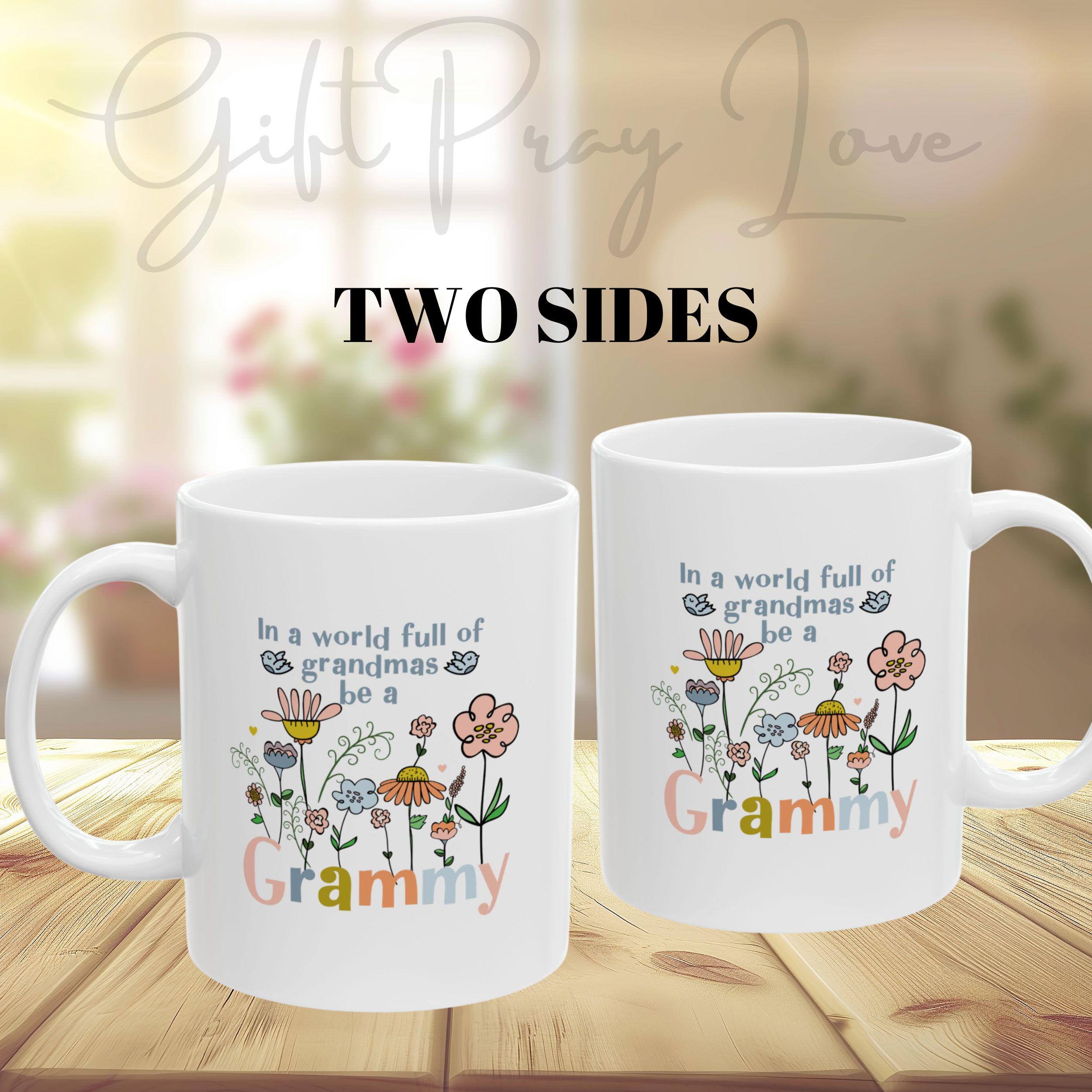 Celebrate your favorite grandmother with this vibrant “Grammy” coffee mug, featuring a fun, modern floral design bursting with color and joy. Whether she’s sipping morning coffee, tea, or cocoa, this mug will bring a smile to her face with every cup.