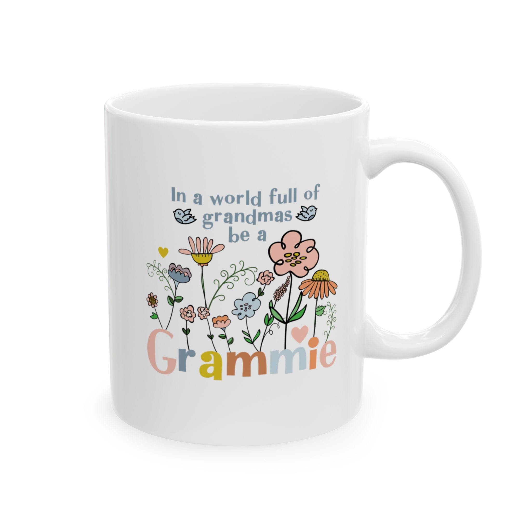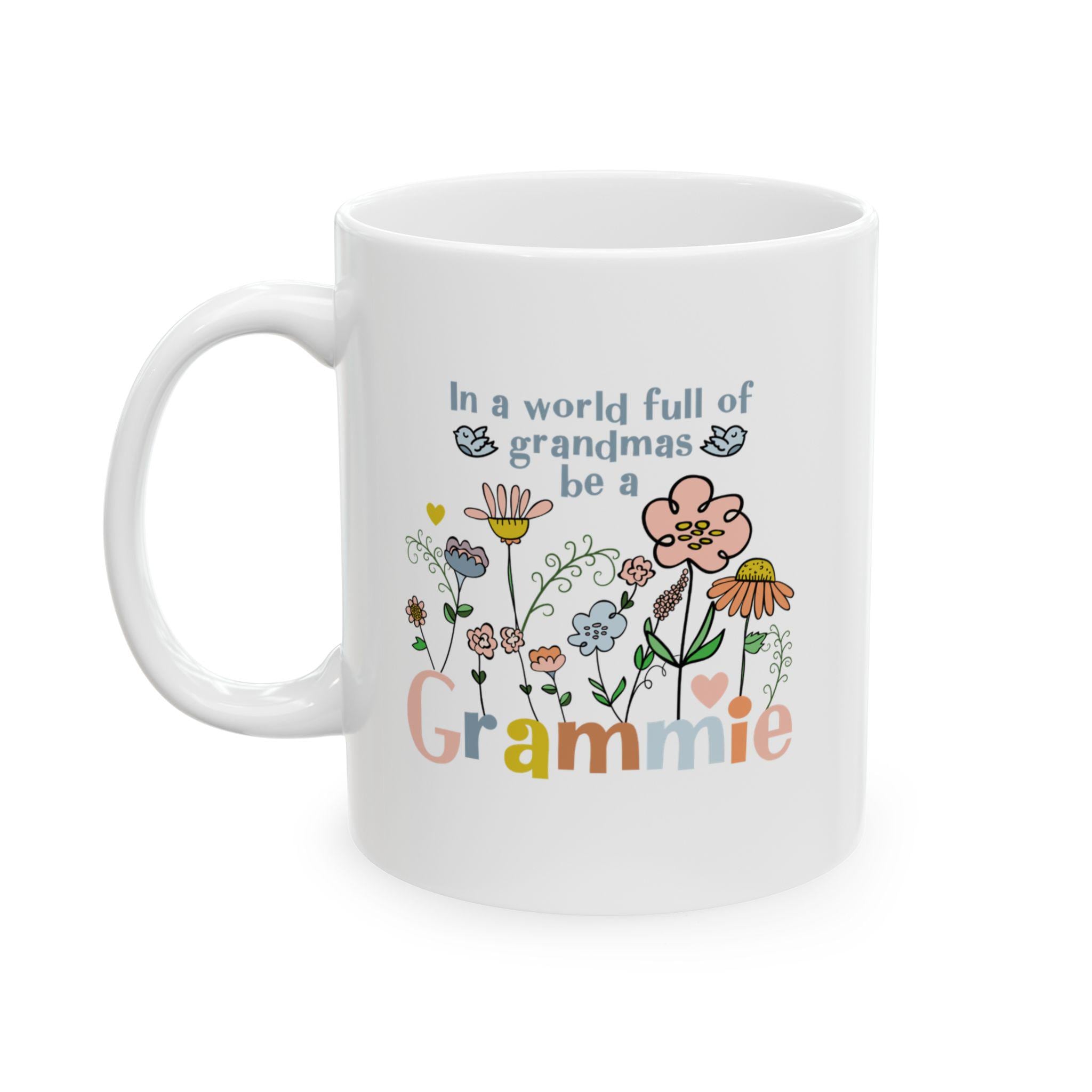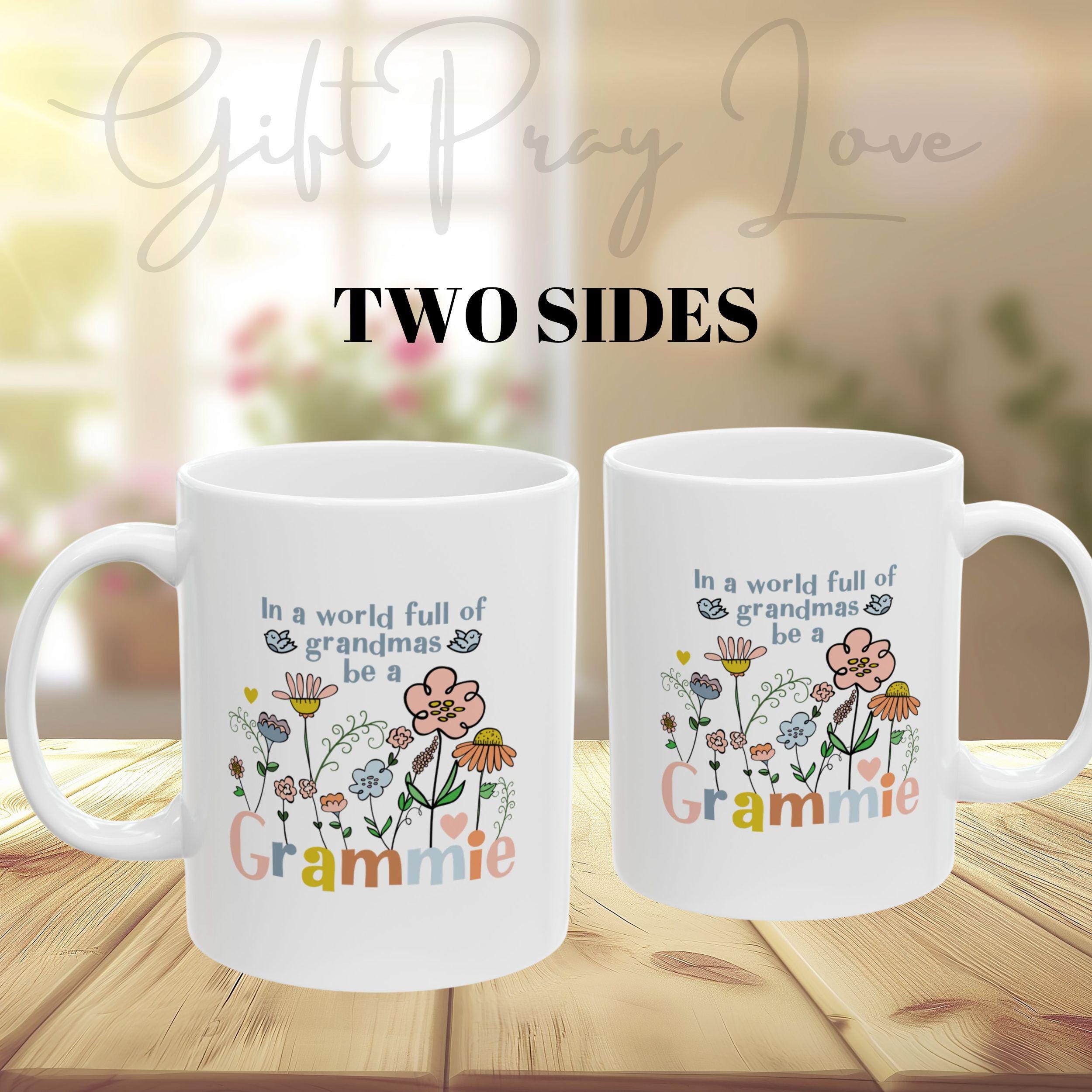 Celebrate your favorite grandmother with this vibrant “Grammie” coffee mug, featuring a fun, modern floral design bursting with color and joy. Whether she’s sipping morning coffee, tea, or cocoa, this mug will bring a smile to her face with every cup.