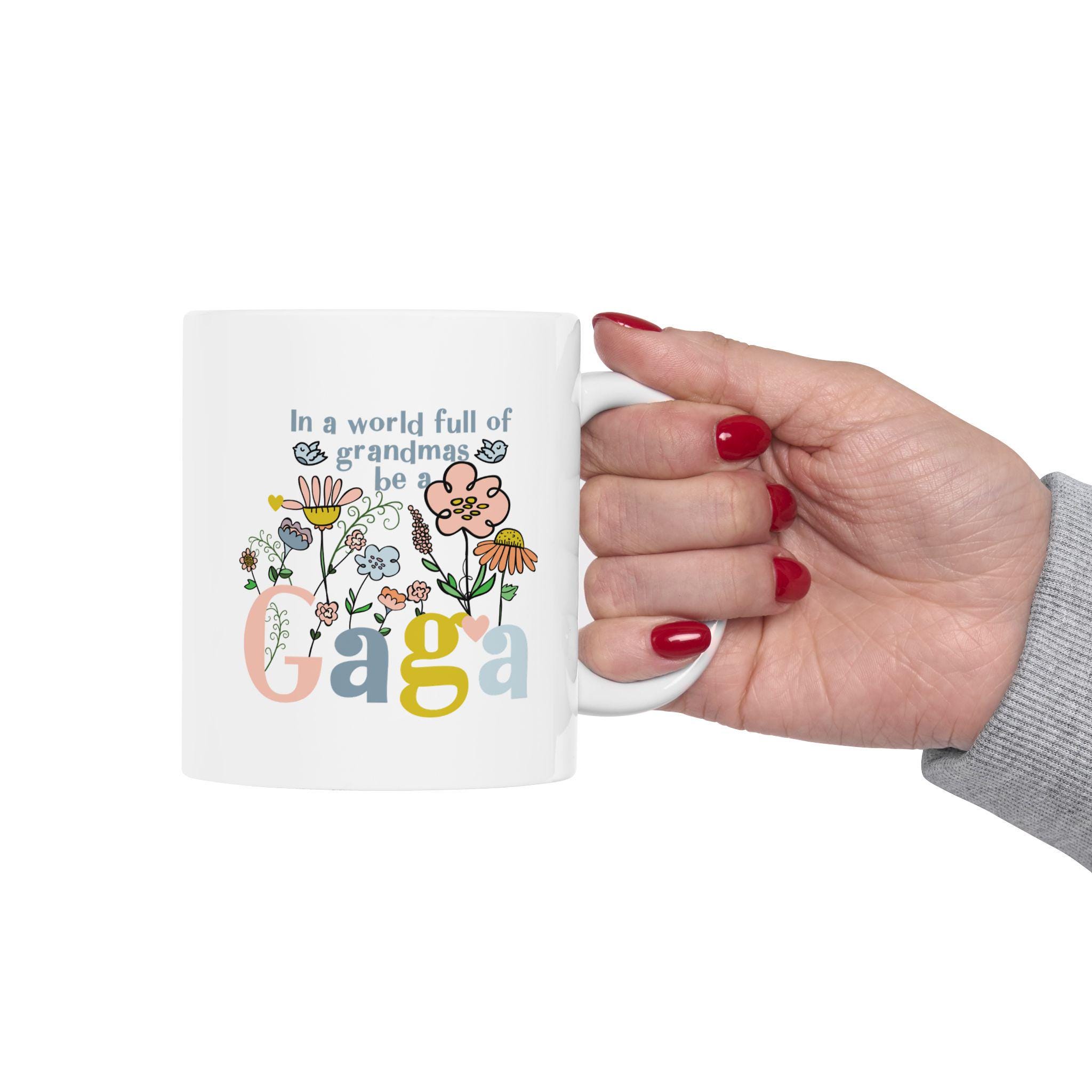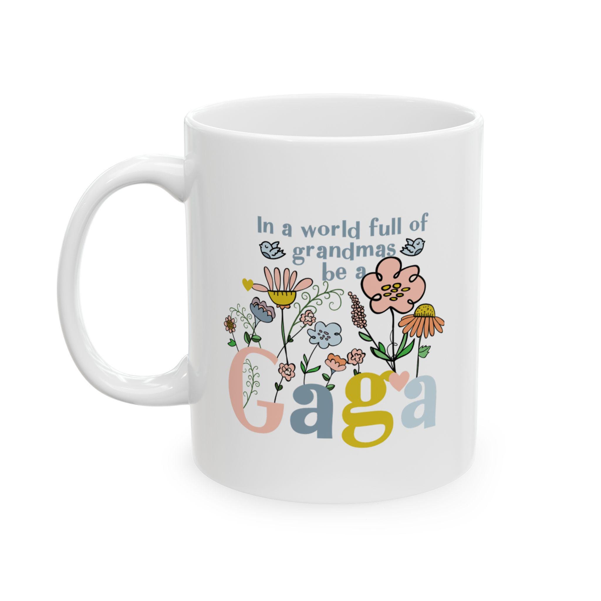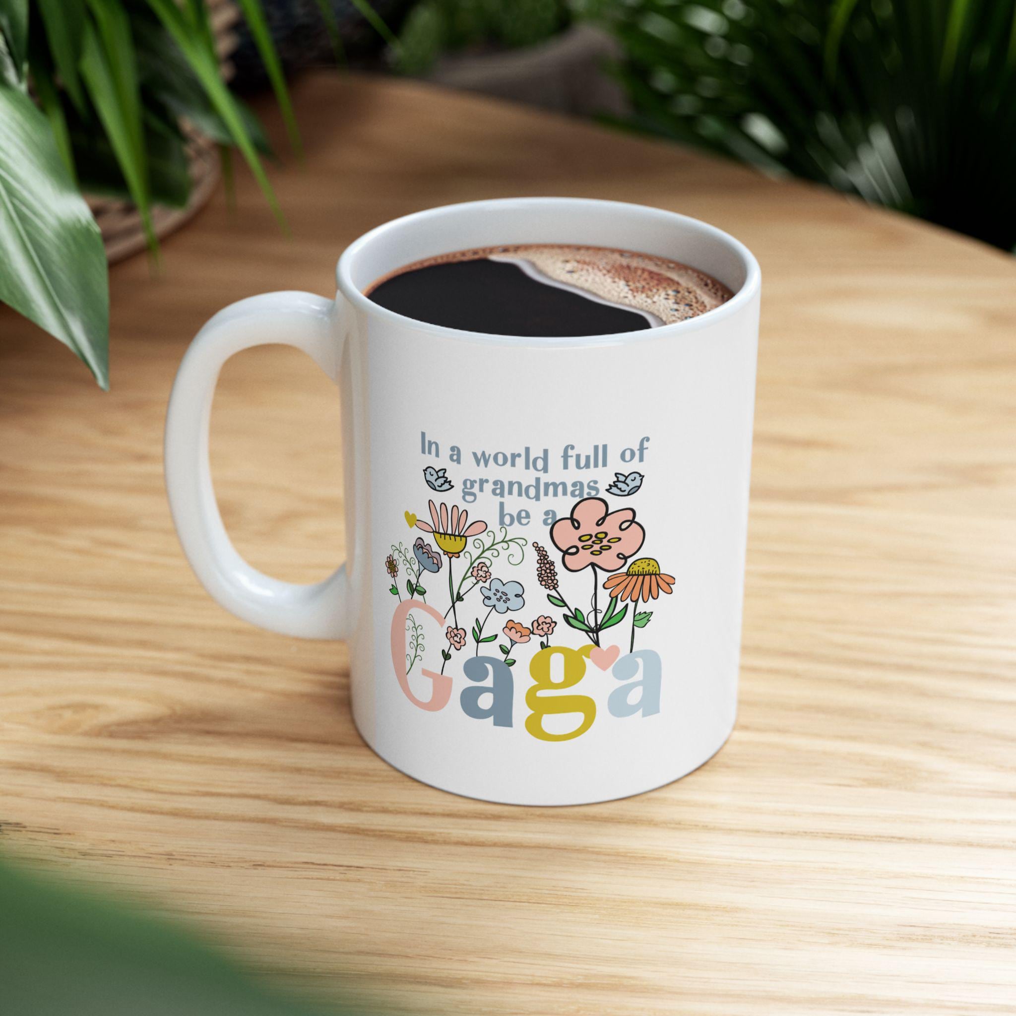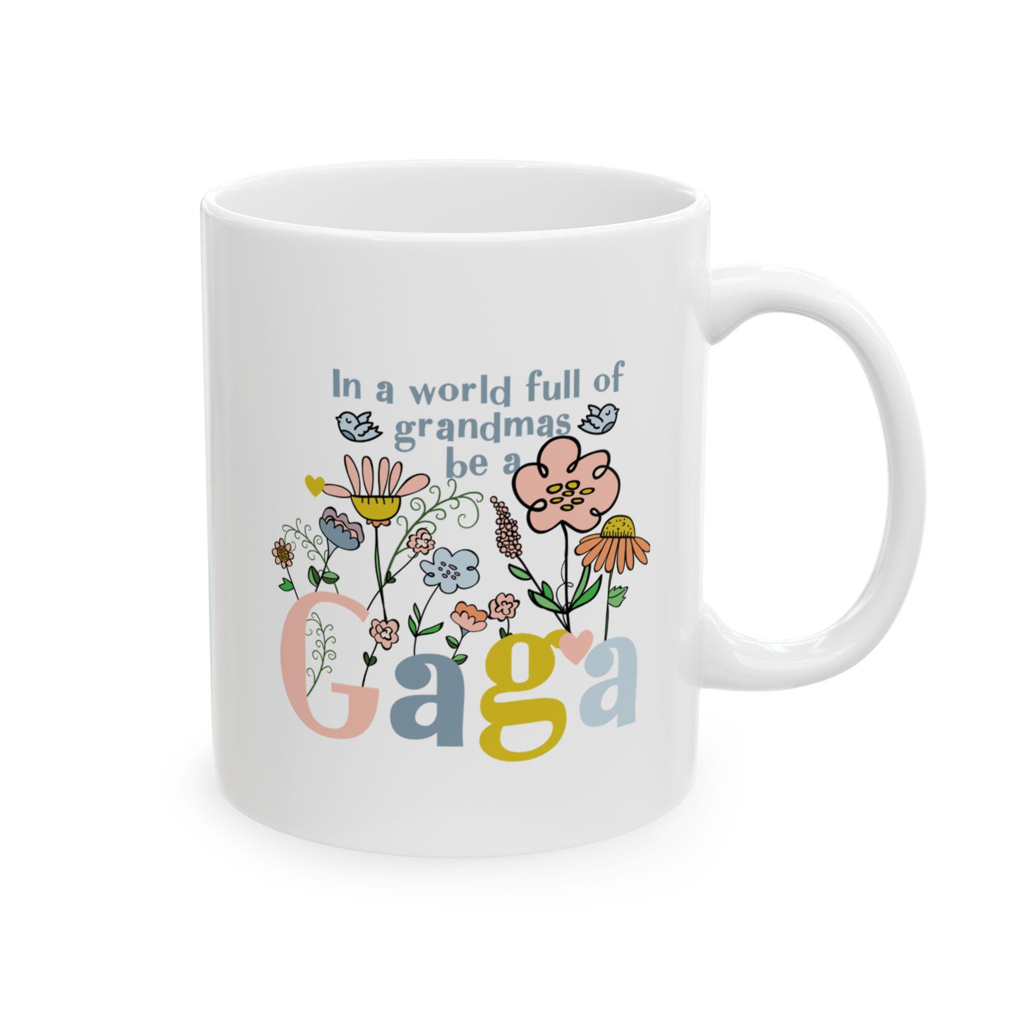 Celebrate your favorite grandmother with this vibrant “Gaga” coffee mug, featuring a fun, modern floral design bursting with color and joy. Whether she’s sipping morning coffee, tea, or cocoa, this mug will bring a smile to her face with every cup.