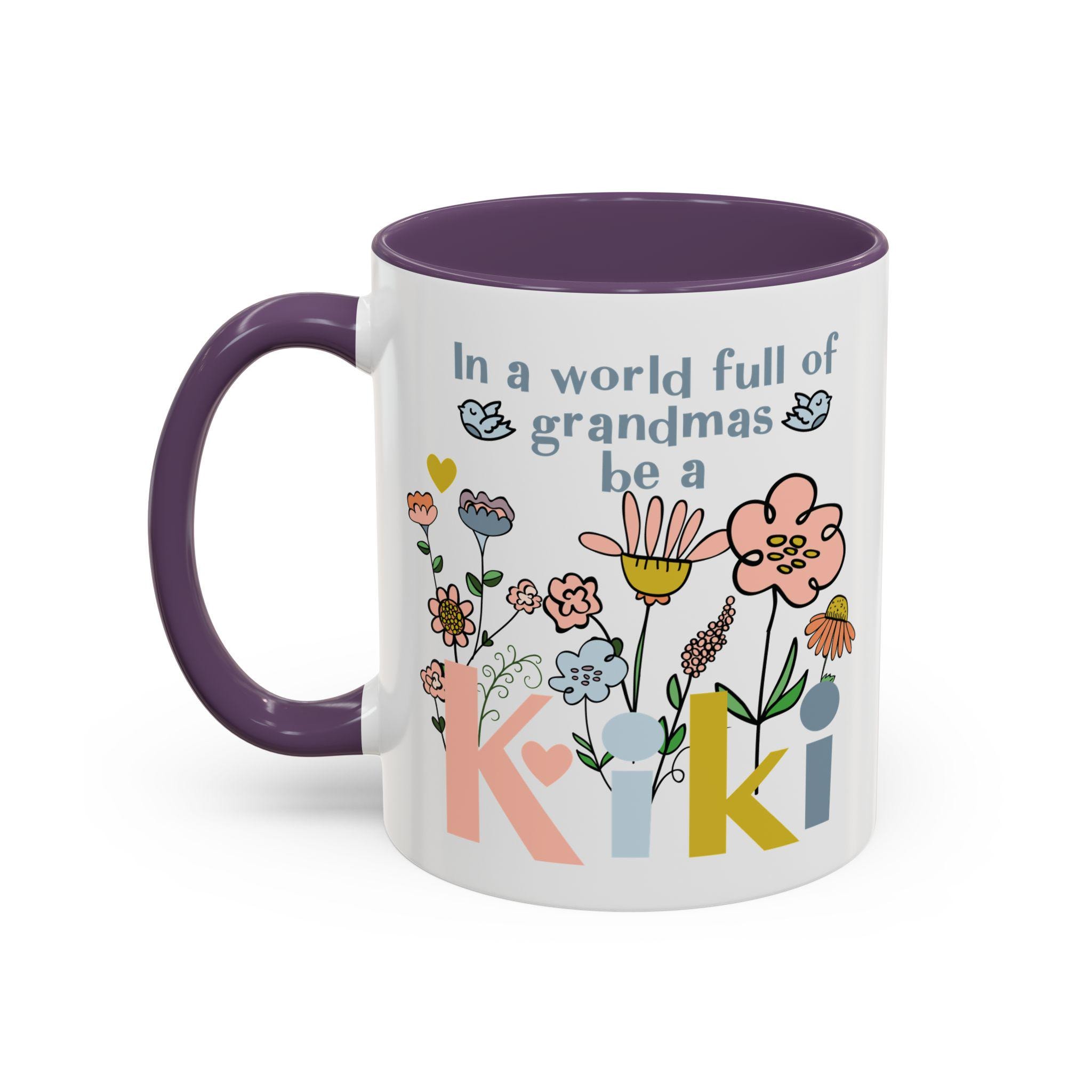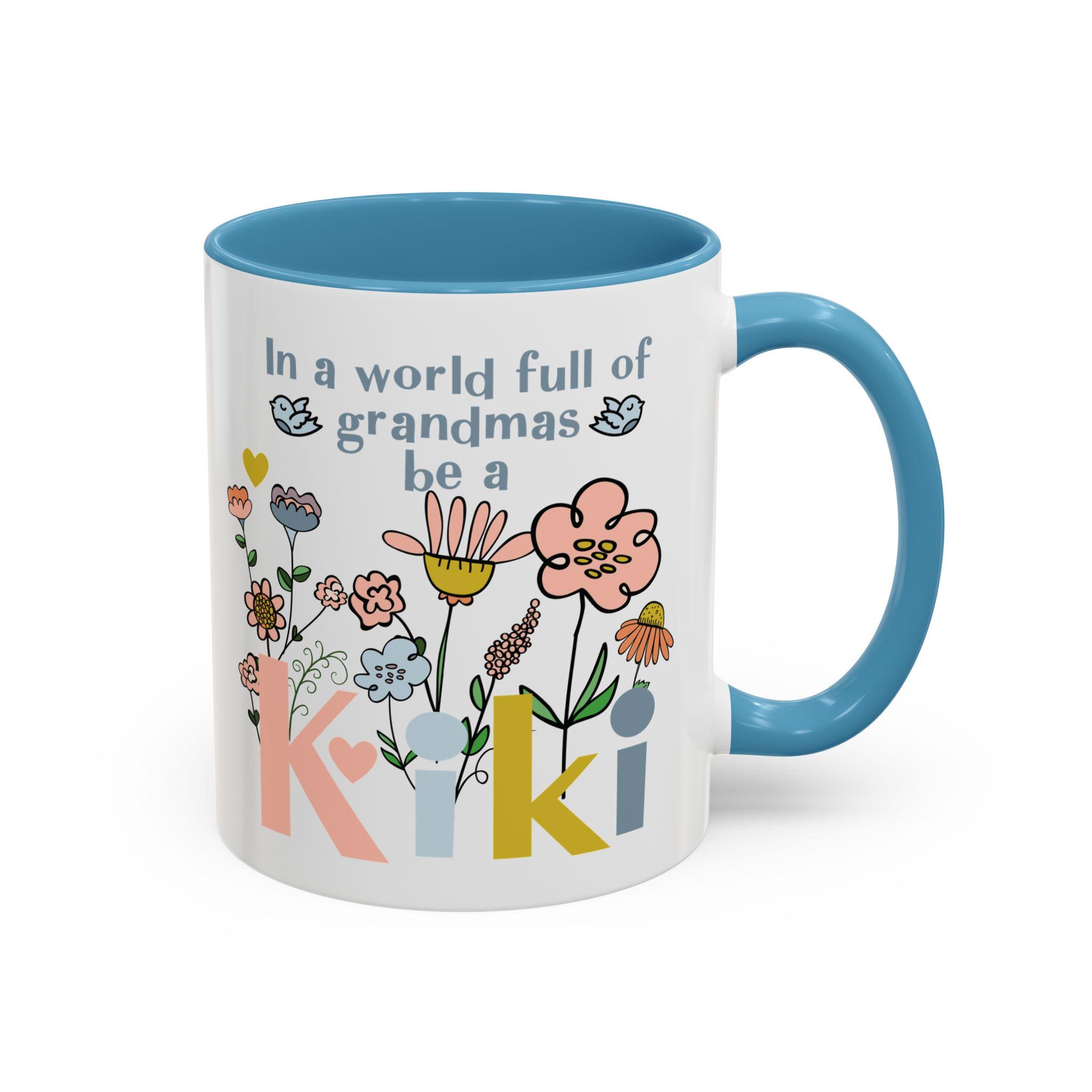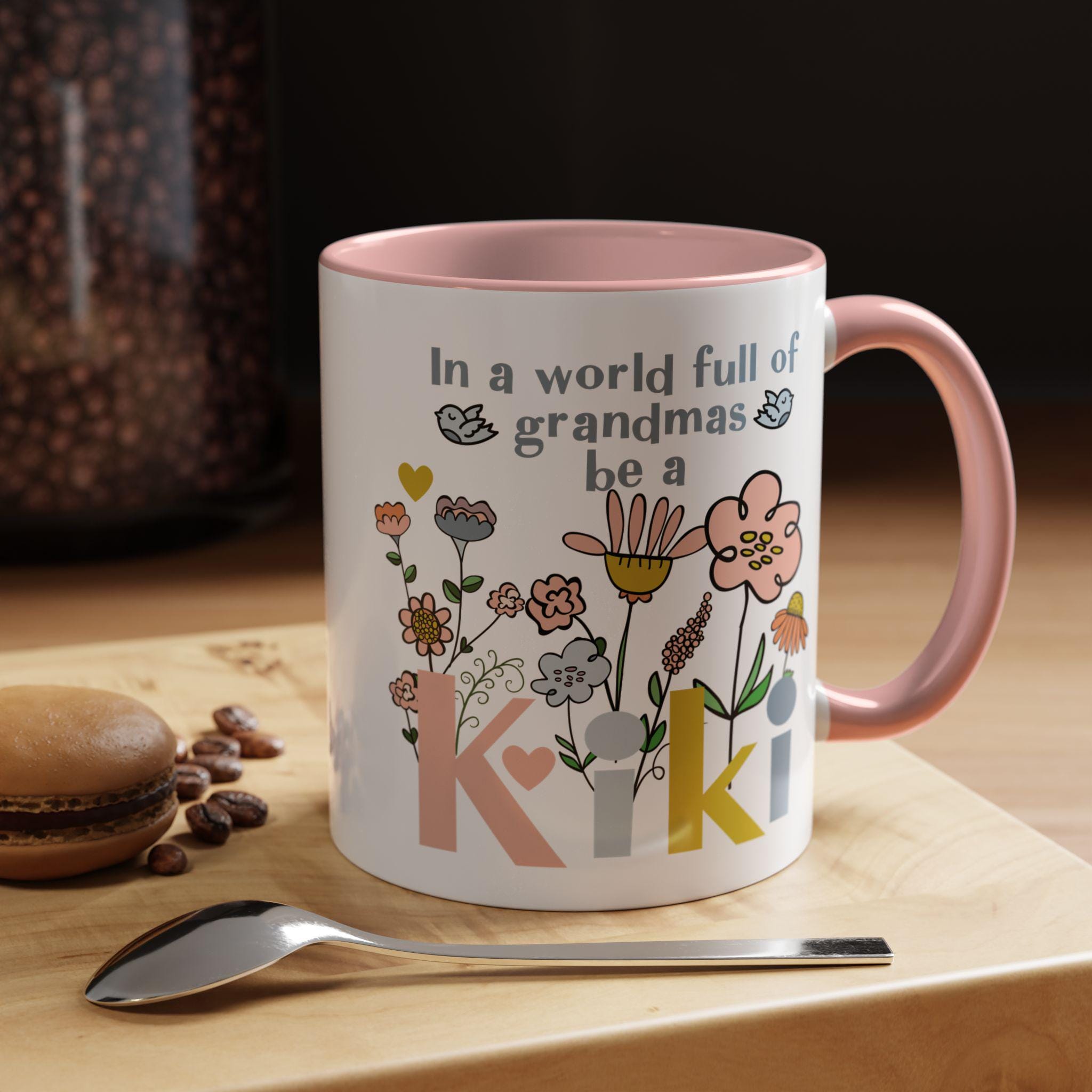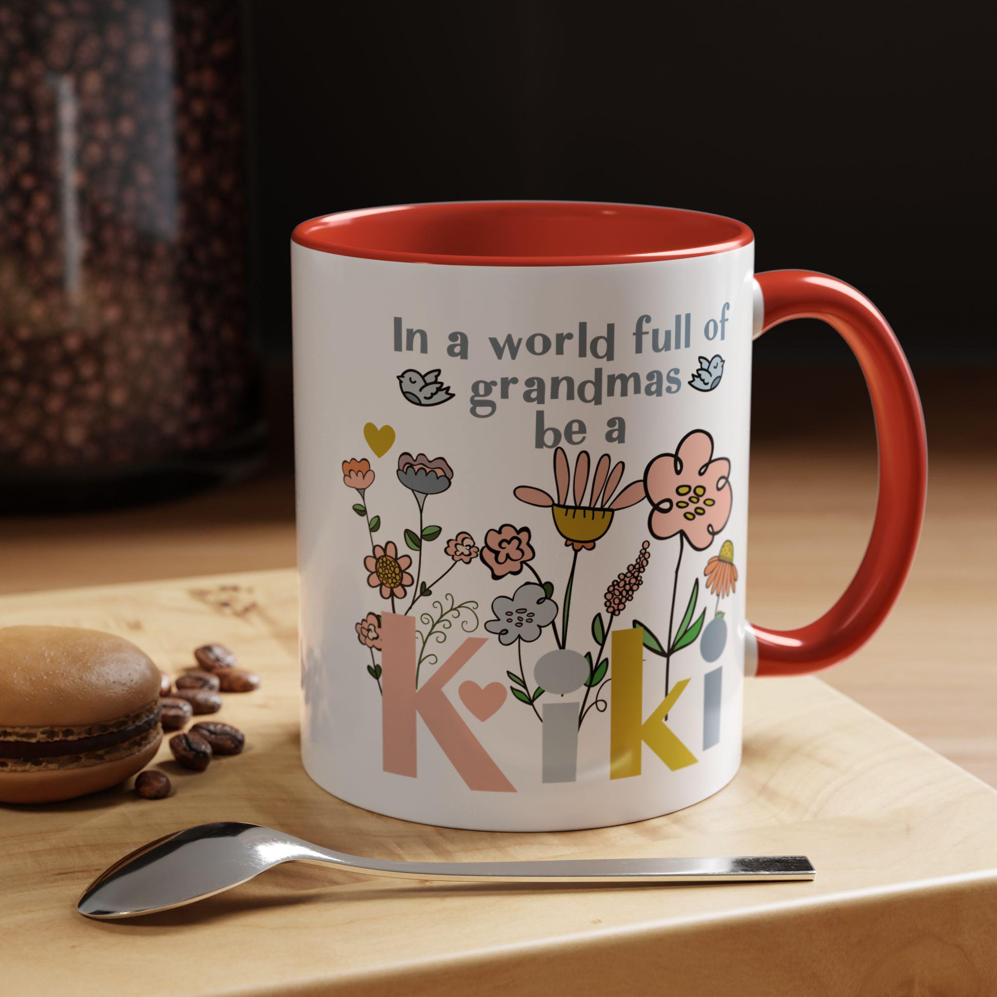 A fun mug to celebrate grandmas call 'Kiki'. This adorable mug is perfect for grandmothers who go by the nickname 'Kiki'. Select her favorite color! It brings a warm and familial feeling to any coffee or tea break, making it a great gift for Mother's Day, Grandparents Day, or just to show some love and appreciation to the special 'Kiki' in your life.