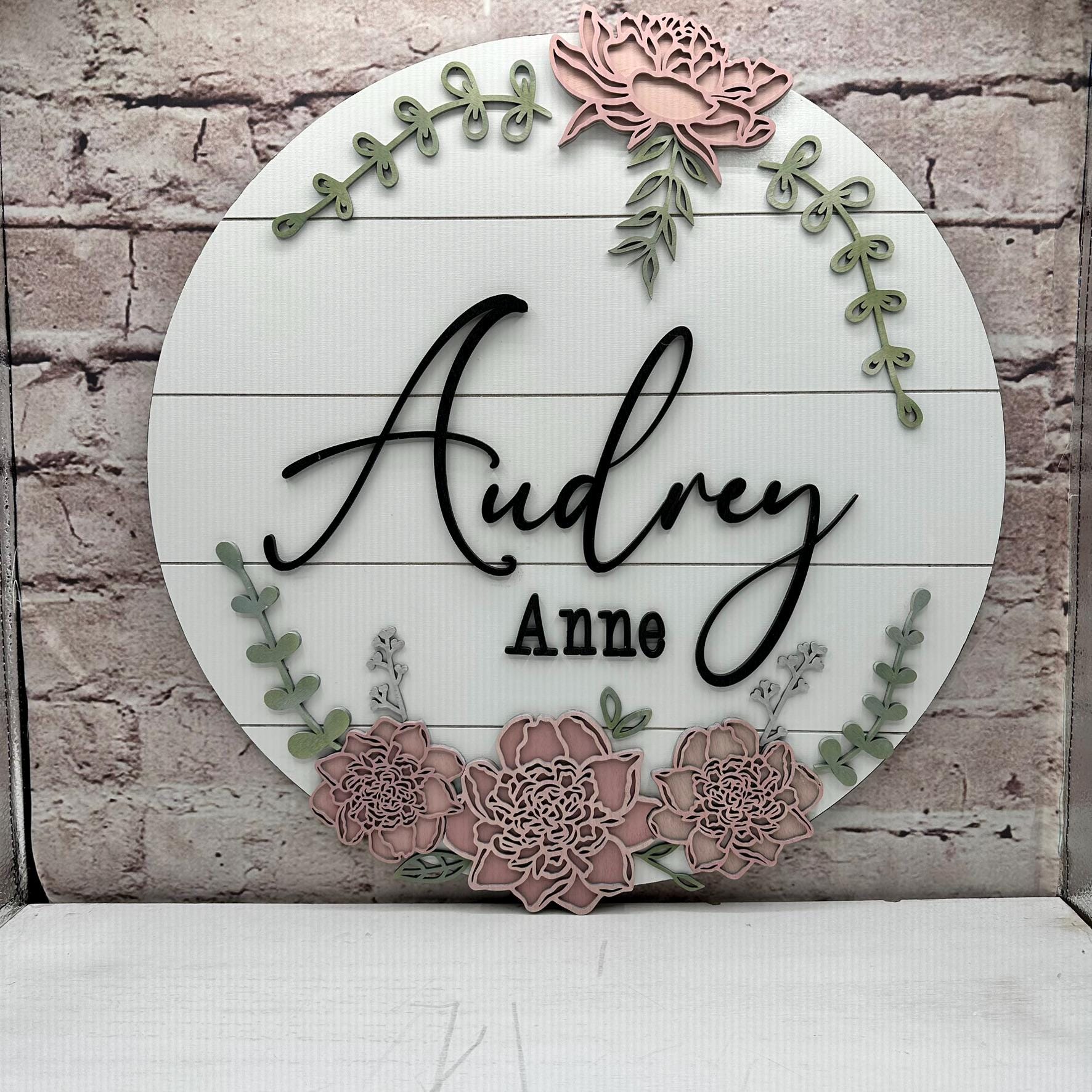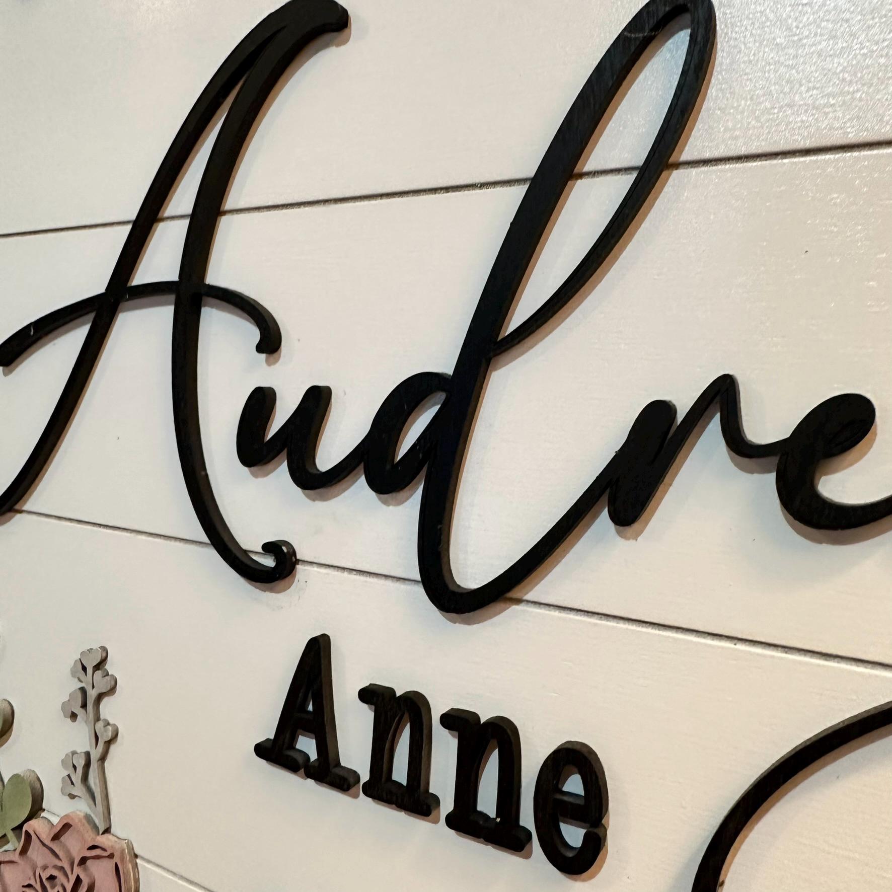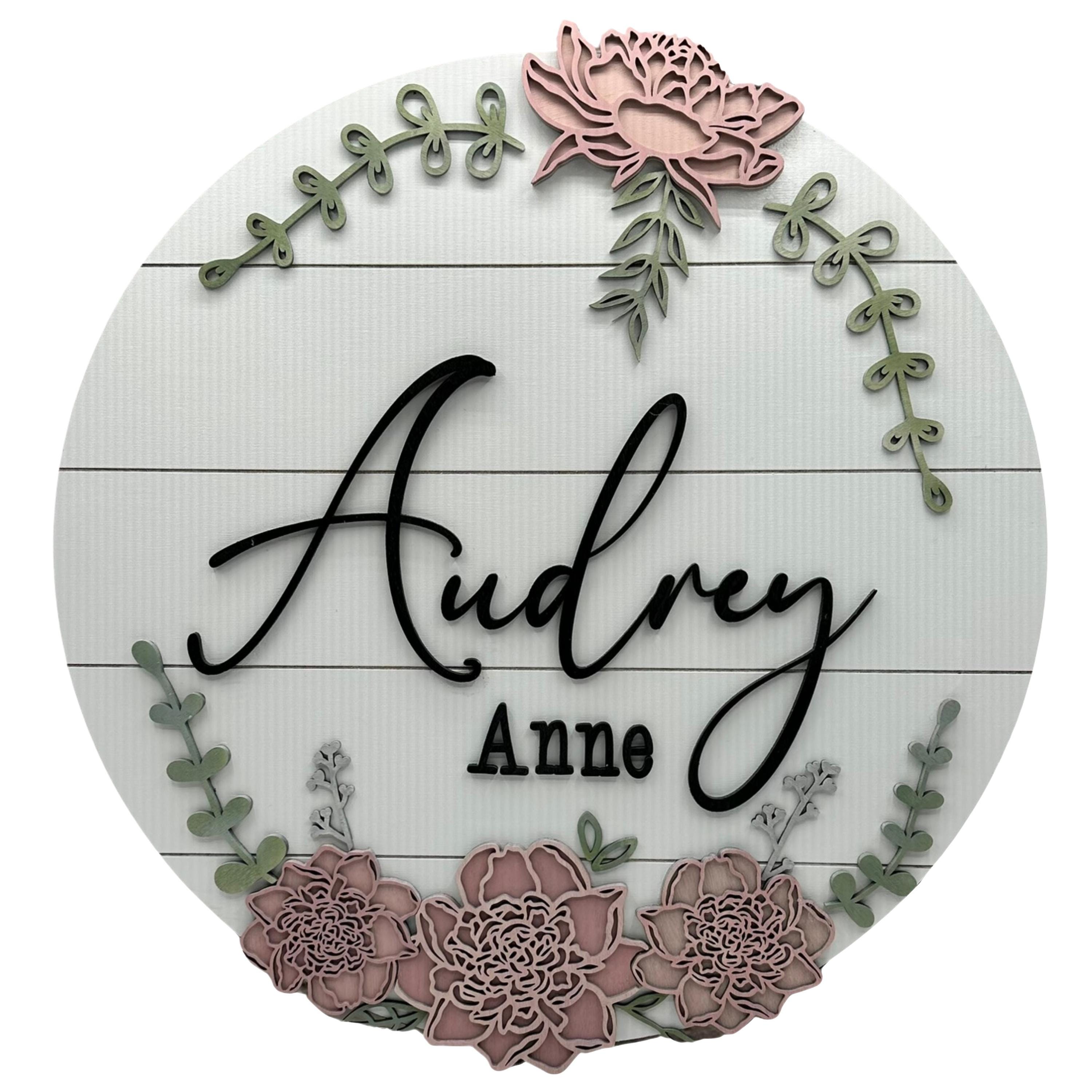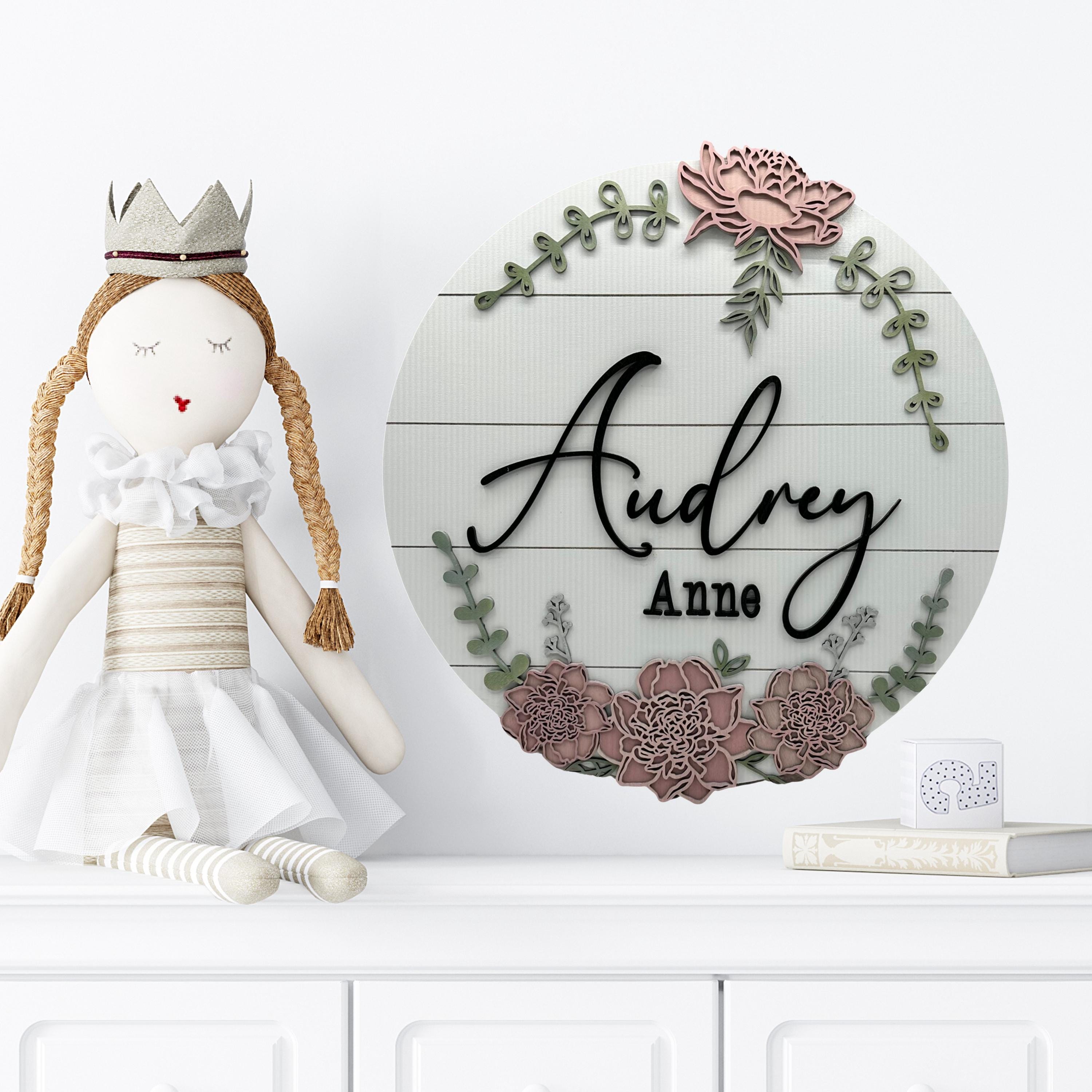 Introducing our handmade Custom Wood Baby Girl Peony Name Sign! This beautiful and personalized piece is the perfect addition to any nursery or child's room. Each sign is carefully crafted from high-quality wood, ensuring durability and a timeless look. The dimensions of this sign can be customized to suit your needs, making it a unique and special decor piece for your little one's space. Add a touch of charm and individuality with this one-of-a-kind name sign that will be treasured for years to come. Perfect for baby showers, birthdays, or any special occasion. Make a statement with our Custom Wood Baby Name Sign today! The colors featured in this design are pink, blush, and sage.