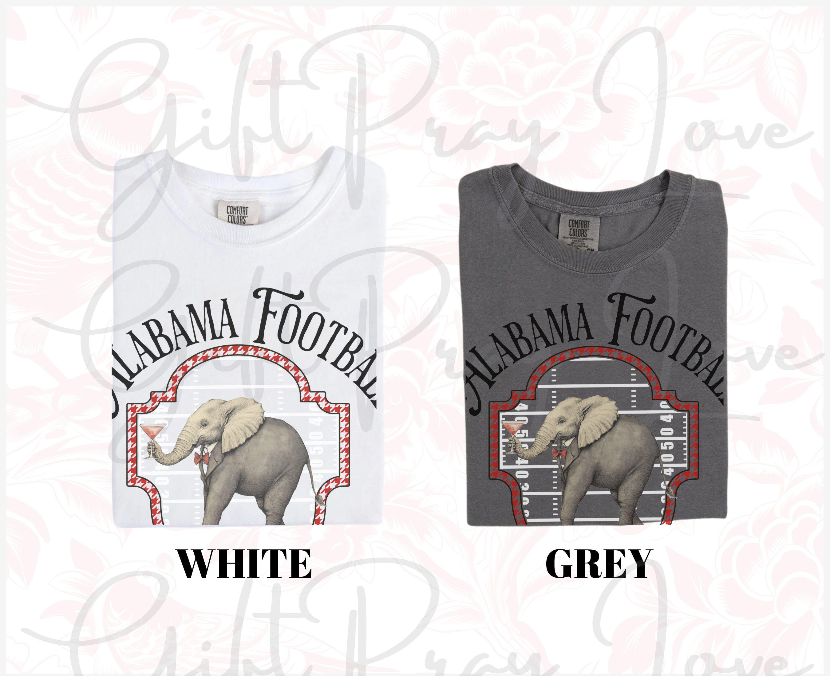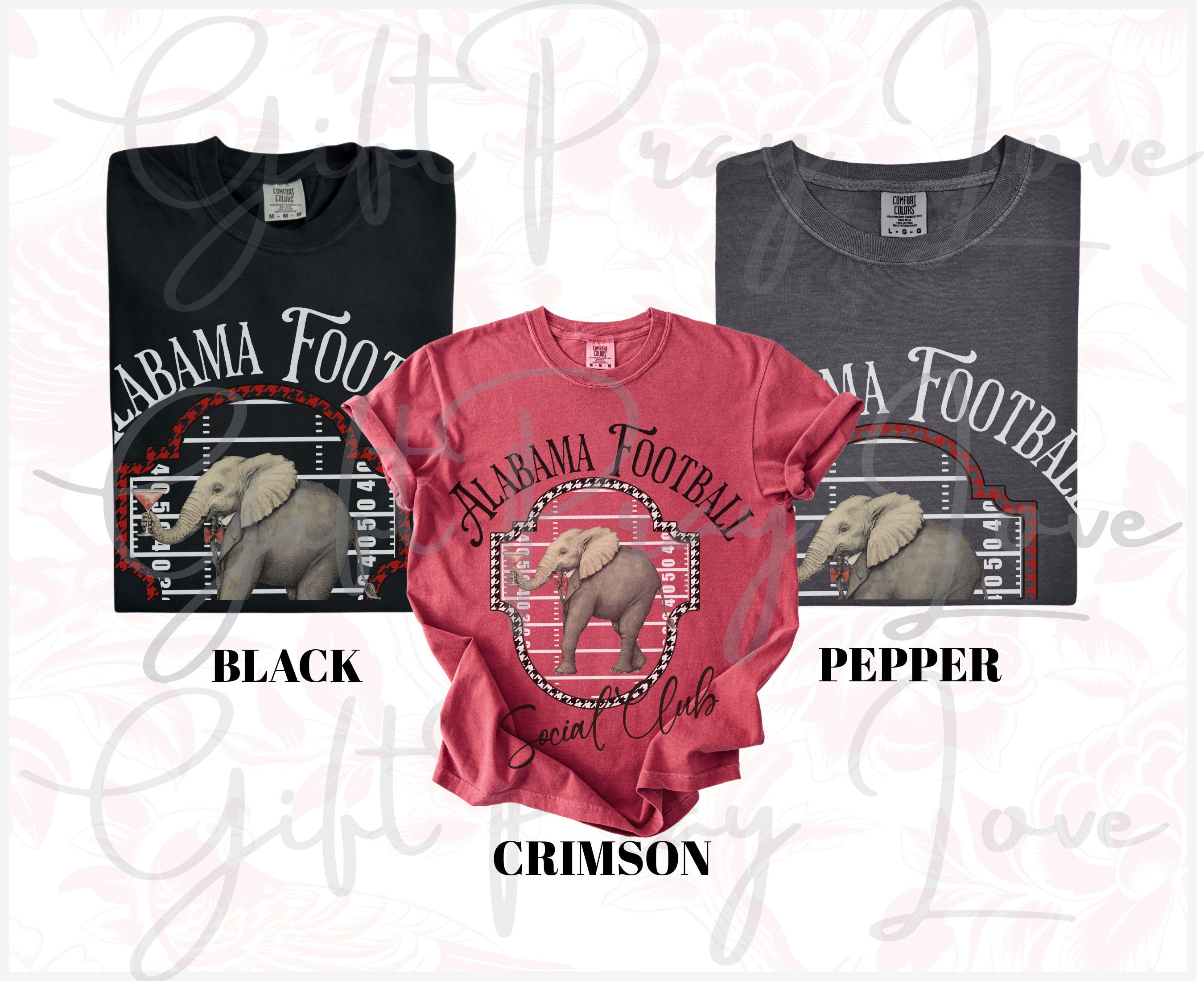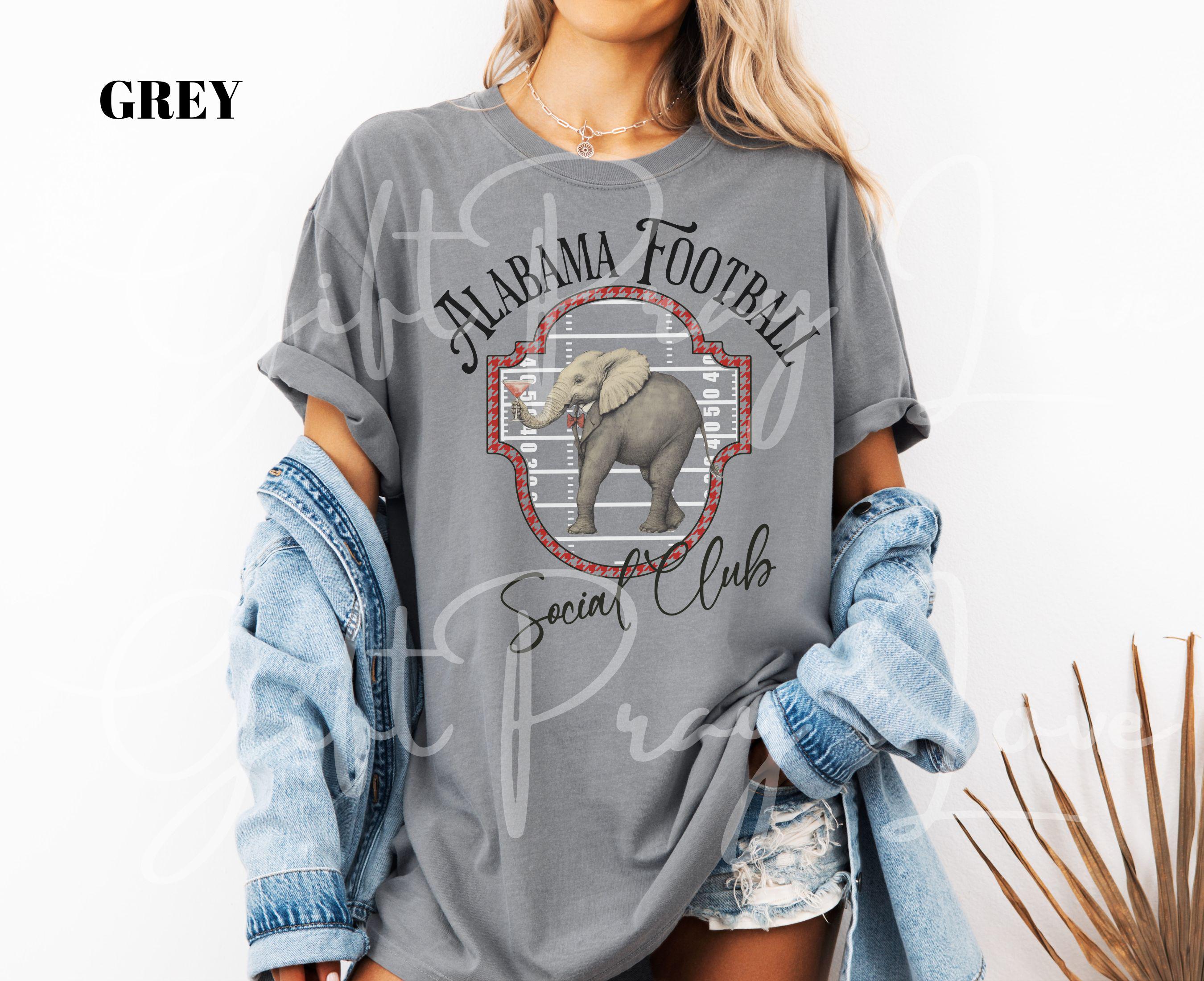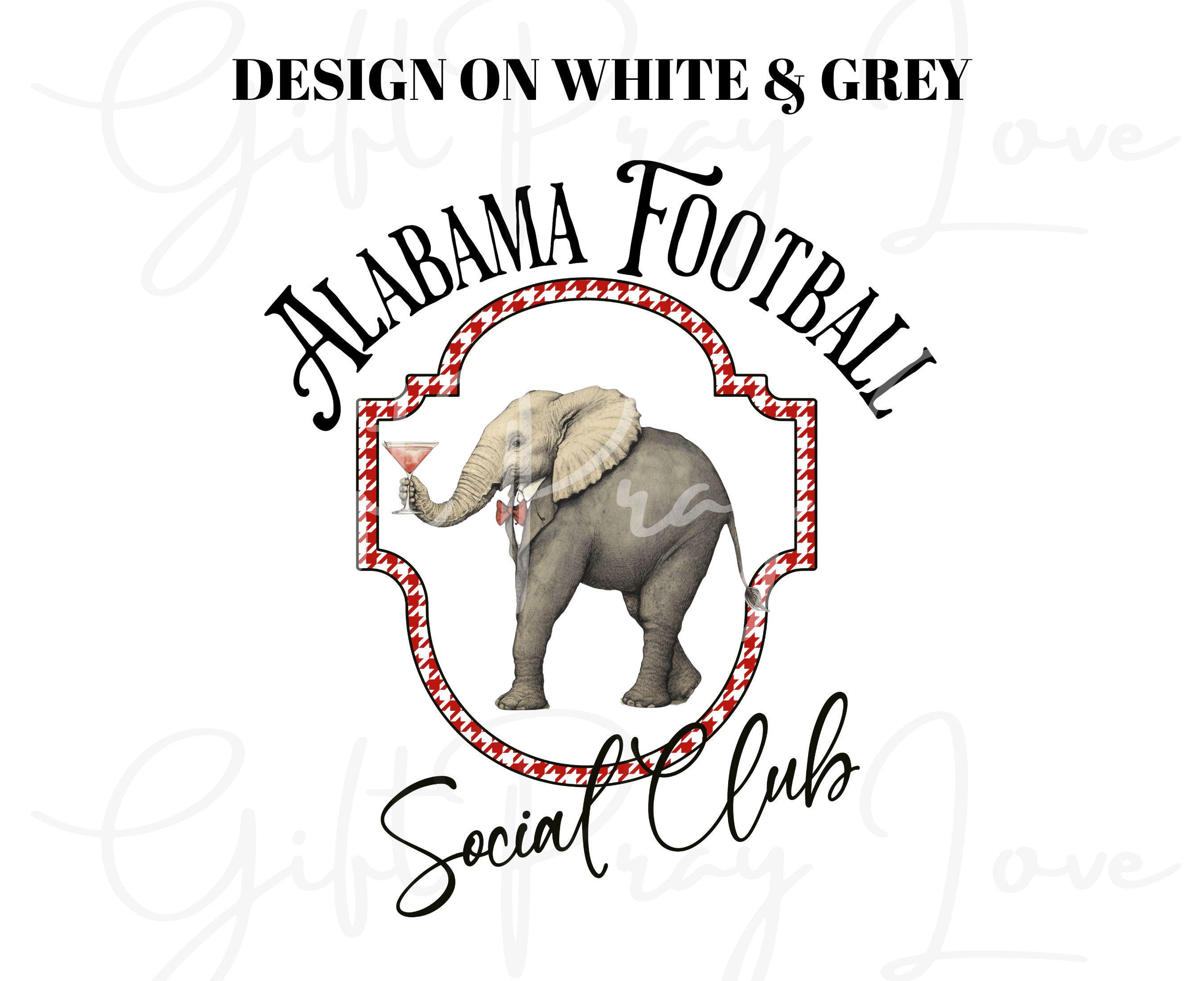 Show your Alabama football pride with this Alabama Football Social Club t-shirt! Designed on a premium Comfort Colors tee, this shirt offers a soft, vintage feel with a relaxed fit—perfect for game days, tailgates, or everyday wear. Designed in the cute Social Club style featuring Big Al with a martini. Whether you're cheering from Bryant-Denny Stadium or watching from home, this Bama fan shirt is a must-have for any Alabama football lover. Makes a great gift for Alabama alumni, students, and Bama football fans and new admissions! Order yours today and show your Bama football spirit. Roll Tide!