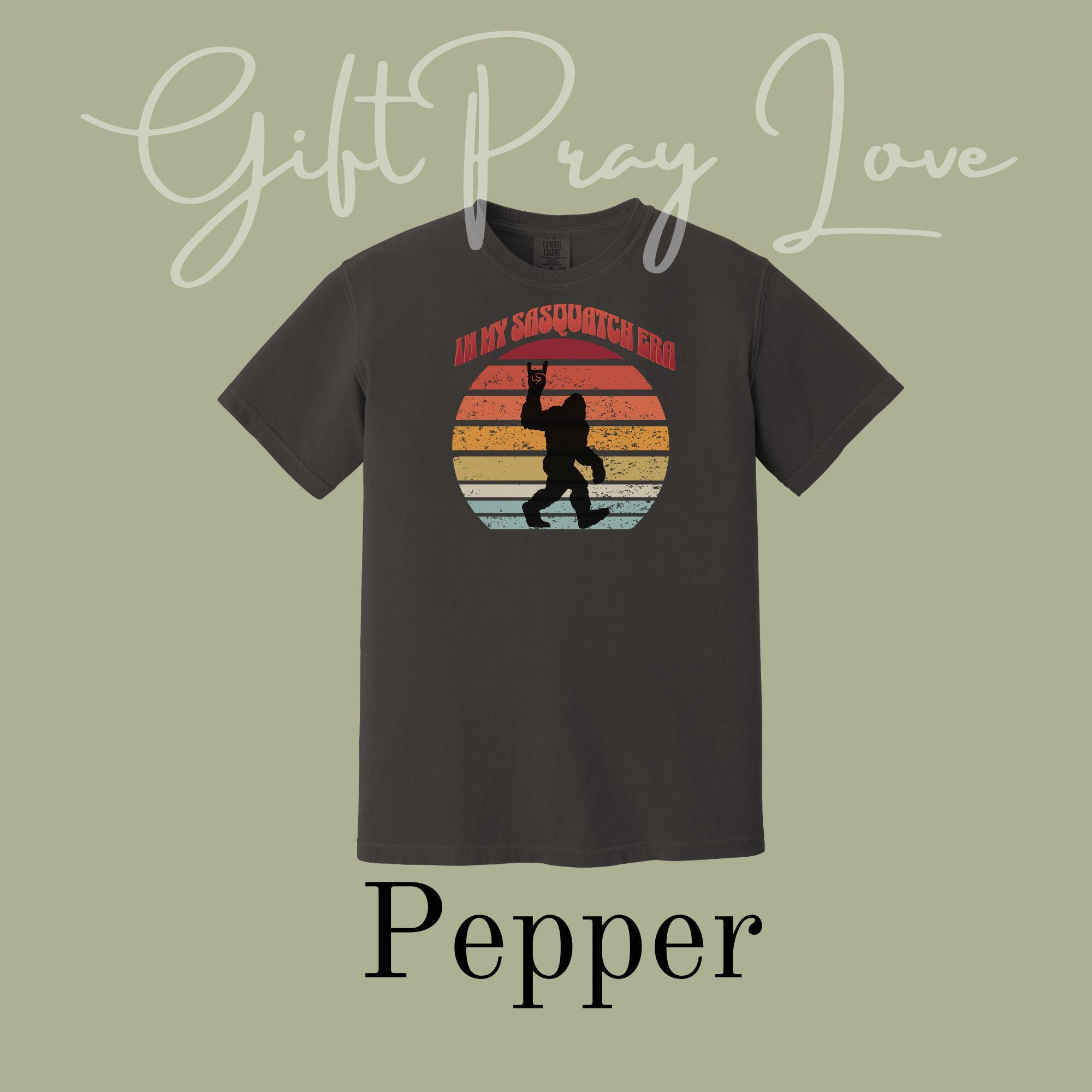 Step into your Sasquatch era with this ultra-soft Comfort Colors tee. Embrace your inner cryptid with our “In My Sasquatch Era” T-shirt—a perfect blend of humor, mystery, and retro style for Bigfoot lovers! Featuring a vintage-inspired sunset background and a silhouette of Sasquatch throwing the rock-on sign, this tee is ideal for anyone who believes in the legend… or is the legend.