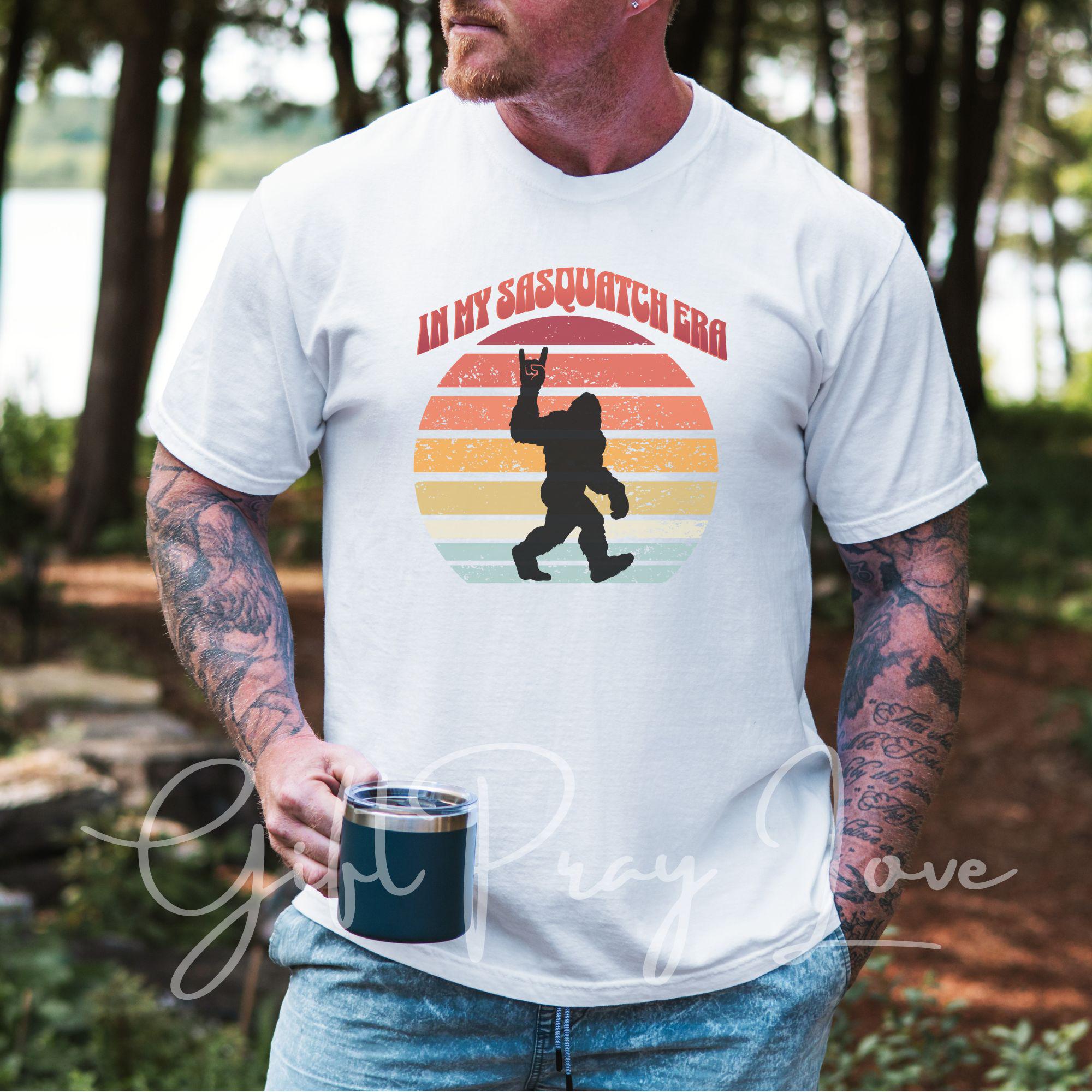 Whether you're hiking through the woods or just hiding from society, this shirt makes a fun gift for cryptid hunters, campers, and off-grid enthusiasts. Join the cryptid culture in style. Because you’re not just in your era—you’re in your Sasquatch Era.