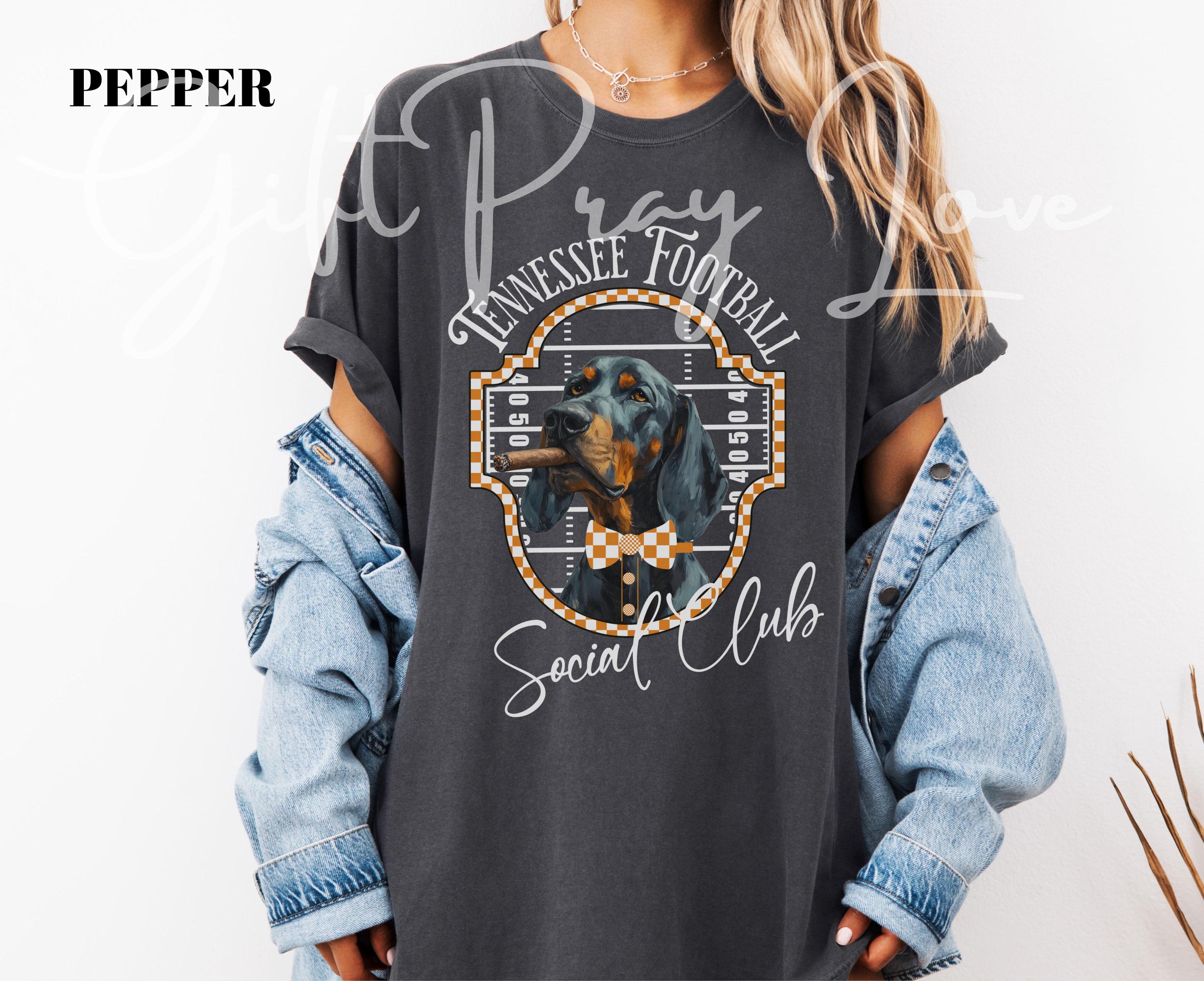 Show off your Tennessee football pride with this premium Comfort Colors t-shirt featuring a Smokey Social Club design! Perfect for game days, tailgates, or just repping your Vols spirit, this soft and stylish tee showcases Smokey with a cigar, celebrating big wins in classic fashion.