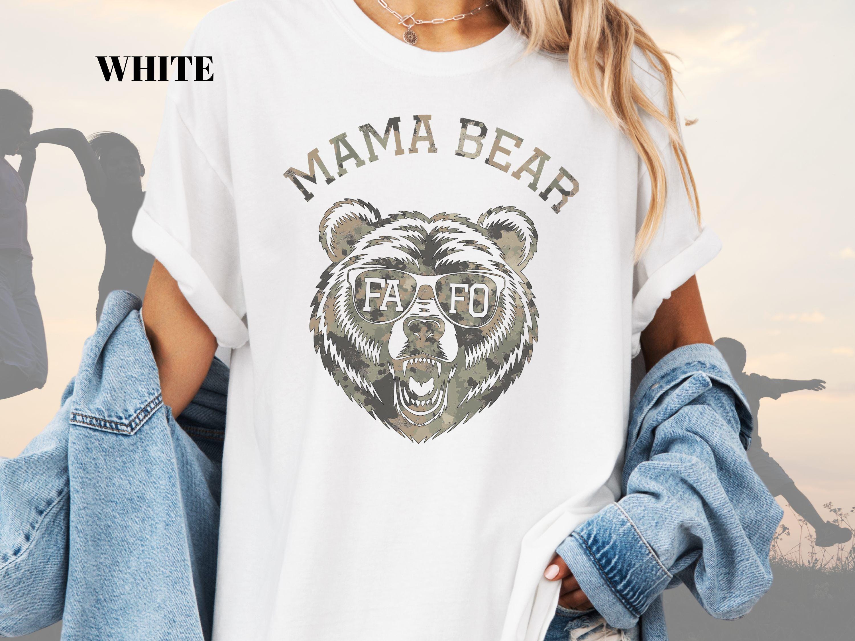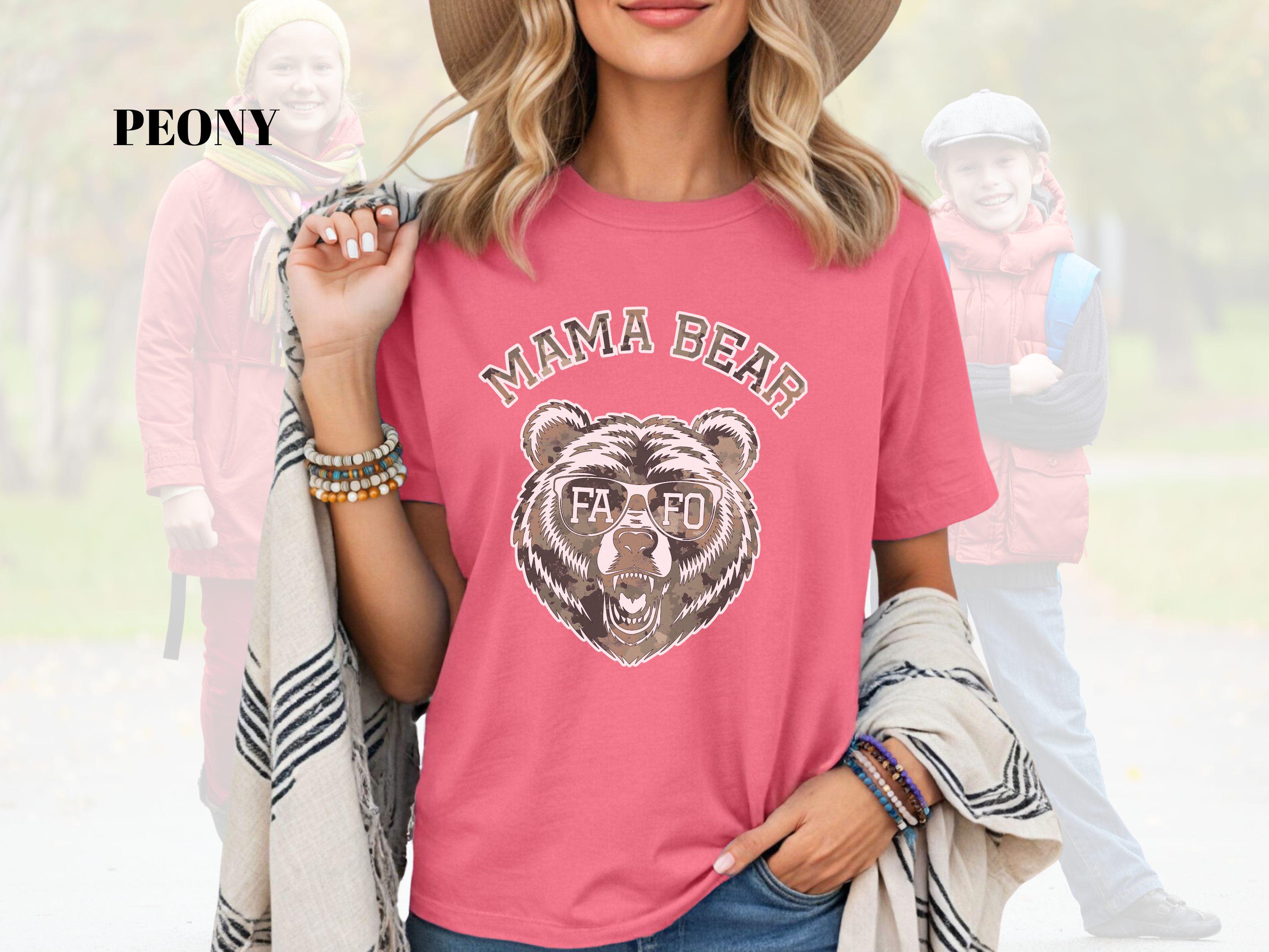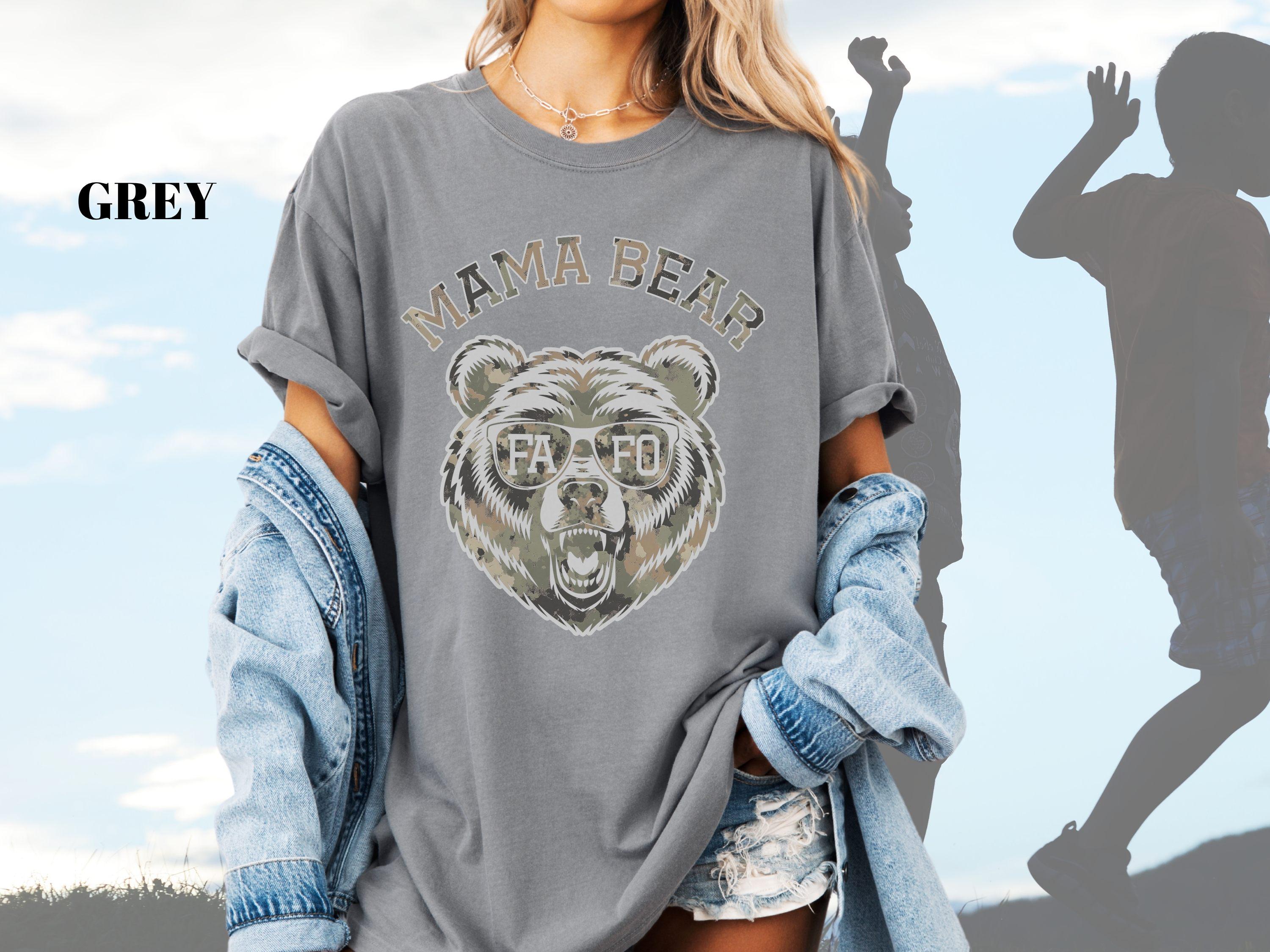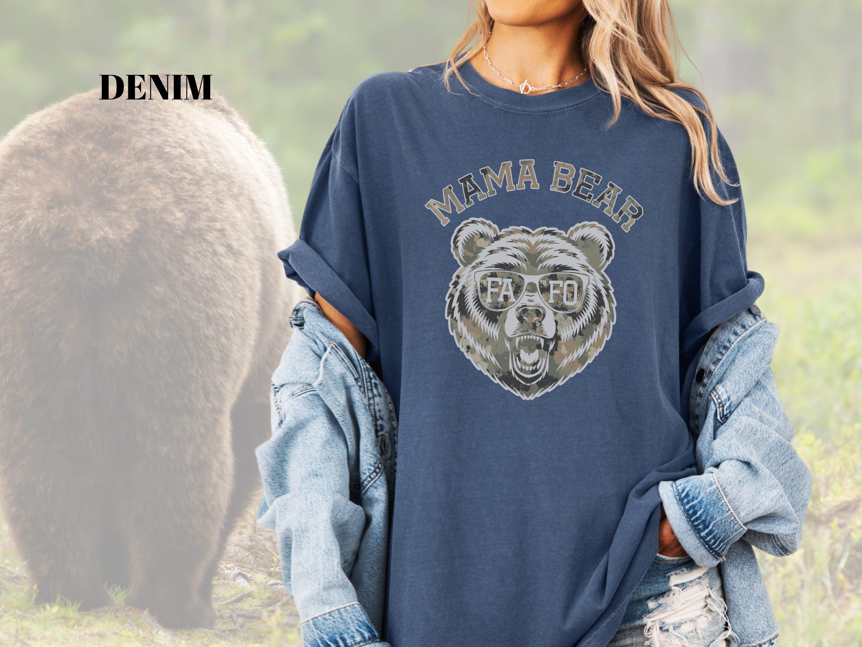 Channel your inner wild with this bold Mama Bear tee, where sweet meets savage. Featuring a striking bear face in graphic style, this shirt pops with mirrored aviators reflecting “FAFO” — for the moms who protect their cubs with zero apologies. Printed on soft, high-quality Comfort Colors tees, this shirt combines style with comfort and attitude. Whether you're at the park, the PTA meeting, or just vibing in your element, this tee makes a fierce statement.