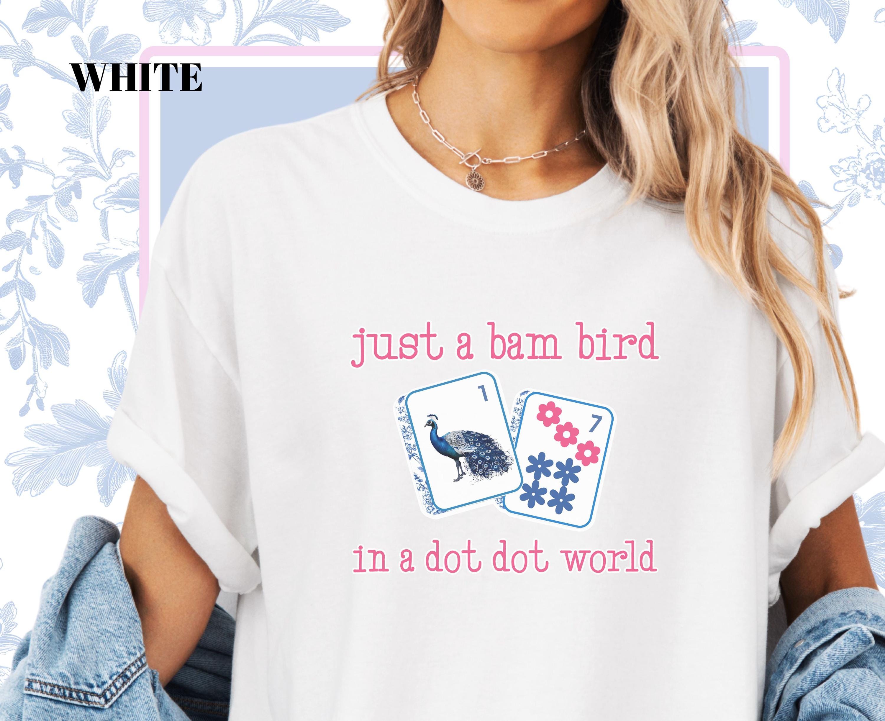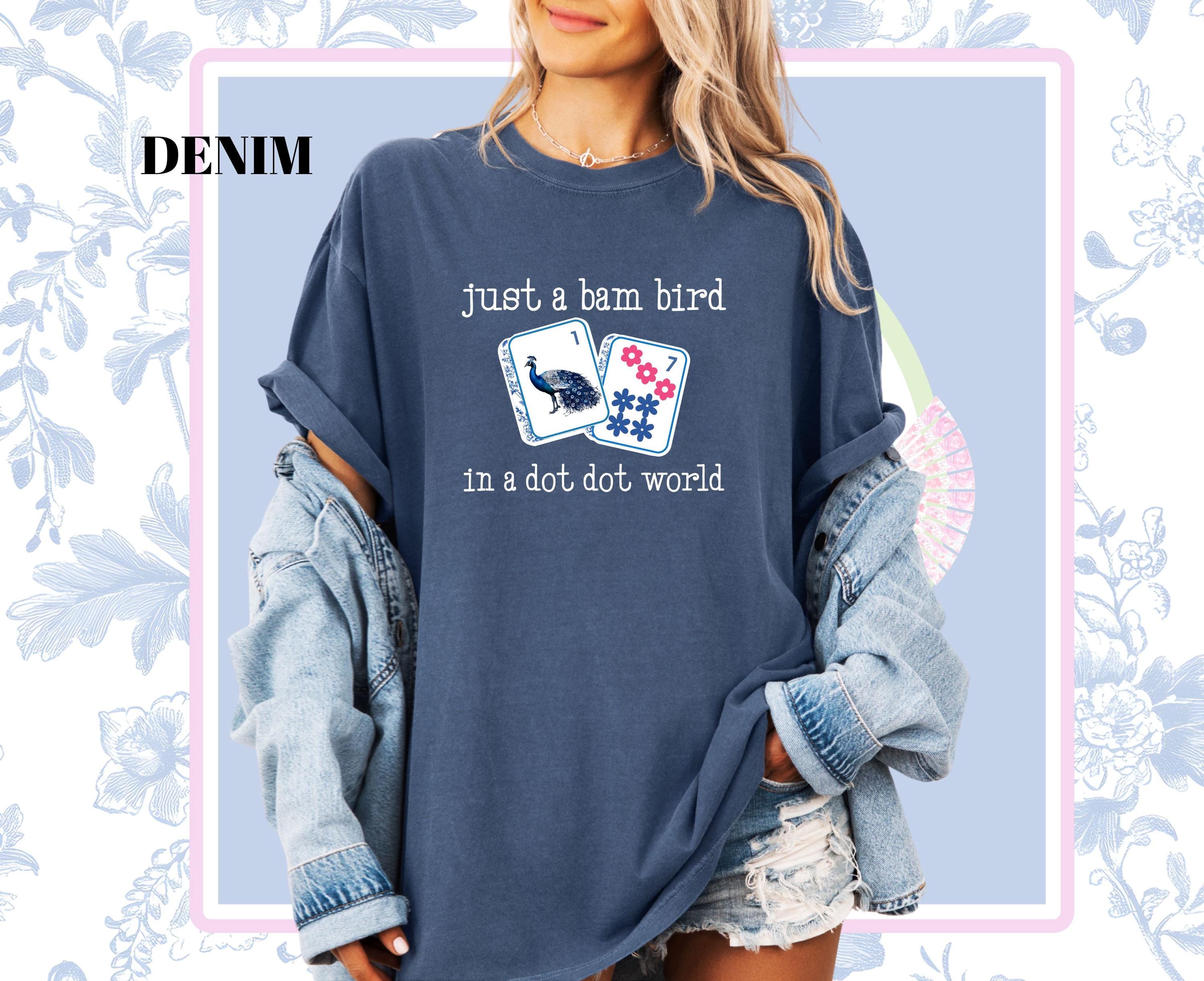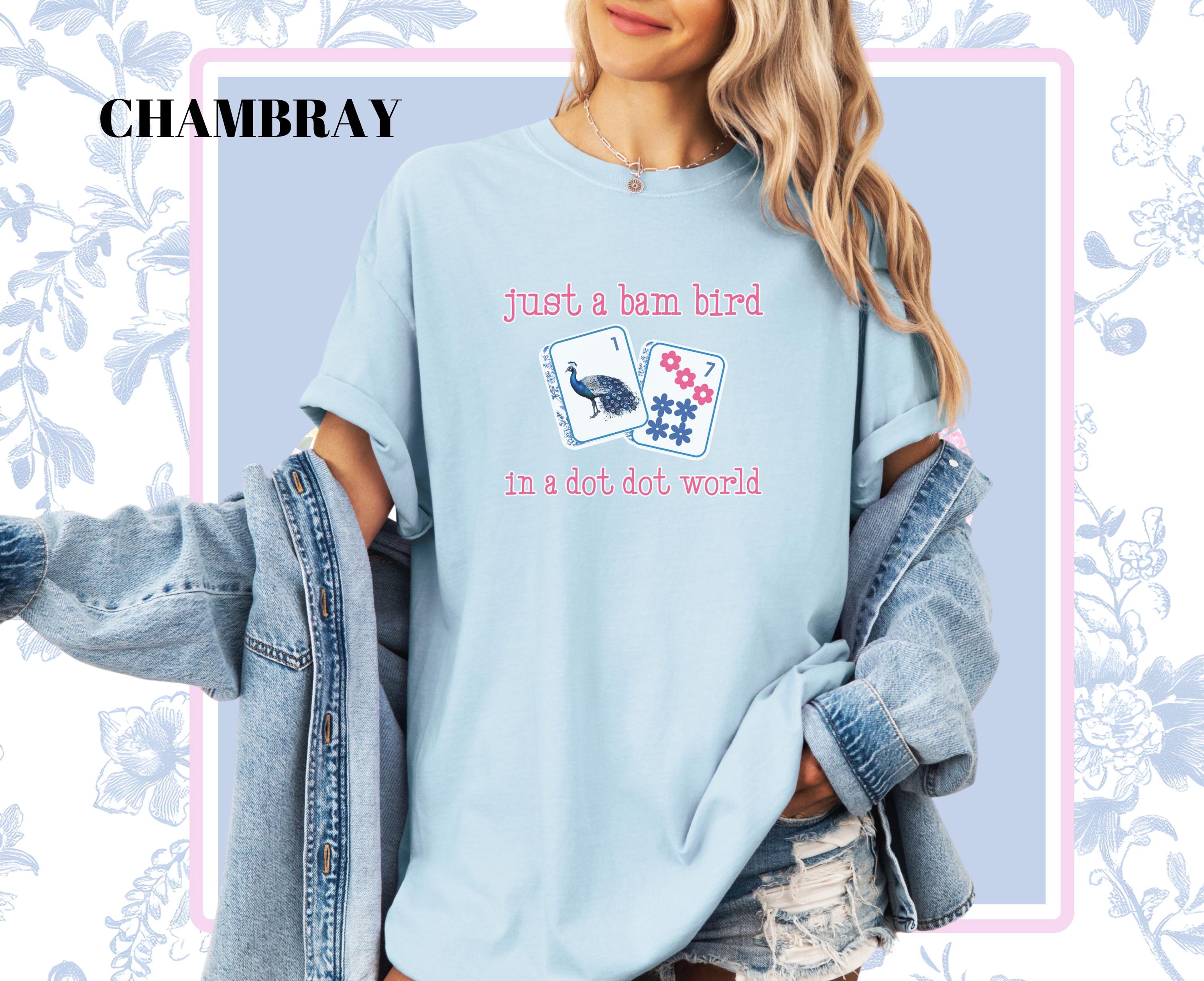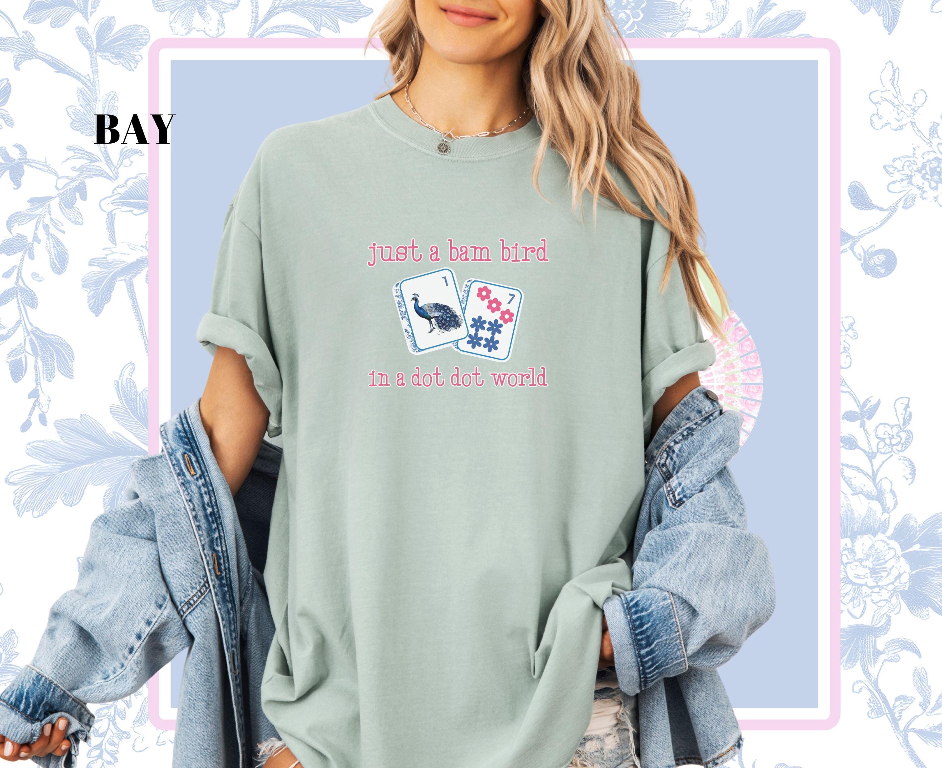 Show off your love for mahjong with our "Just a Bam Bird in a Dot Dot World" Comfort Colors® tee. Preppy colors, soft cotton, and a playful nod to one of the most beloved tiles make this shirt perfect for game nights, casual weekends, or gifting a fellow tile queen.