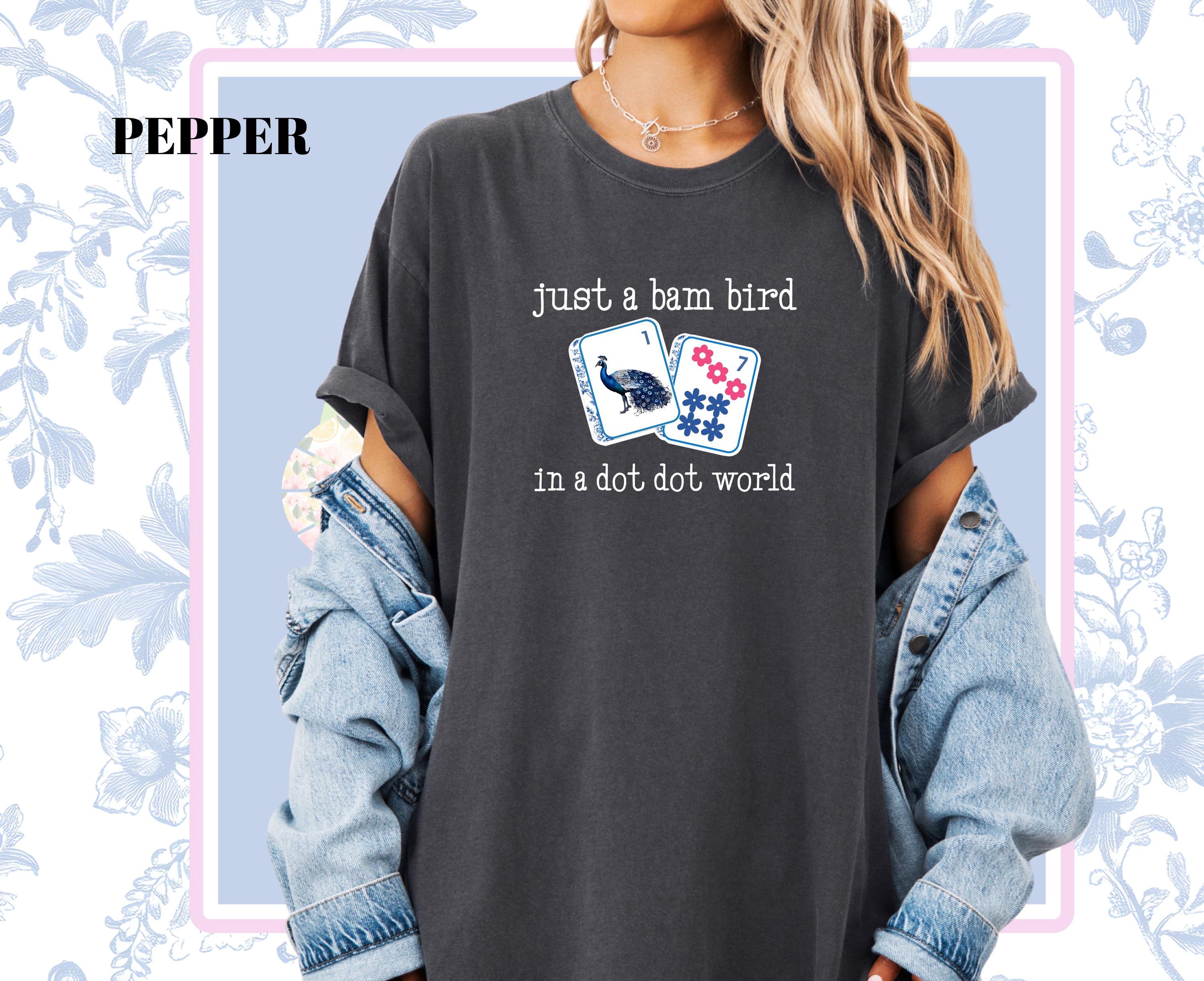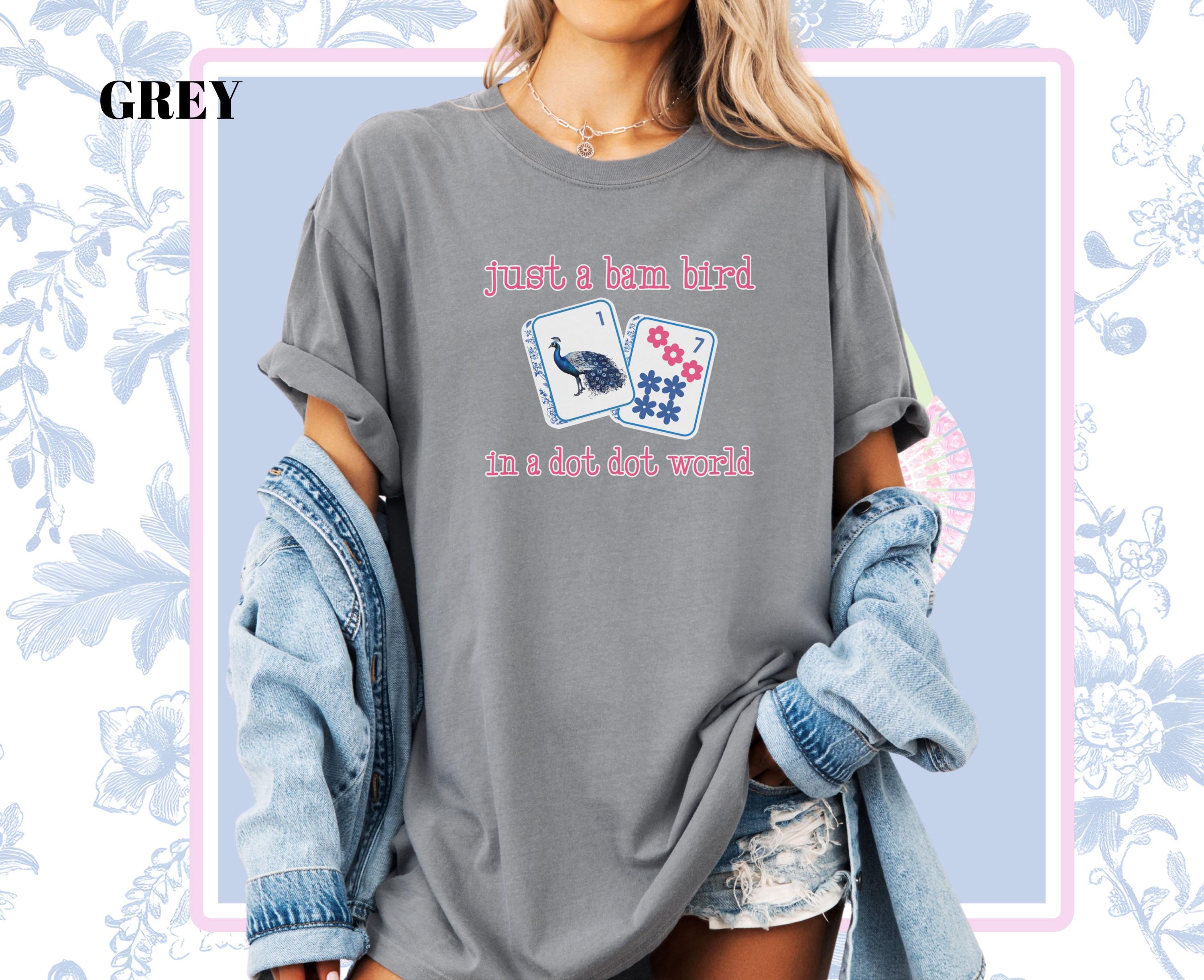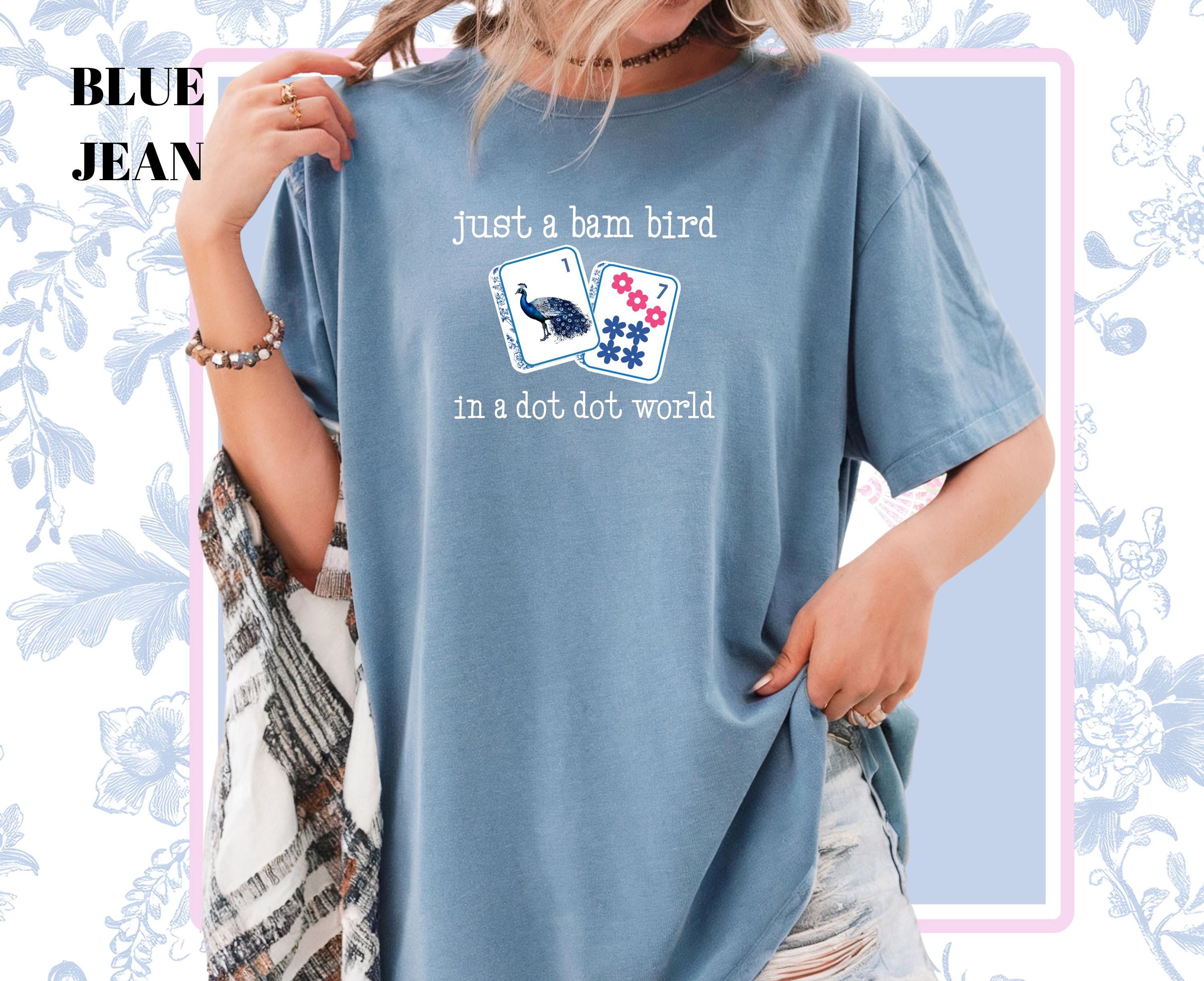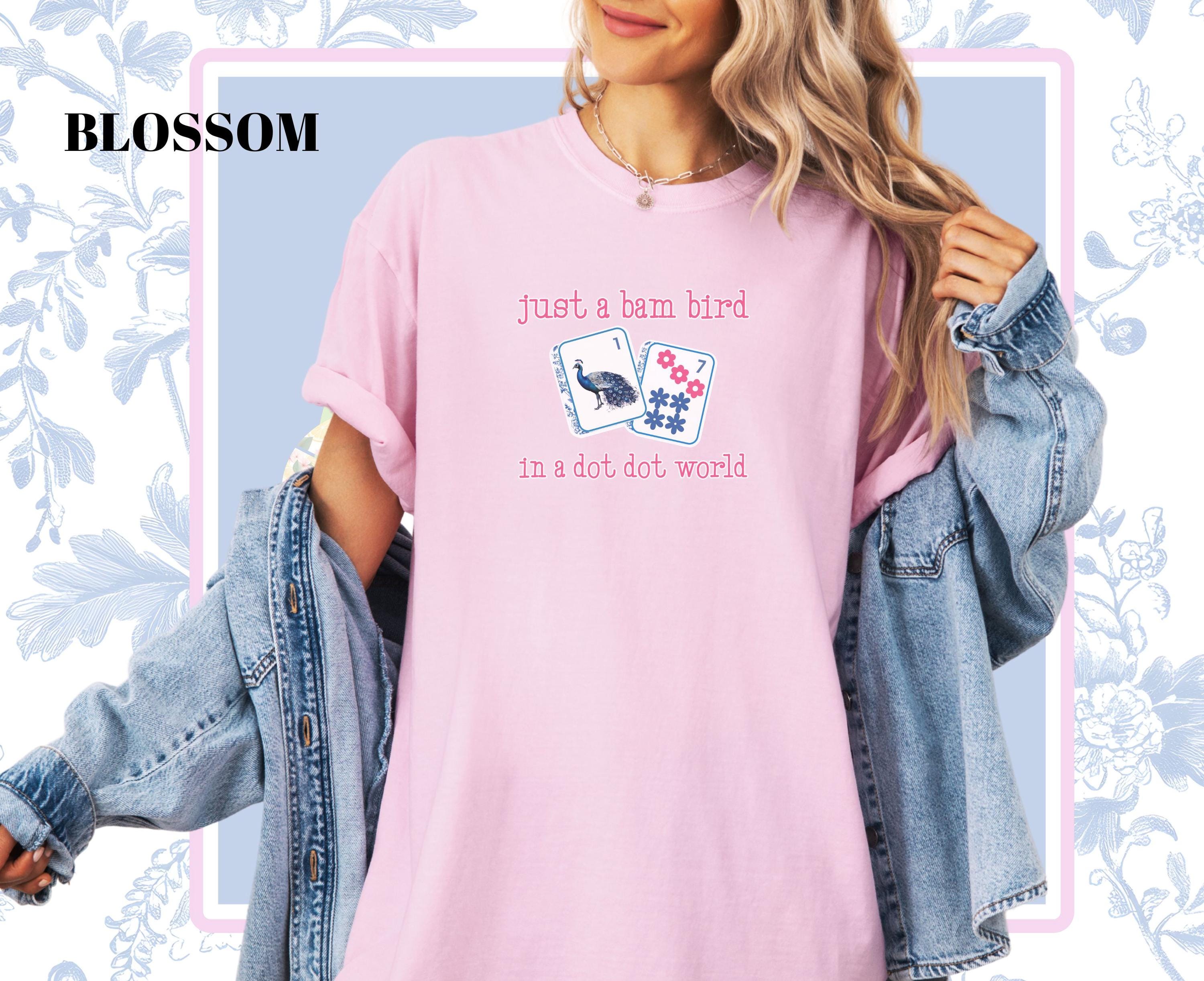 Show off your love for mahjong with our "Just a Bam Bird in a Dot Dot World" Comfort Colors® tee. Preppy colors, soft cotton, and a playful nod to one of the most beloved tiles make this shirt perfect for game nights, casual weekends, or gifting a fellow tile queen.