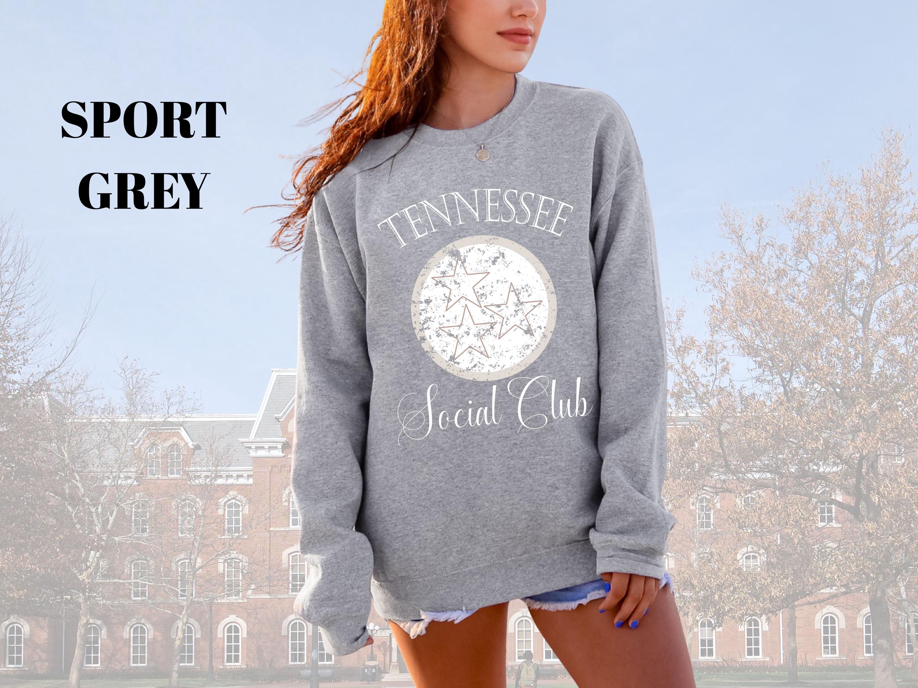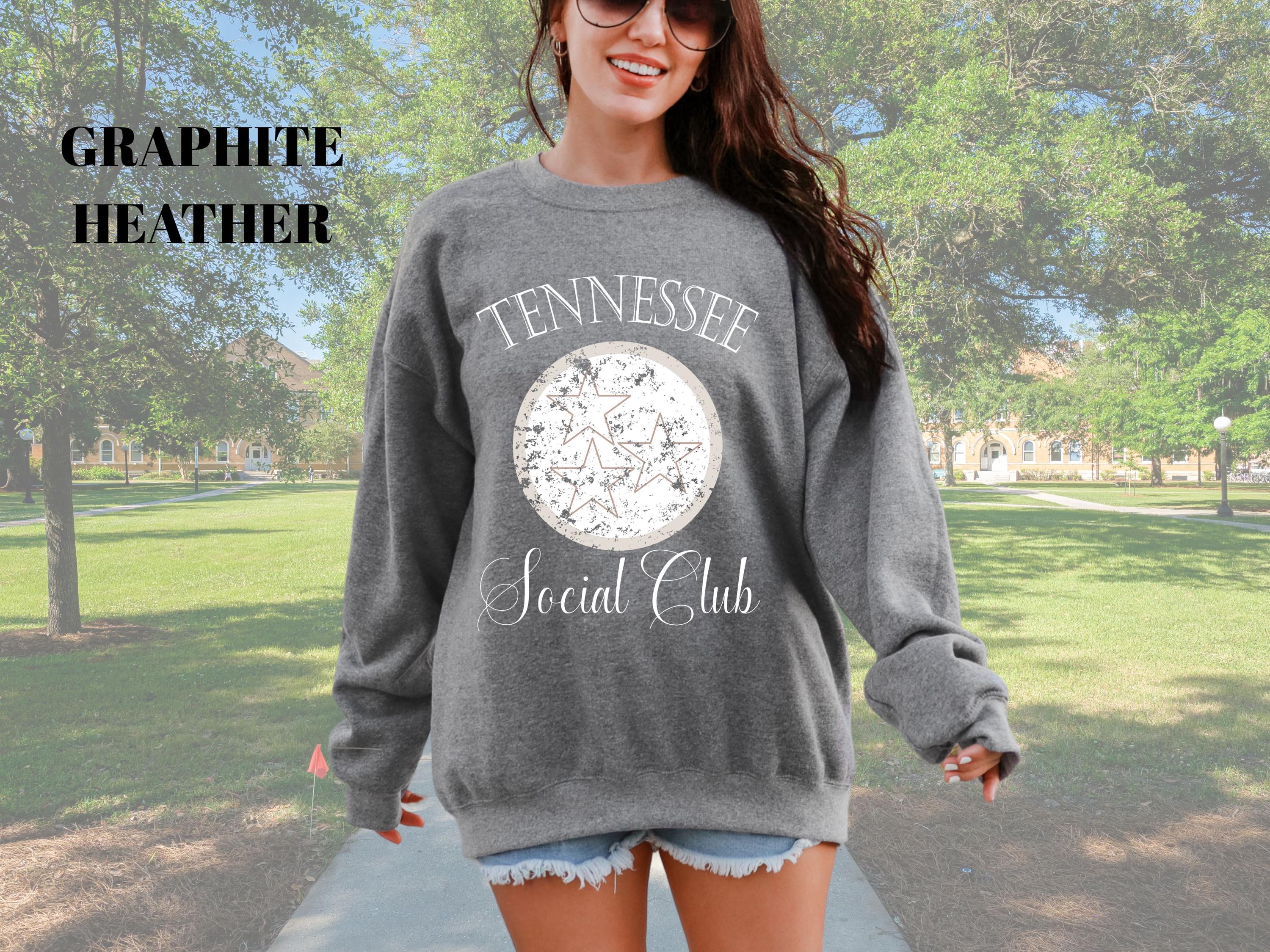 Show your Tennessee pride in timeless style with our Tennessee Social Club Sweatshirt, featuring a bold circle emblem inspired by the state flag. Designed in a vintage collegiate “social club” style, this cozy crewneck blends classic Southern charm with a modern, laid-back fit—perfect for game days, weekend outings, or casual gatherings.