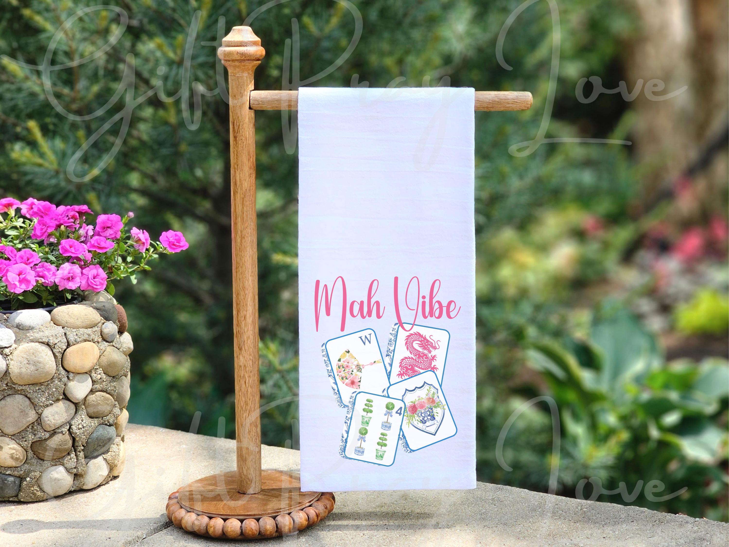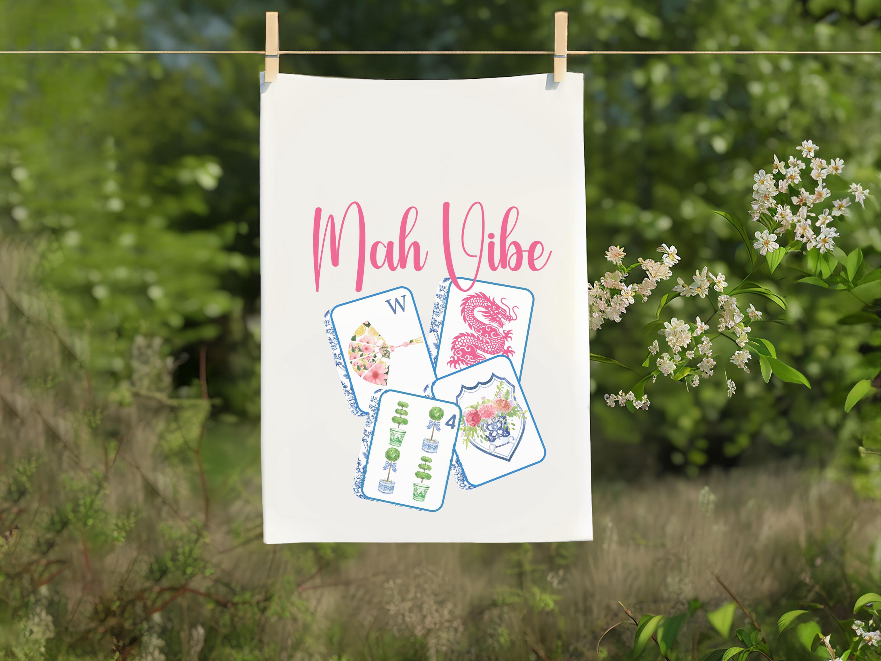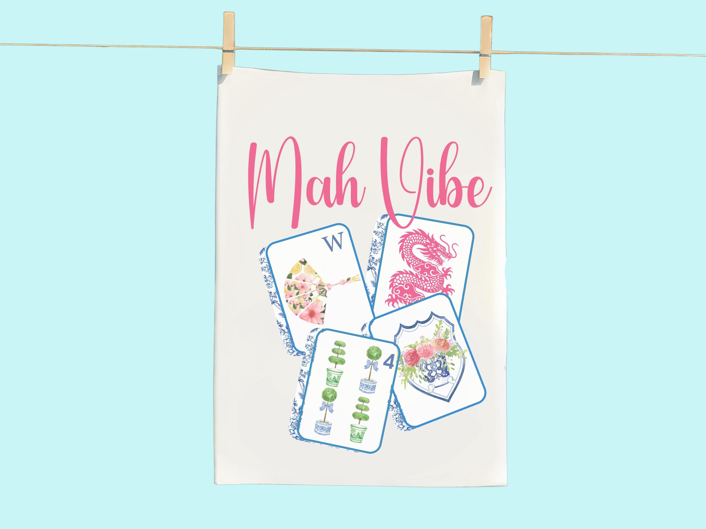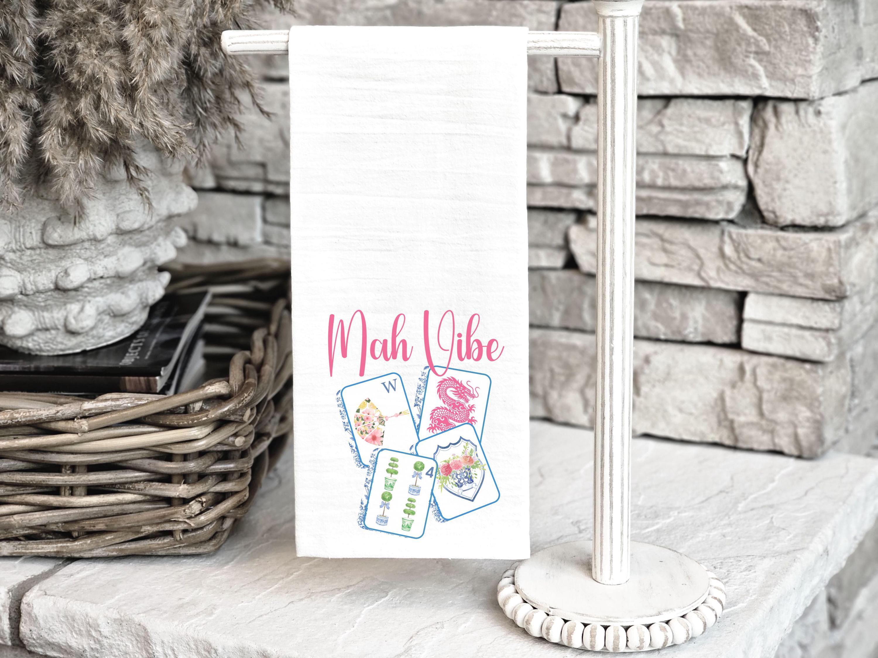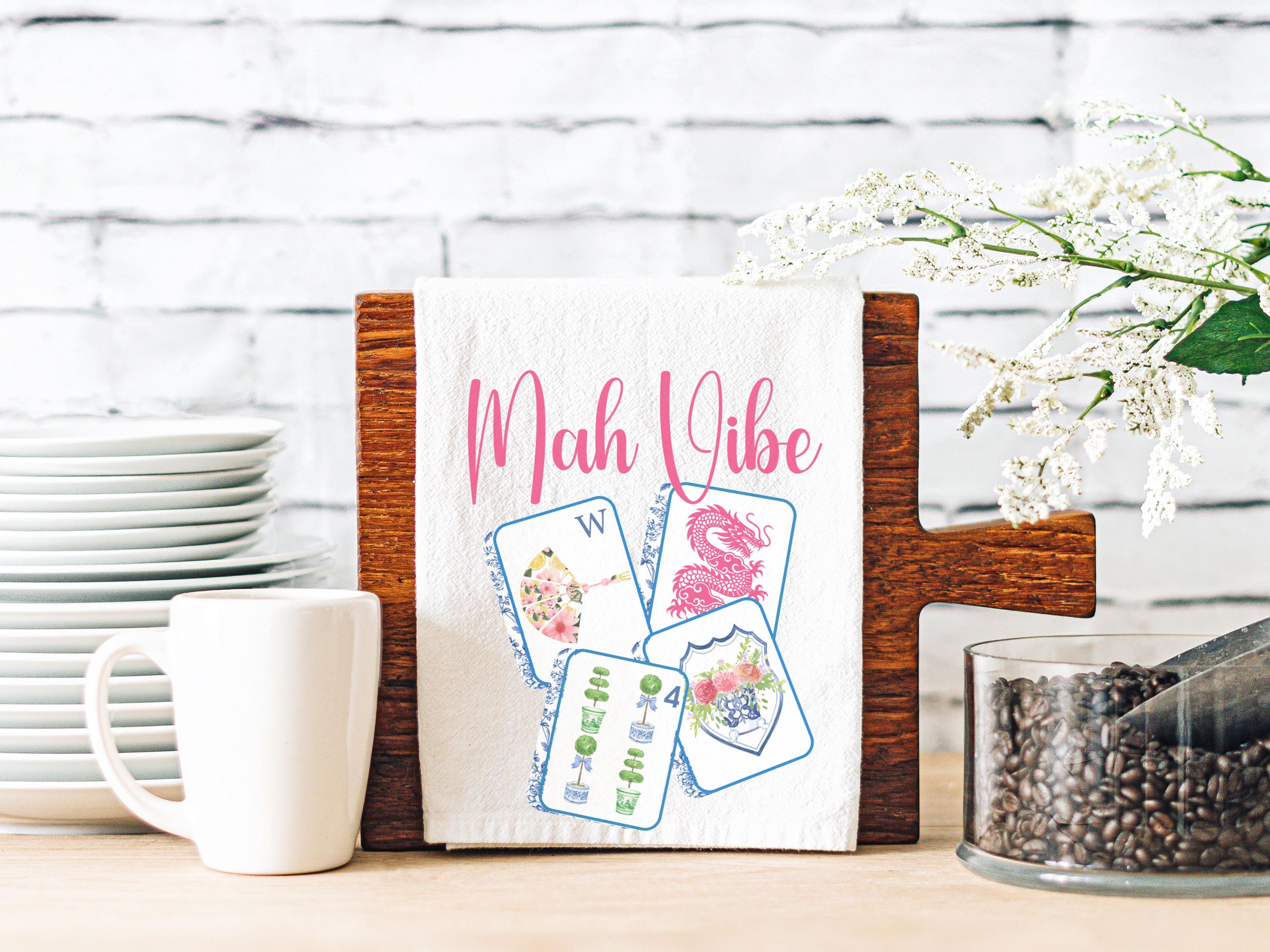 Add some playful sophistication to your kitchen or game night setup with our Mah Vibe tea towel. Featuring a preppy coquette–inspired Mahjong tile design in a fun preppy style, this oversized cotton towel is perfect for Mahjong players who love mixing style with their game night energy.