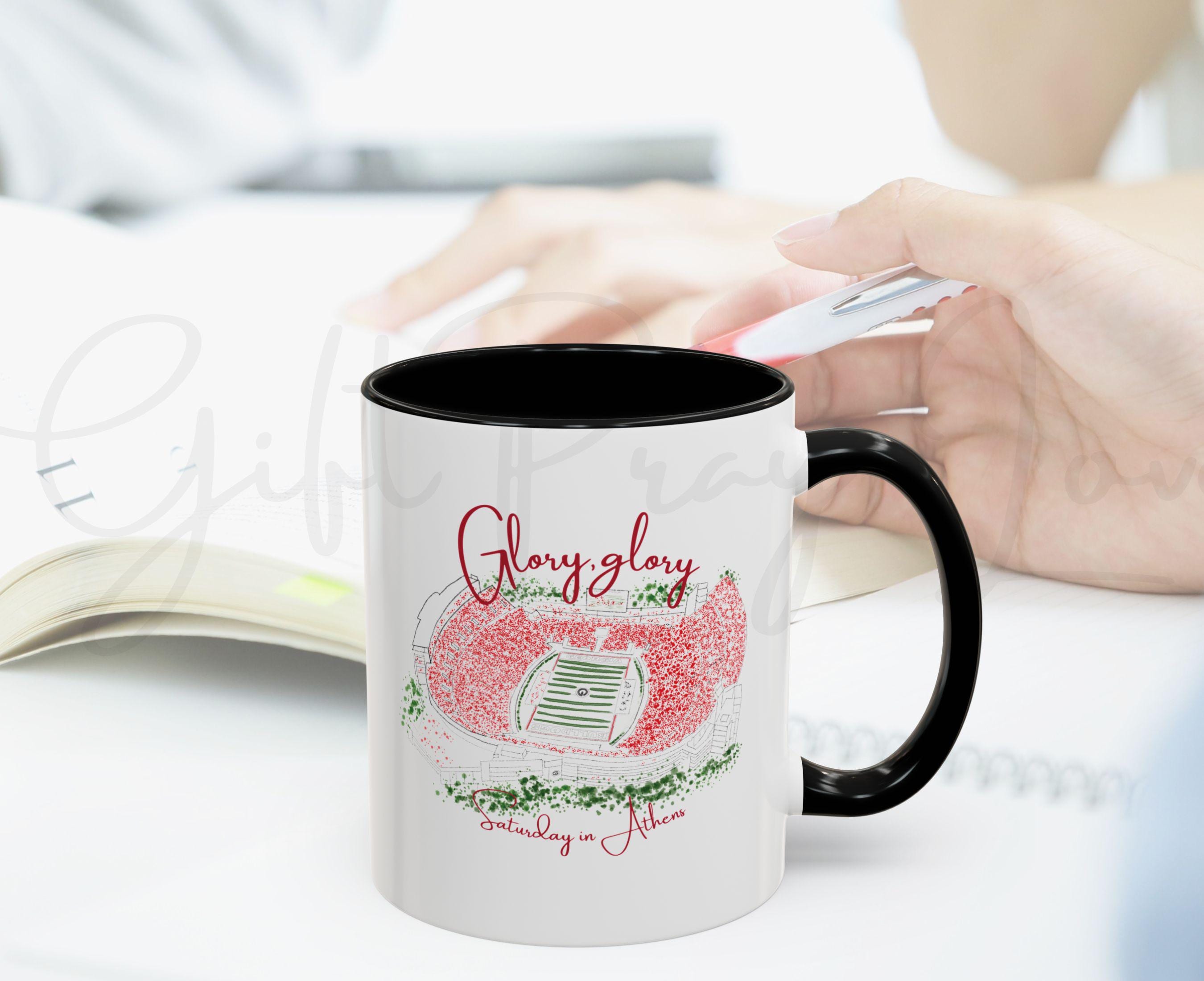 This beautifully designed Sanford Stadium “Glory, Glory” Mug features a hand-drawn illustration of the iconic UGA stadium — a heartfelt tribute to the legendary “Between the Hedges.” Perfect for proud Dawg fans, alumni, or anyone who loves Athens, Georgia, this mug makes every sip feel like game day.