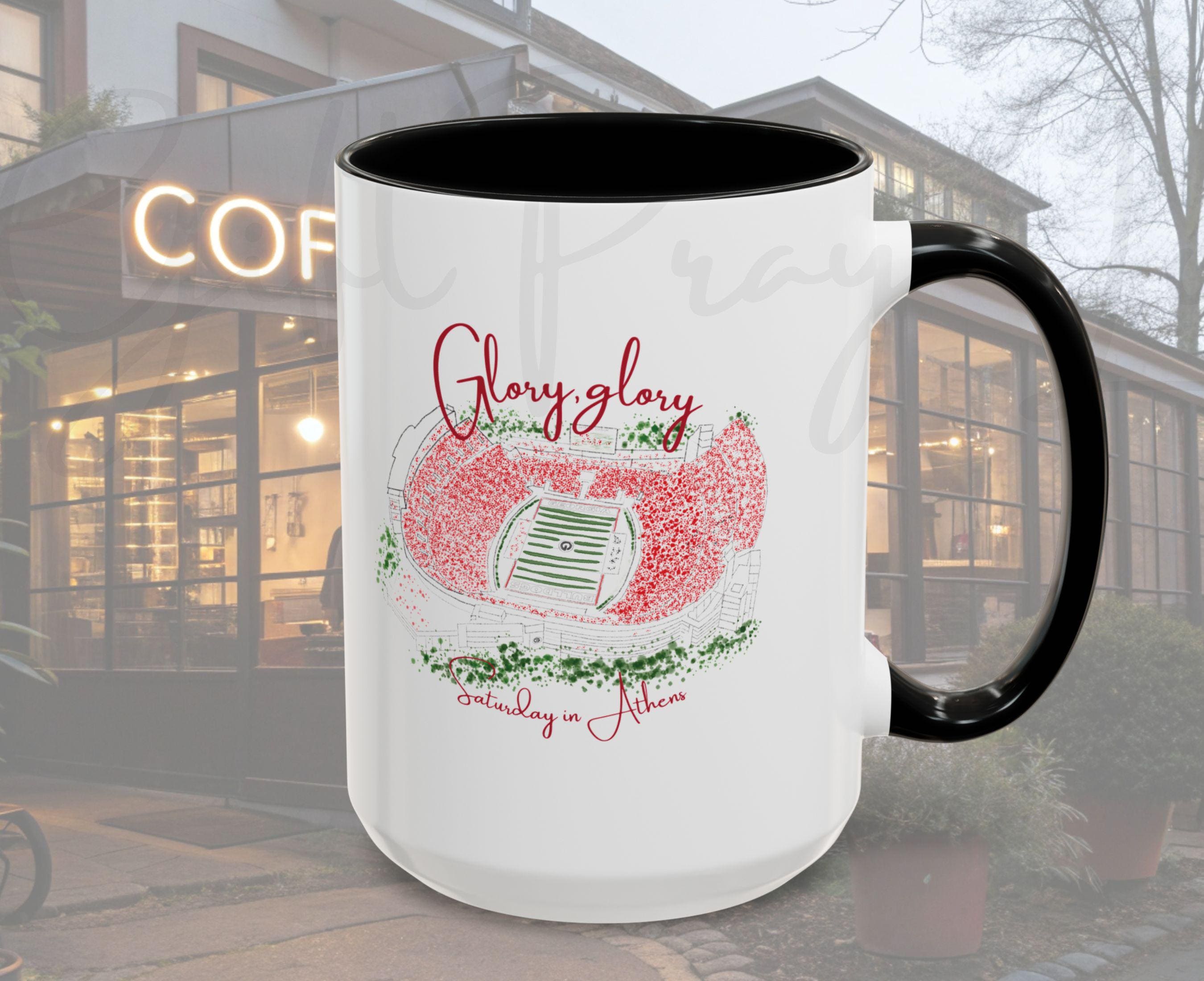 Every line of this hand-drawn design captures the magic of Sanford Stadium, from the stands to the hedges. Whether you’re cheering “Glory, Glory to Old Georgia” or reminiscing about Saturdays in Athens, this mug keeps your Bulldog spirit front and center — every single morning.