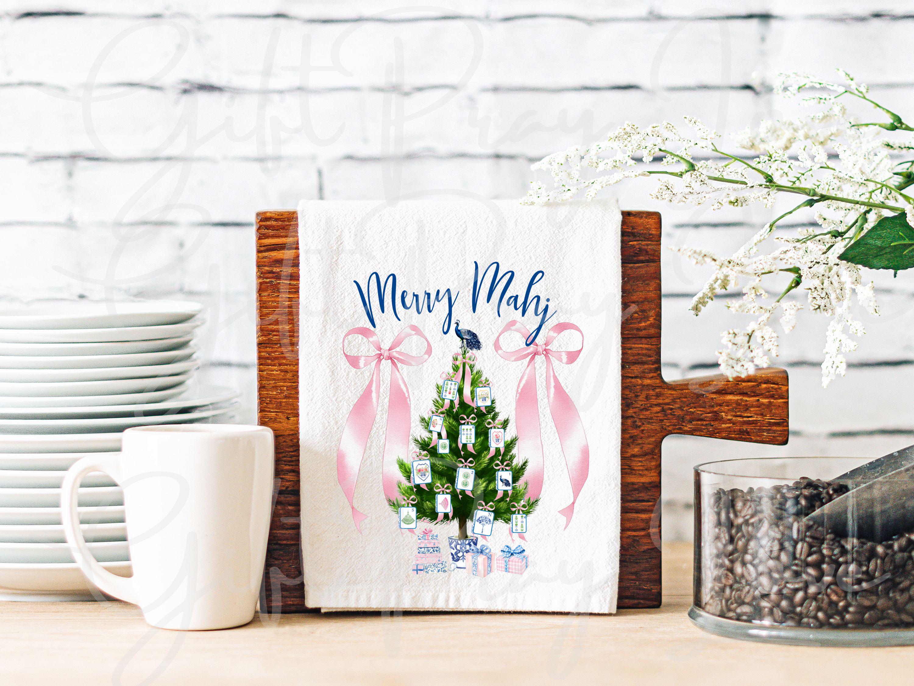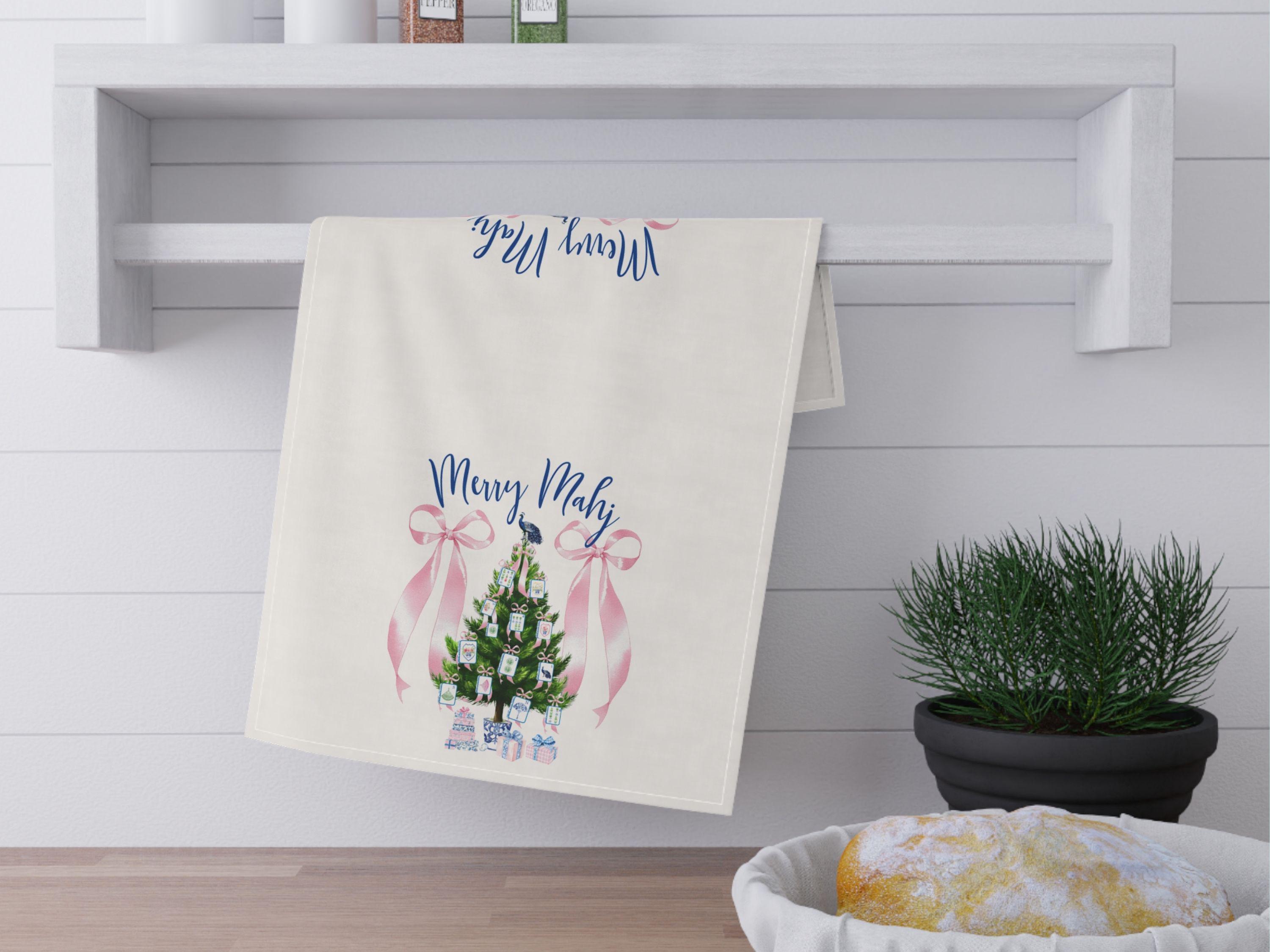 Add a dash of coquette charm and mahjong magic to your kitchen this Christmas with this darling holiday tea towel!