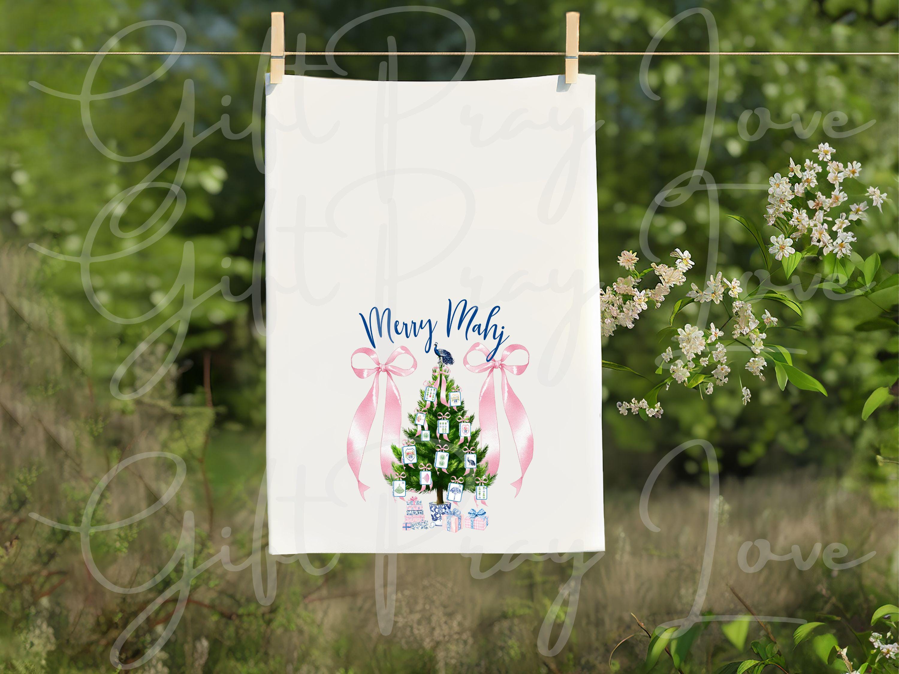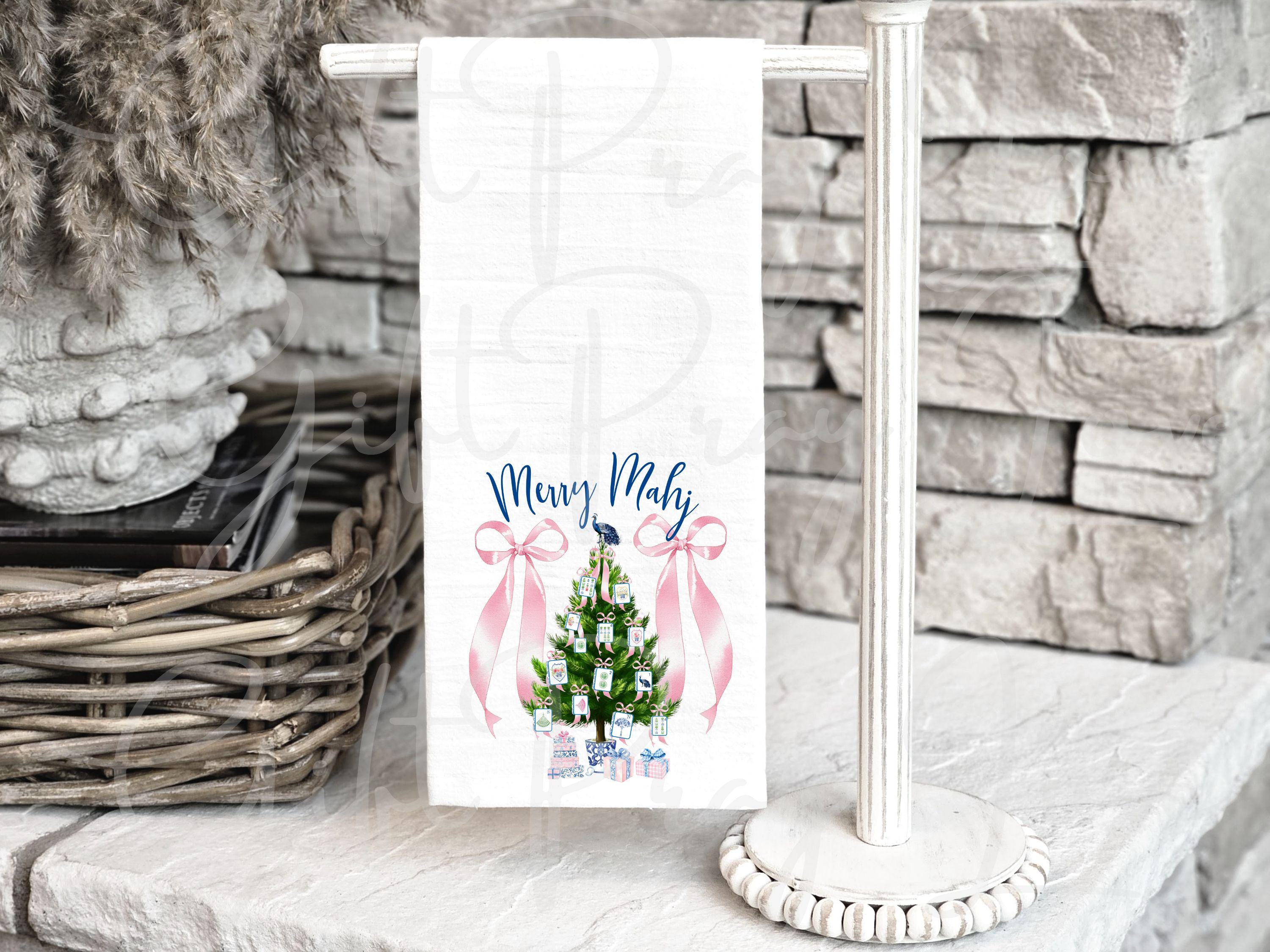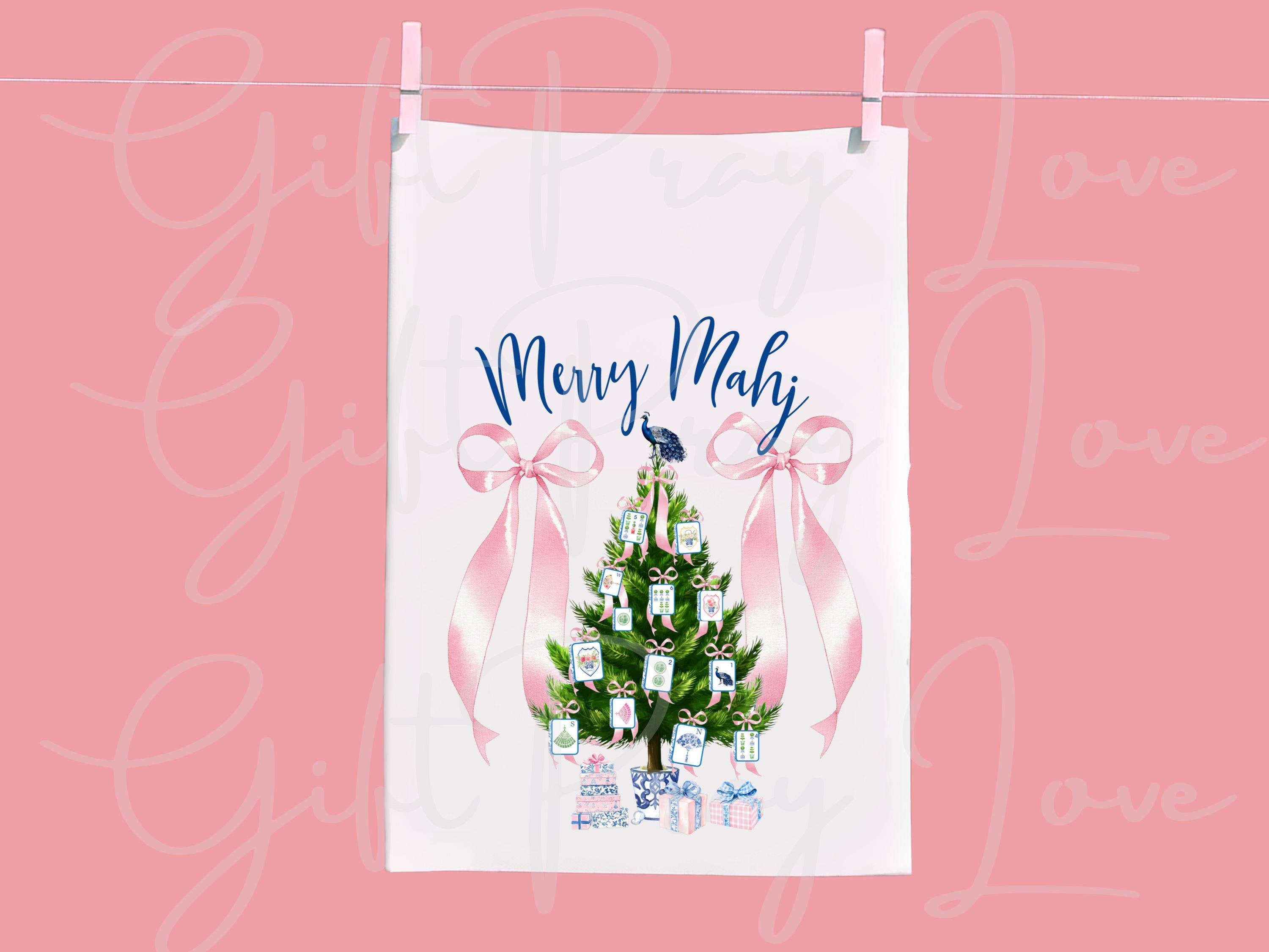 Featuring a preppy pink Christmas tree decorated with tiny mahjong tiles and bows, this towel blends chic, feminine style with a playful nod to your favorite game. Perfect for Mahjong enthusiasts who adore all things pink, preppy, and festive!