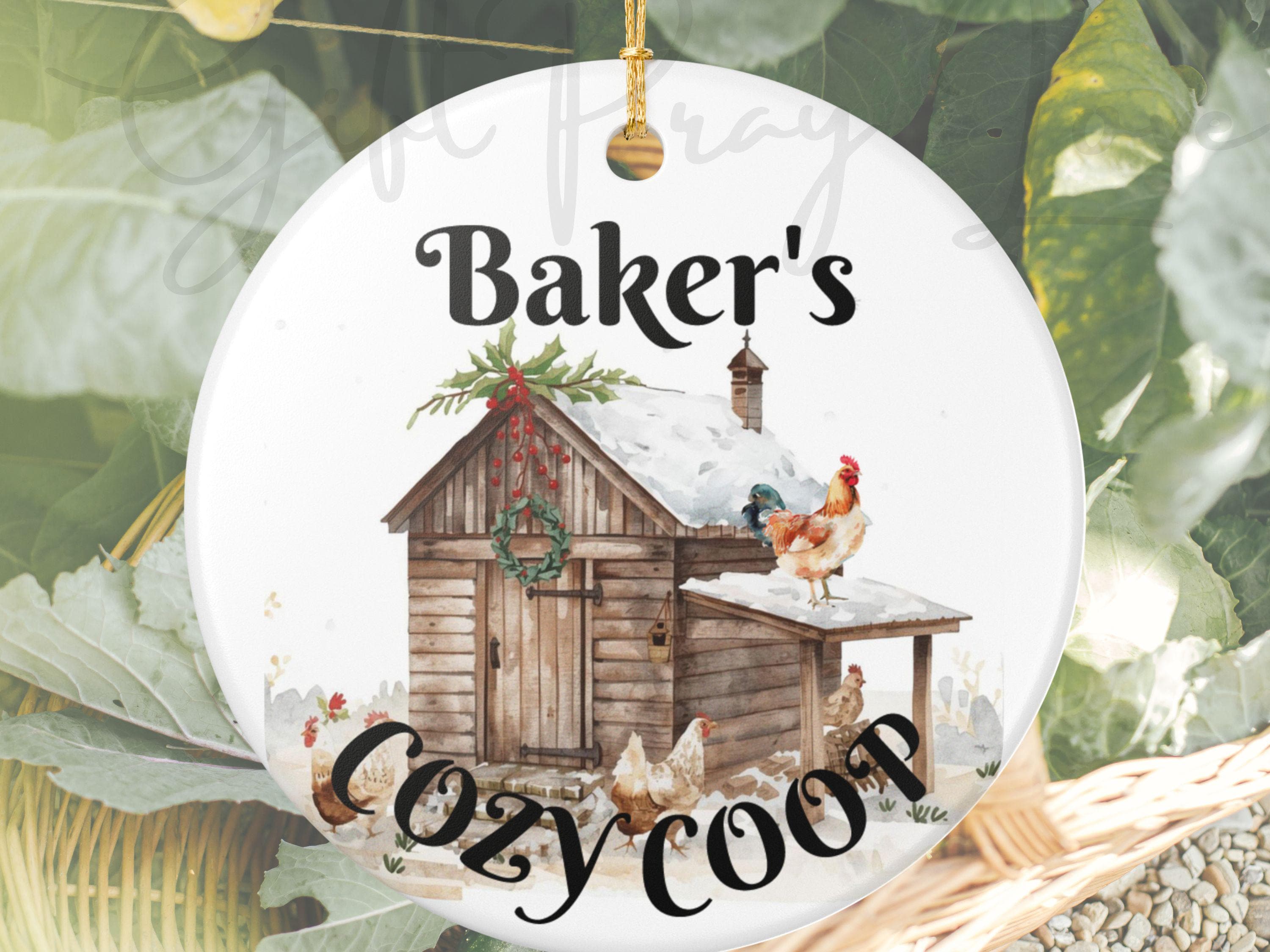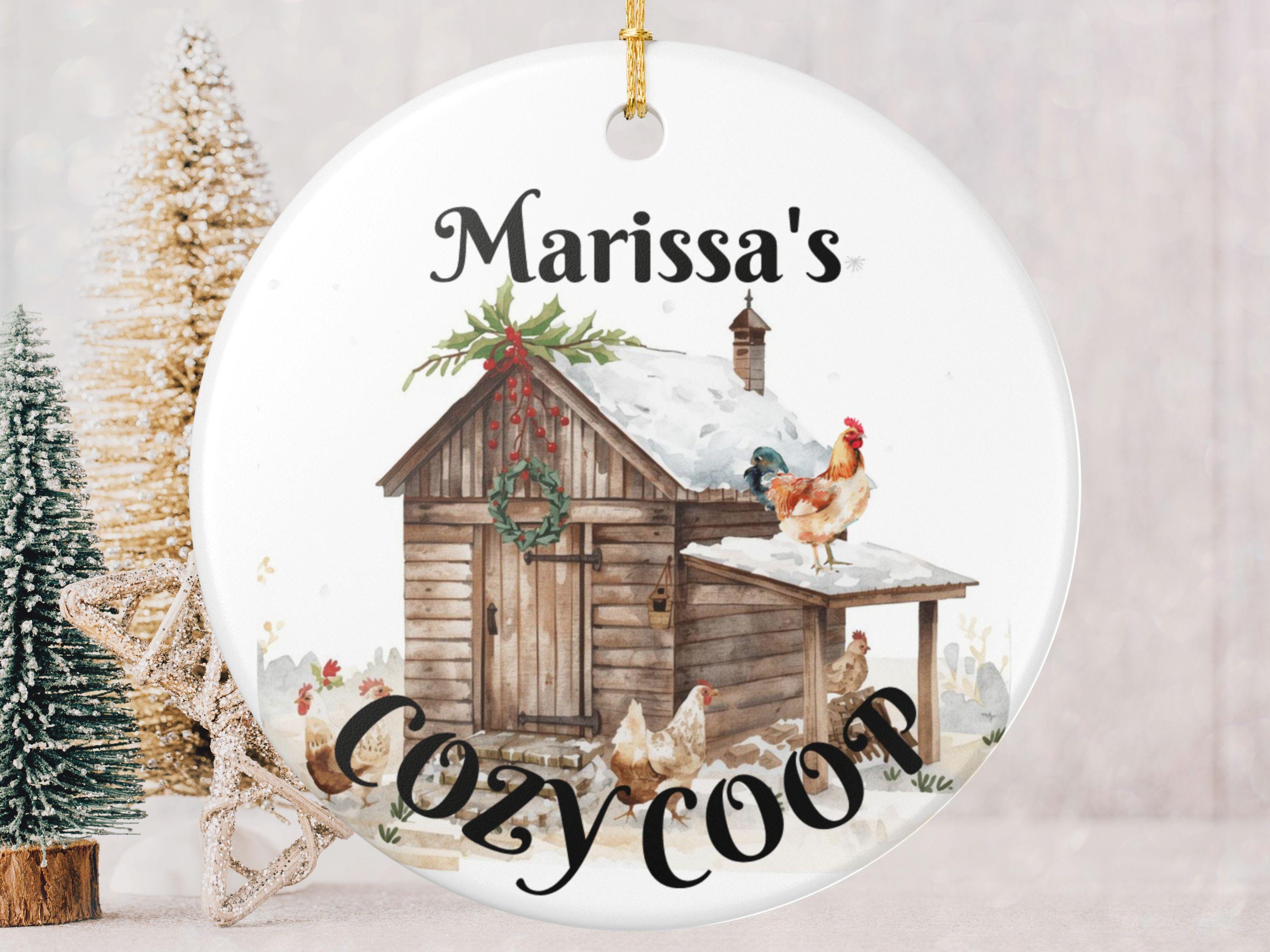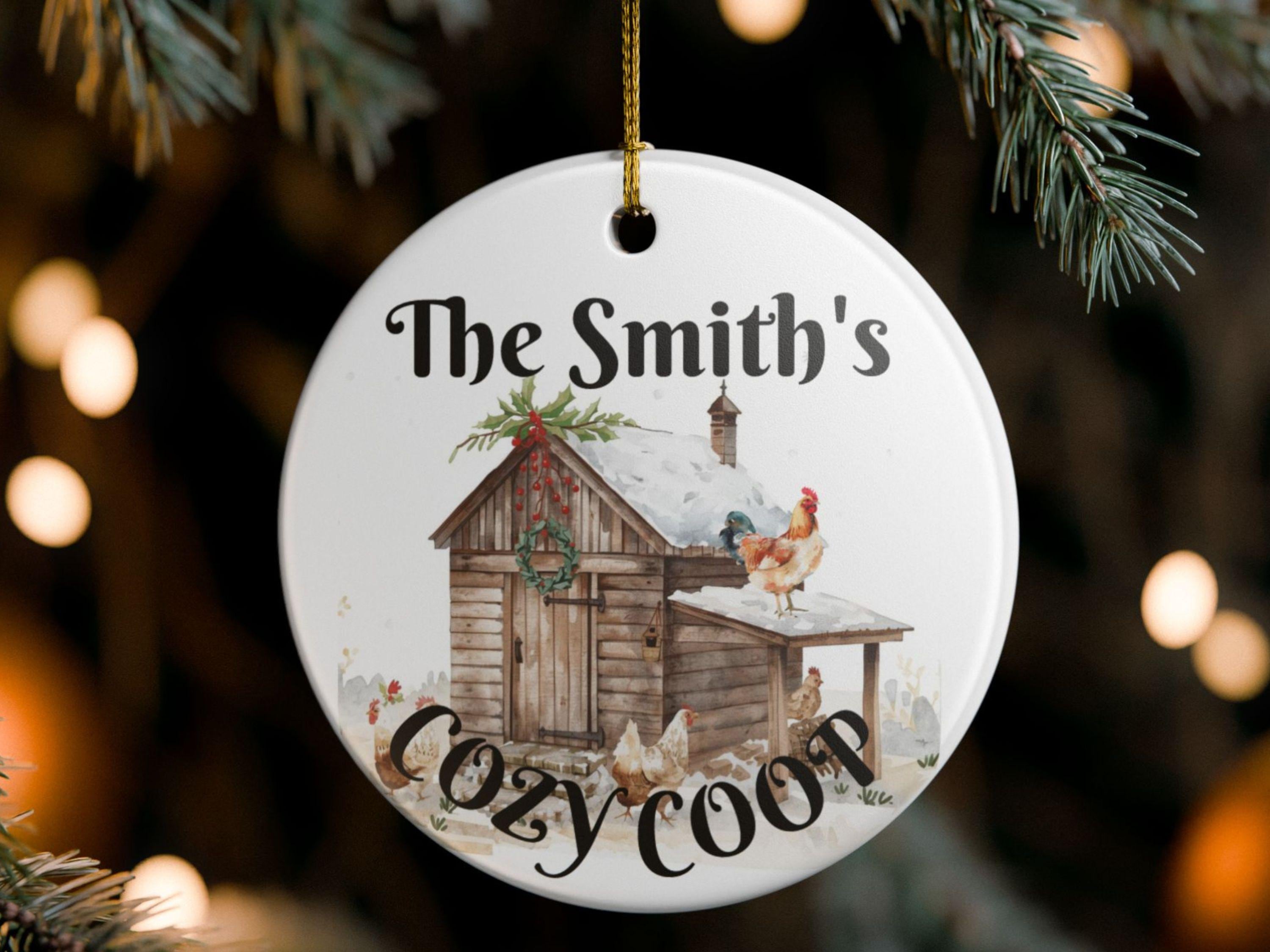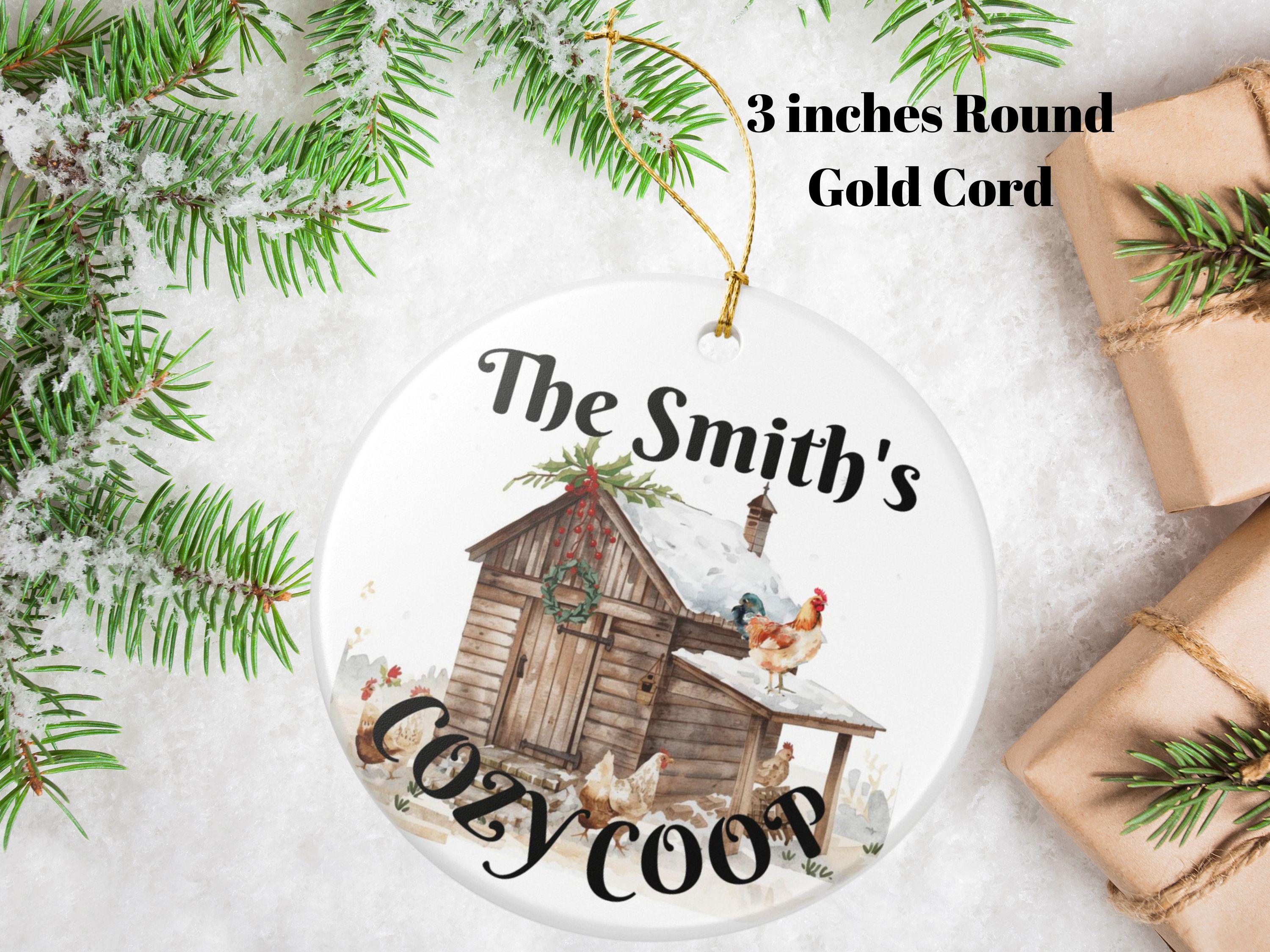 Perfect for farmhouse lovers and backyard chicken keepers, this ornament lets you add a custom name for that extra heartfelt touch. Whether it’s your family name, farm name, or a special phrase, this keepsake makes your Christmas tree feel homegrown and personal.