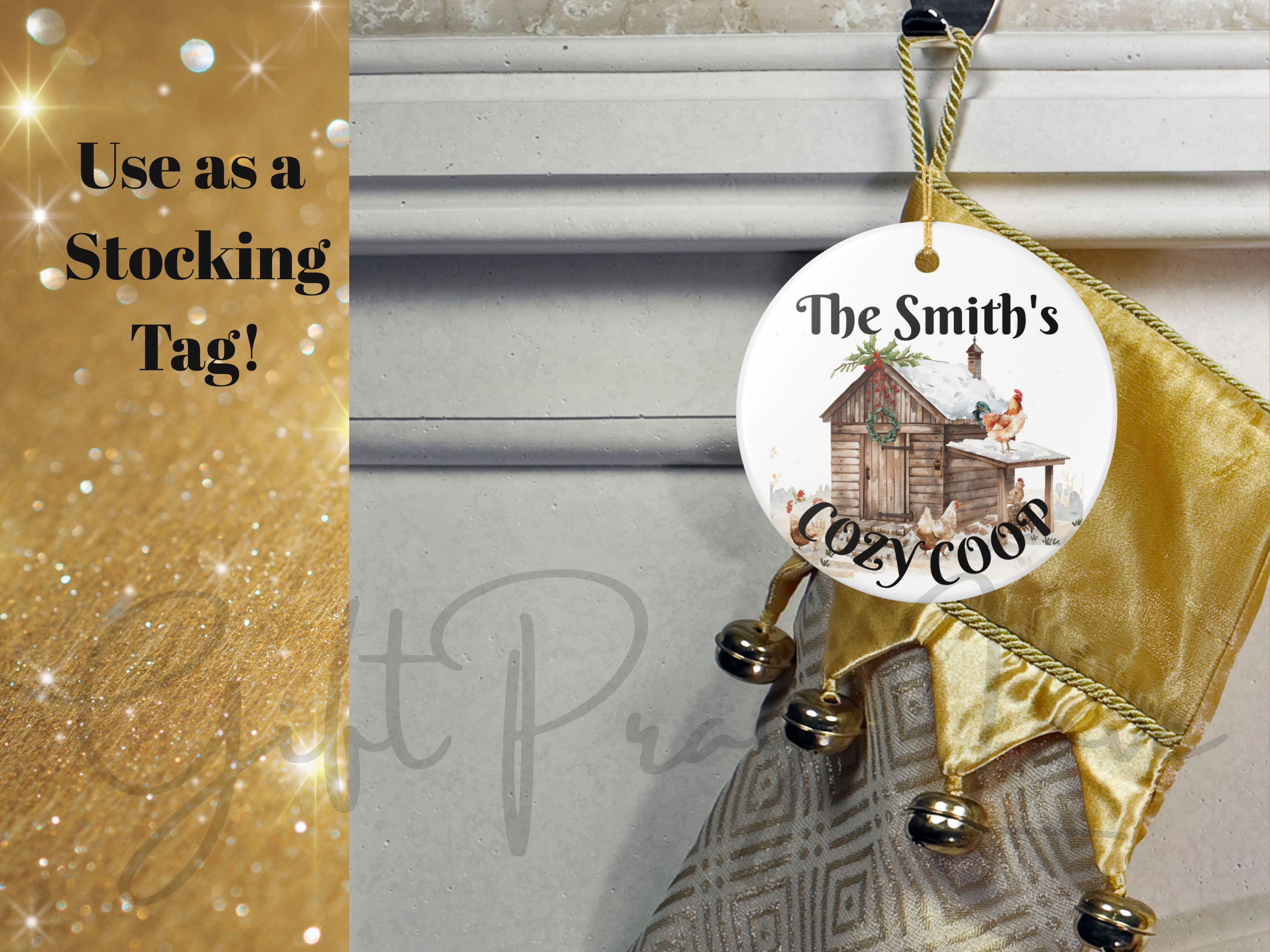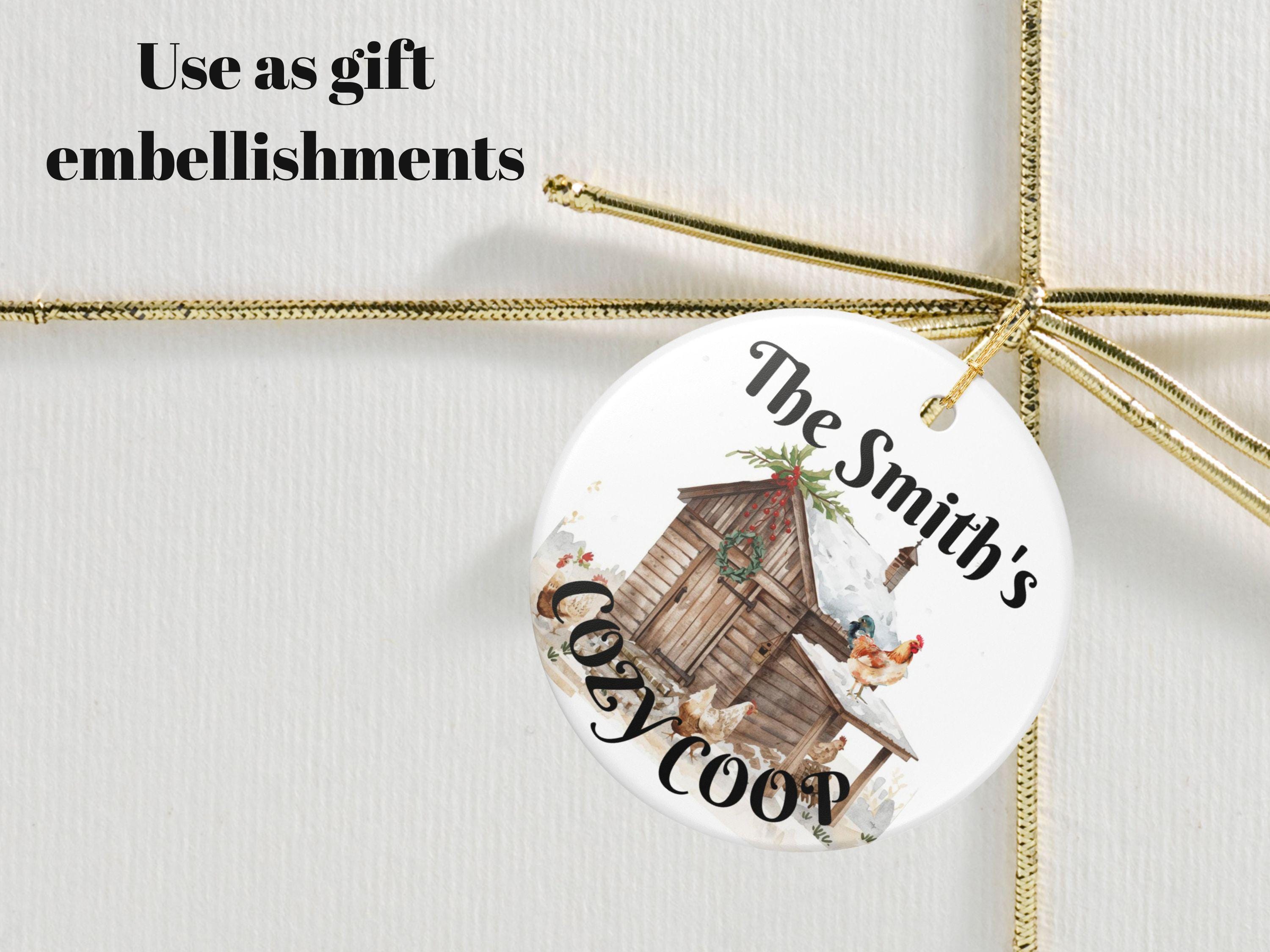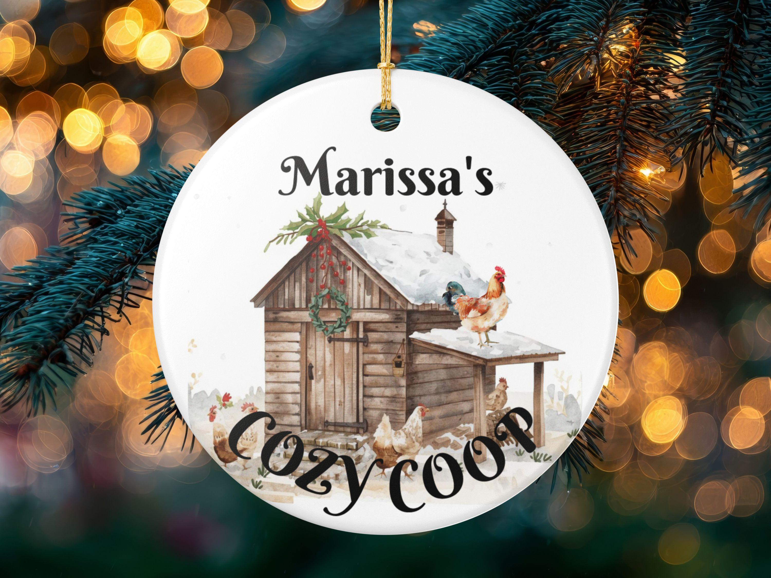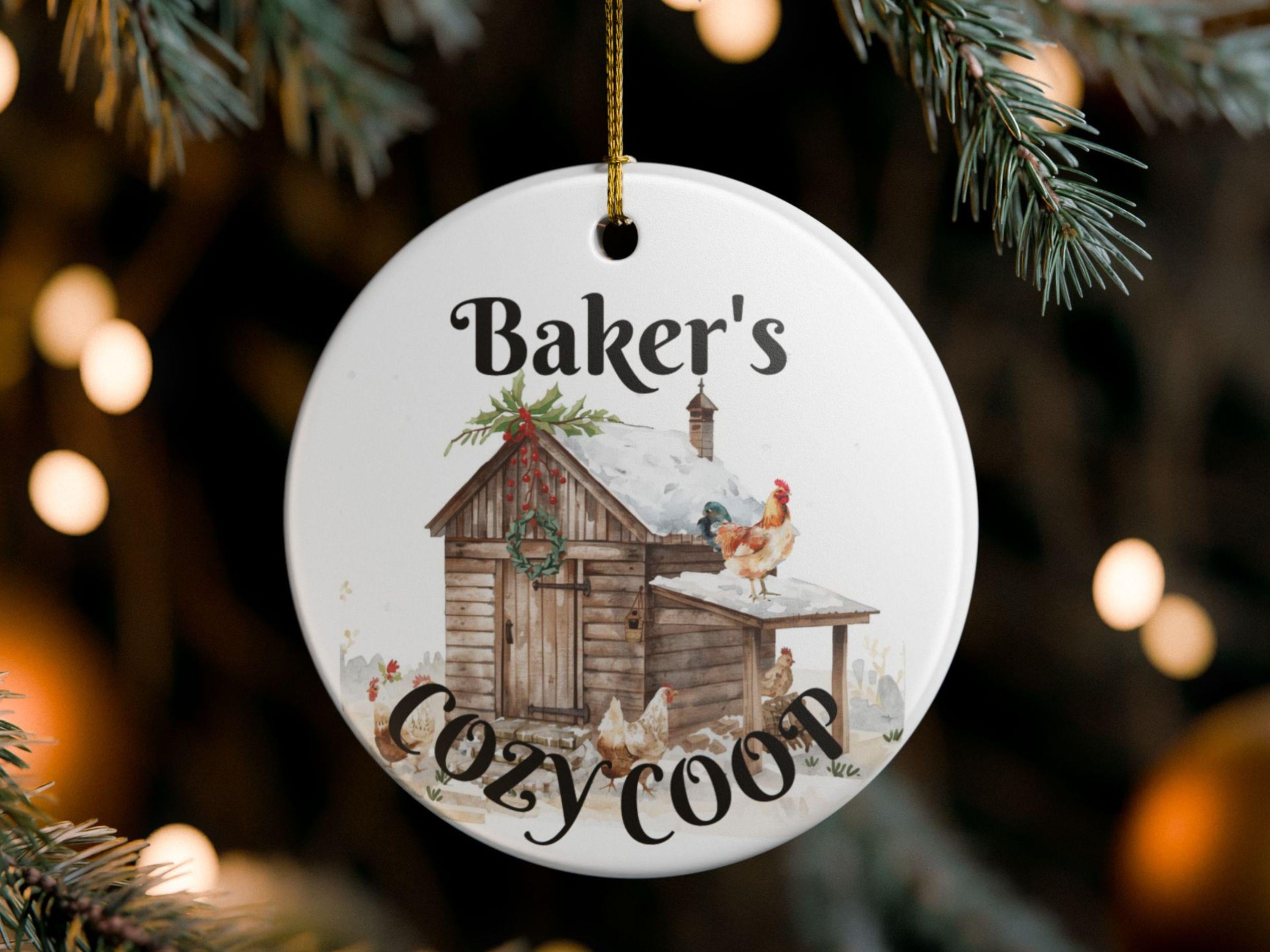 Perfect for farmhouse lovers and backyard chicken keepers, this ornament lets you add a custom name for that extra heartfelt touch. Whether it’s your family name, farm name, or a special phrase, this keepsake makes your Christmas tree feel homegrown and personal.