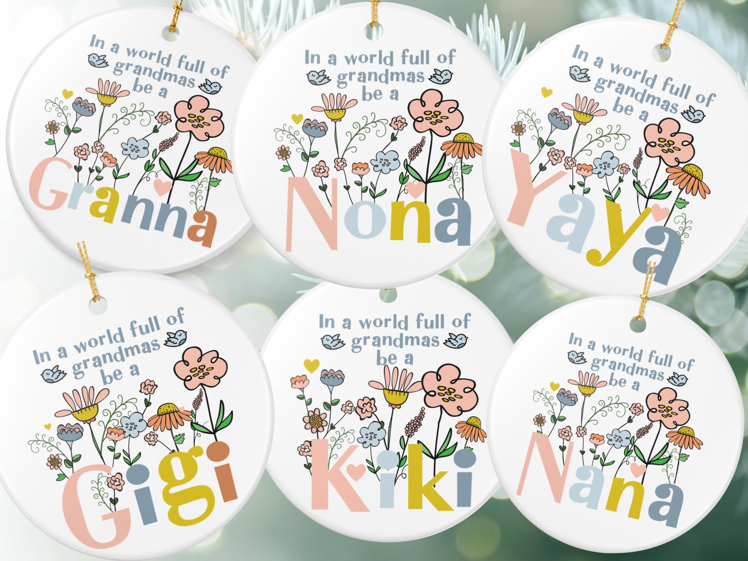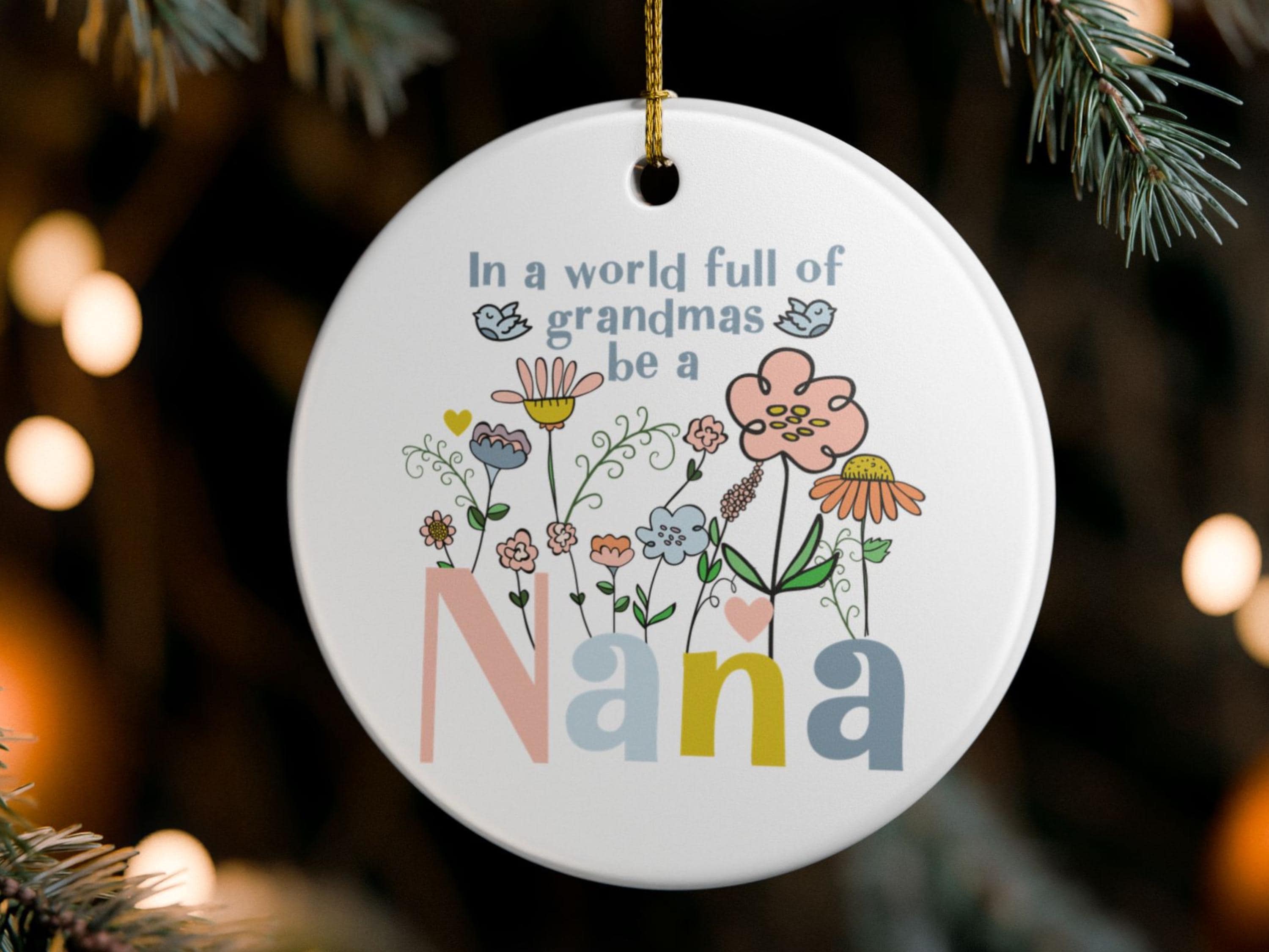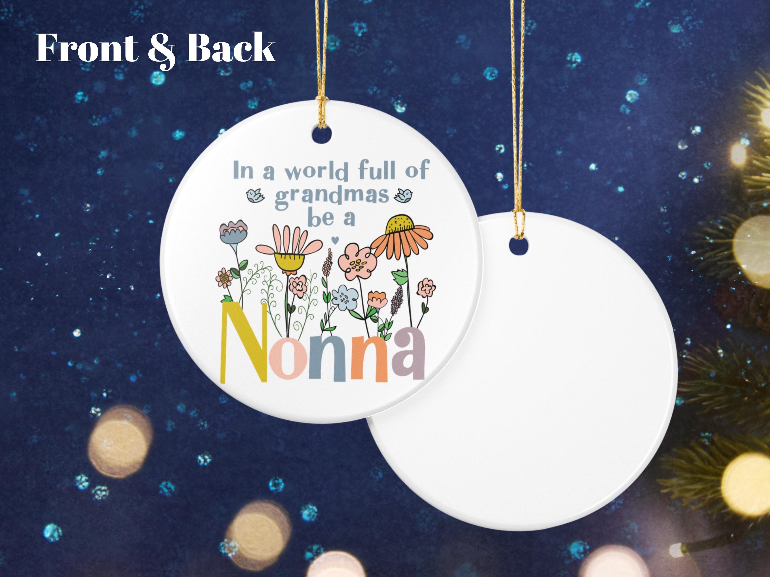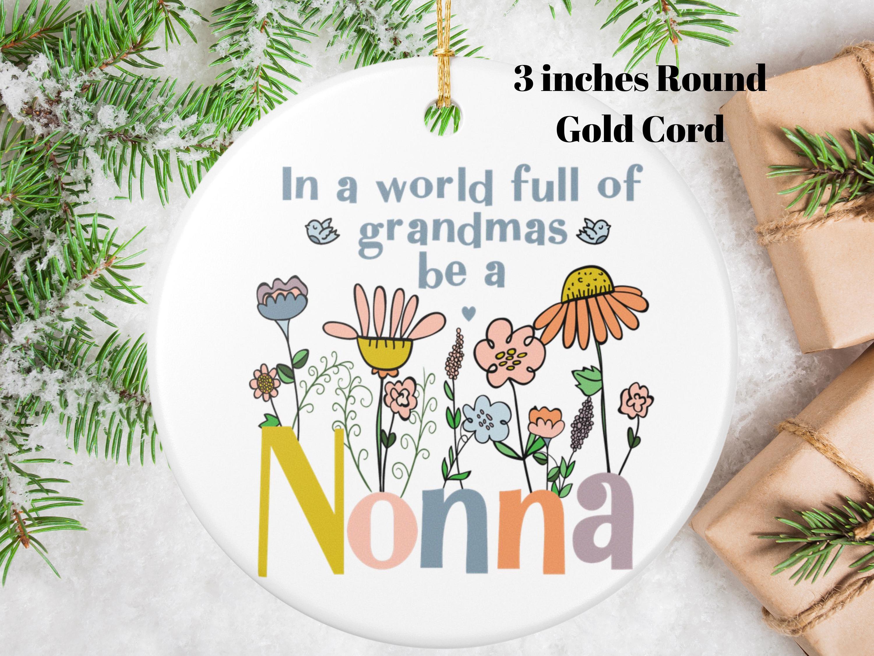 Celebrate your favorite Nonna with this charming floral ornament that says “In a world full of grandmas, be a Nonna.” Featuring a soft watercolor flower background and elegant script lettering, this keepsake makes a thoughtful Christmas gift for the grandmother who loves being called Nonna. Perfect for hanging on the Christmas tree or displaying year-round, this ornament adds warmth, personality, and love to every holiday season.