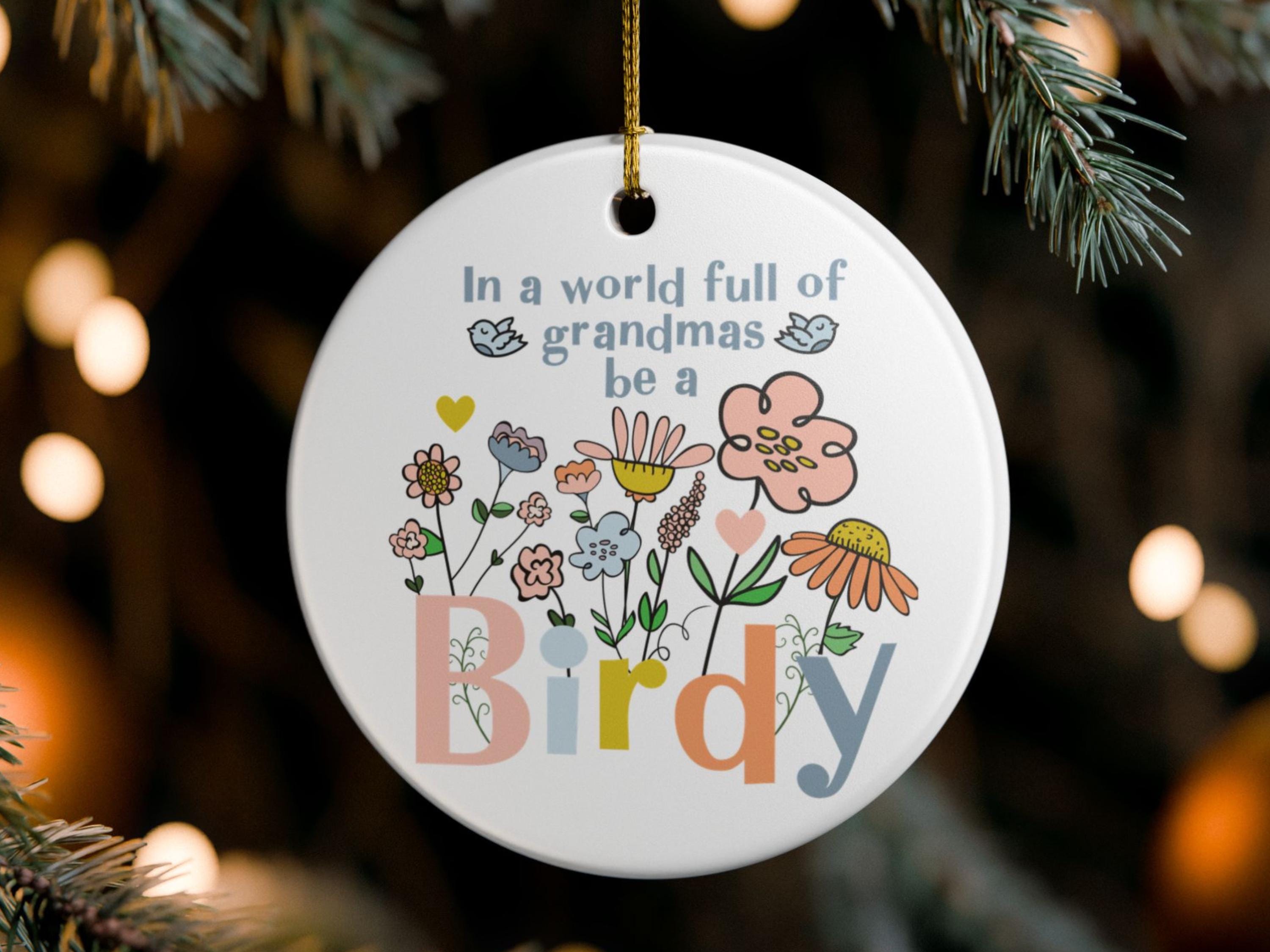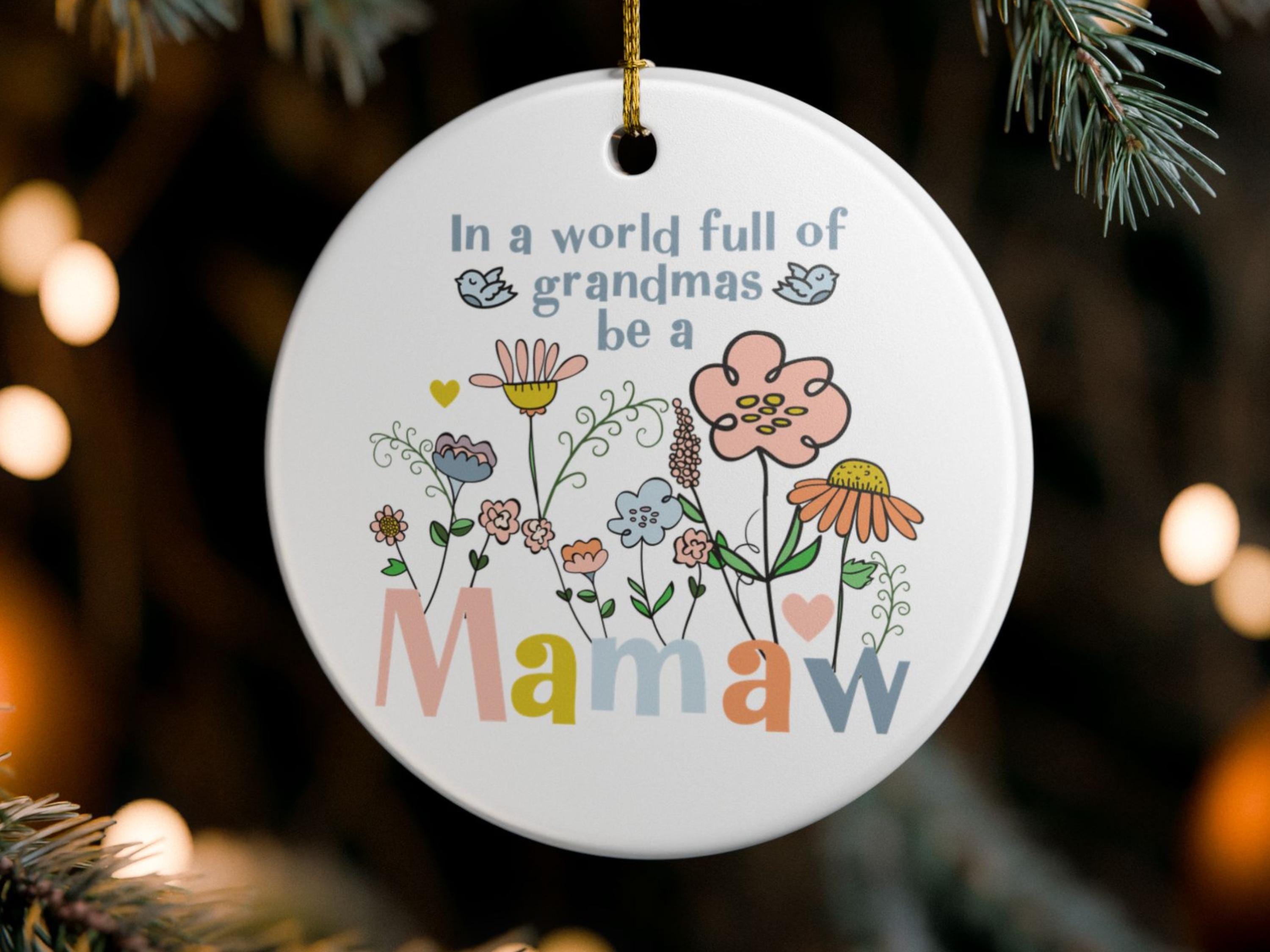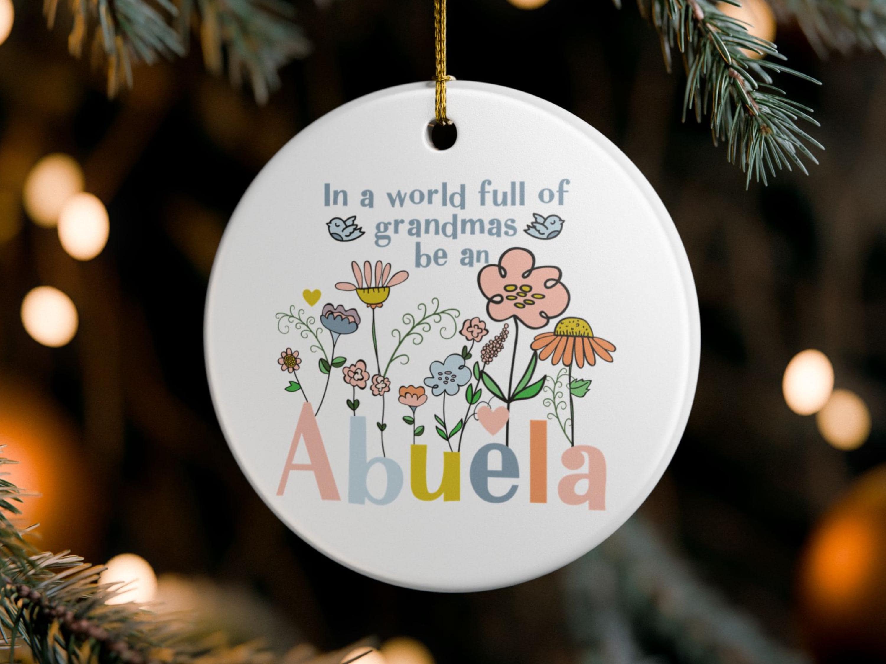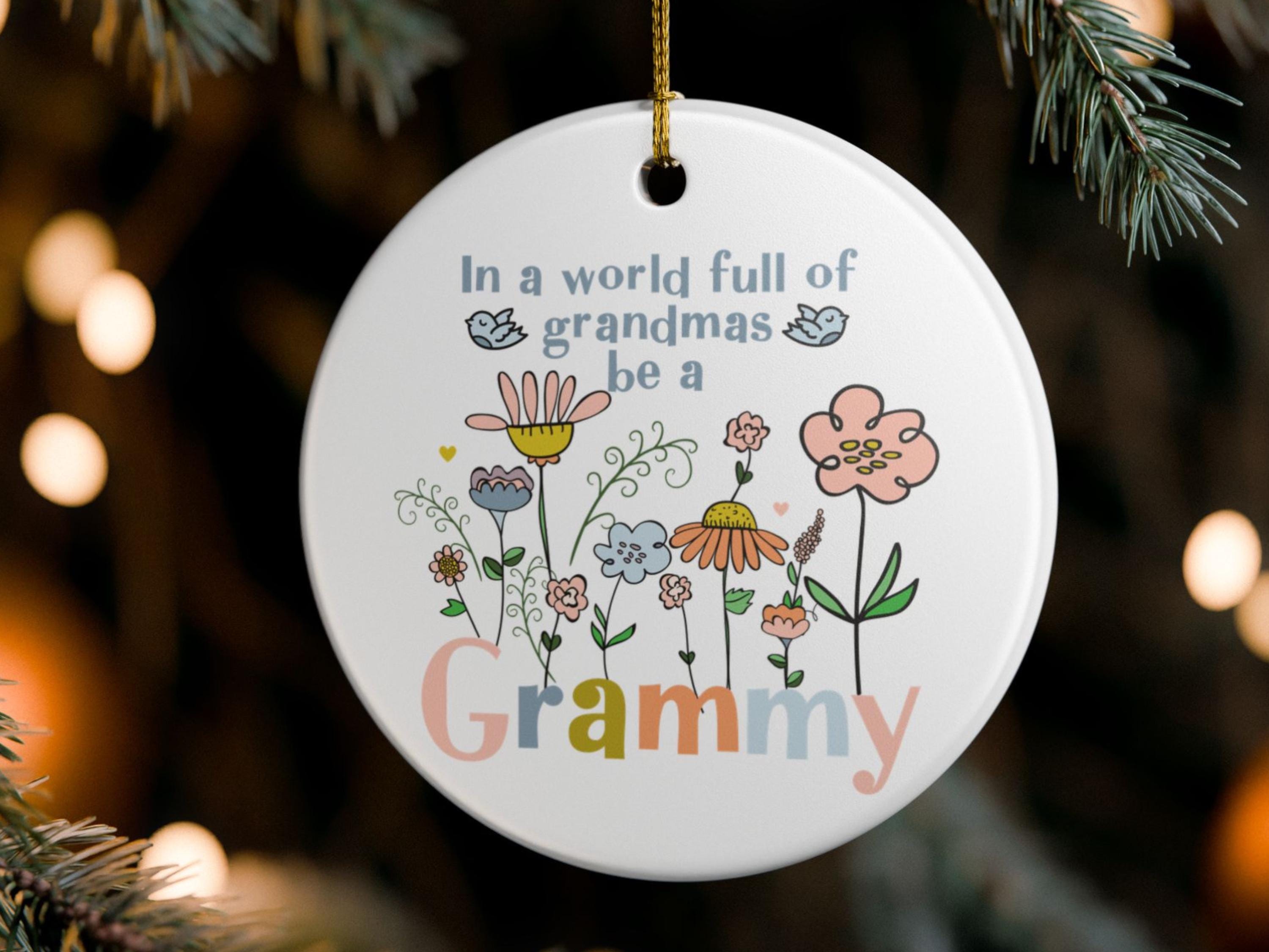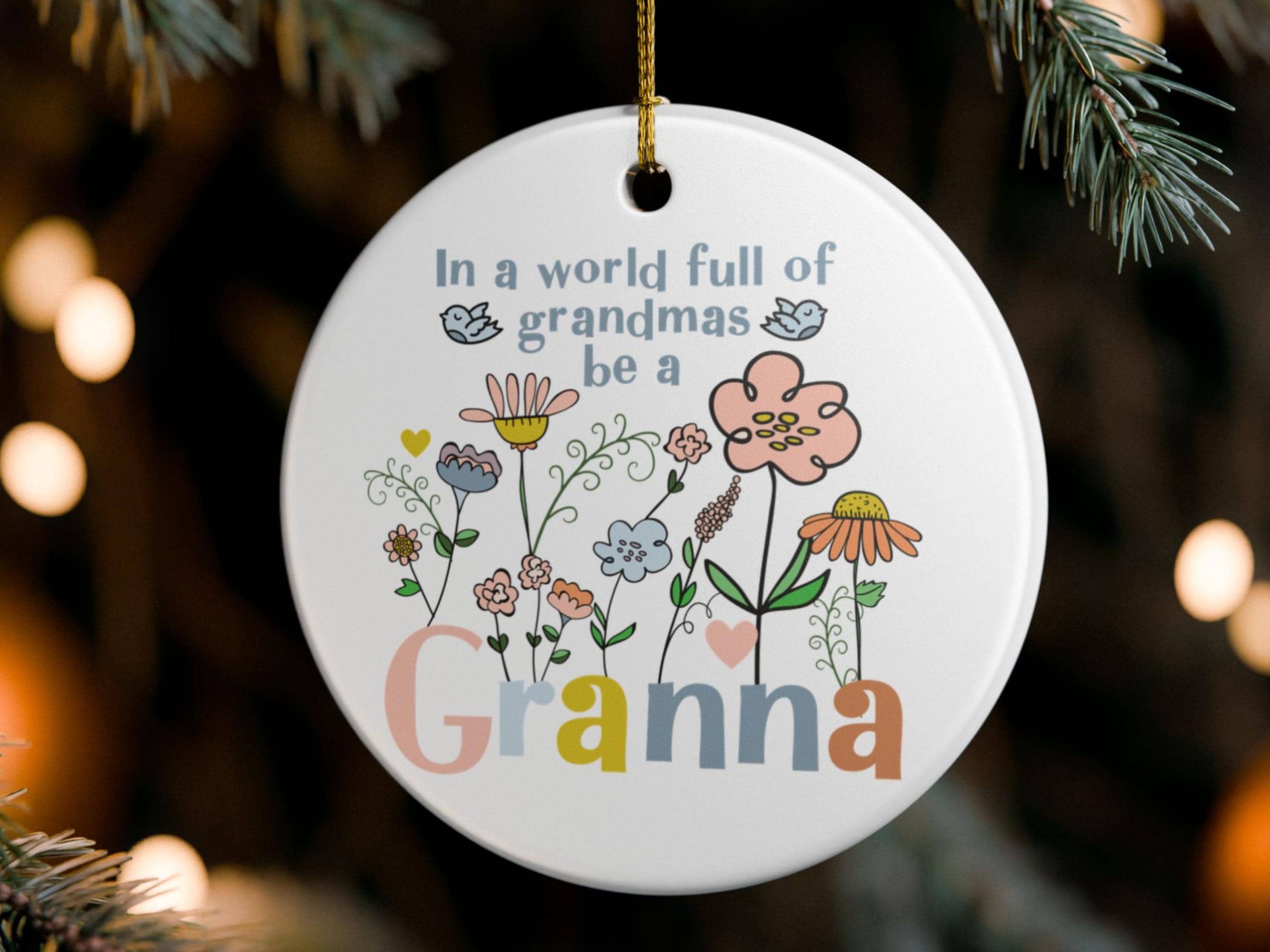 Celebrate your favorite Nonna with this charming floral ornament that says “In a world full of grandmas, be a Nonna.” Featuring a soft watercolor flower background and elegant script lettering, this keepsake makes a thoughtful Christmas gift for the grandmother who loves being called Nonna. Perfect for hanging on the Christmas tree or displaying year-round, this ornament adds warmth, personality, and love to every holiday season.