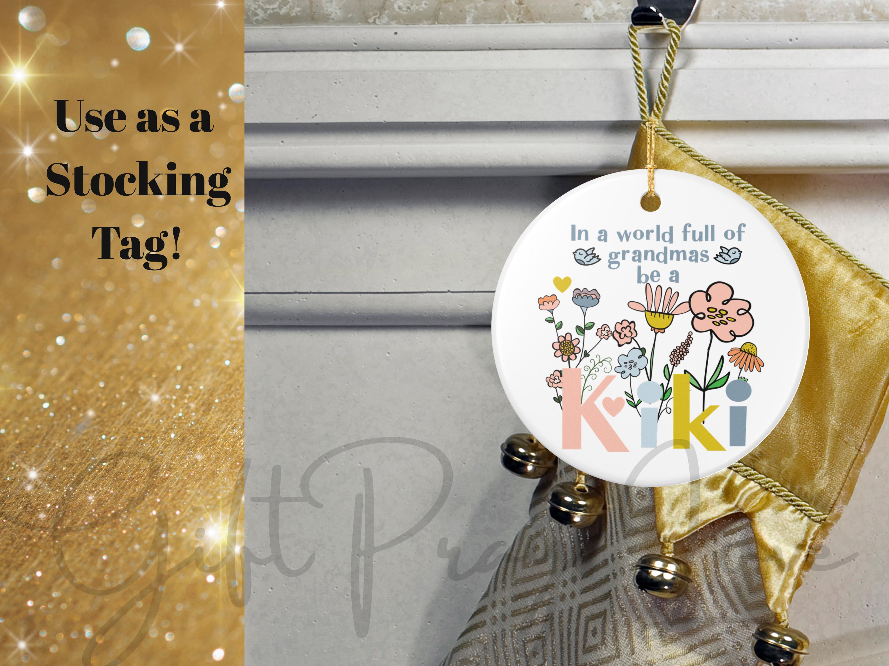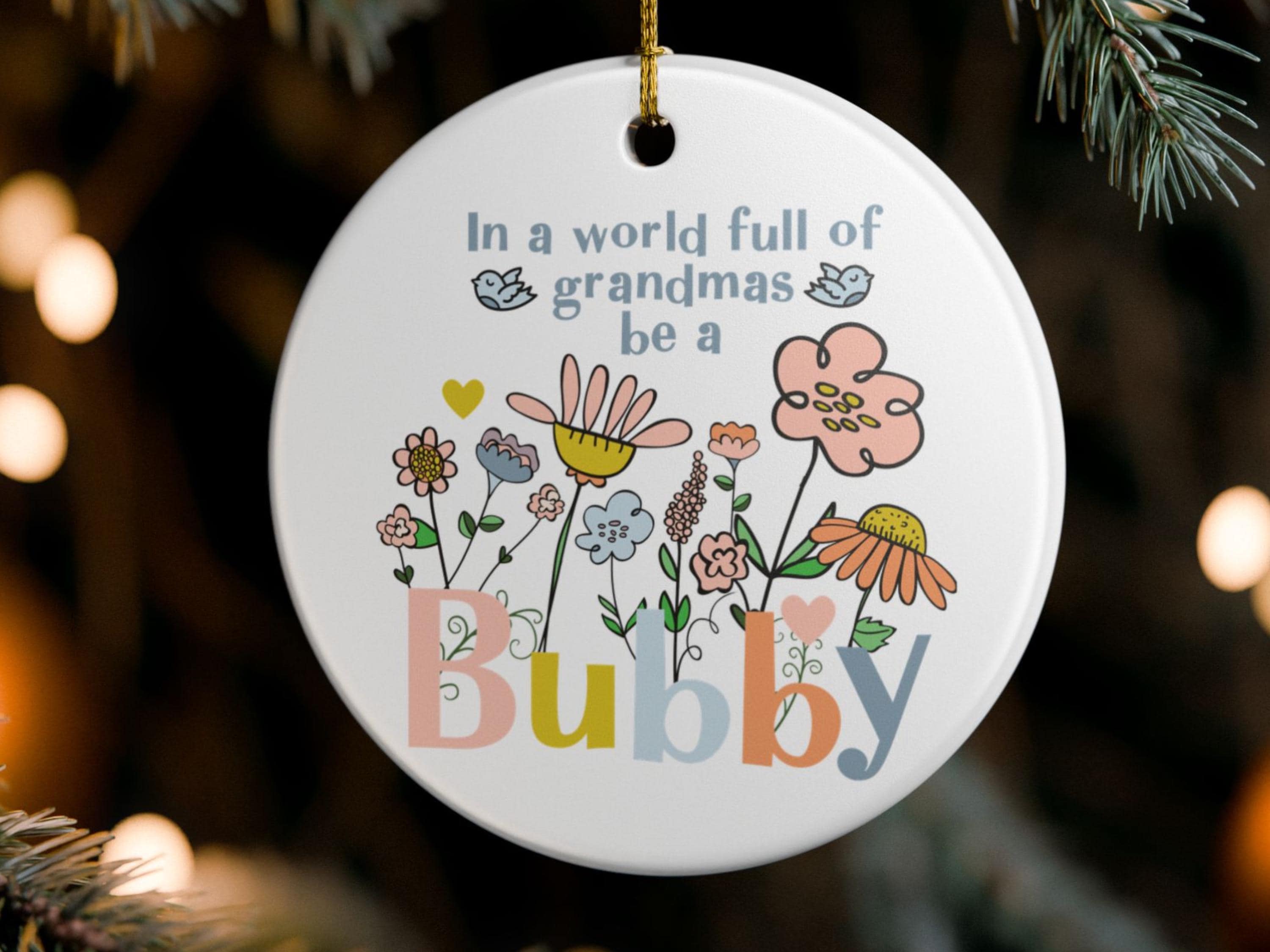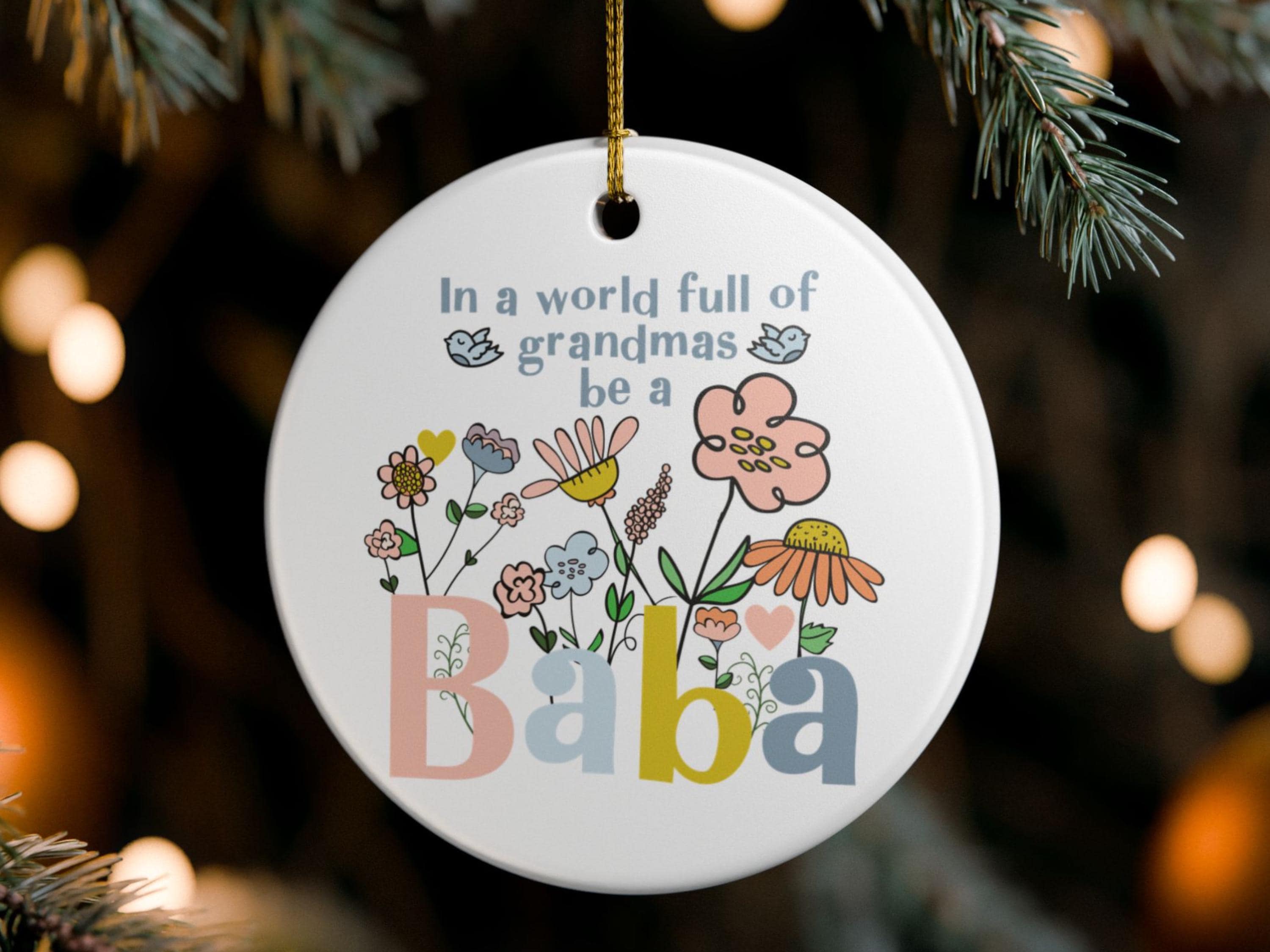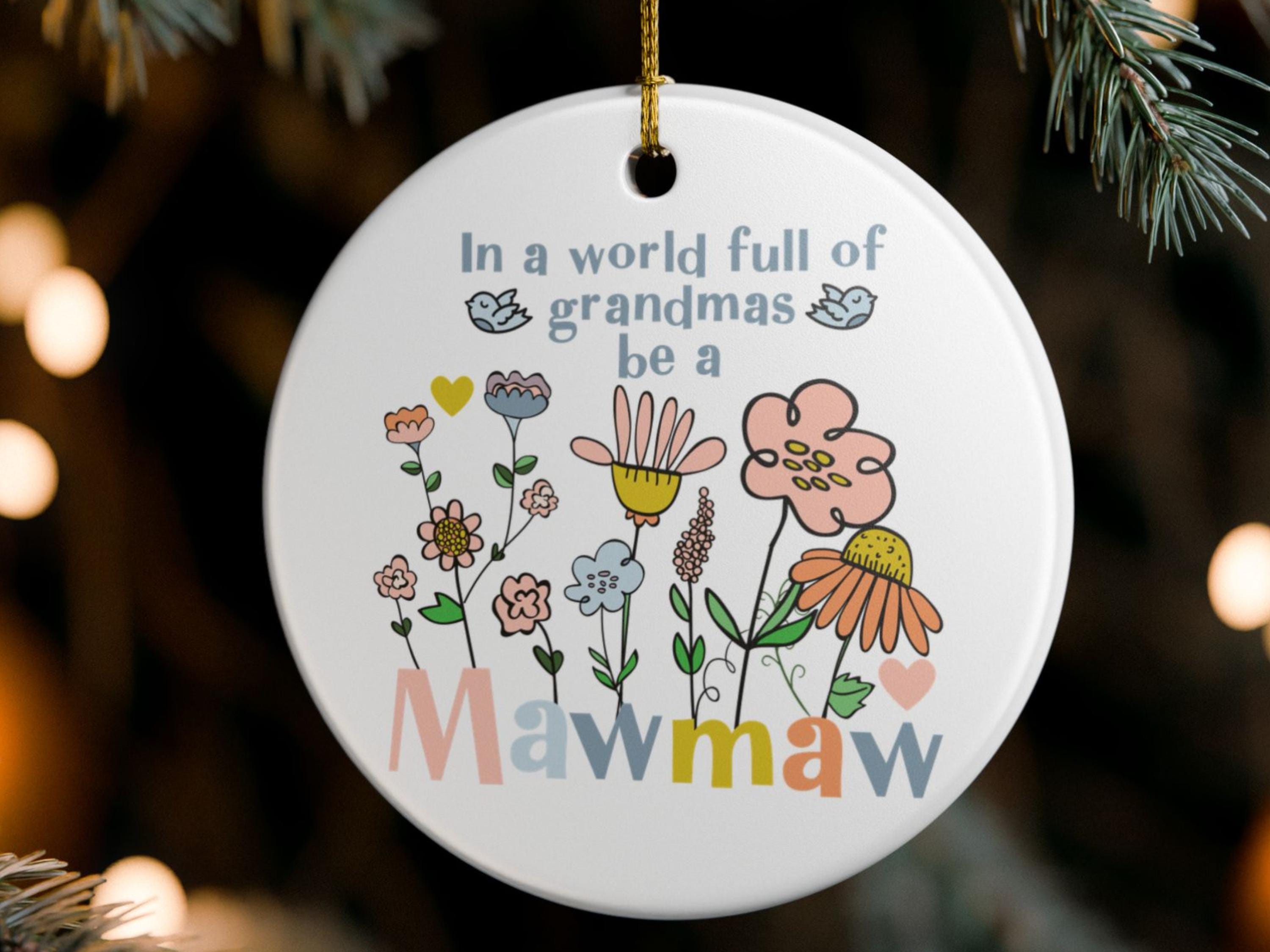 Celebrate your favorite Nonna with this charming floral ornament that says “In a world full of grandmas, be a Nonna.” Featuring a soft watercolor flower background and elegant script lettering, this keepsake makes a thoughtful Christmas gift for the grandmother who loves being called Nonna. Perfect for hanging on the Christmas tree or displaying year-round, this ornament adds warmth, personality, and love to every holiday season.