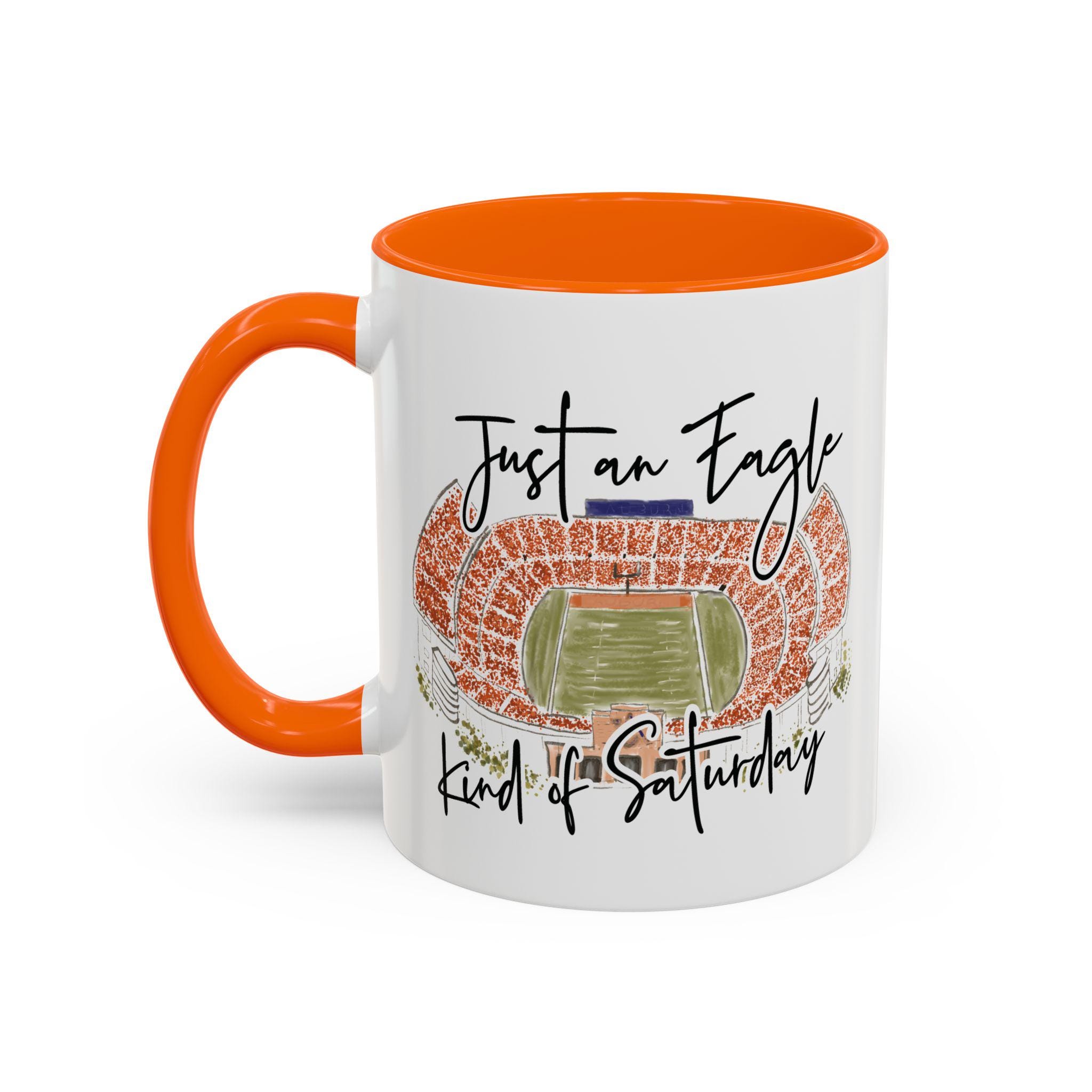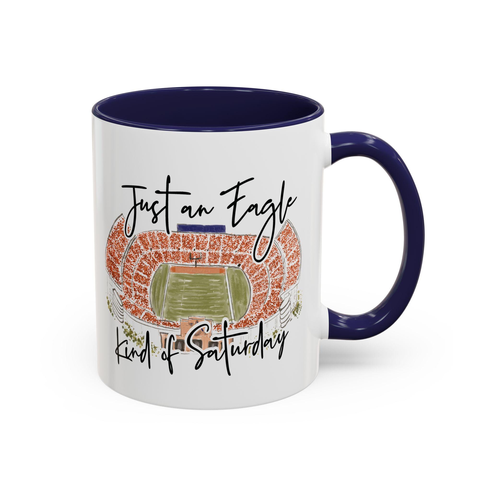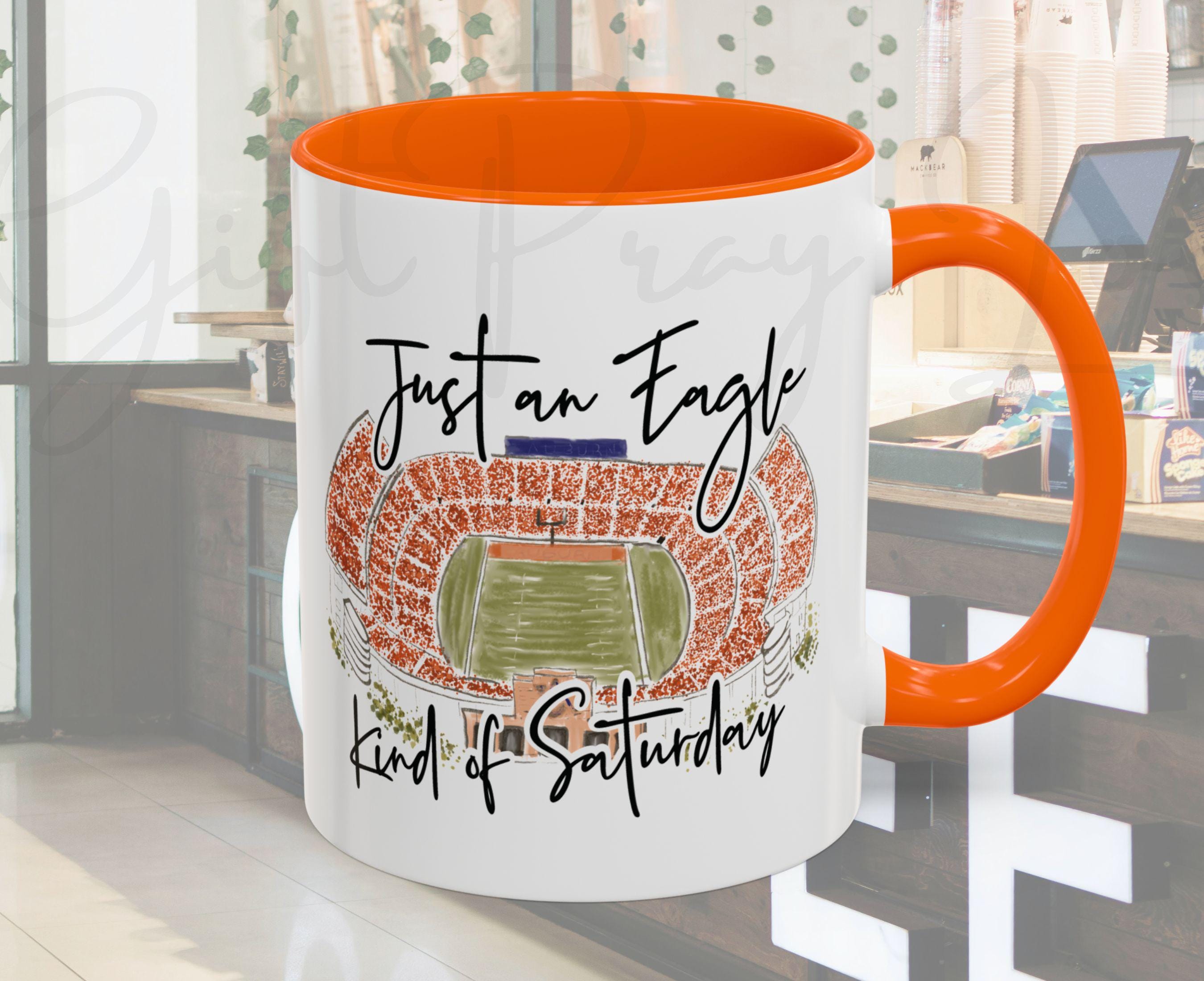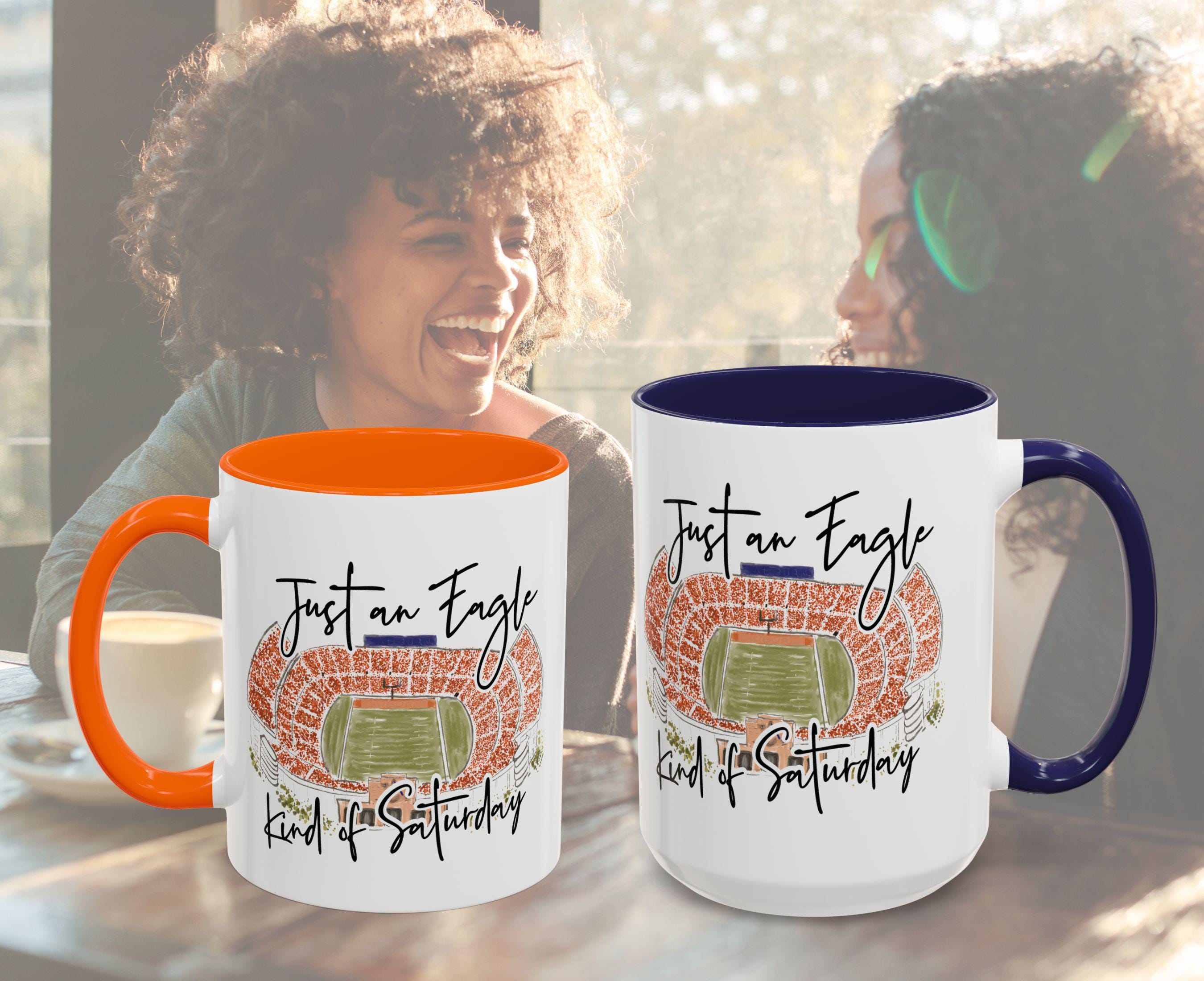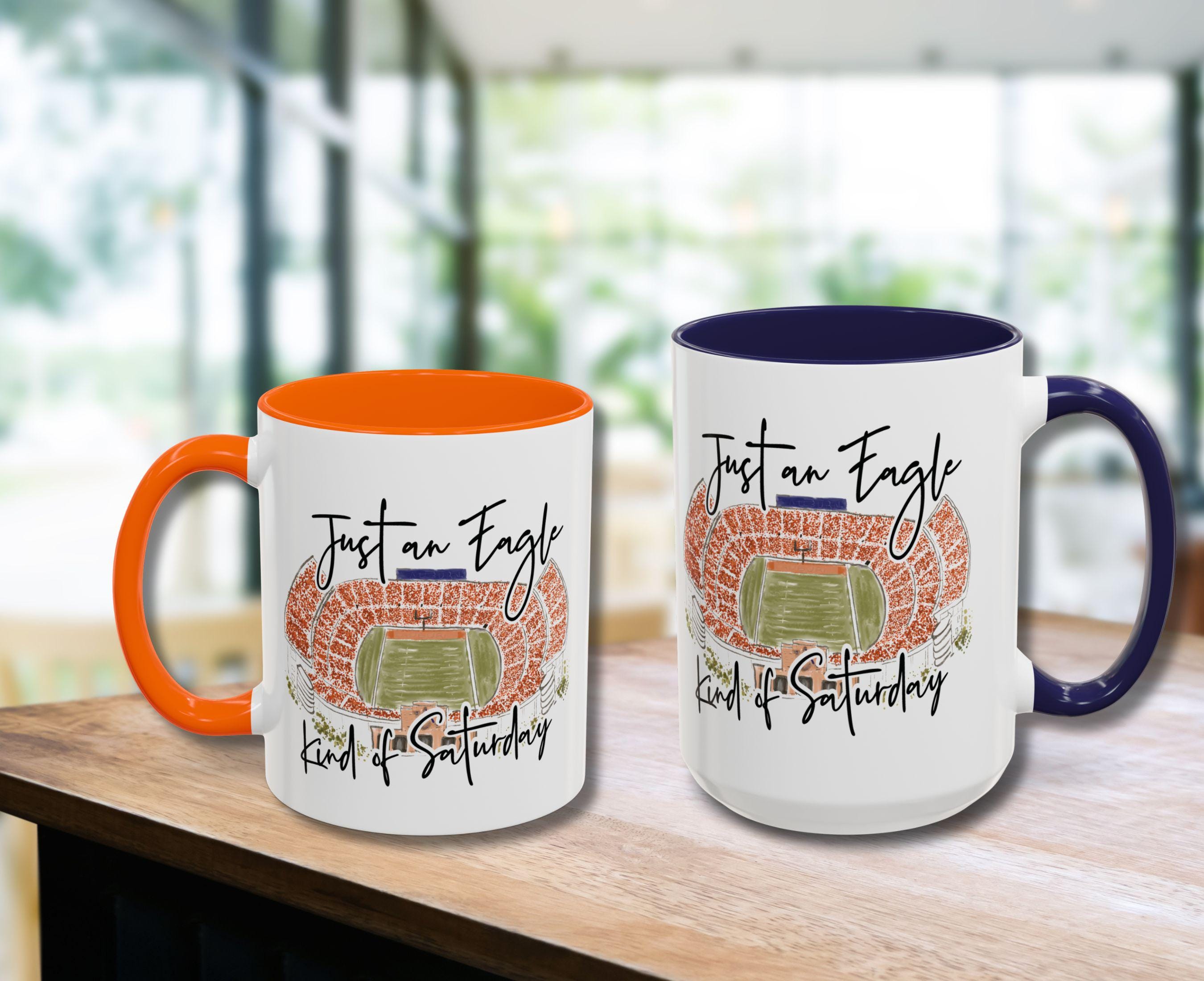 This vibrant ceramic mug brings game-day energy to every morning coffee or afternoon tea. The glossy white exterior paired with a colored interior and handle makes the illustrated stadium artwork pop — a casual, hand-painted look with the playful phrase “Just an Eagle kind of Saturday.” It feels like a slow walk into the stands: sun-warmed concrete, the distant roar of the crowd, and the ritual of a warm cup in your hands. Lightweight but sturdy, it fits easily into daily routines for fans who celebrate Saturdays with friends, tailgates, or quiet at-home rituals. The bold color contrast adds a bit of personality to your mug rack and keeps the vibe lively through repeat use and washes.