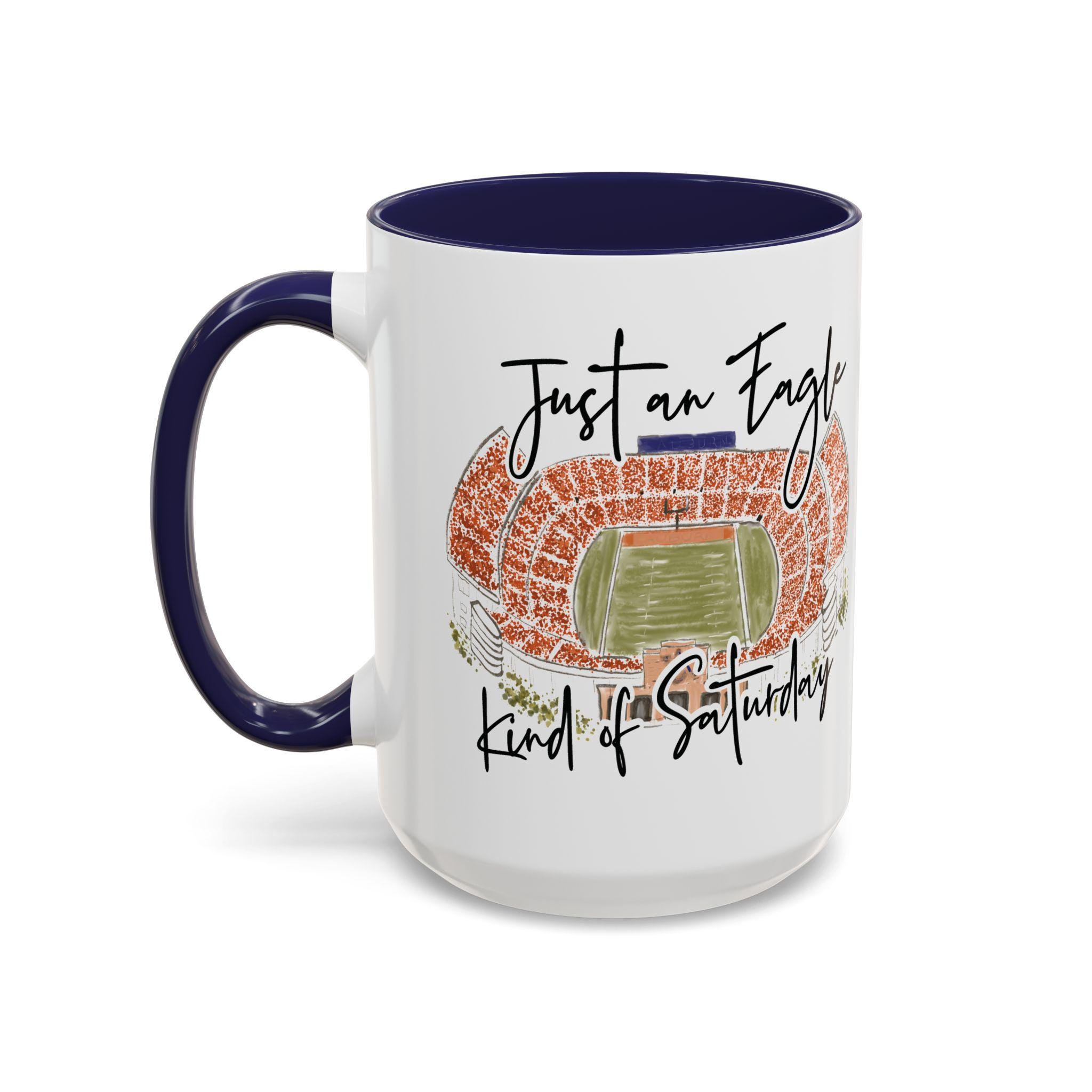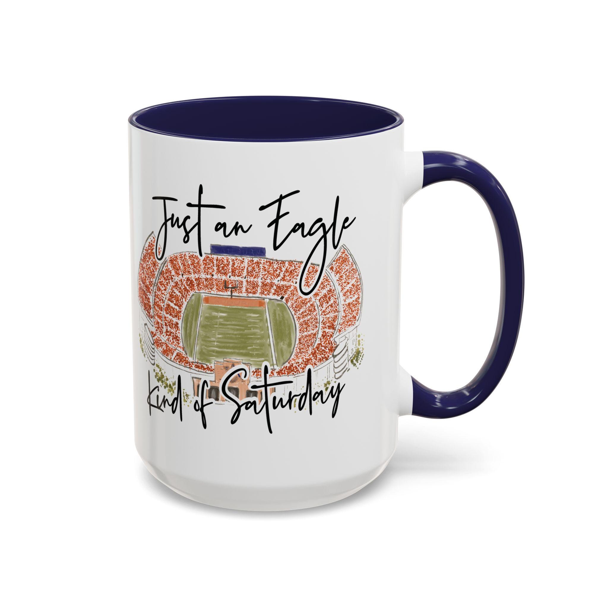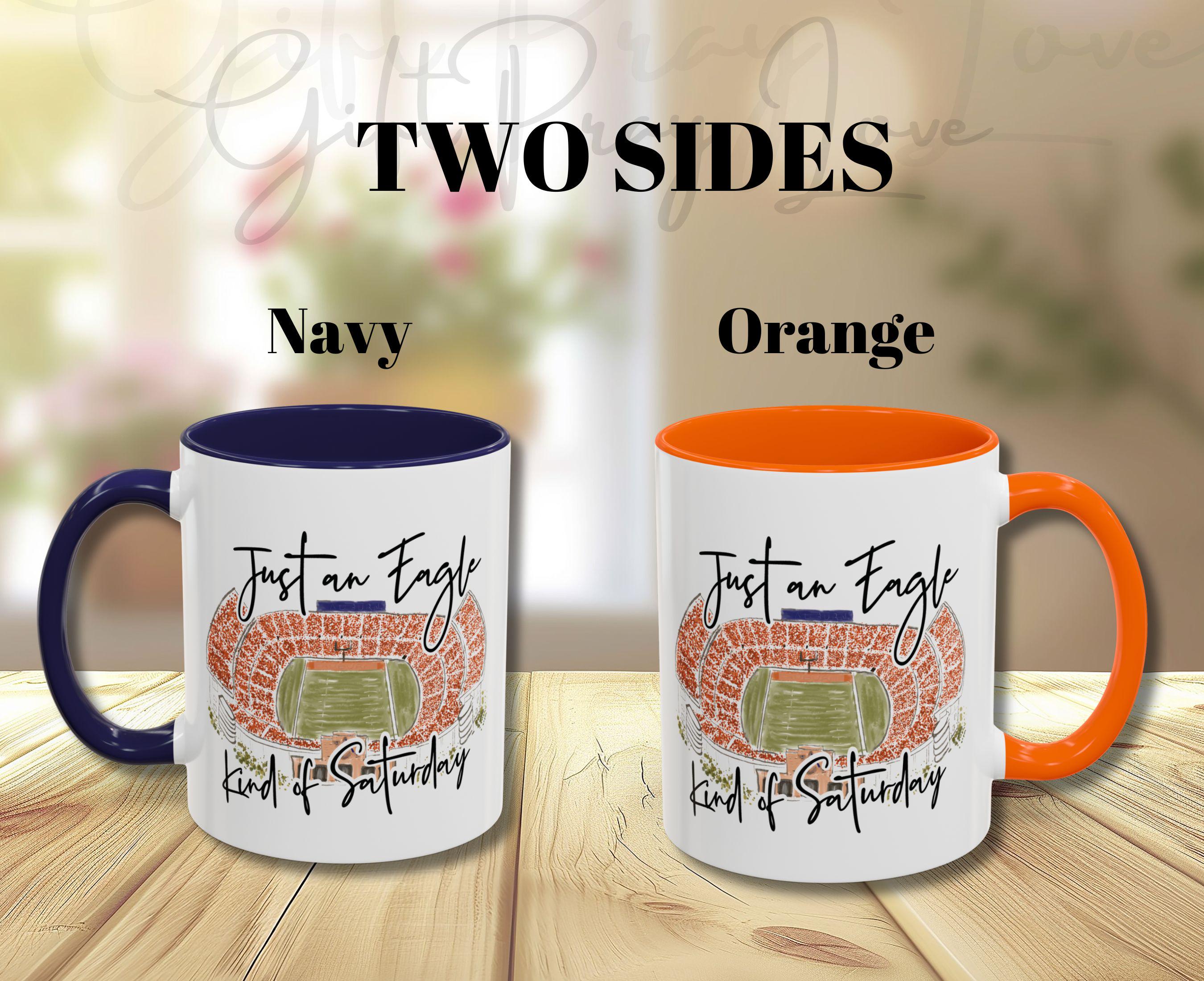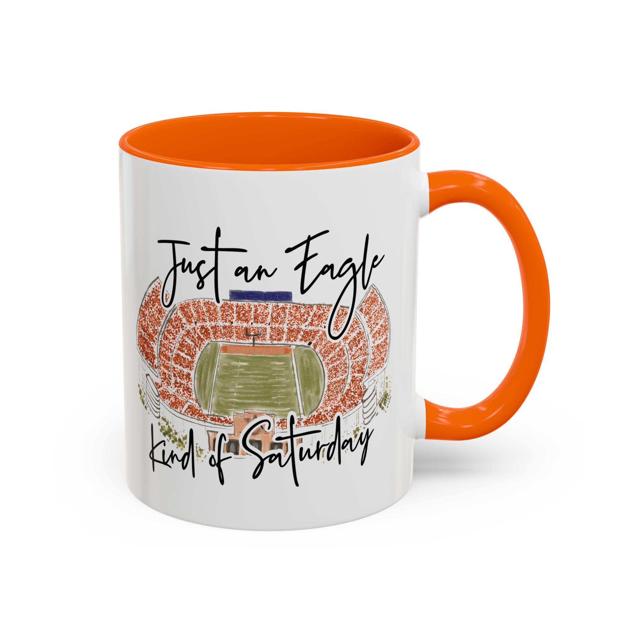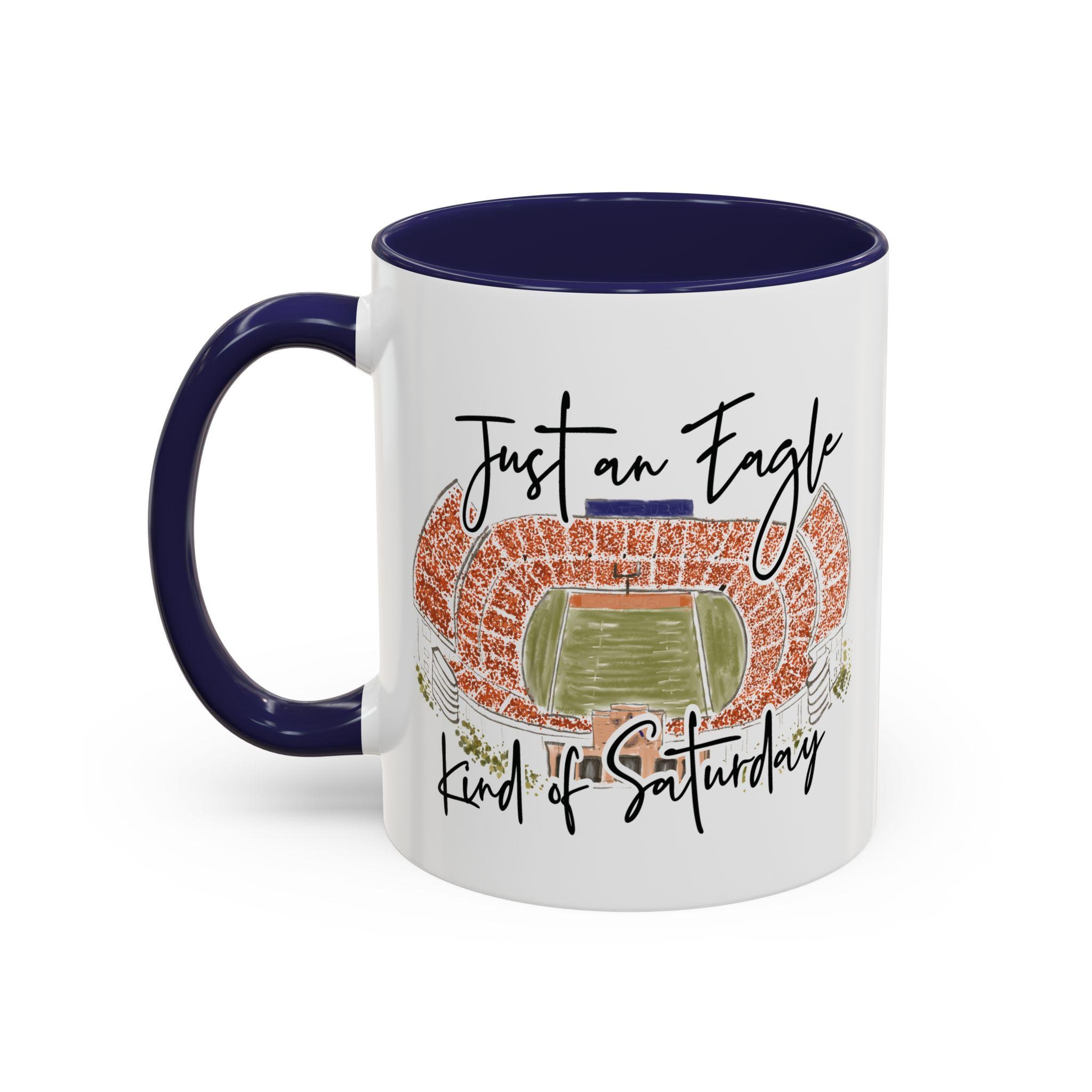 This vibrant ceramic mug brings game-day energy to every morning coffee or afternoon tea. The glossy white exterior paired with a colored interior and handle makes the illustrated stadium artwork pop — a casual, hand-painted look with the playful phrase “Just an Eagle kind of Saturday.” It feels like a slow walk into the stands: sun-warmed concrete, the distant roar of the crowd, and the ritual of a warm cup in your hands. Lightweight but sturdy, it fits easily into daily routines for fans who celebrate Saturdays with friends, tailgates, or quiet at-home rituals. The bold color contrast adds a bit of personality to your mug rack and keeps the vibe lively through repeat use and washes.