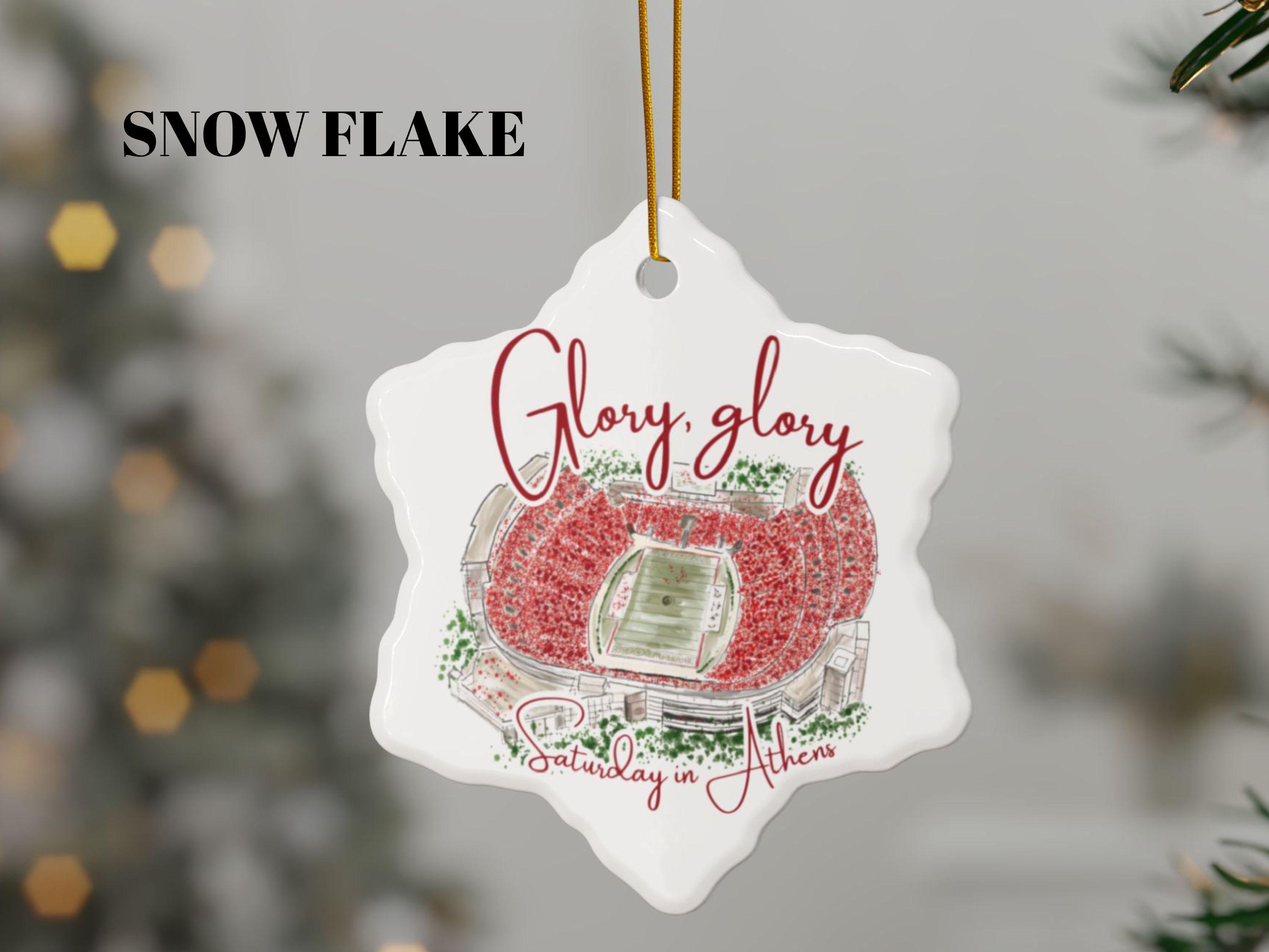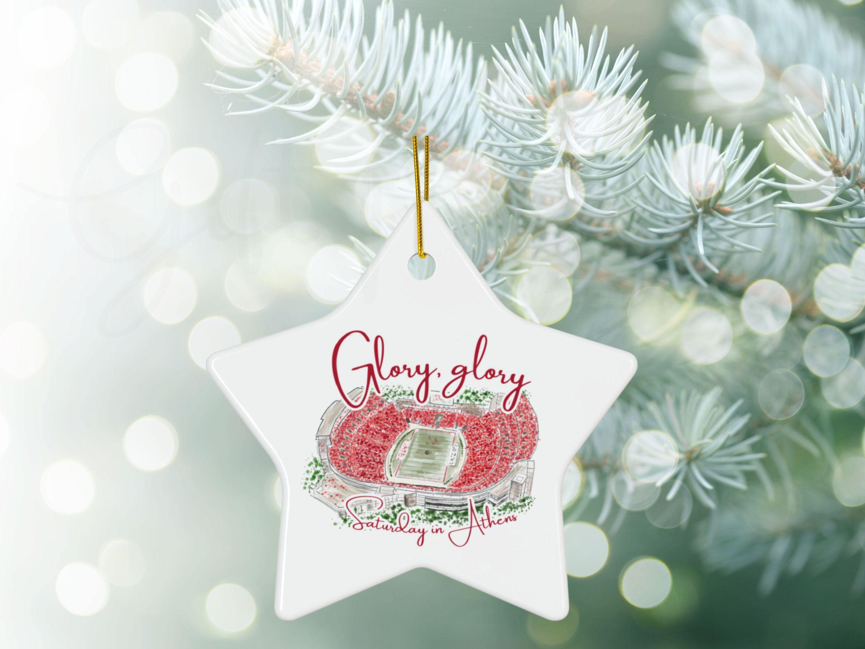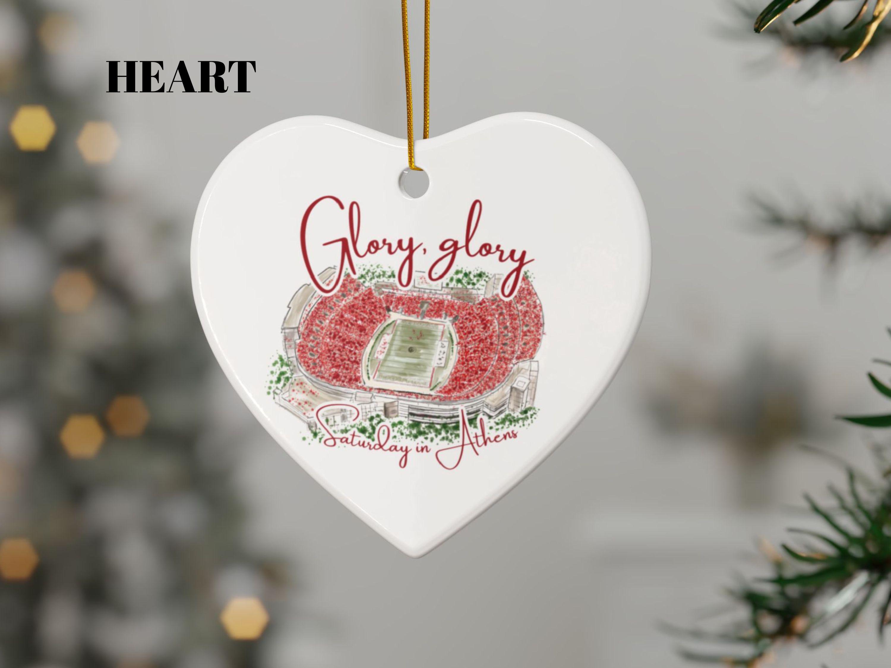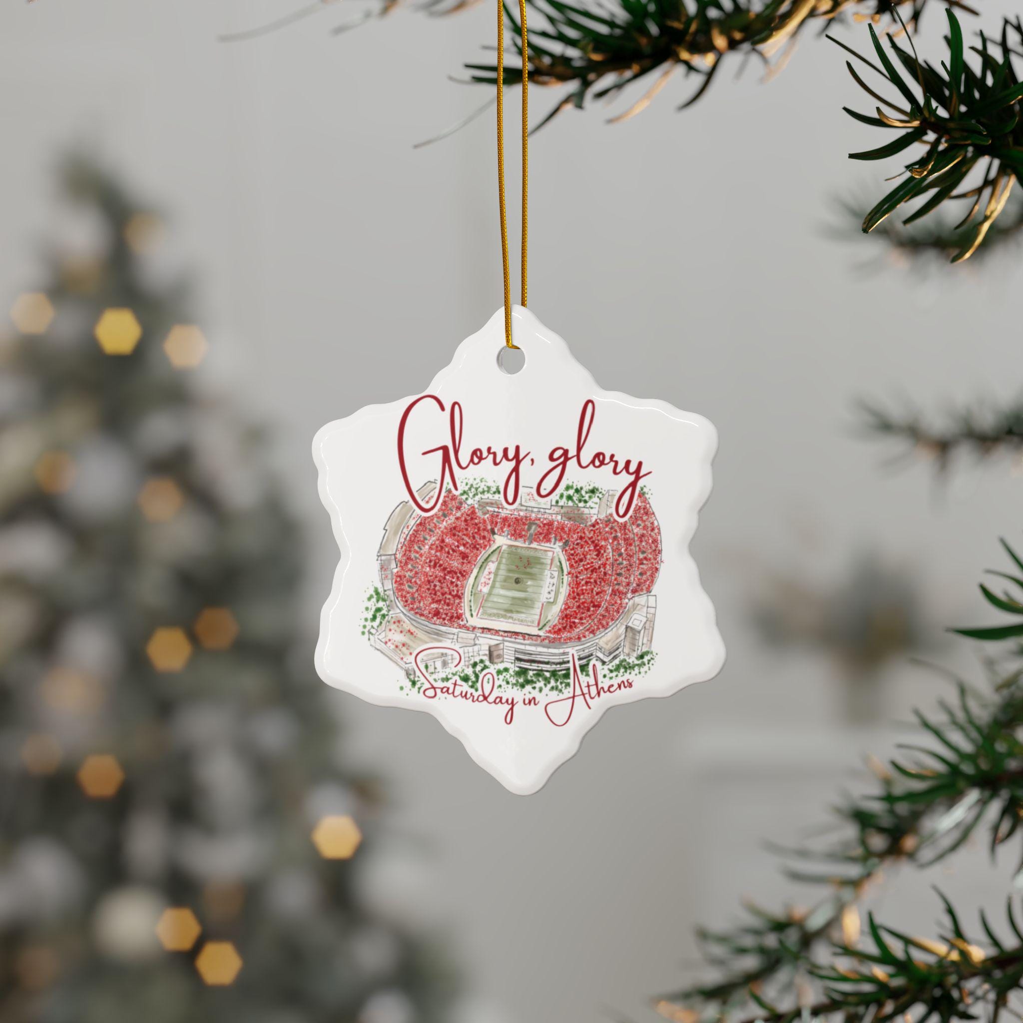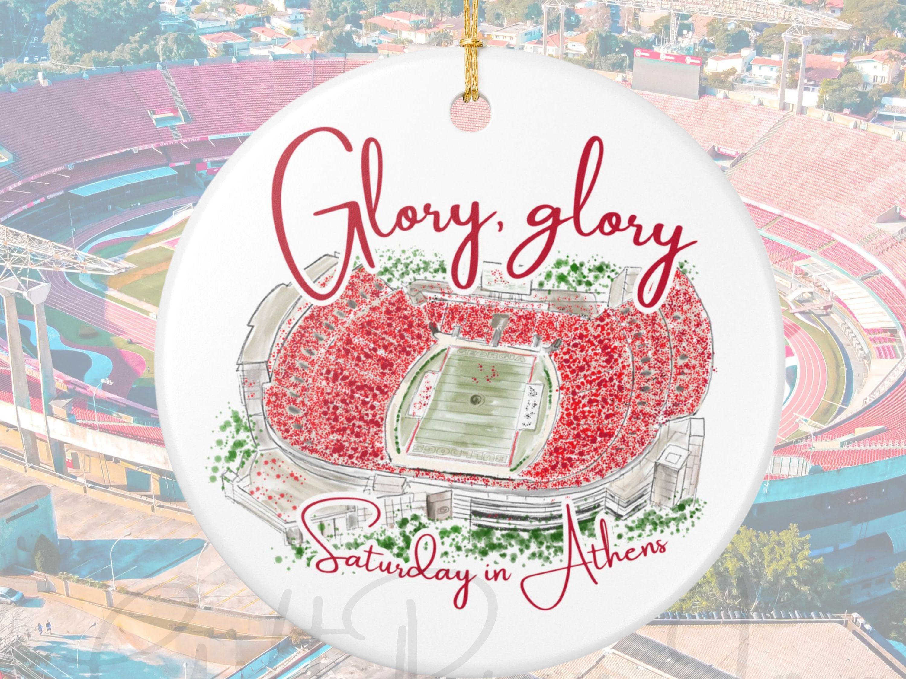 Add Bulldog pride to your Christmas tree with this hand-drawn Sanford Stadium “Glory, Glory” Ceramic Ornament! Featuring a detailed sketch of the legendary Georgia Bulldogs stadium, this ornament brings the heart of Athens, GA straight to your holiday decor.