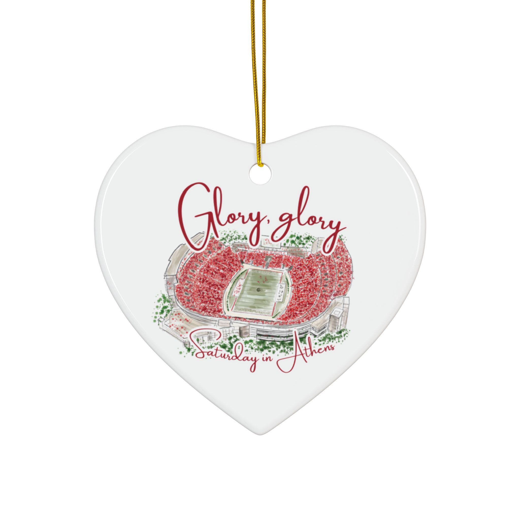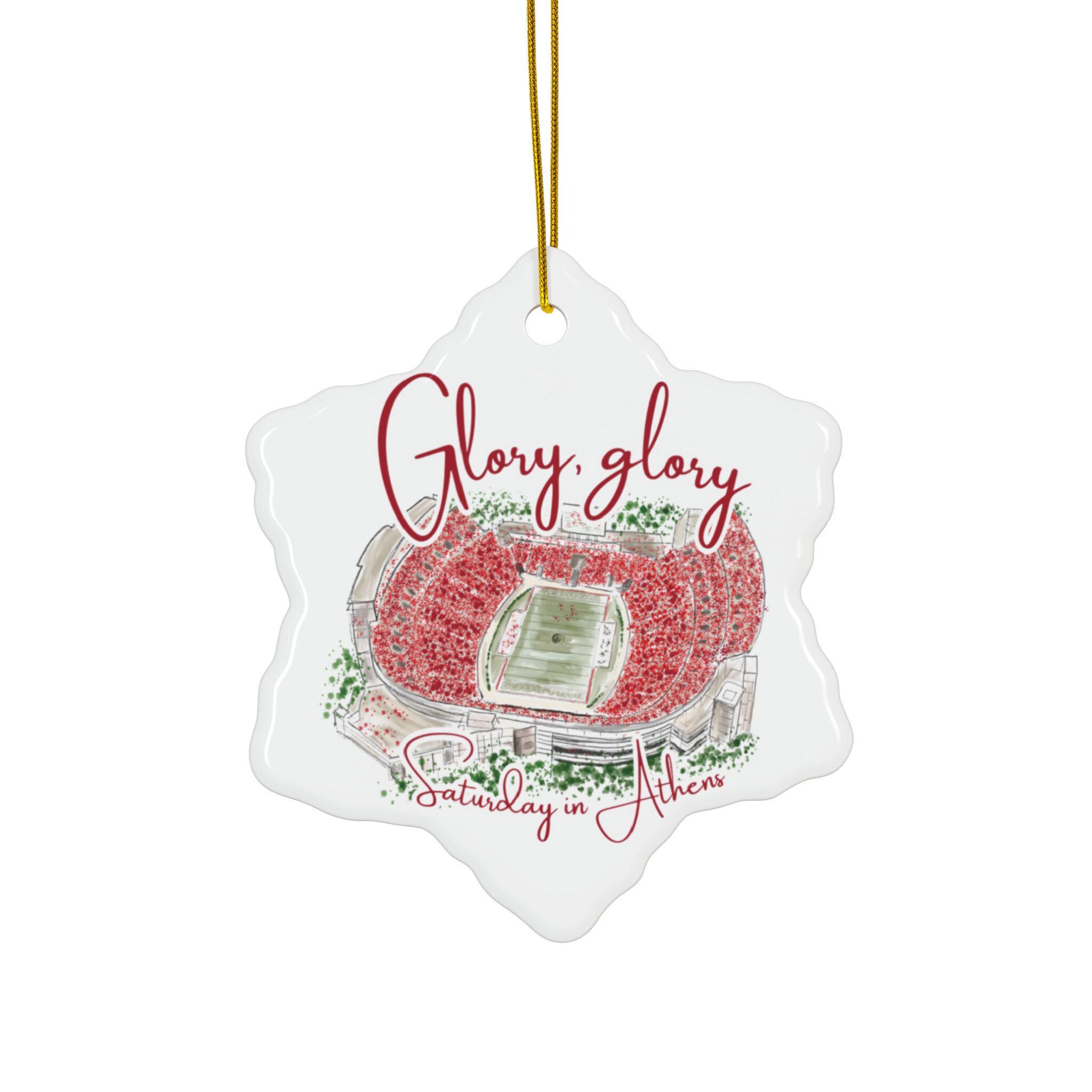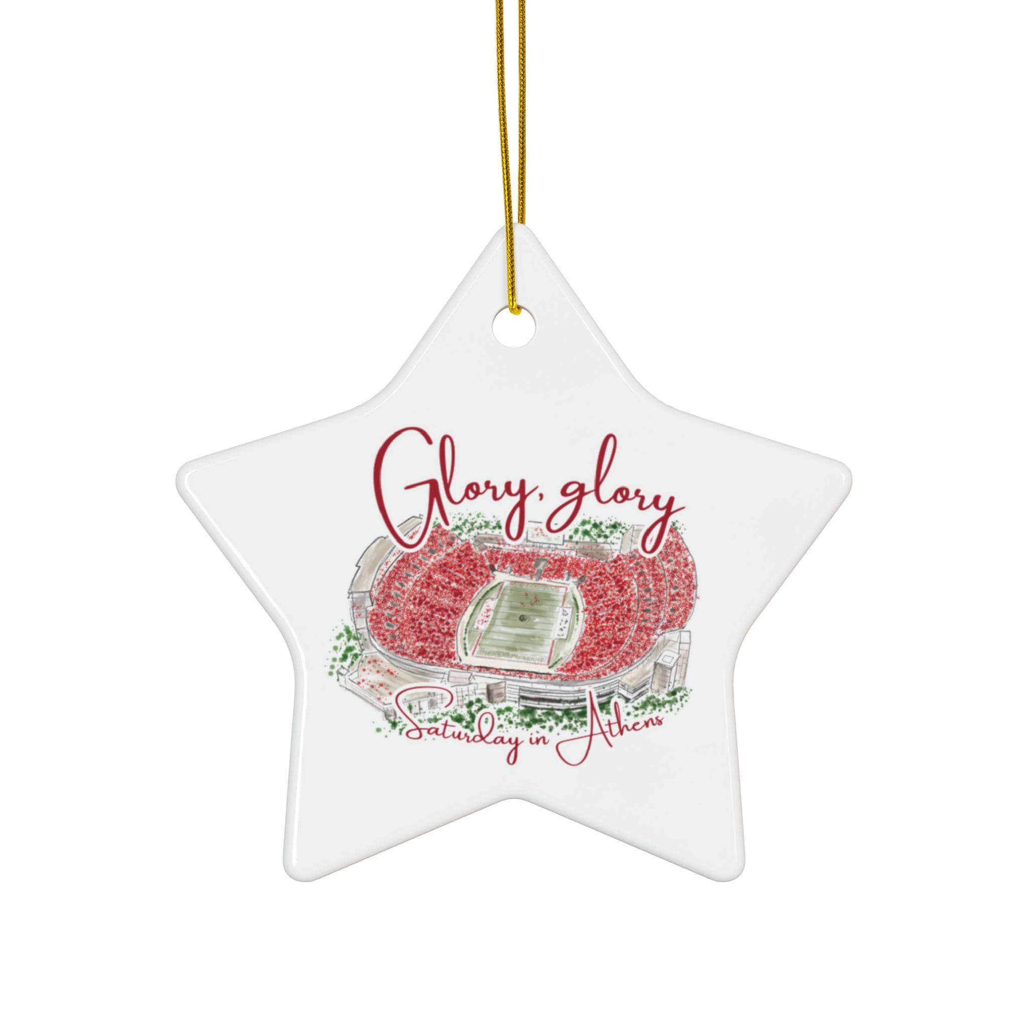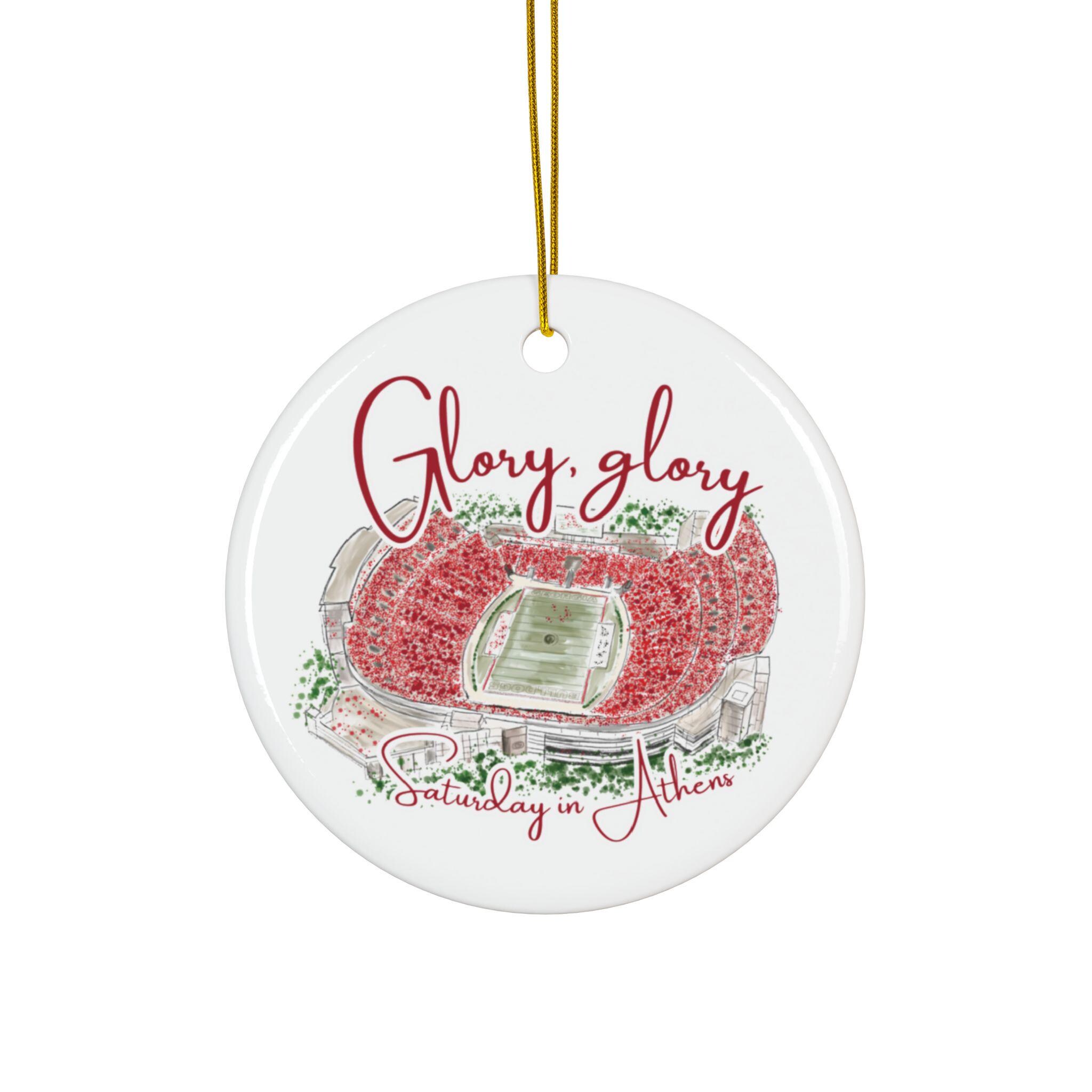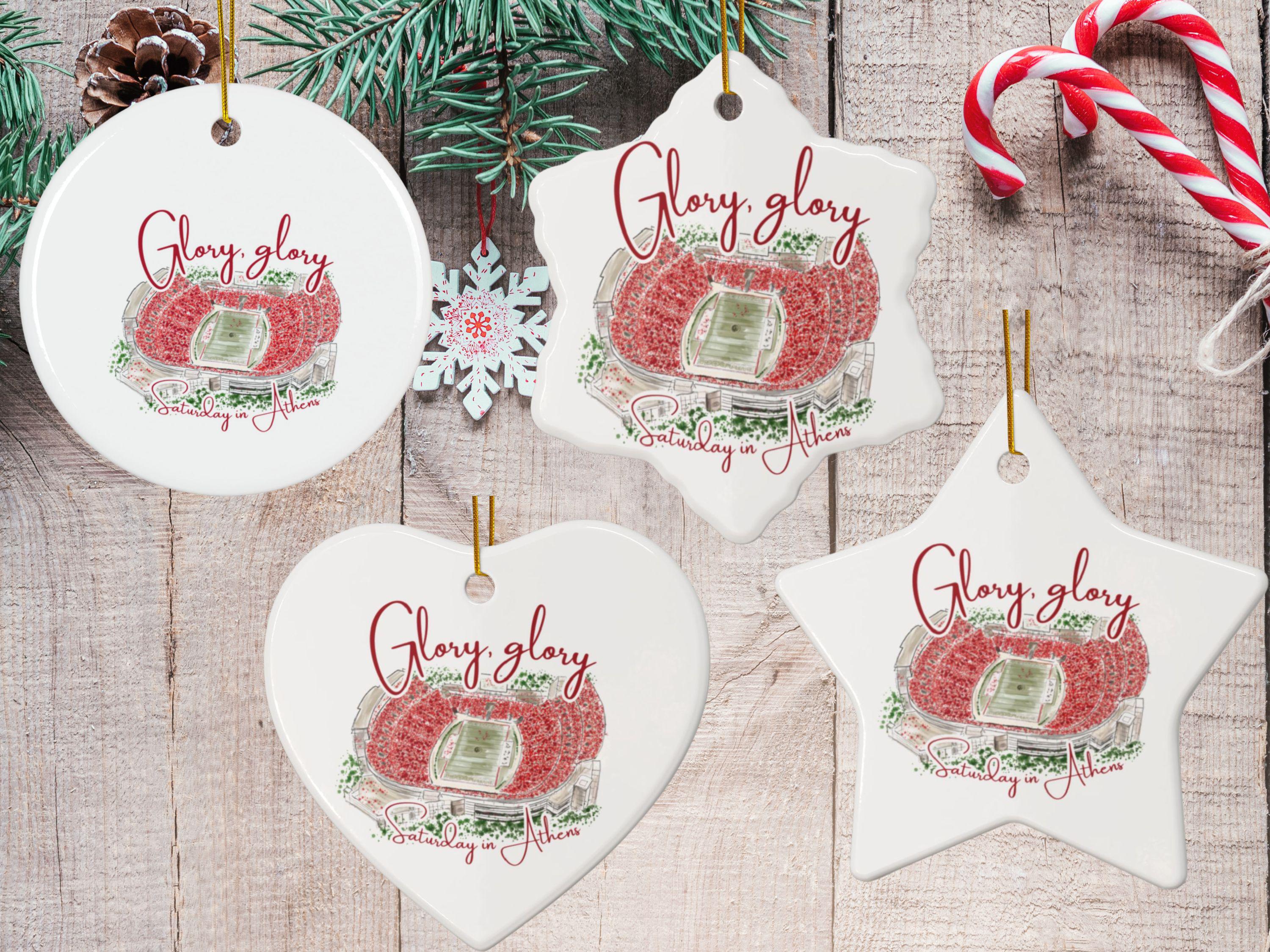 Add Bulldog pride to your Christmas tree with this hand-drawn Sanford Stadium “Glory, Glory” Ceramic Ornament! Featuring a detailed sketch of the legendary Georgia Bulldogs stadium, this ornament brings the heart of Athens, GA straight to your holiday decor.