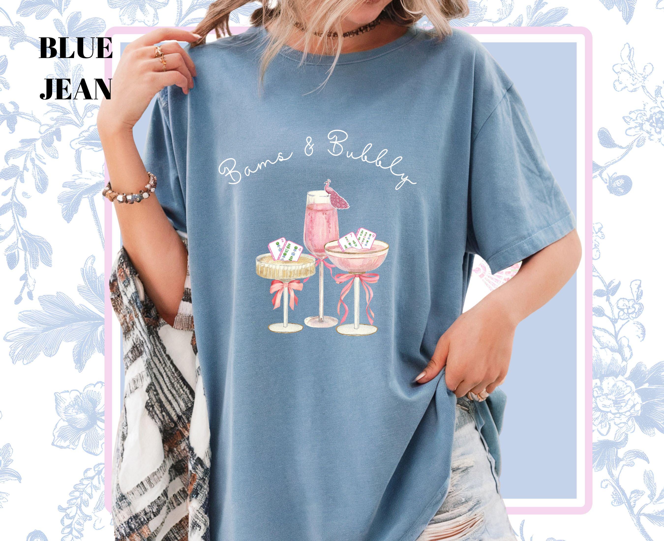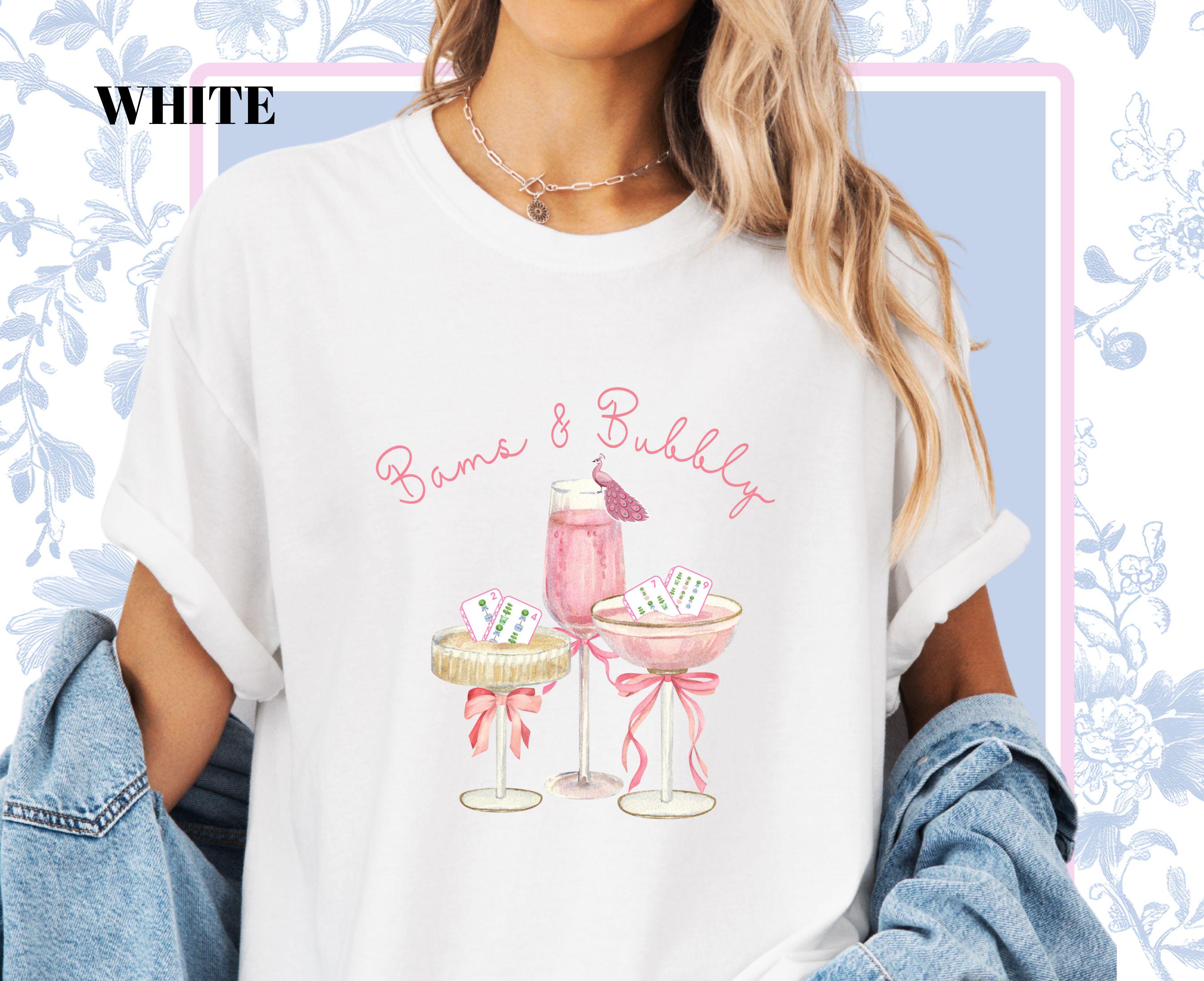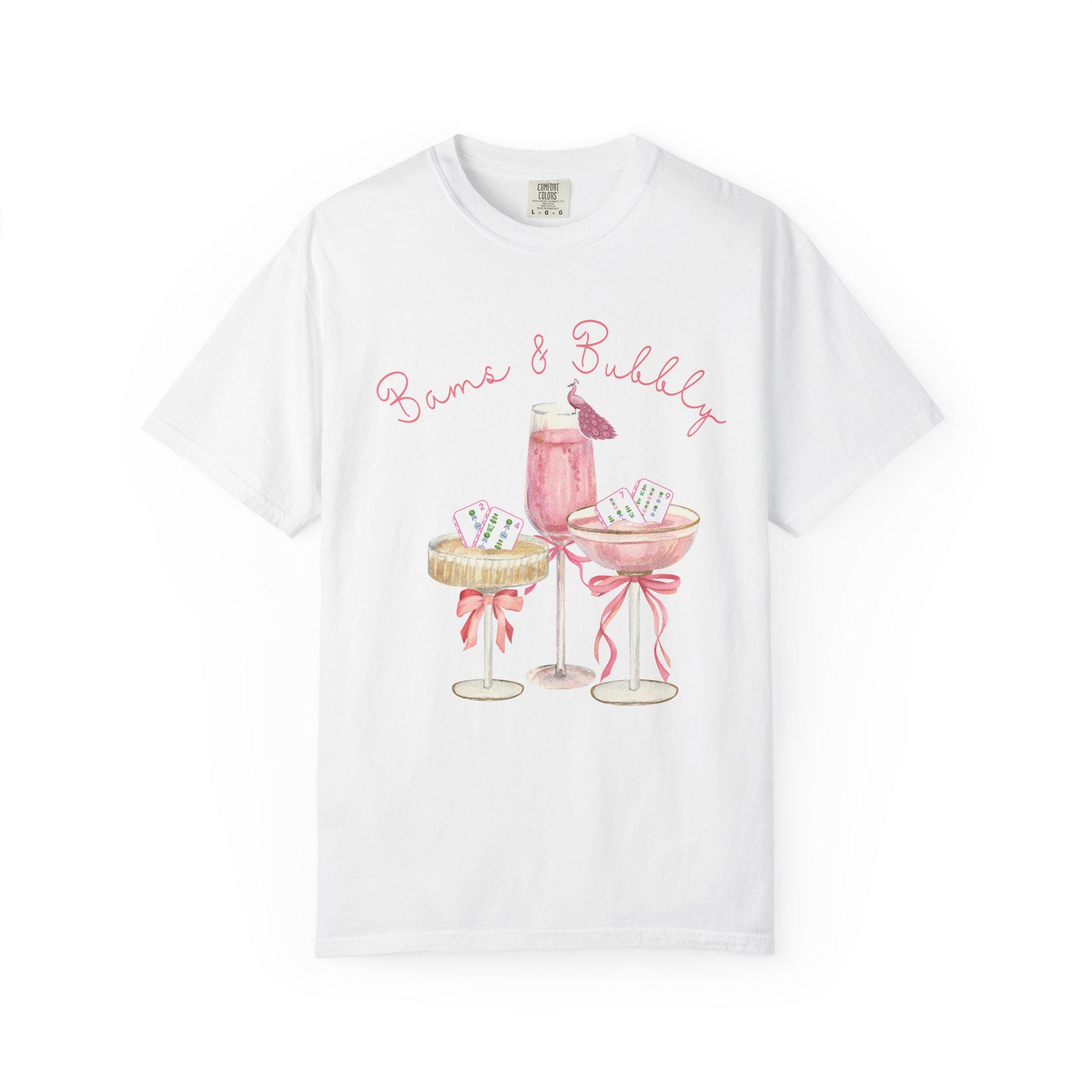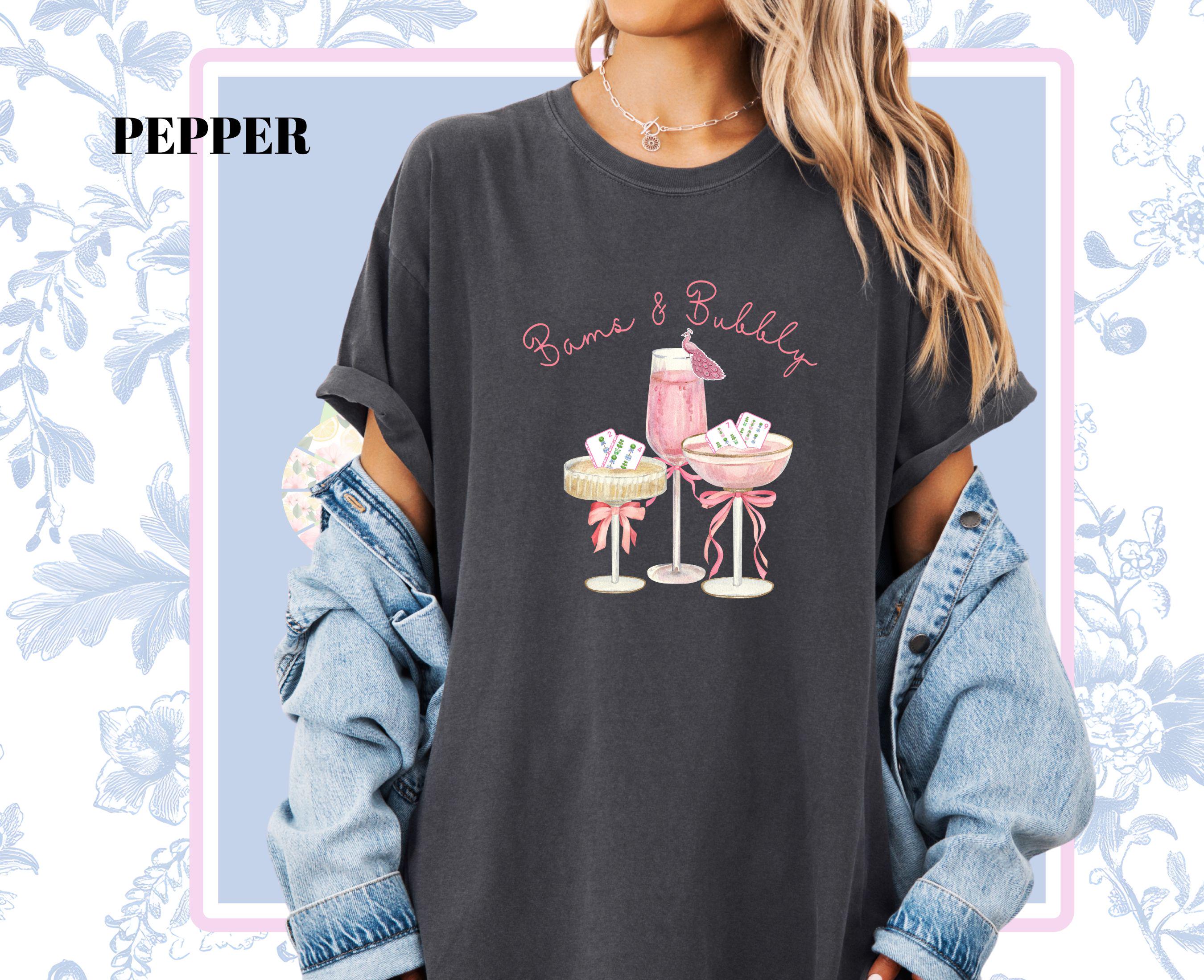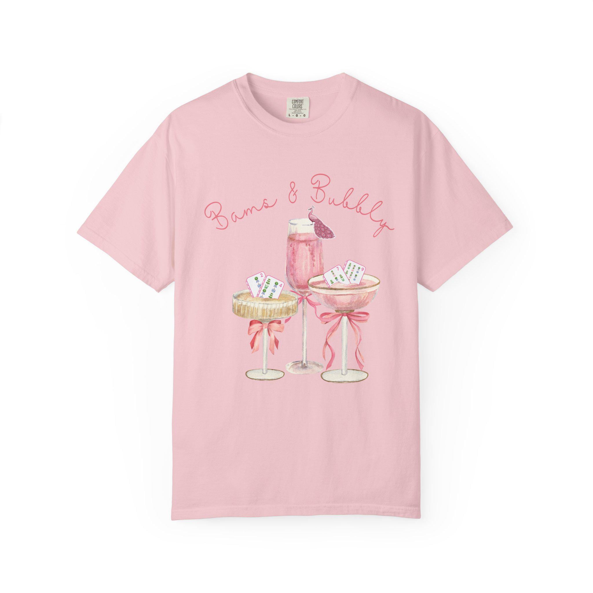 Celebrate your next mahjong night in style with this charming “Bams & Bubbly” Comfort Colors® tee. Featuring a hand-painted watercolor design of chic cocktail glasses, coquette bows, and pastel mahjong tiles, this shirt blends elegance, fun, and a hint of girly glam—perfect for anyone who loves mixing tiles and toasts.