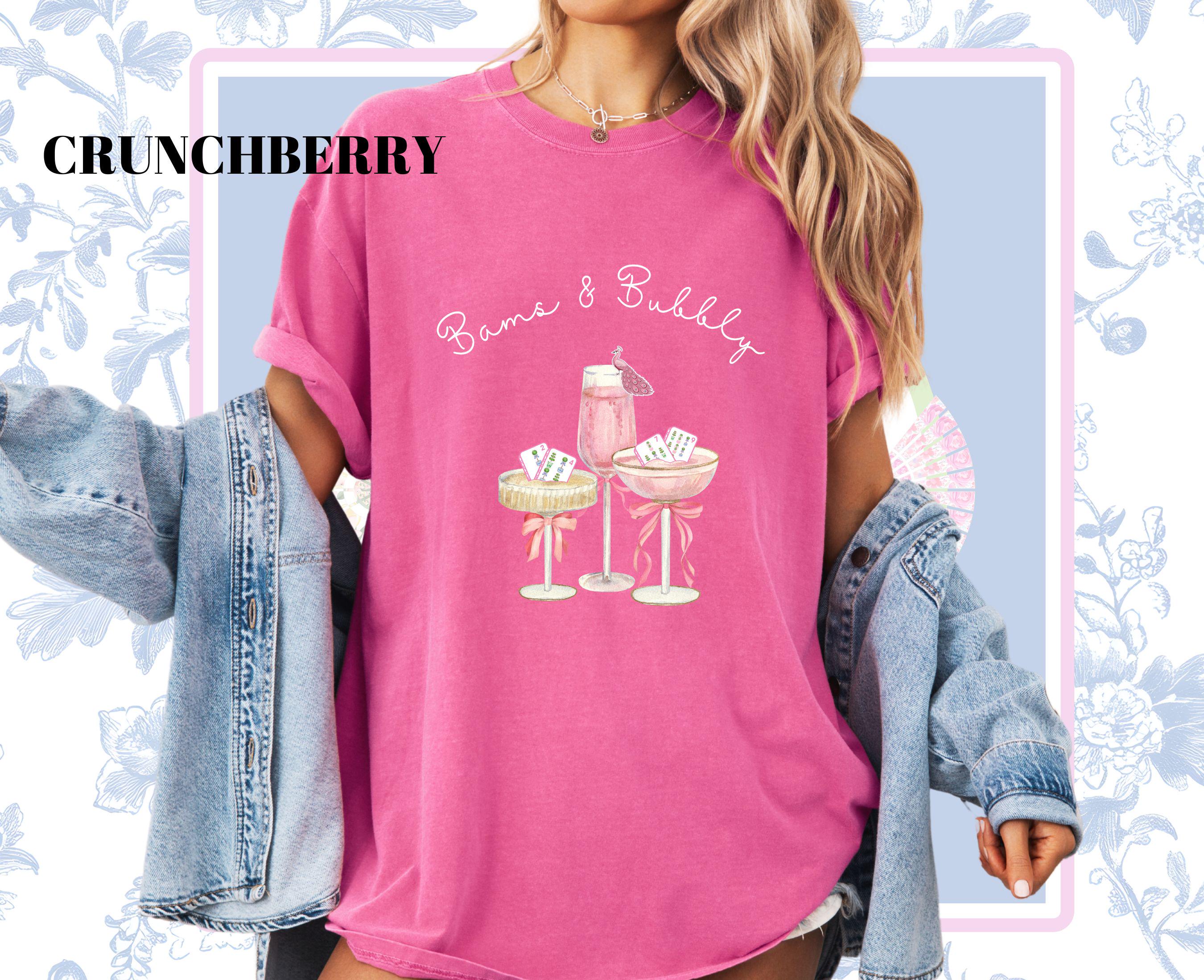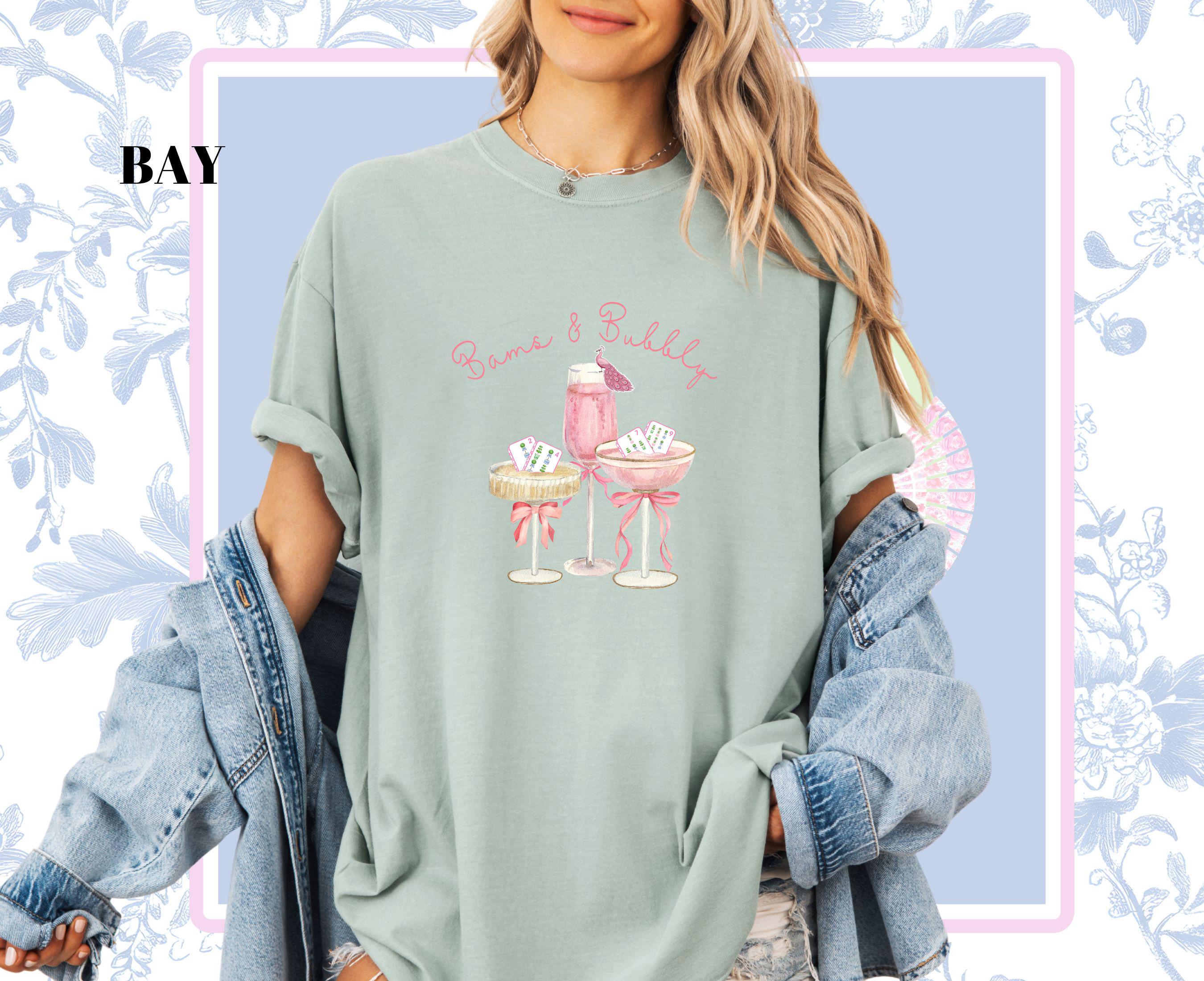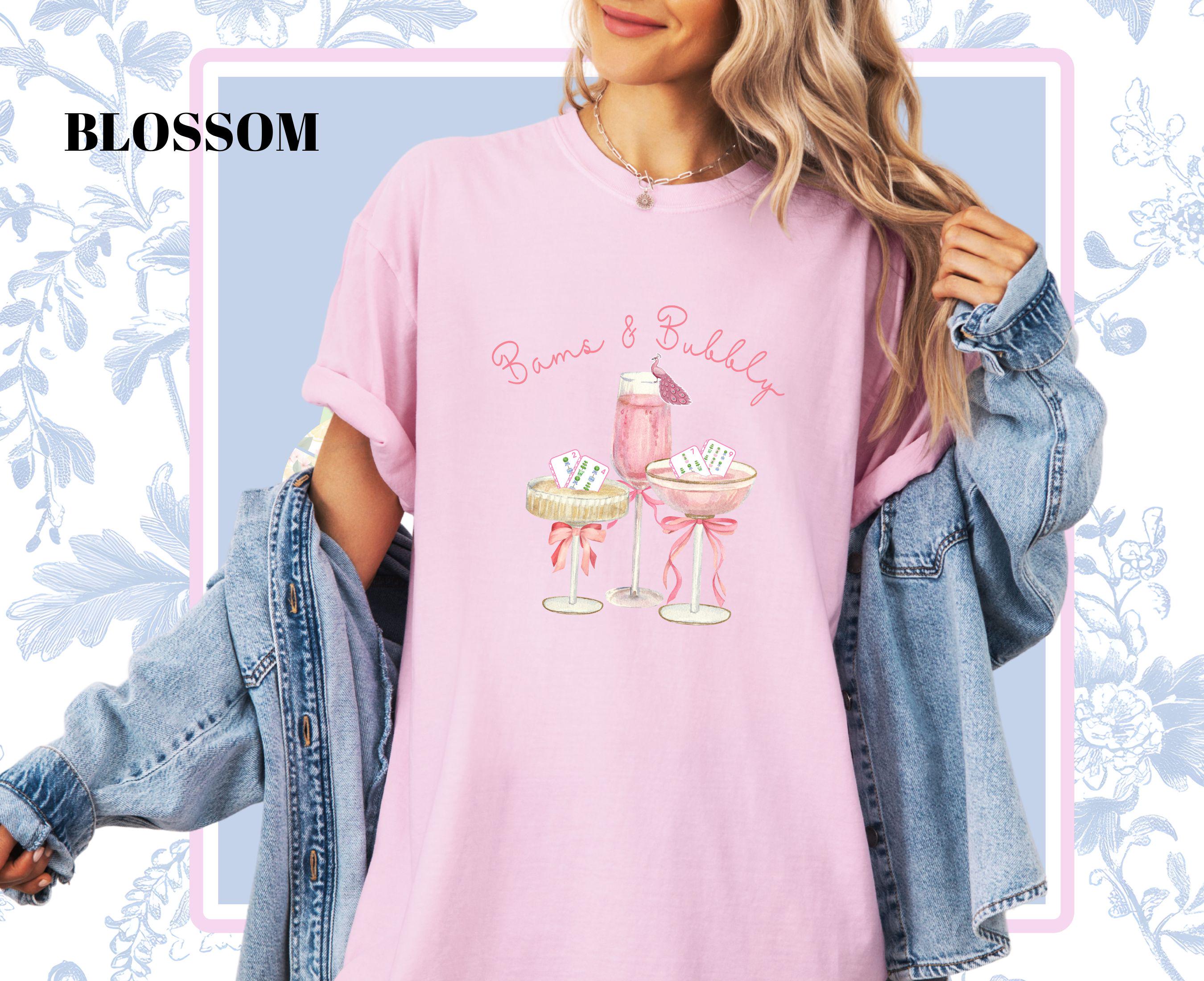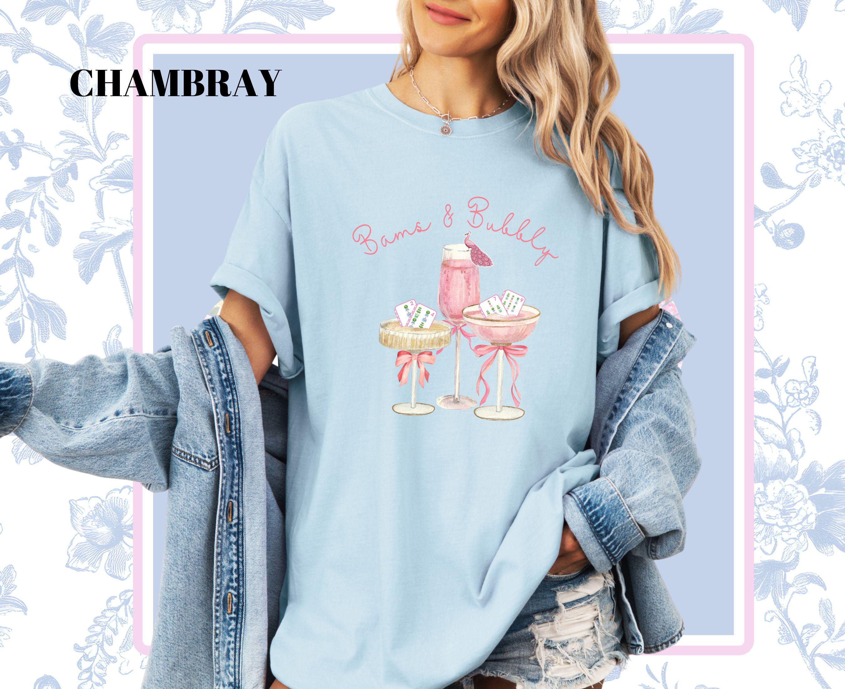 Celebrate your next mahjong night in style with this charming “Bams & Bubbly” Comfort Colors® tee. Featuring a hand-painted watercolor design of chic cocktail glasses, coquette bows, and pastel mahjong tiles, this shirt blends elegance, fun, and a hint of girly glam—perfect for anyone who loves mixing tiles and toasts.