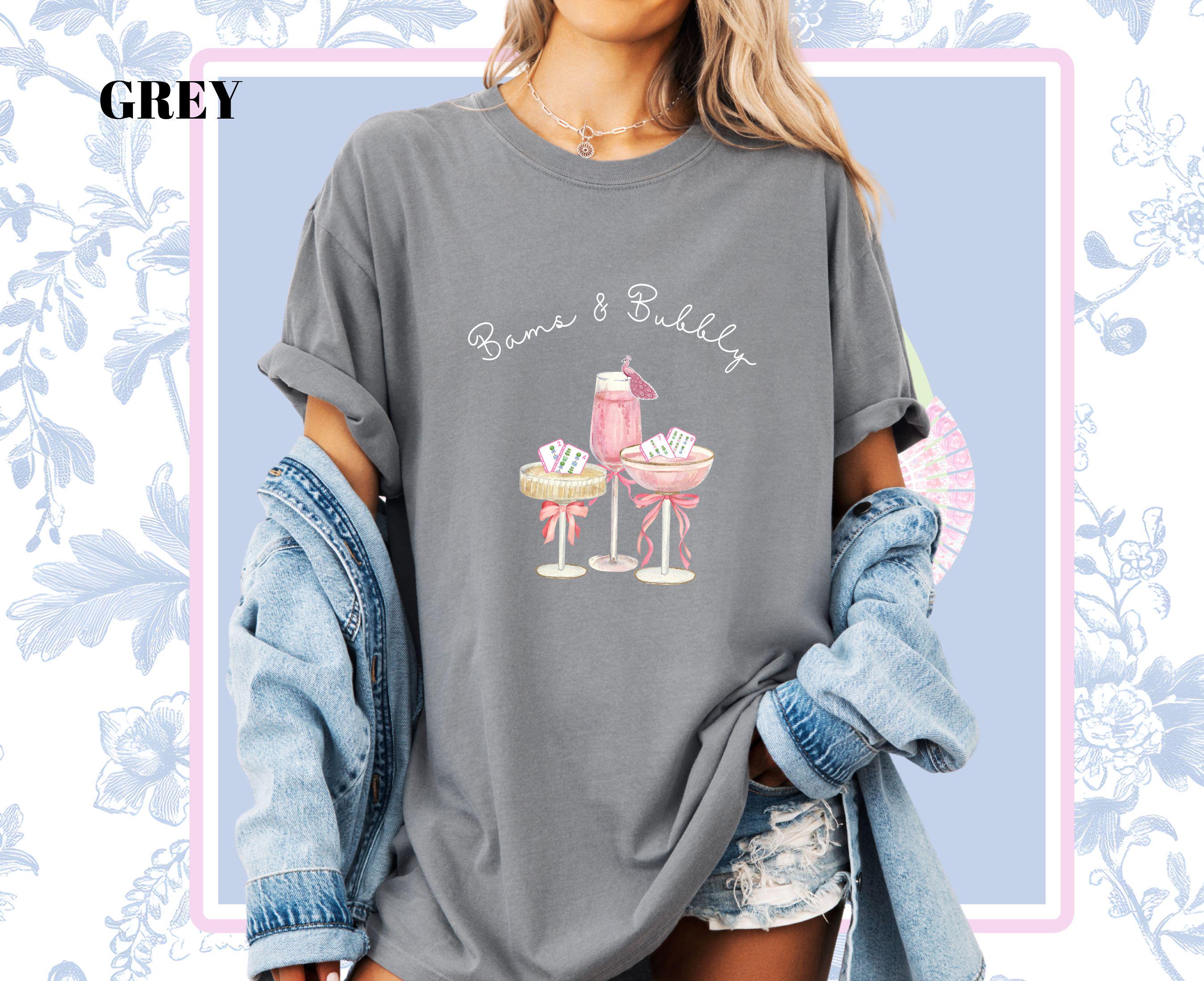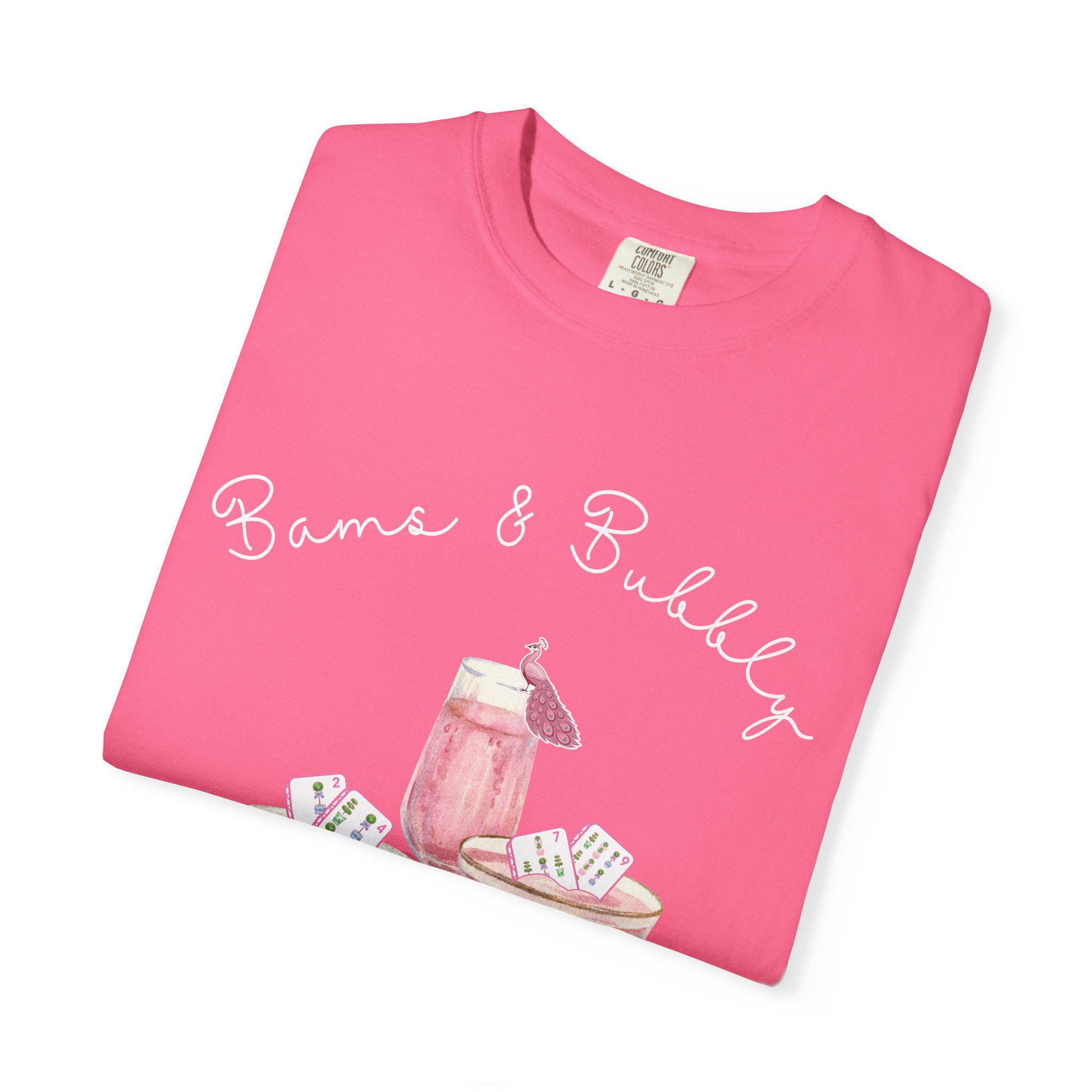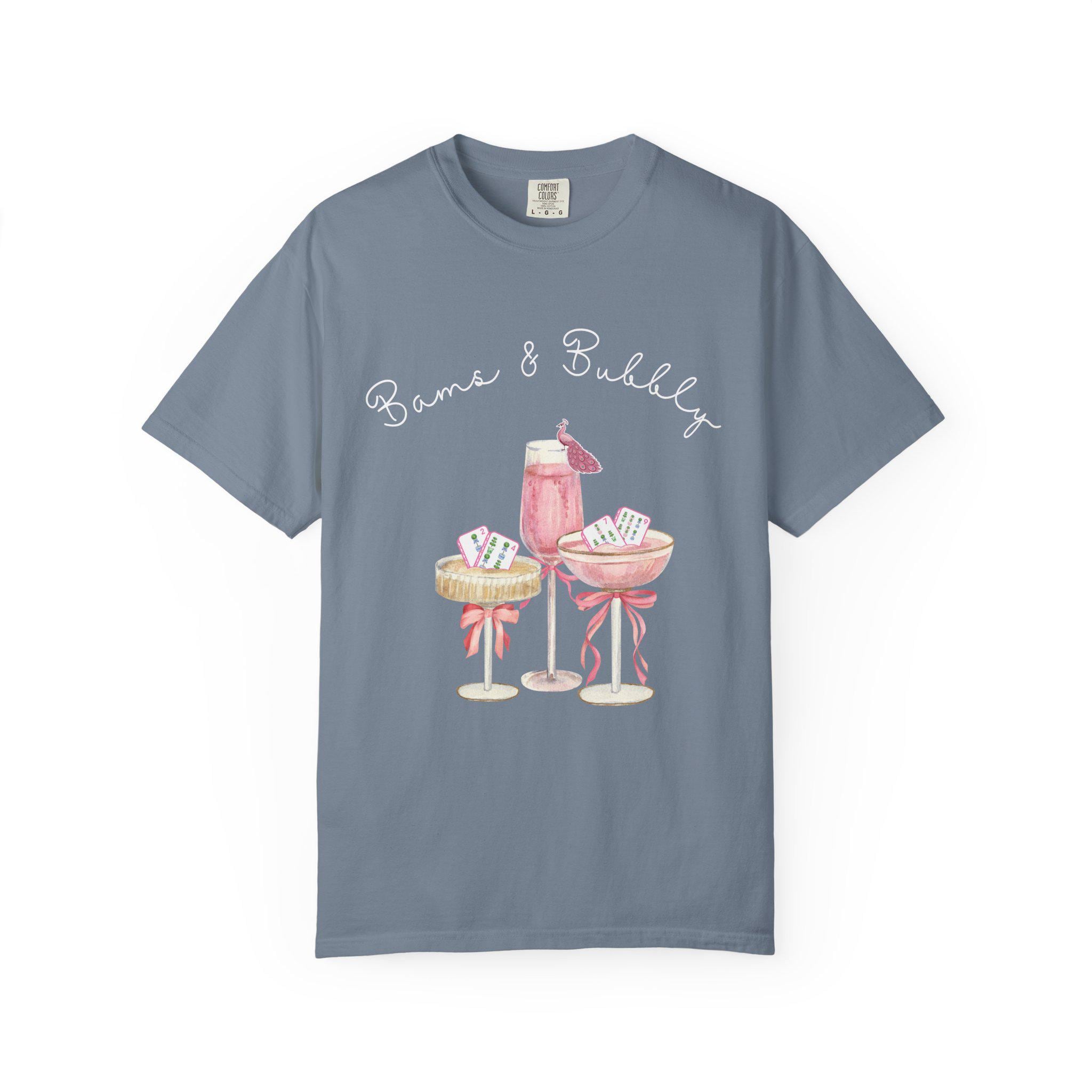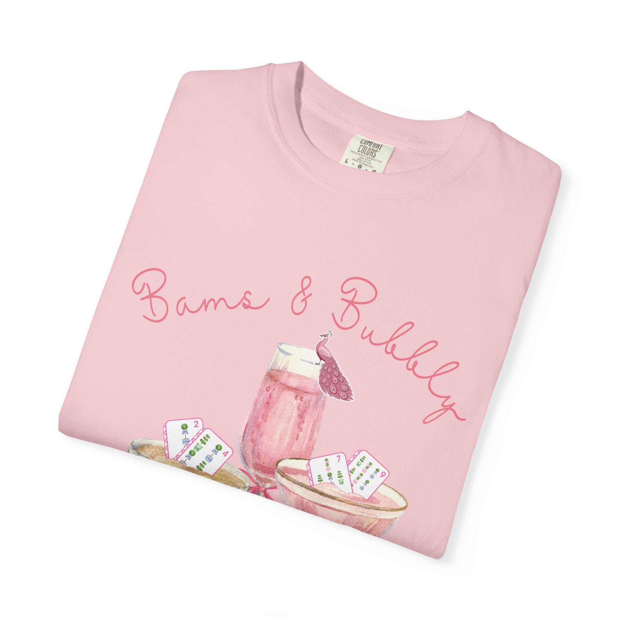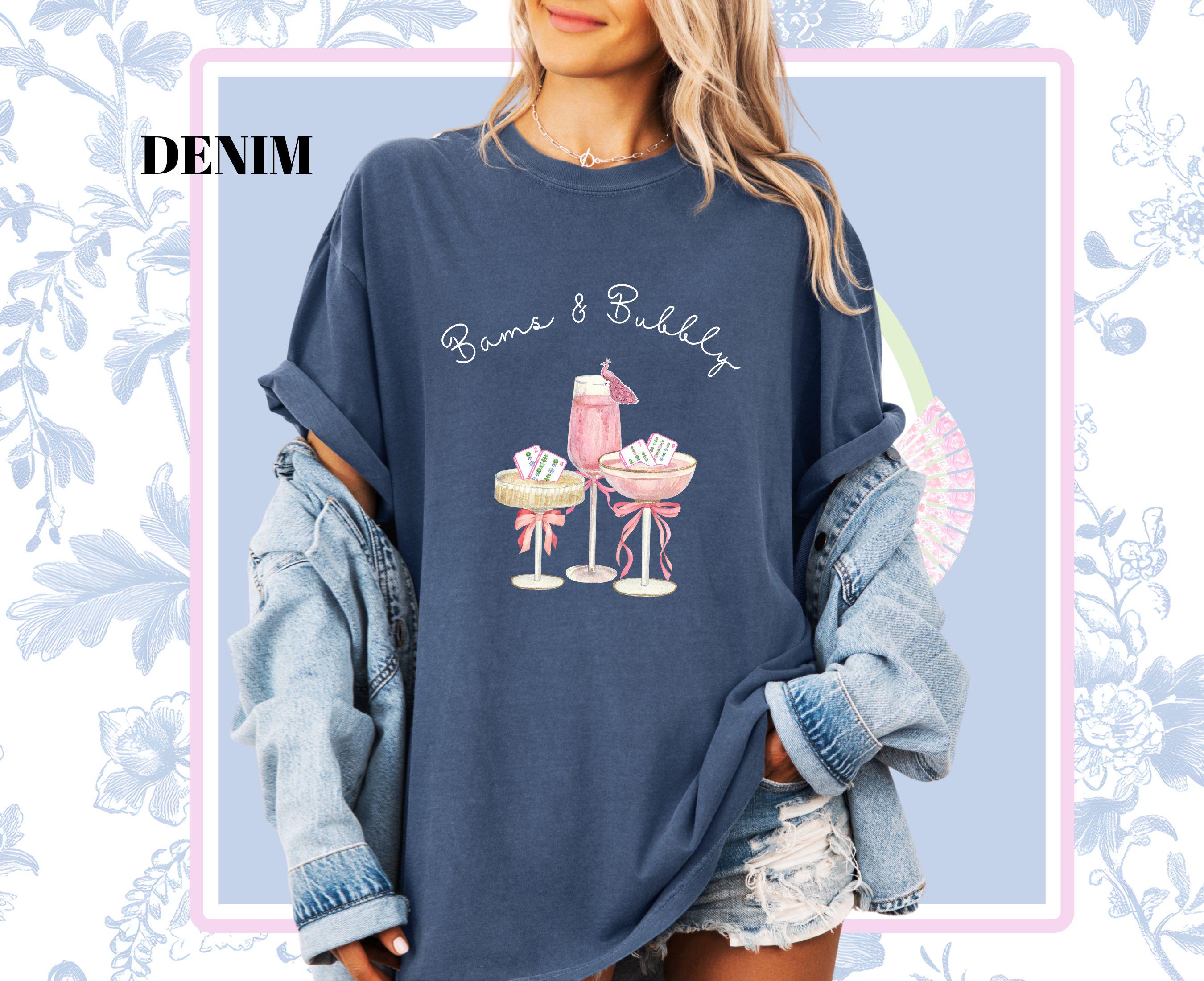 Celebrate your next mahjong night in style with this charming “Bams & Bubbly” Comfort Colors® tee. Featuring a hand-painted watercolor design of chic cocktail glasses, coquette bows, and pastel mahjong tiles, this shirt blends elegance, fun, and a hint of girly glam—perfect for anyone who loves mixing tiles and toasts.