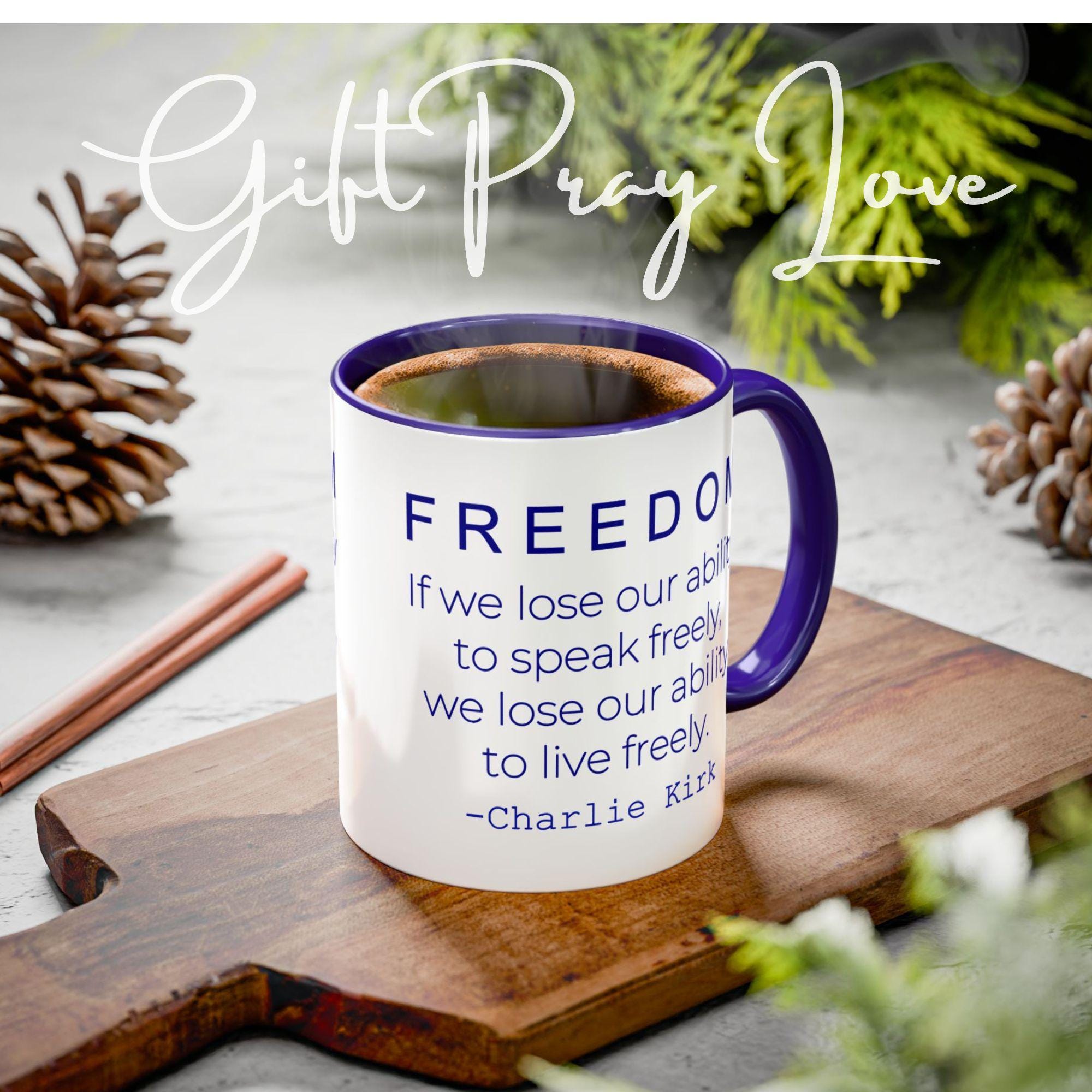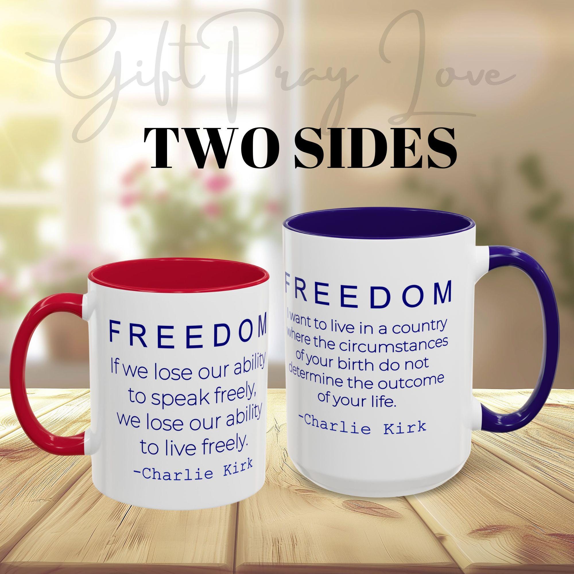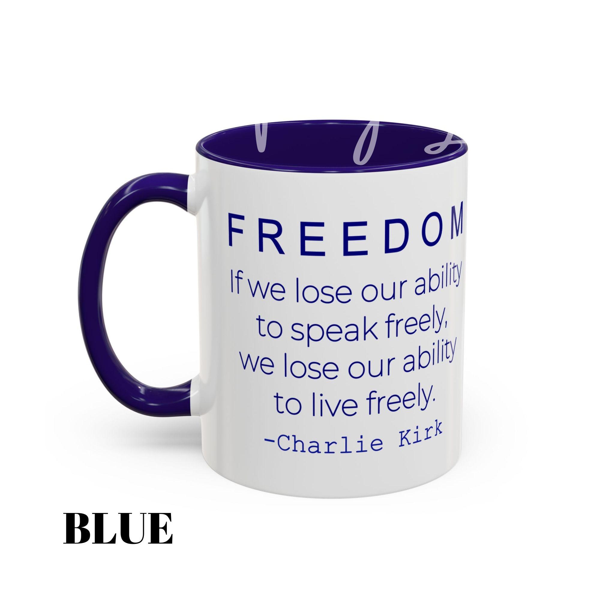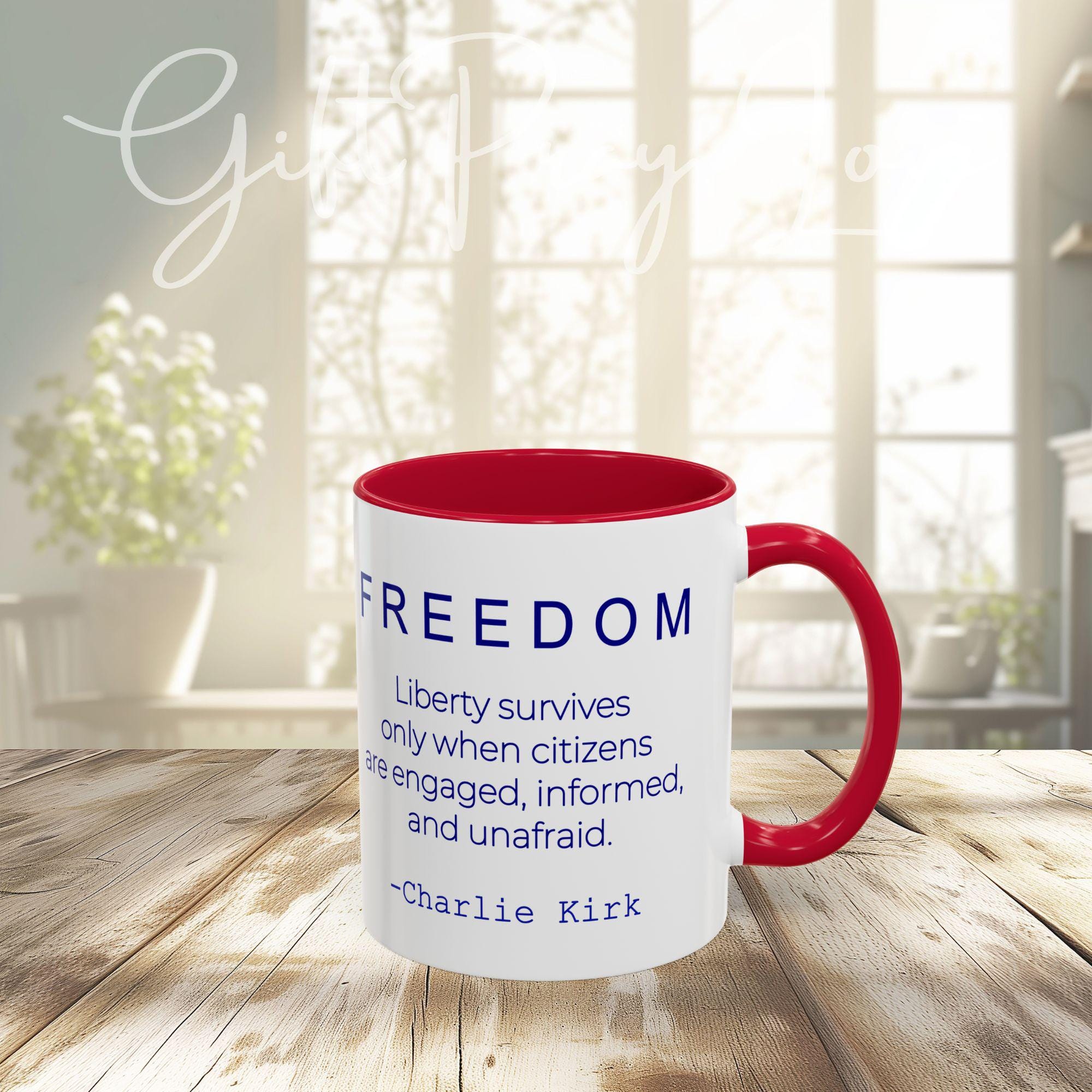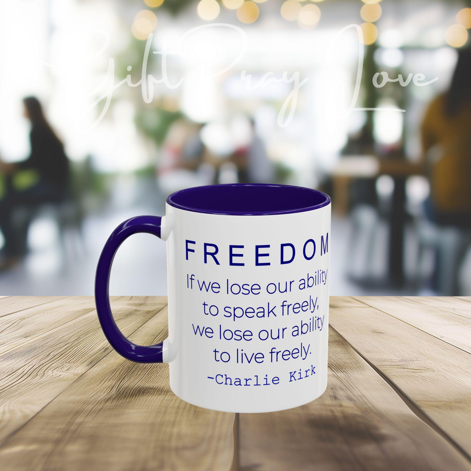 Honor the value of free speech with this bold ceramic mug featuring the inspiring Charlie Kirk quote: “If we lose our ability to speak freely, we lose our ability to live freely.” Clean, modern typography makes this design stand out, creating a meaningful piece for anyone passionate about liberty, open dialogue, and American ideals. Select Quote 1, 2, 3 or 4 as shown in the listing photos.