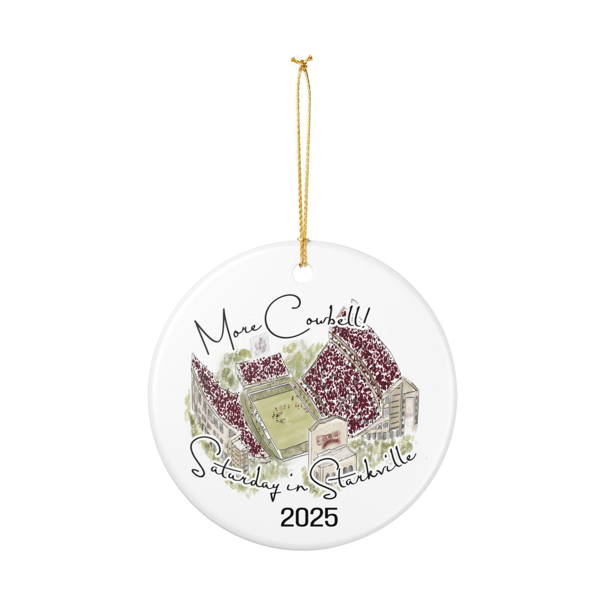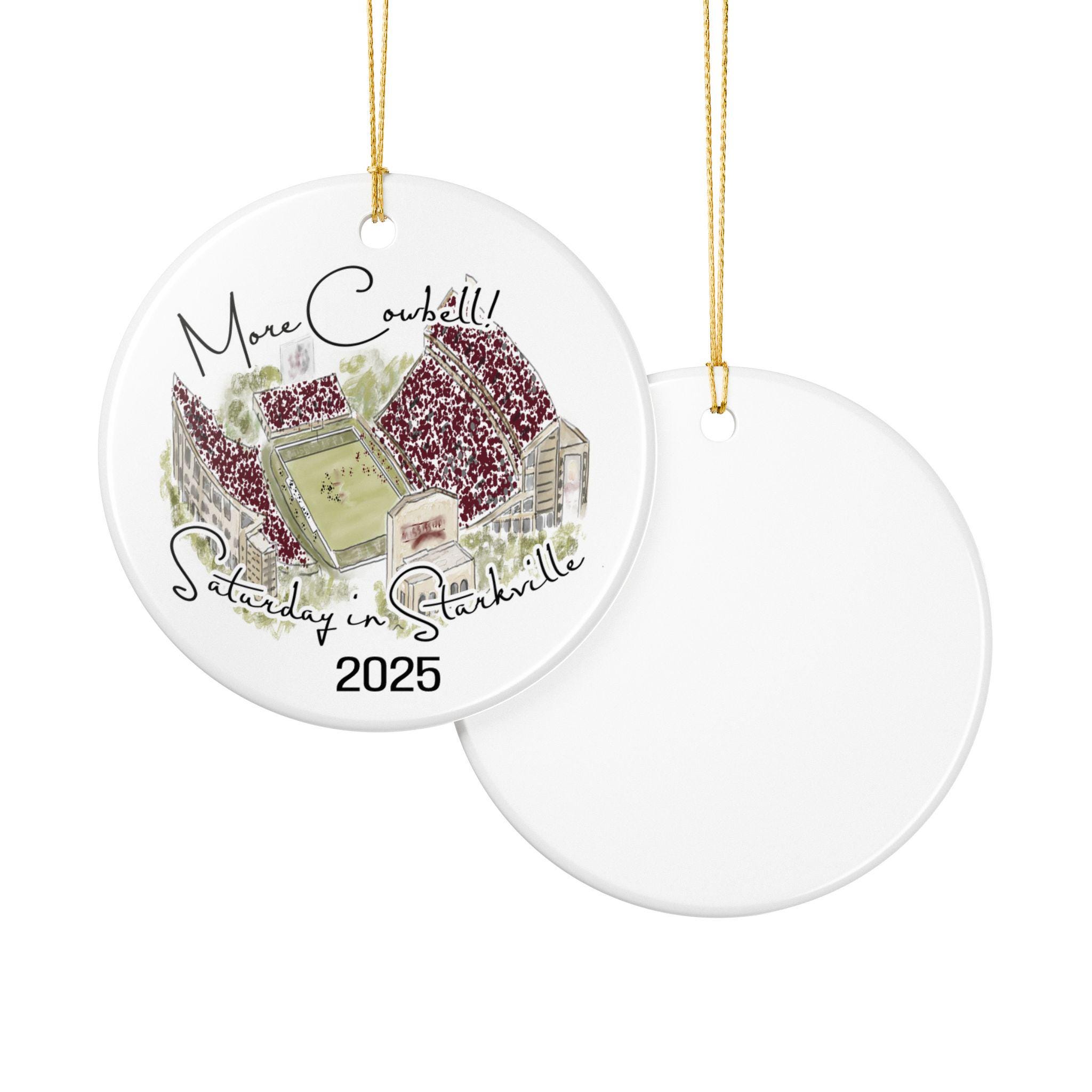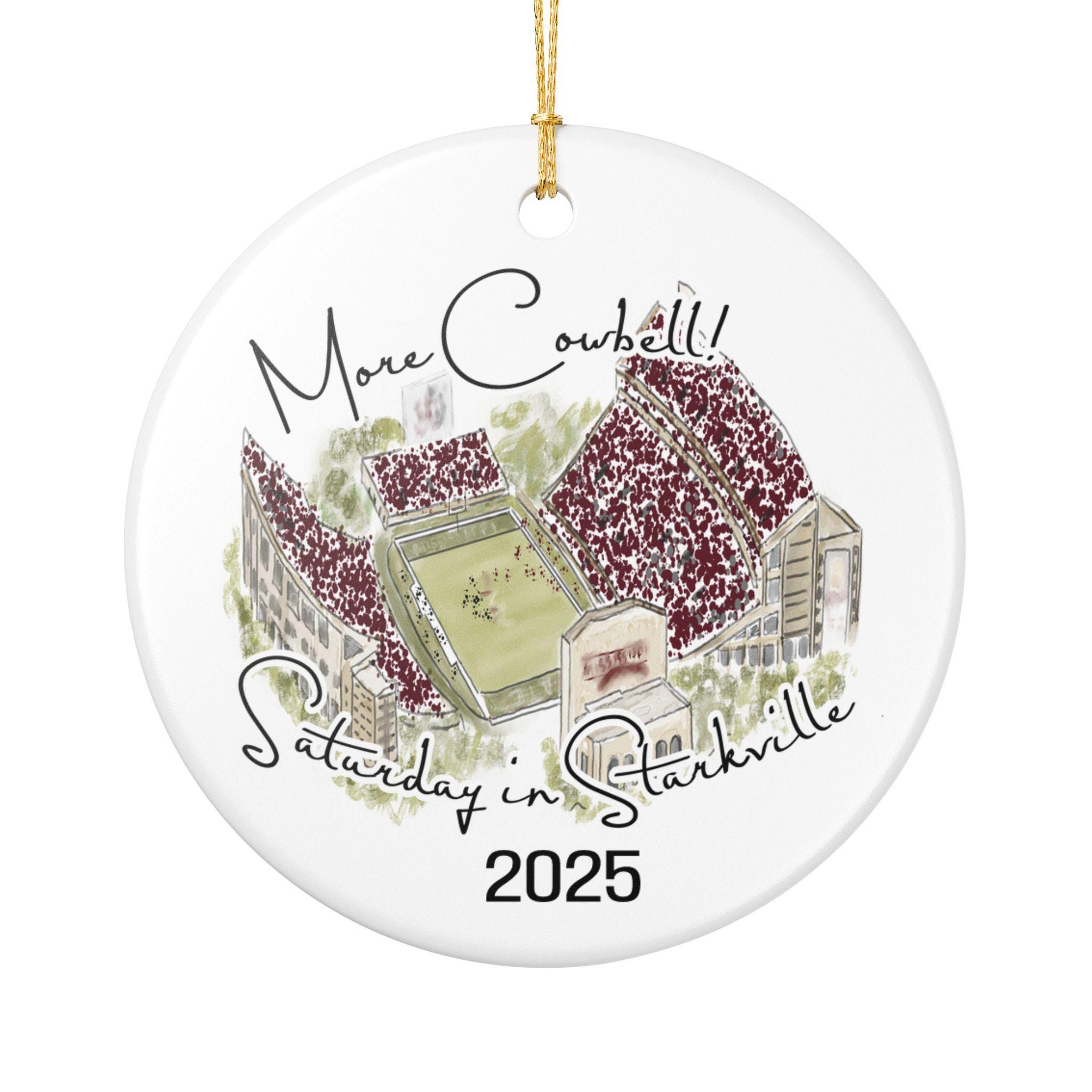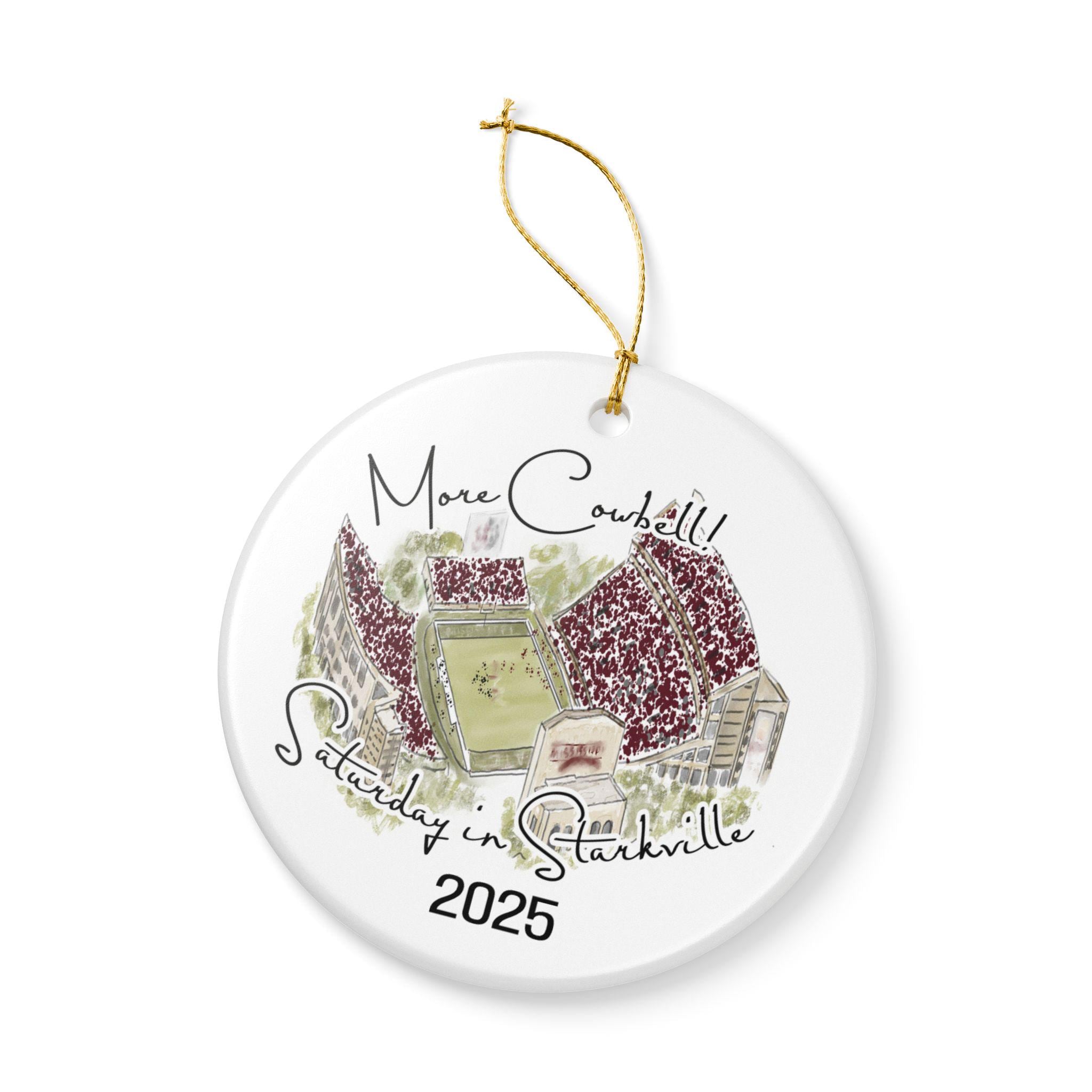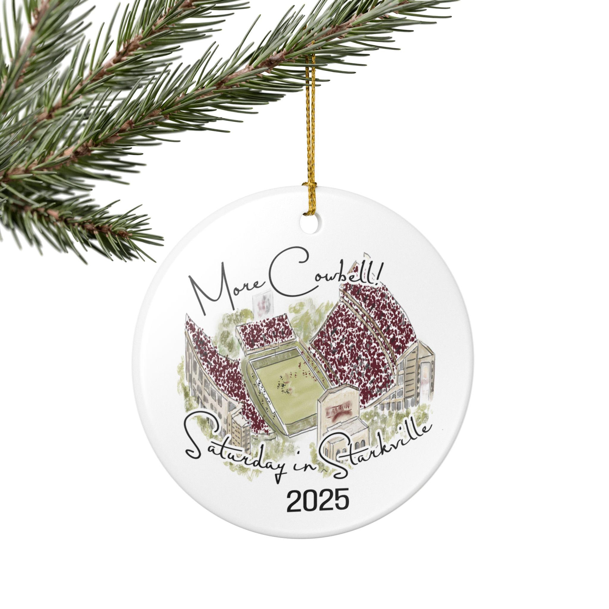 2025 More Cowbell Saturday in Starkville Ornament | Mississippi State Inspired Watercolor Stadium Ornament