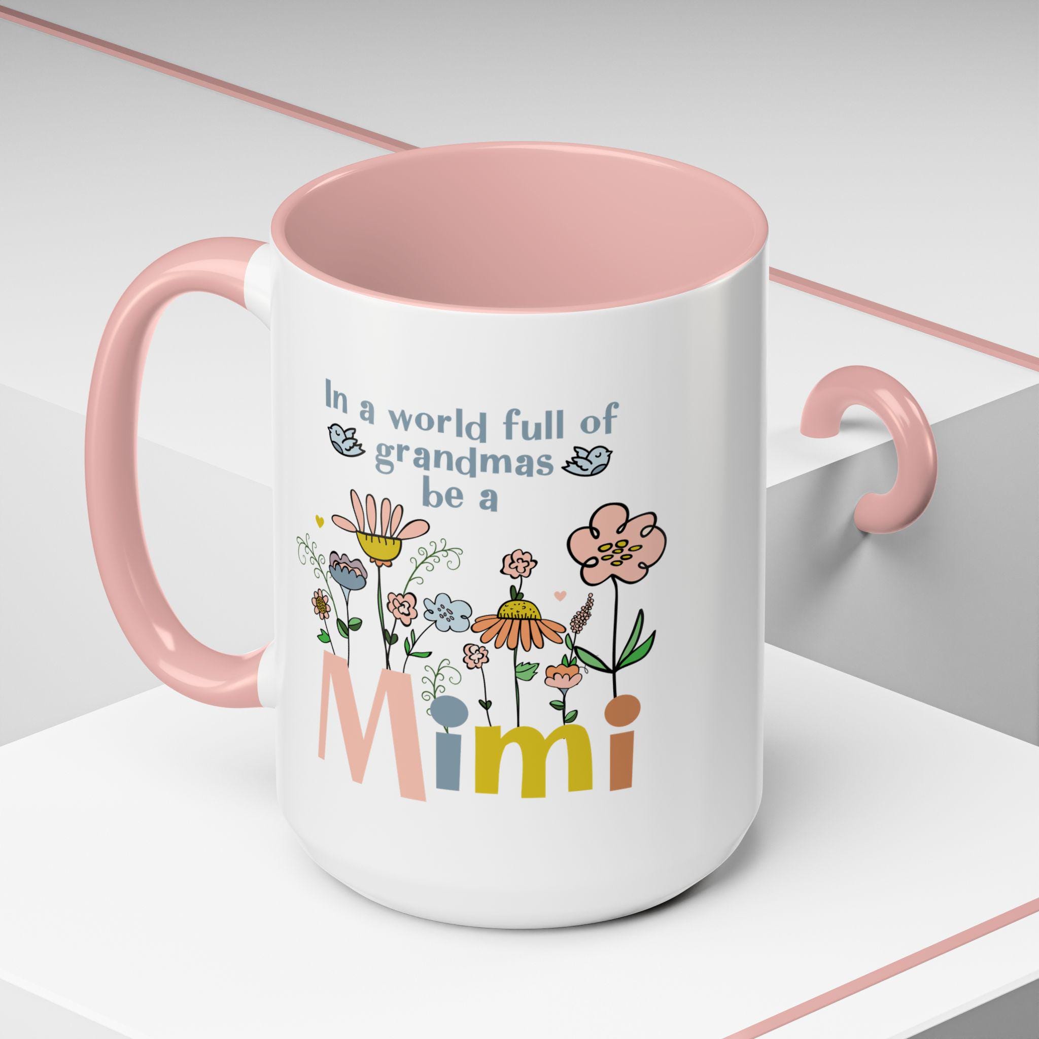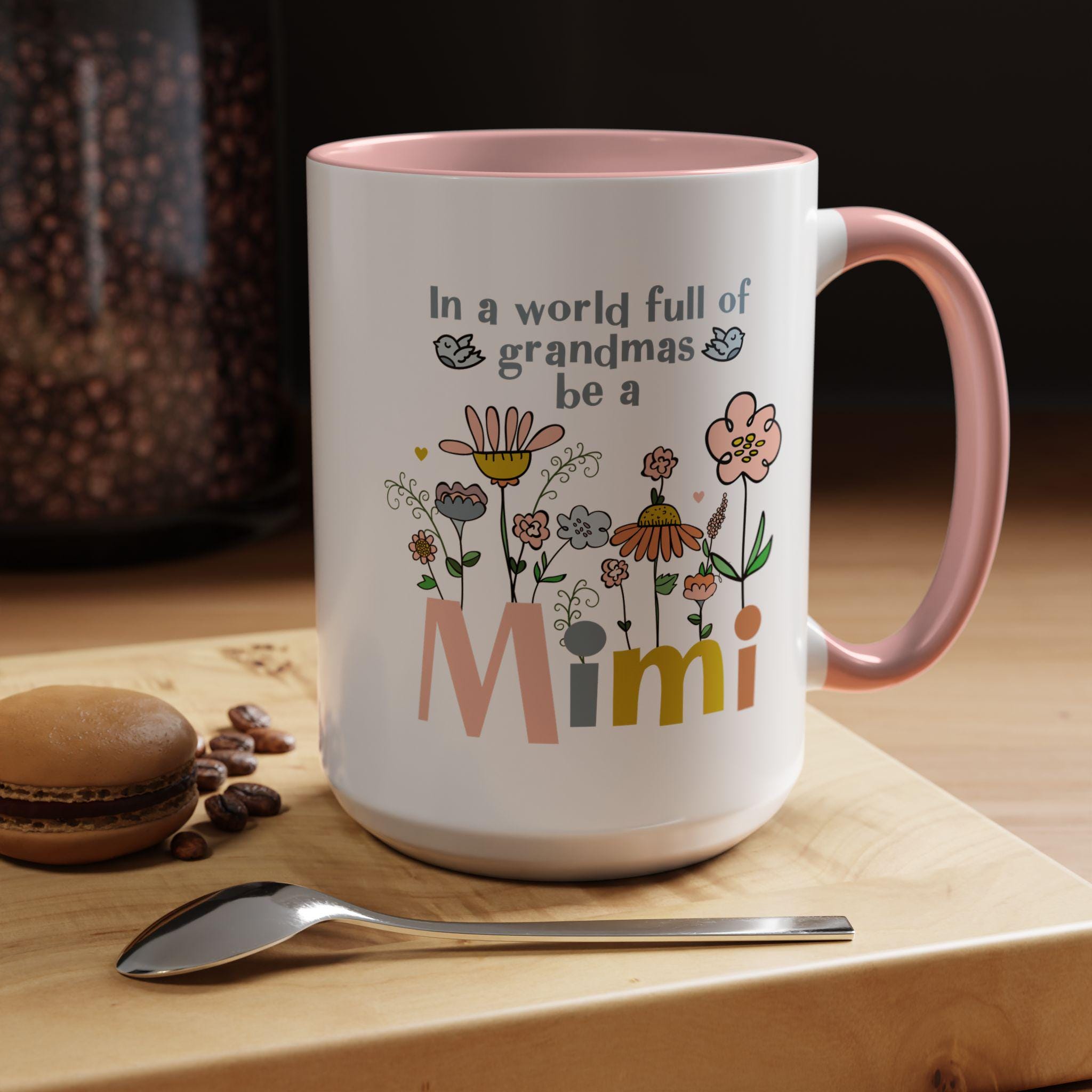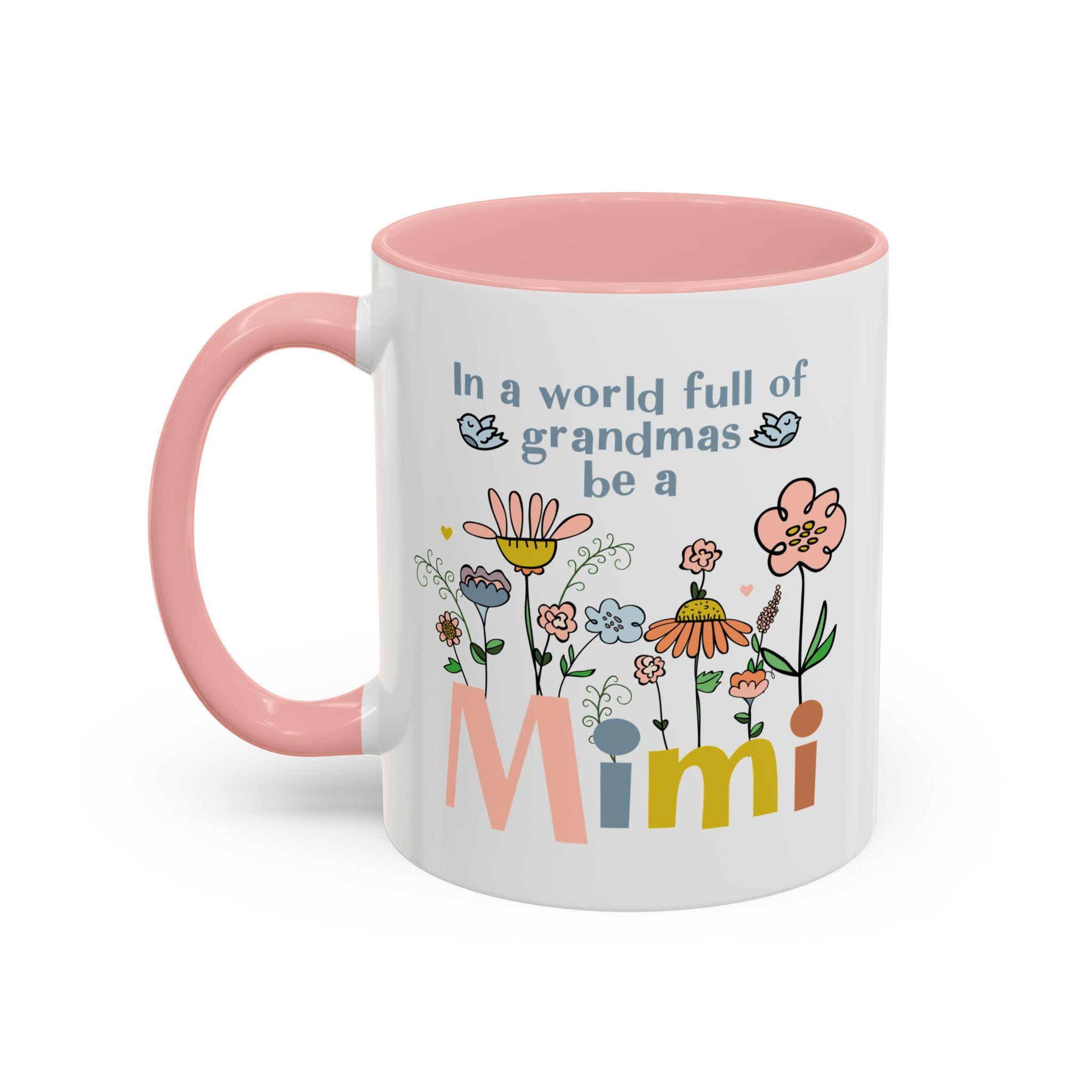Celebrate the joy of being a Mimi with this charming floral coffee mug, designed to brighten every morning. Featuring soft pastel flowers, sweet birds, and the uplifting phrase “In a world full of grandmas, be a Mimi,” this mug makes a heartfelt gift for any proud Mimi who loves something cheerful and unique.