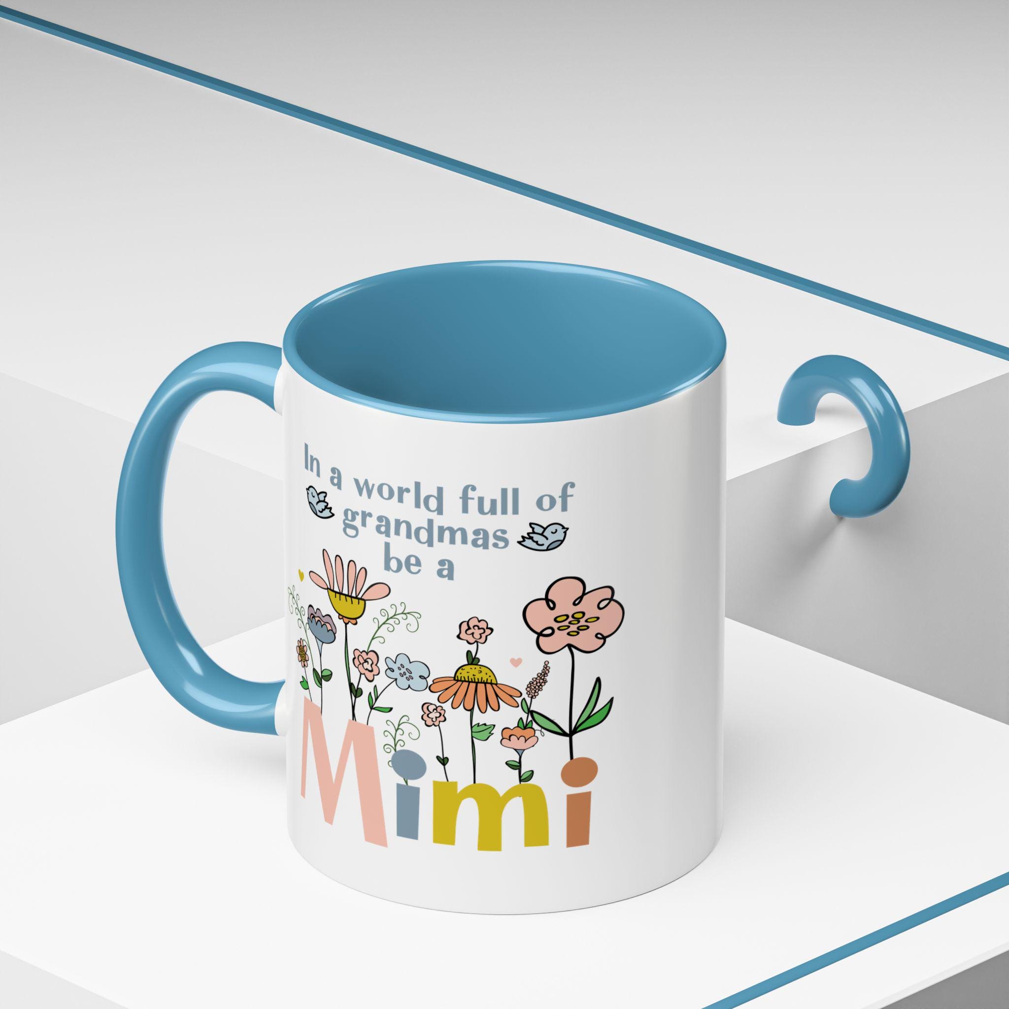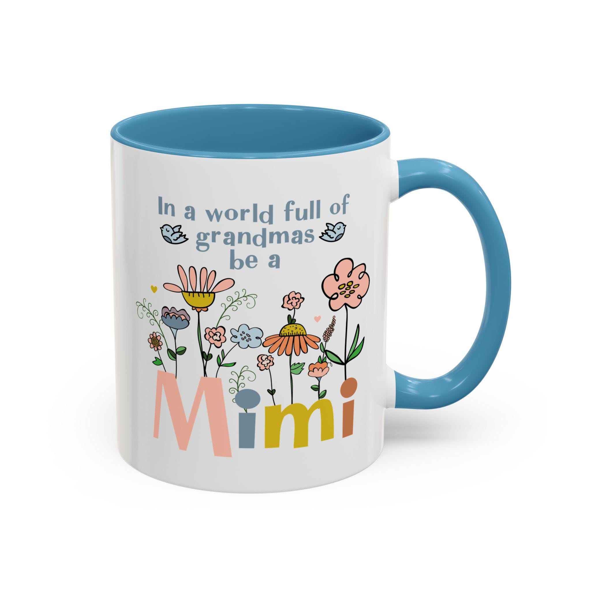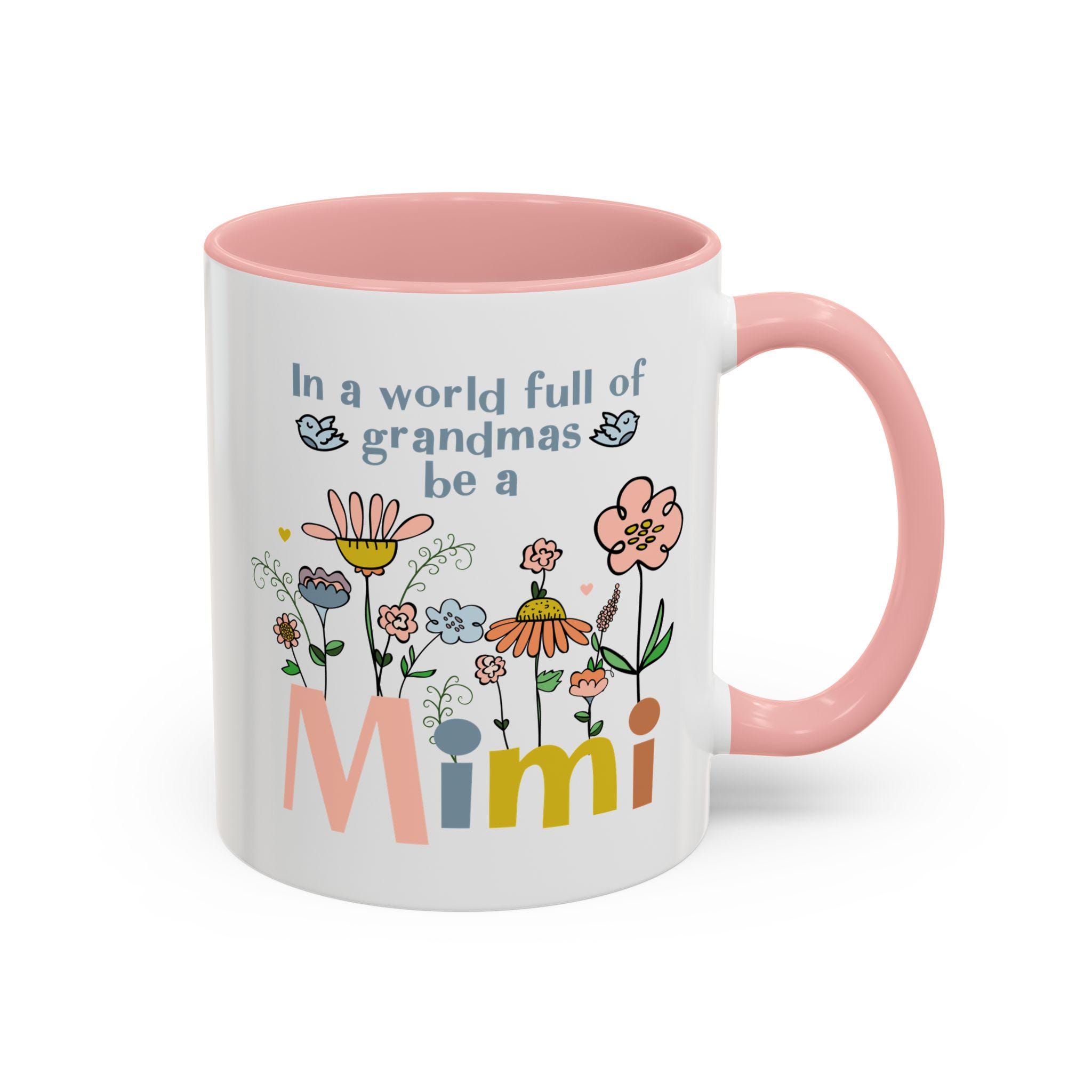 Celebrate the joy of being a Mimi with this charming floral coffee mug, designed to brighten every morning. Featuring soft pastel flowers, sweet birds, and the uplifting phrase “In a world full of grandmas, be a Mimi,” this mug makes a heartfelt gift for any proud Mimi who loves something cheerful and unique.