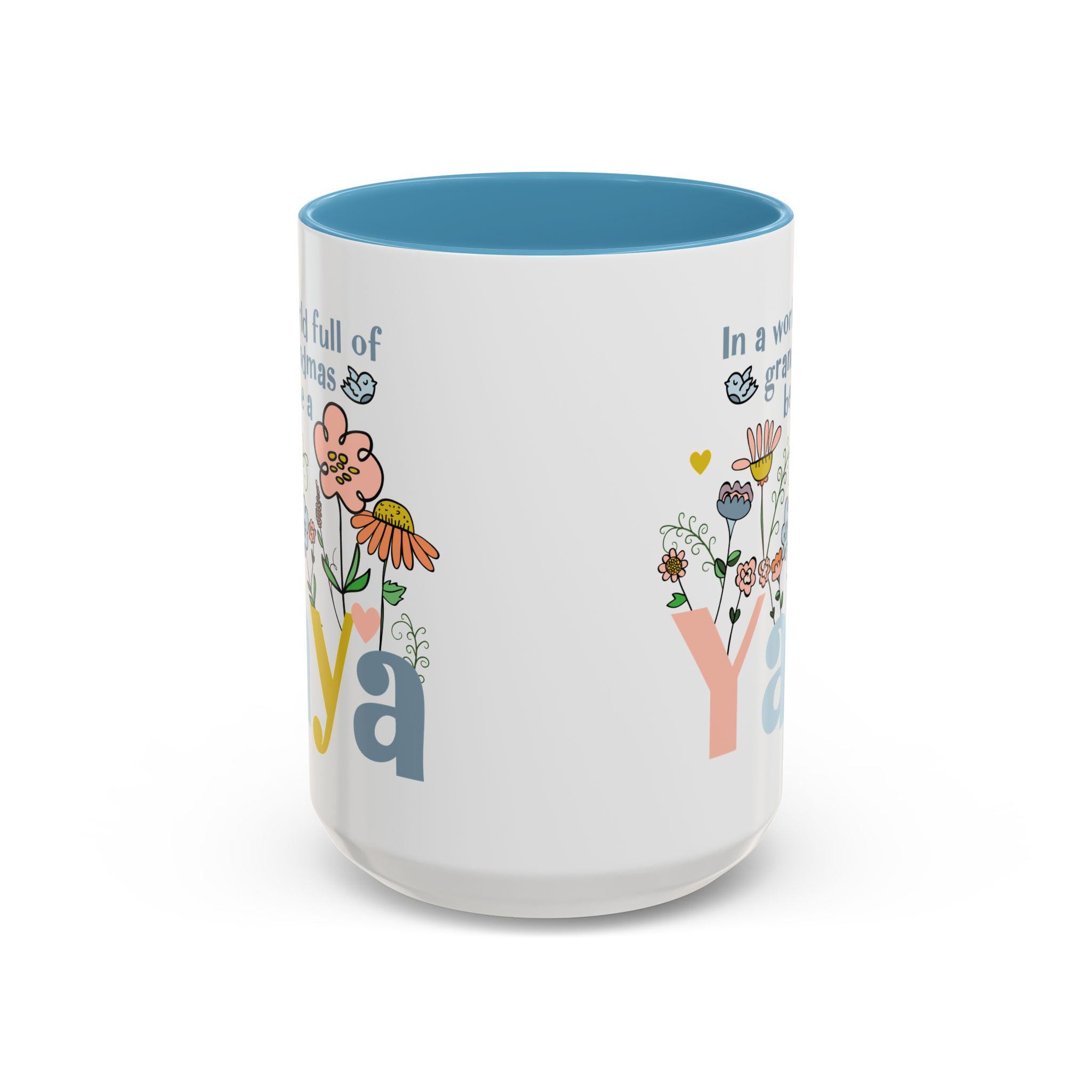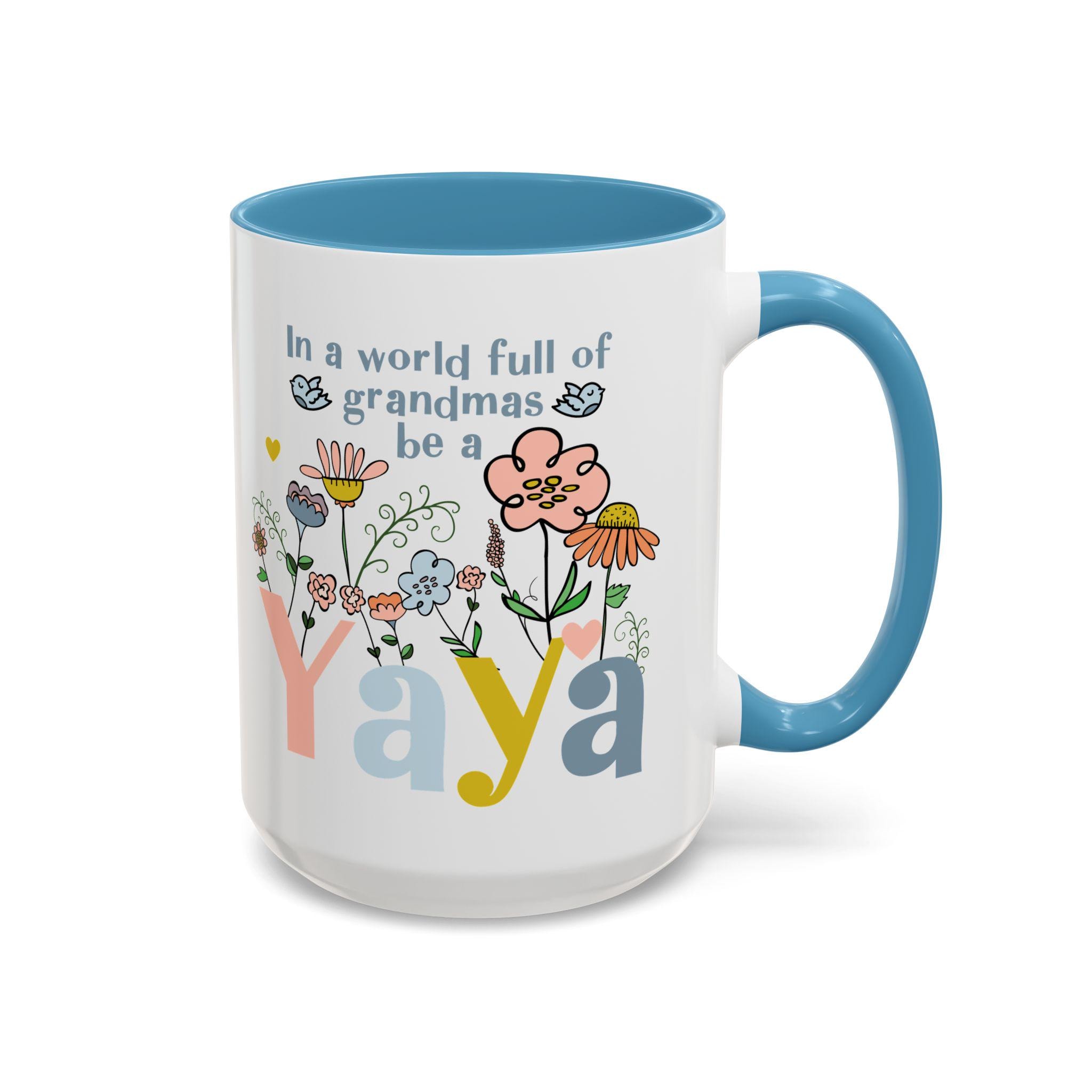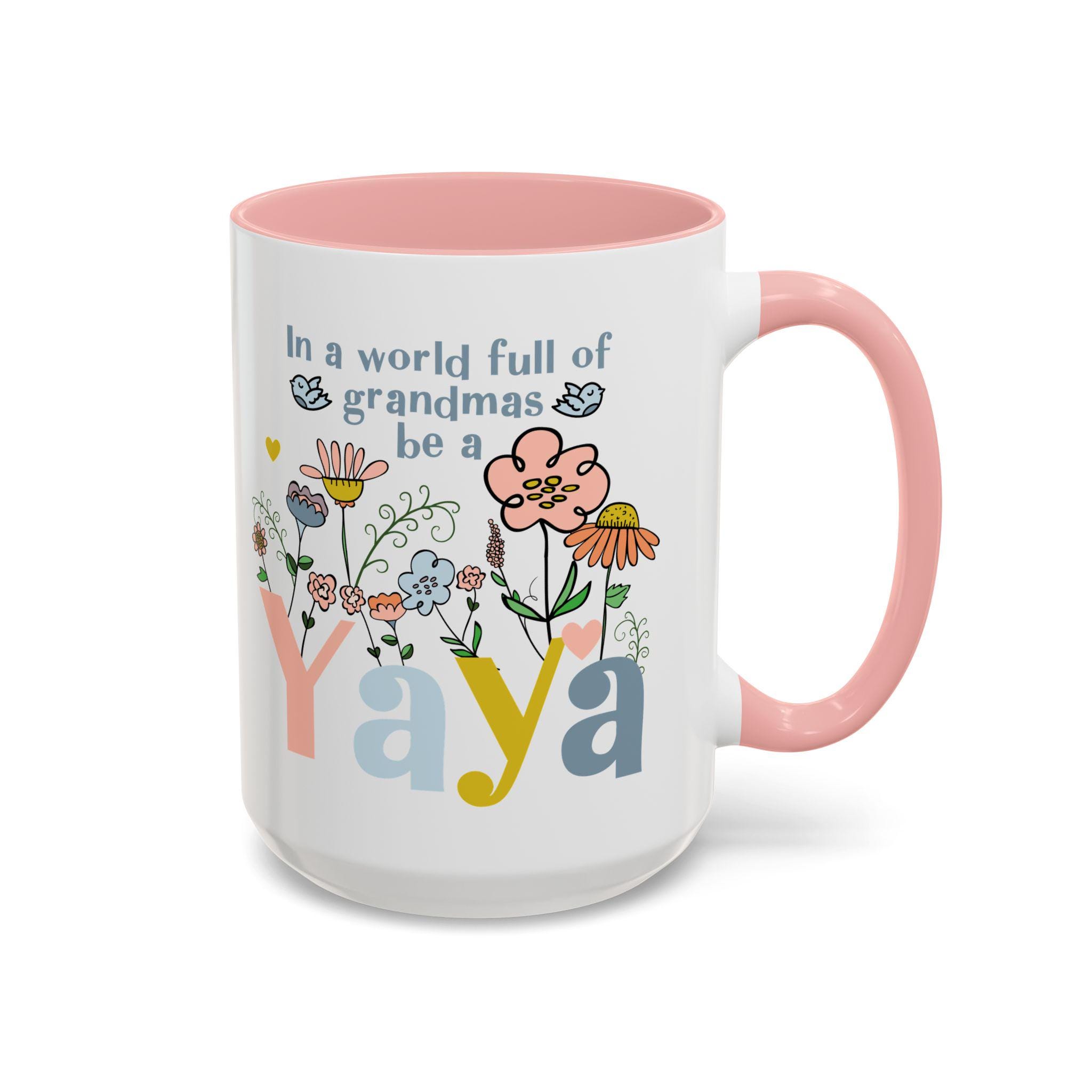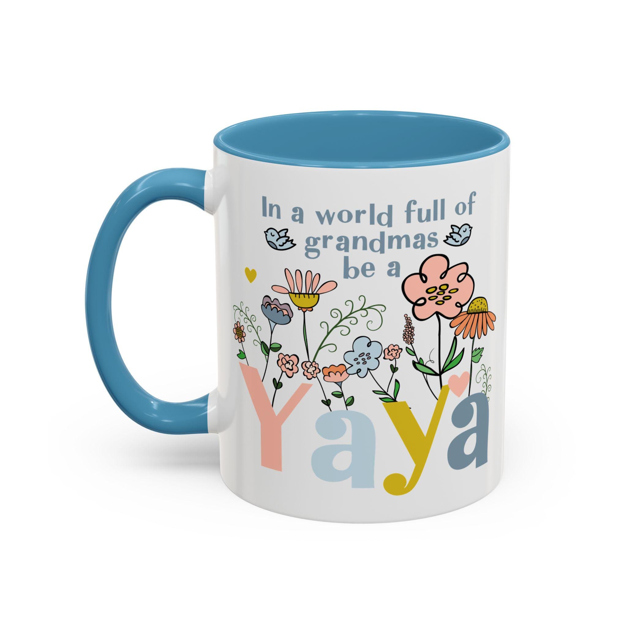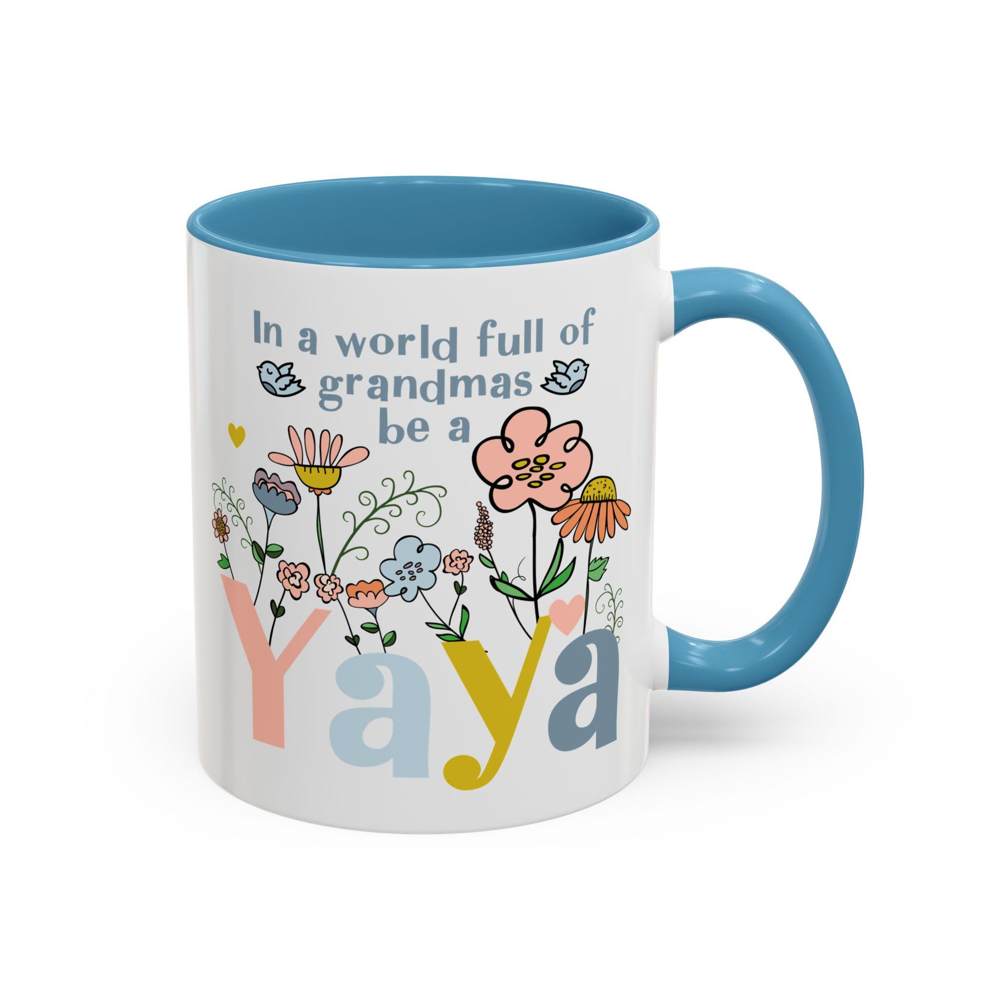 Brighten a beloved Yaya’s day with this cheerful floral coffee mug featuring the sweet and uplifting phrase “In a world full of grandmas, be a Yaya.” With soft pastel flowers, playful birds, and warm colors, this mug adds joy to every cup of coffee or tea.