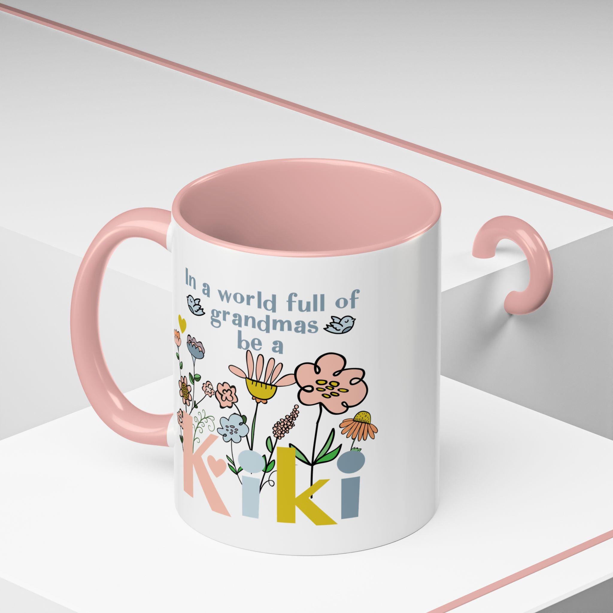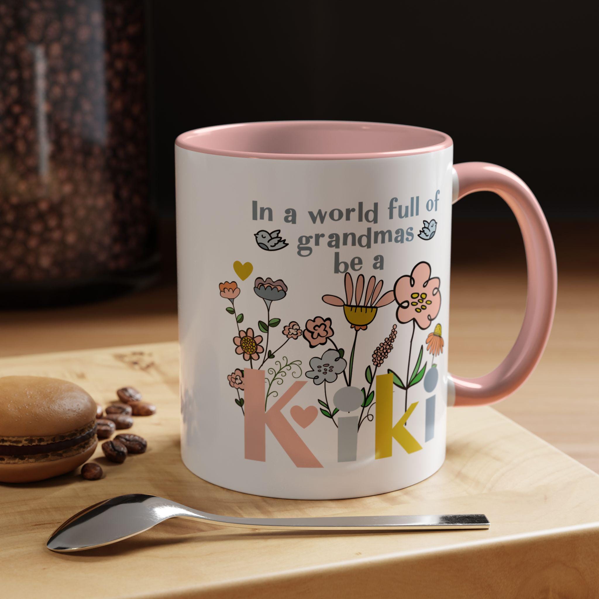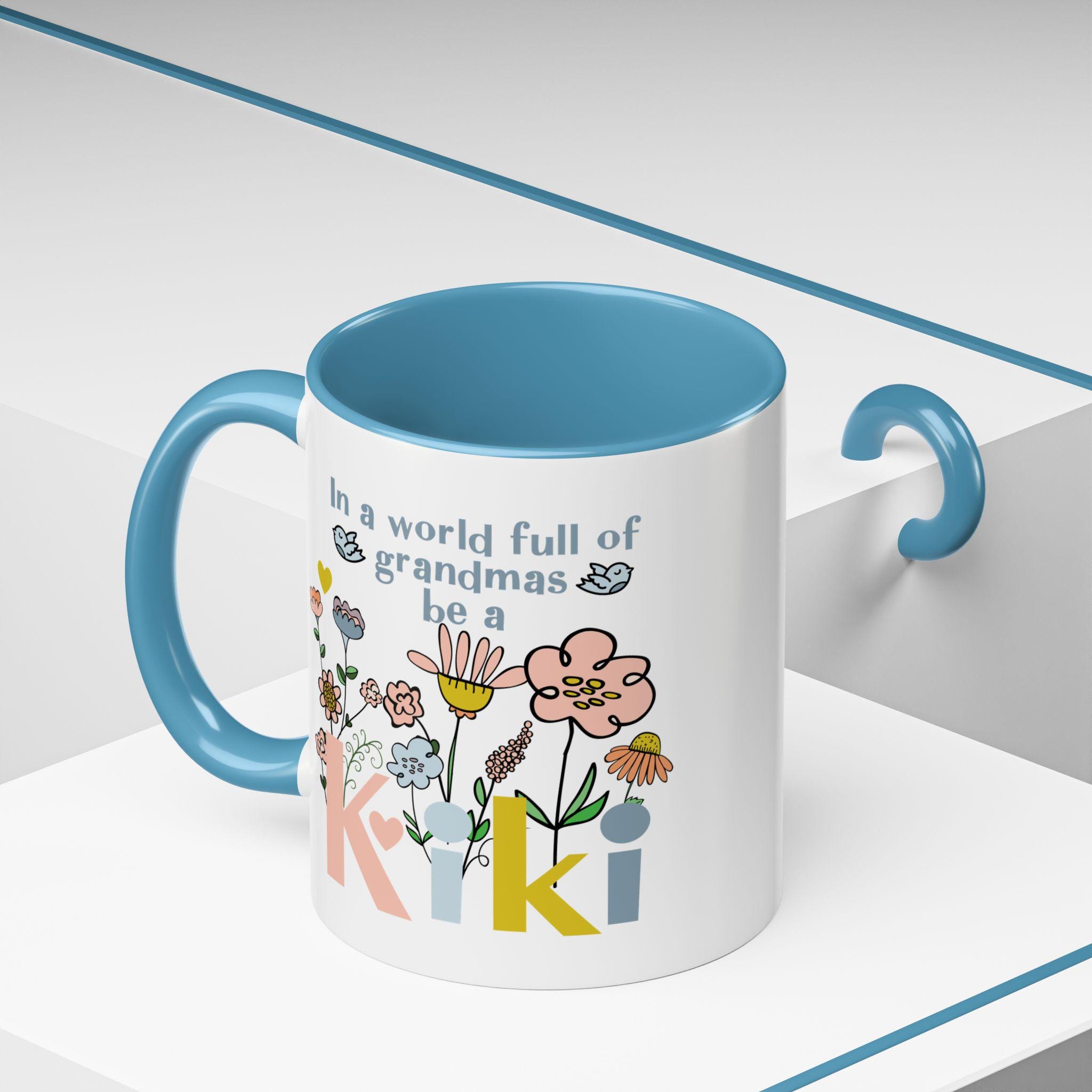 Celebrate a special Kiki with this beautifully designed coffee mug featuring the phrase “In a world full of grandmas, be a Kiki.” The soft pastel florals and charming birds create a joyful, uplifting design that brightens every morning. Crafted from high-quality ceramic and available in 11oz and 15oz, this mug offers a glossy finish, comfortable handle, and permanent print designed for daily use. It is both dishwasher safe and microwave safe, and the artwork is printed on both sides for left- or right-handed sipping.