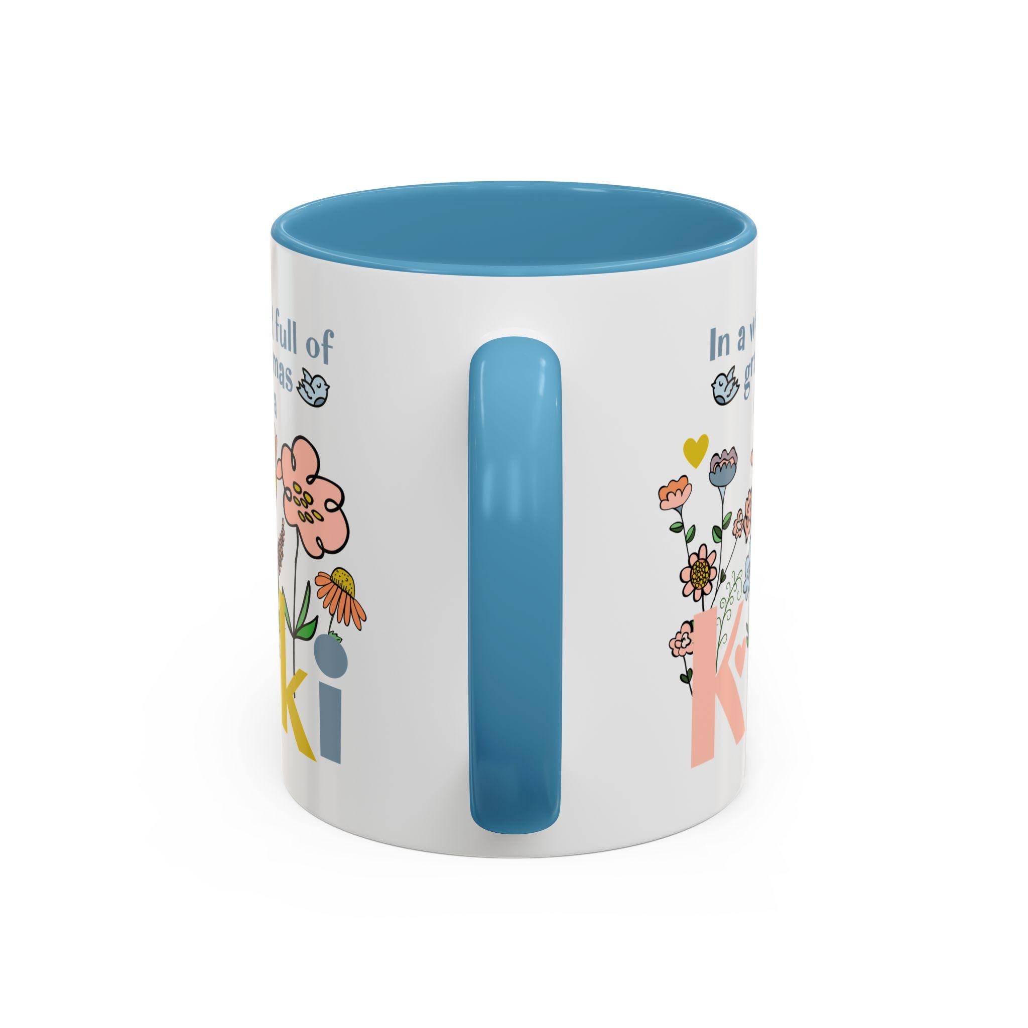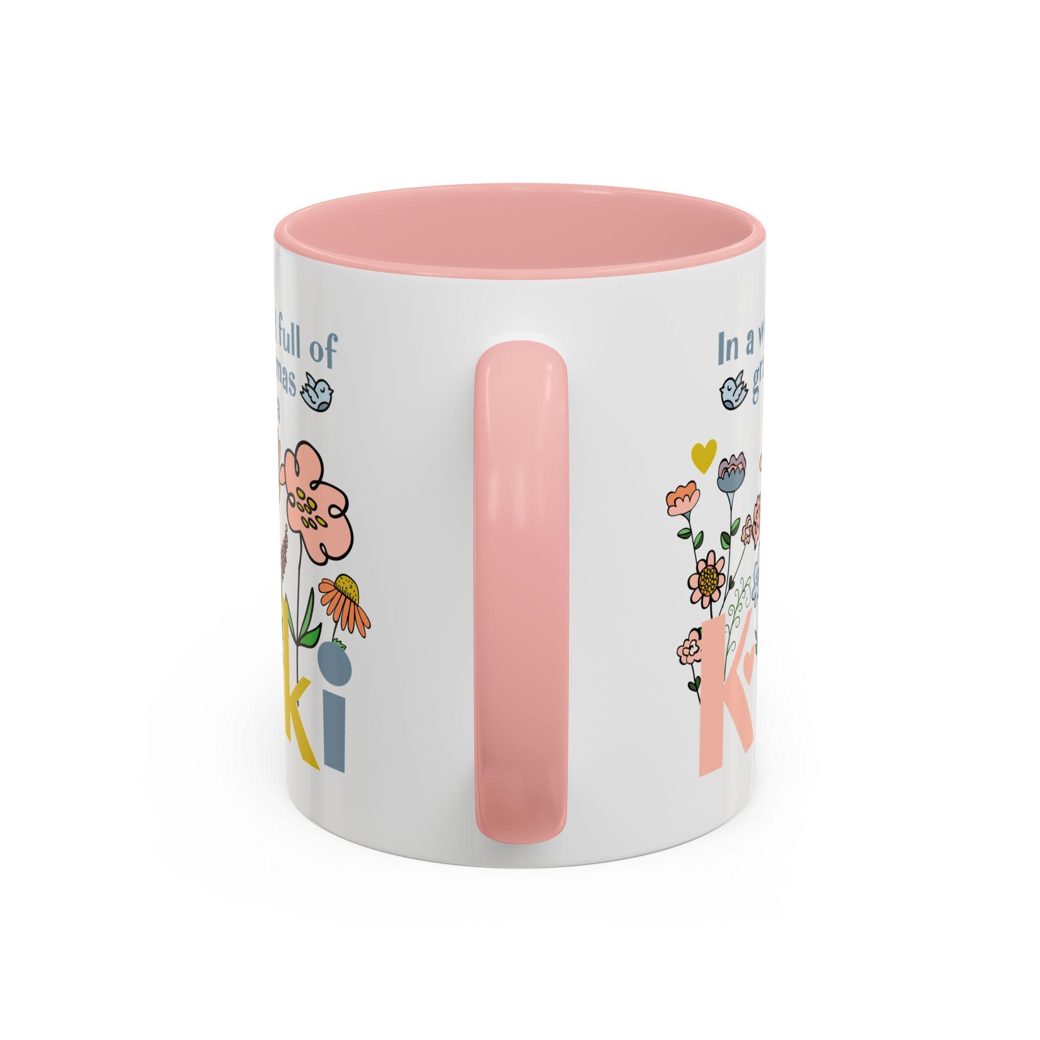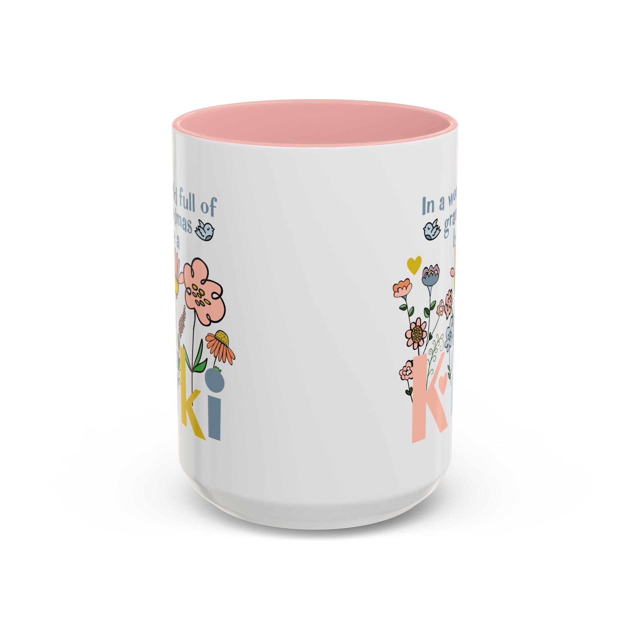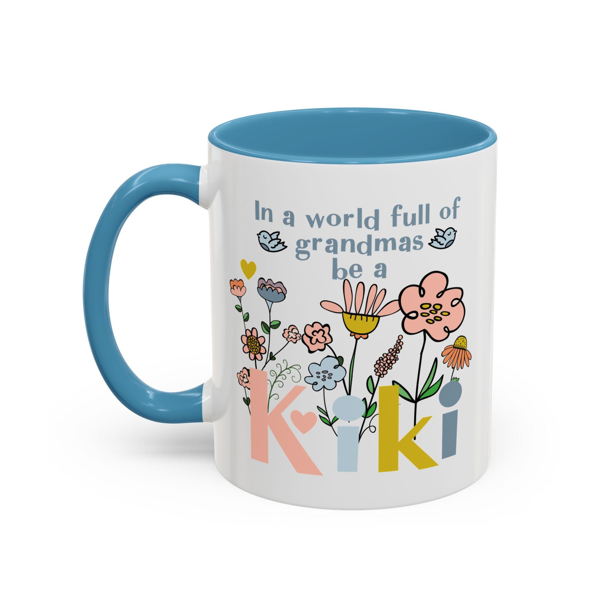 Celebrate a special Kiki with this beautifully designed coffee mug featuring the phrase “In a world full of grandmas, be a Kiki.” The soft pastel florals and charming birds create a joyful, uplifting design that brightens every morning. Crafted from high-quality ceramic and available in 11oz and 15oz, this mug offers a glossy finish, comfortable handle, and permanent print designed for daily use. It is both dishwasher safe and microwave safe, and the artwork is printed on both sides for left- or right-handed sipping.