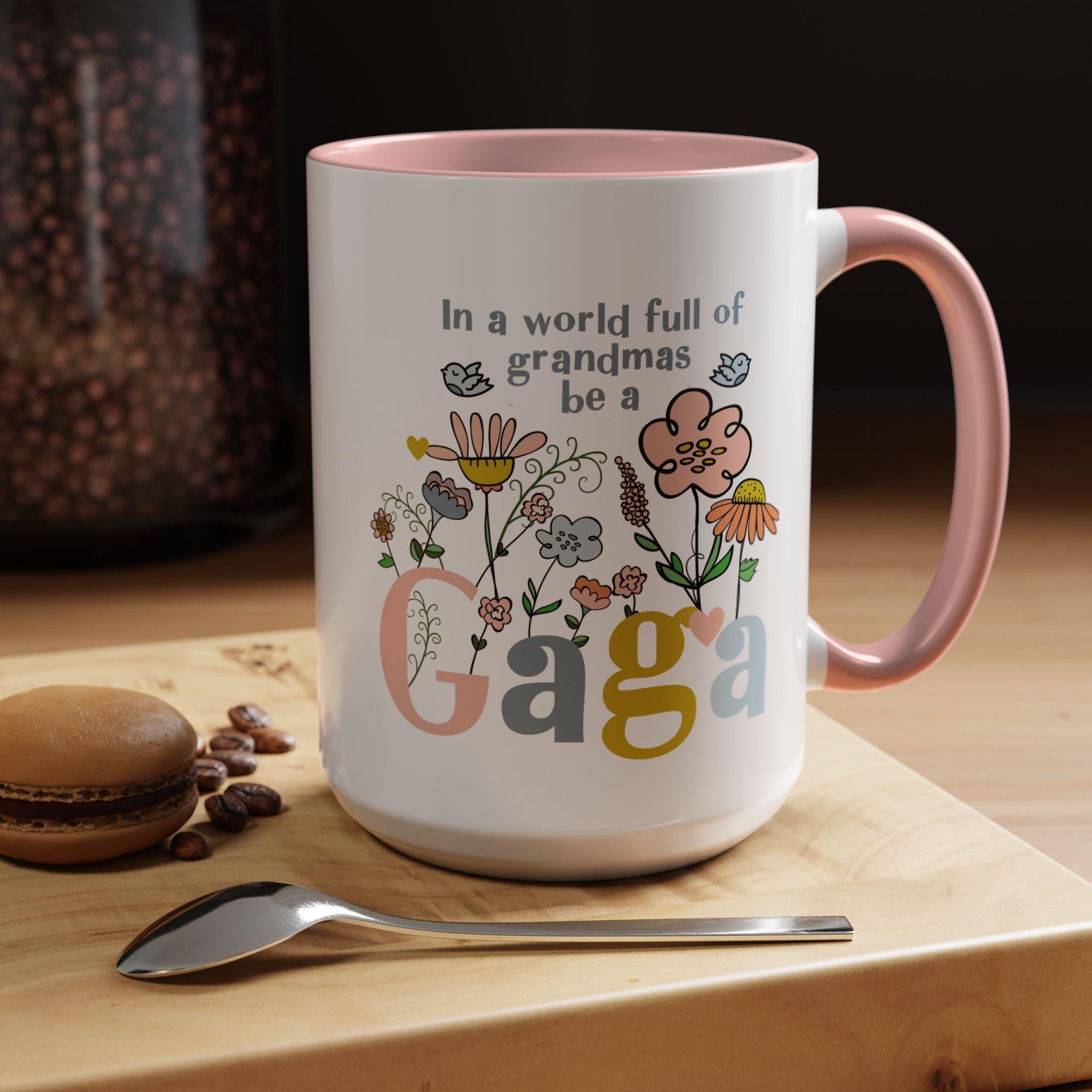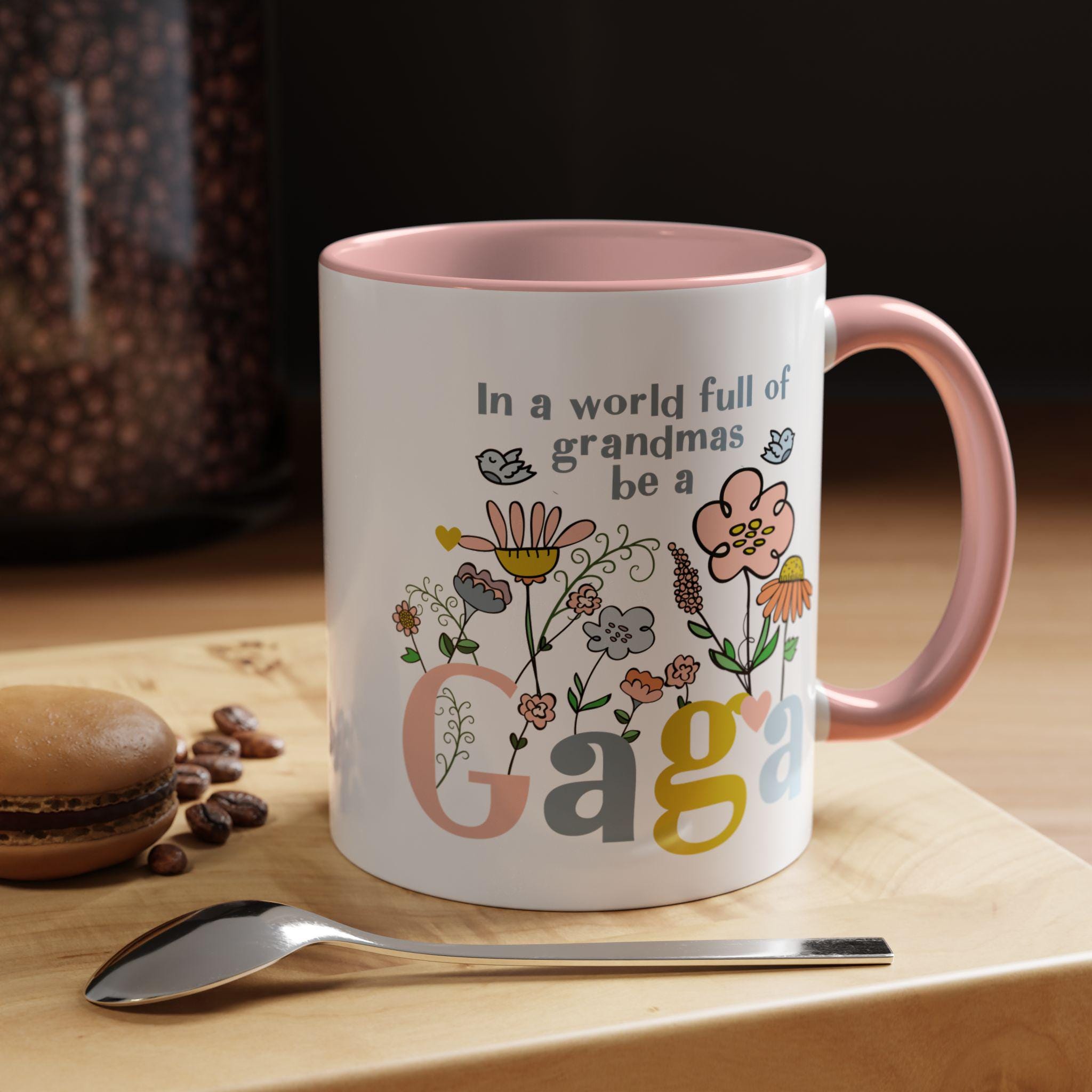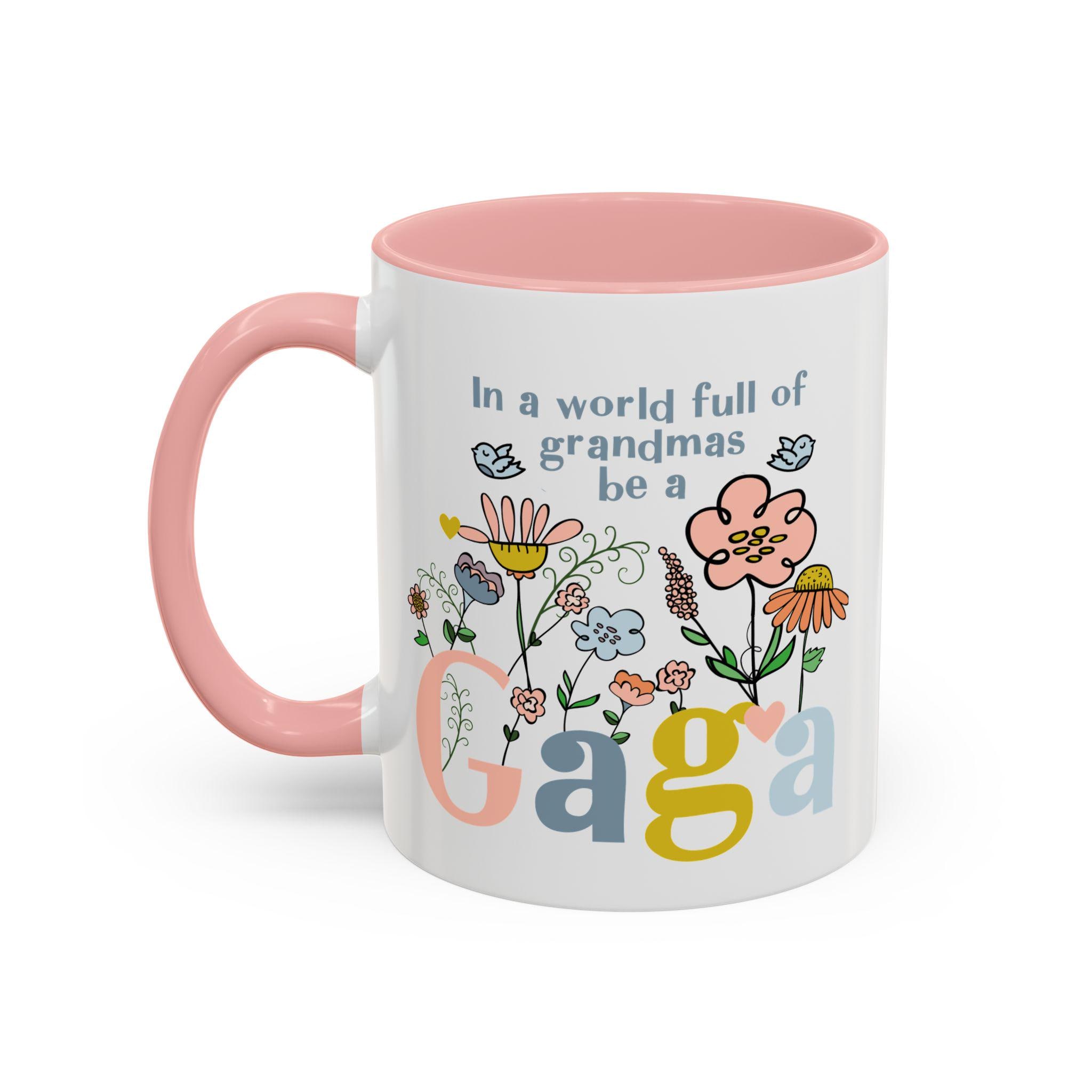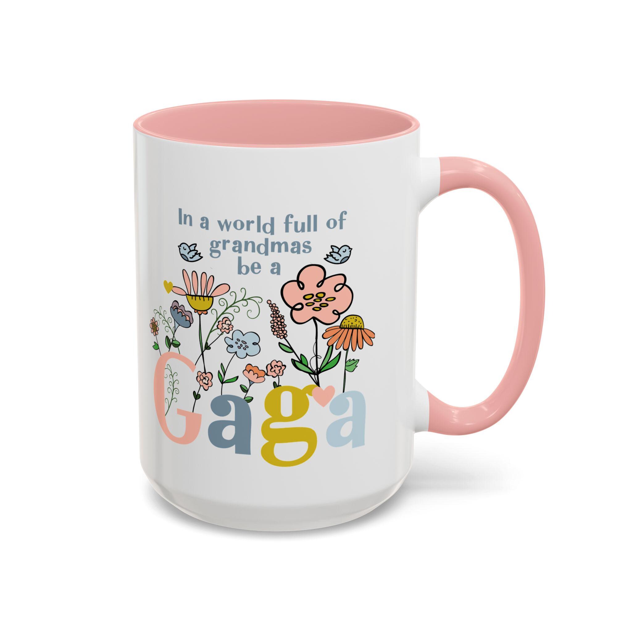 Celebrate the one-of-a-kind grandmother in your life with this charming “In a world full of grandmas, be a Gaga” coffee mug. Designed with playful florals, soft pastel tones, and a sweet message, this mug makes a thoughtful daily reminder of her unique spirit. The pink handle and interior add a warm, cheerful touch—perfect for morning coffee, evening tea, or displaying proudly on her shelf.