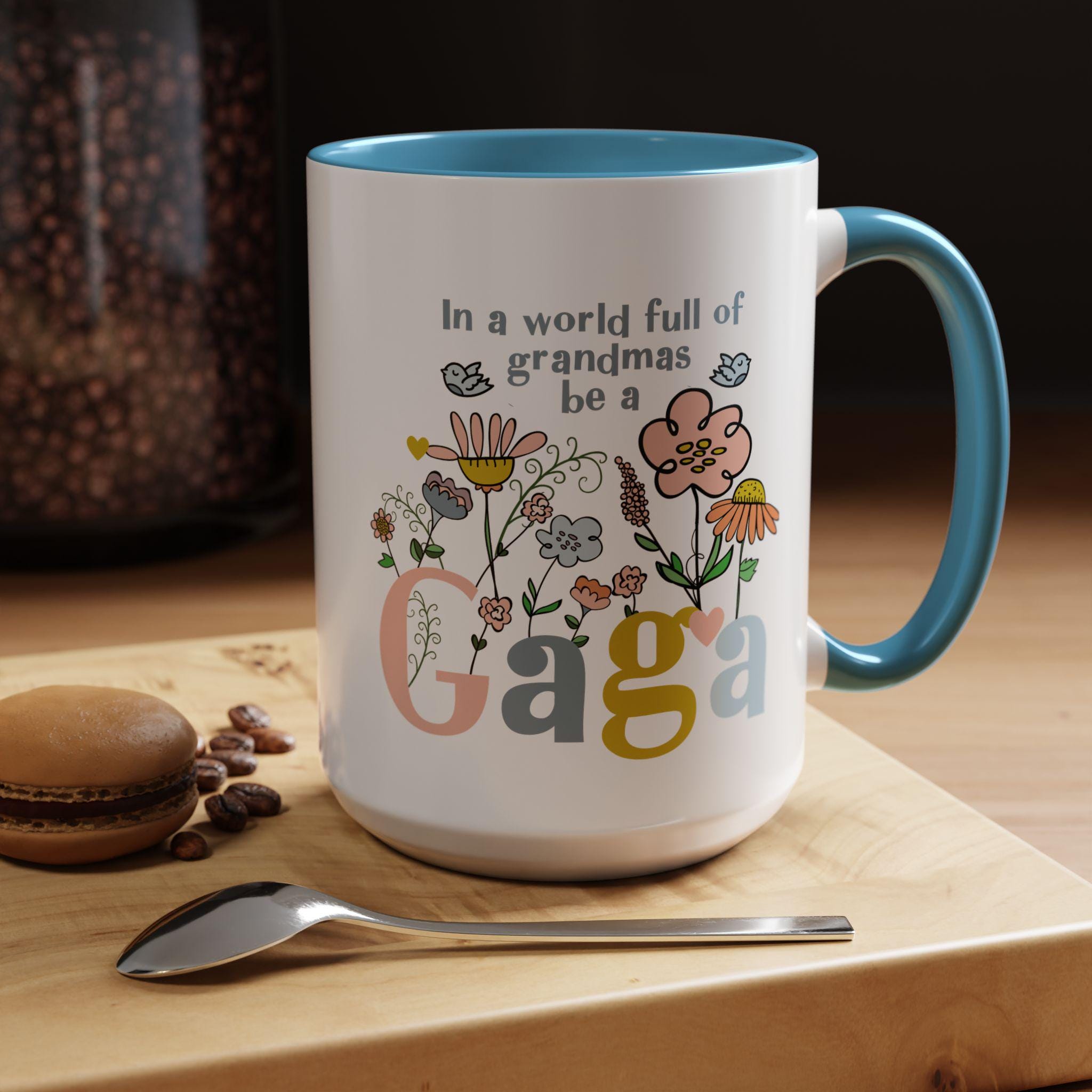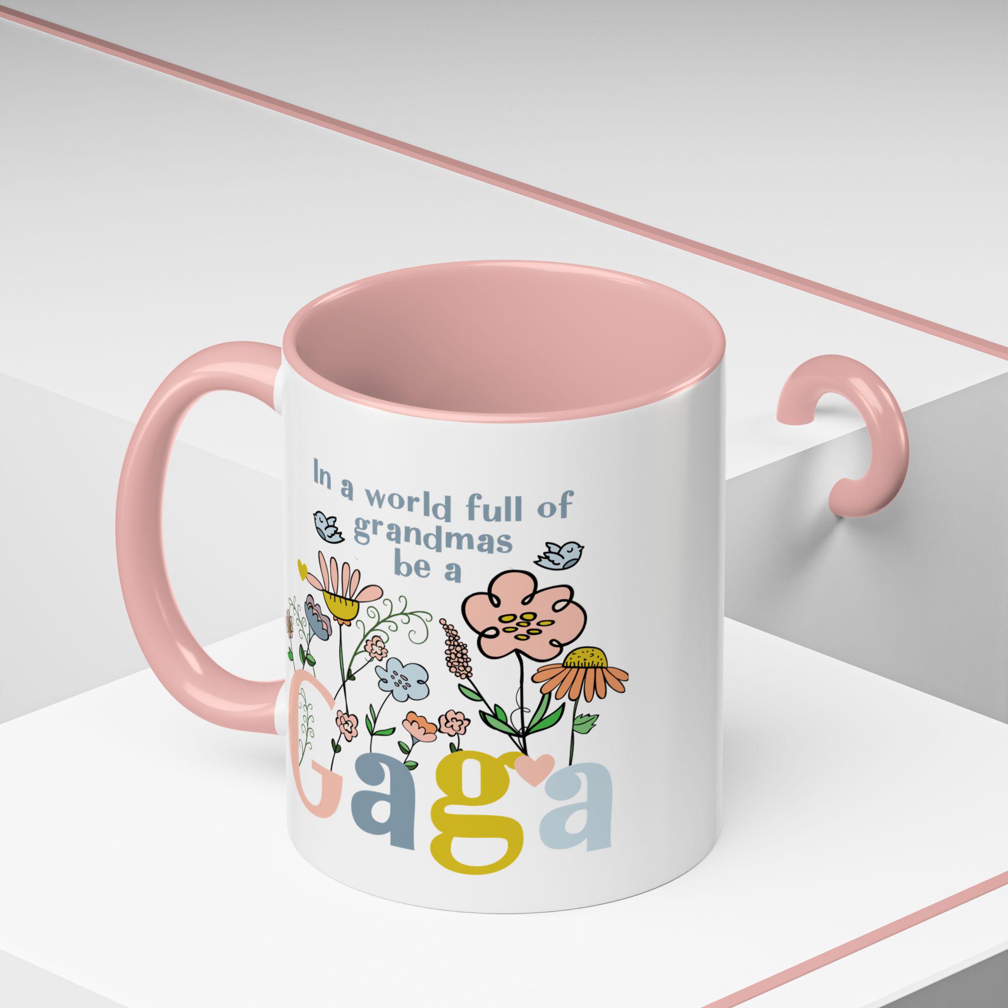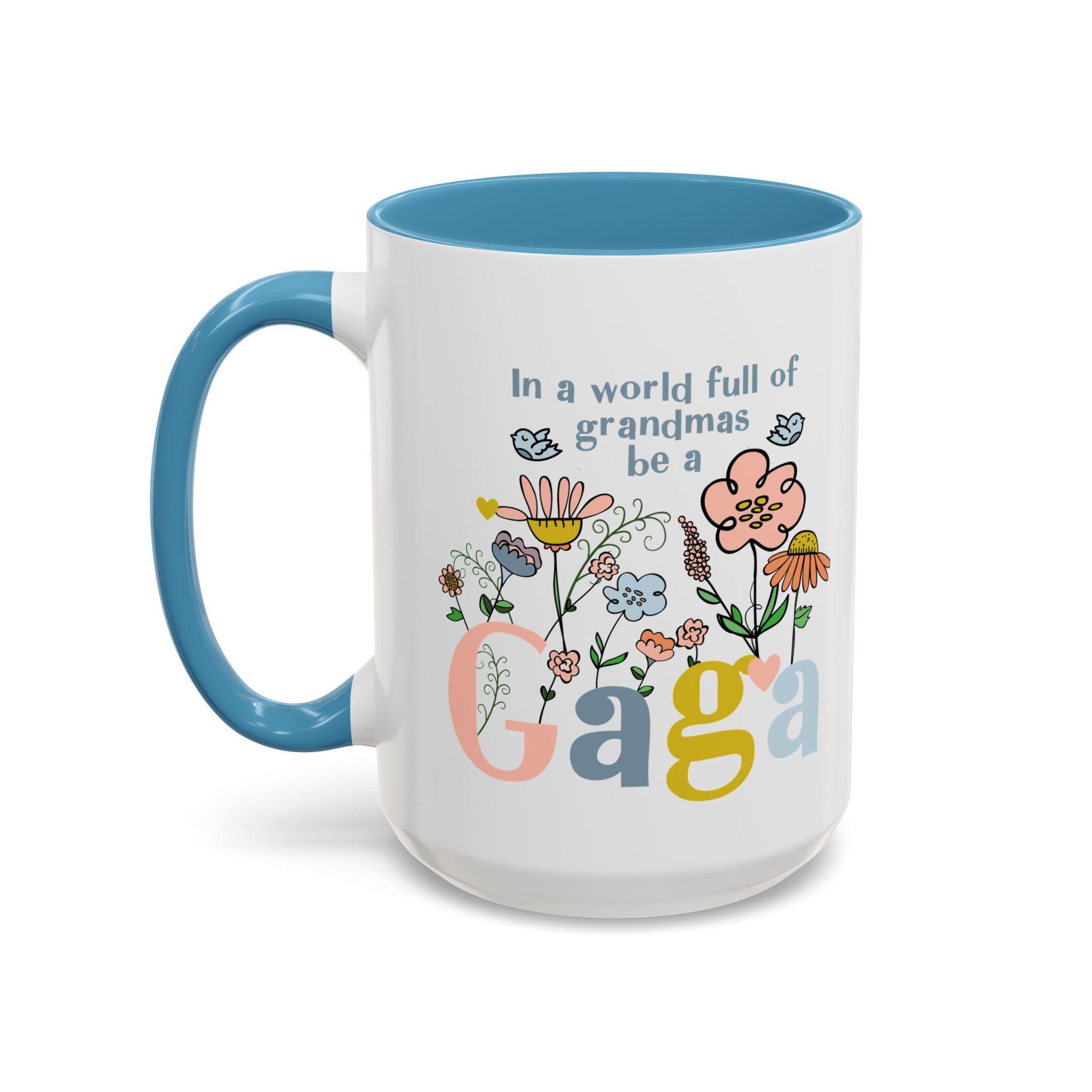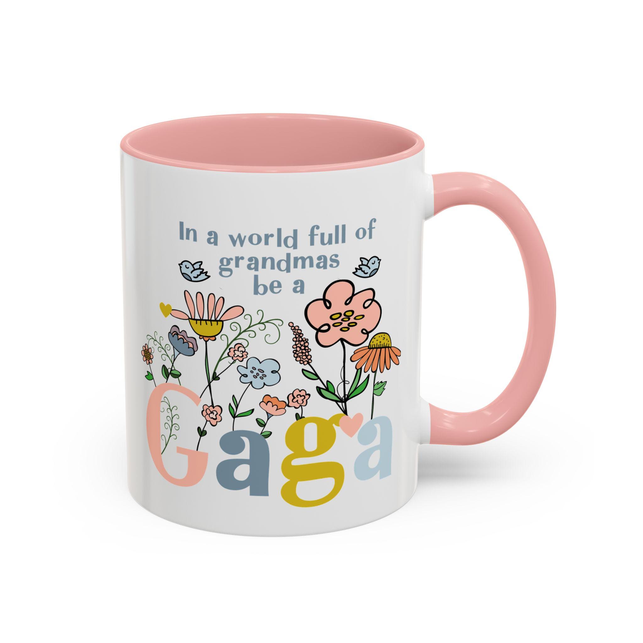 Celebrate the one-of-a-kind grandmother in your life with this charming “In a world full of grandmas, be a Gaga” coffee mug. Designed with playful florals, soft pastel tones, and a sweet message, this mug makes a thoughtful daily reminder of her unique spirit. The pink handle and interior add a warm, cheerful touch—perfect for morning coffee, evening tea, or displaying proudly on her shelf.