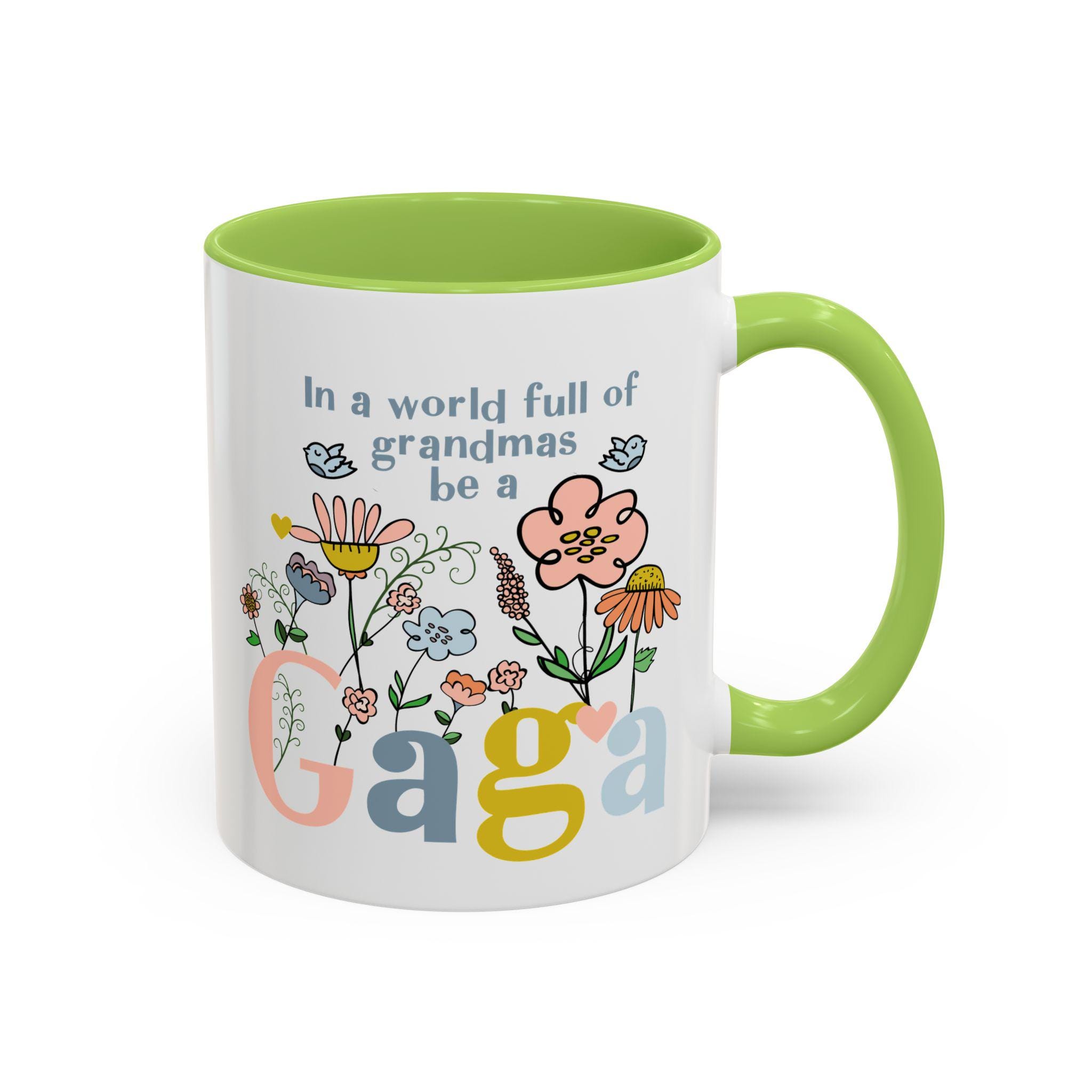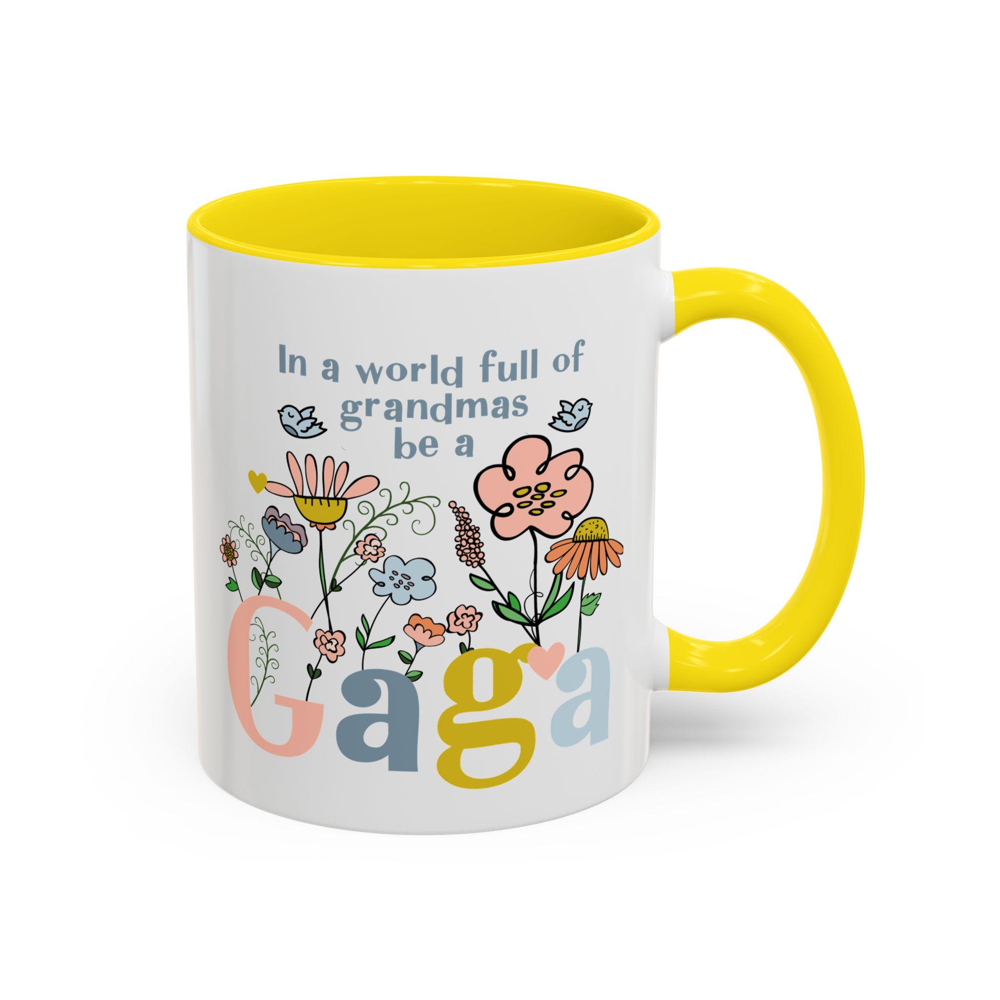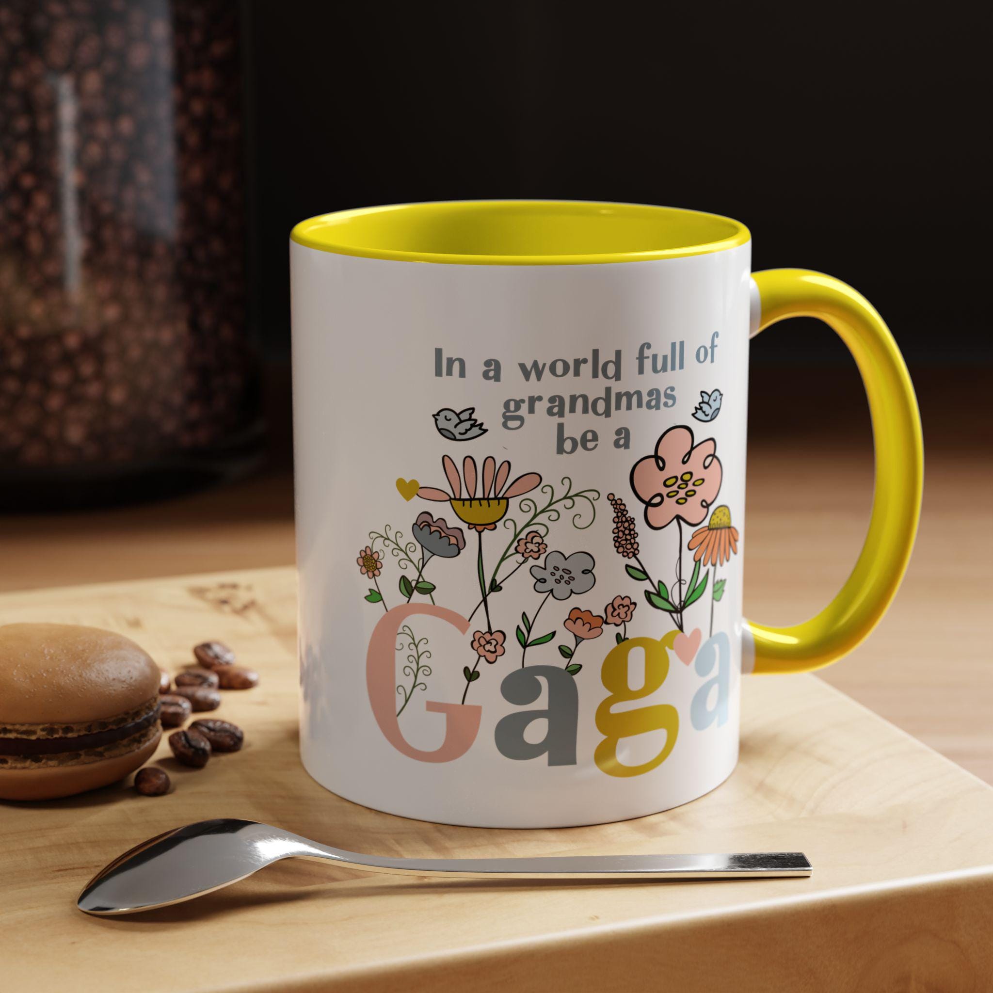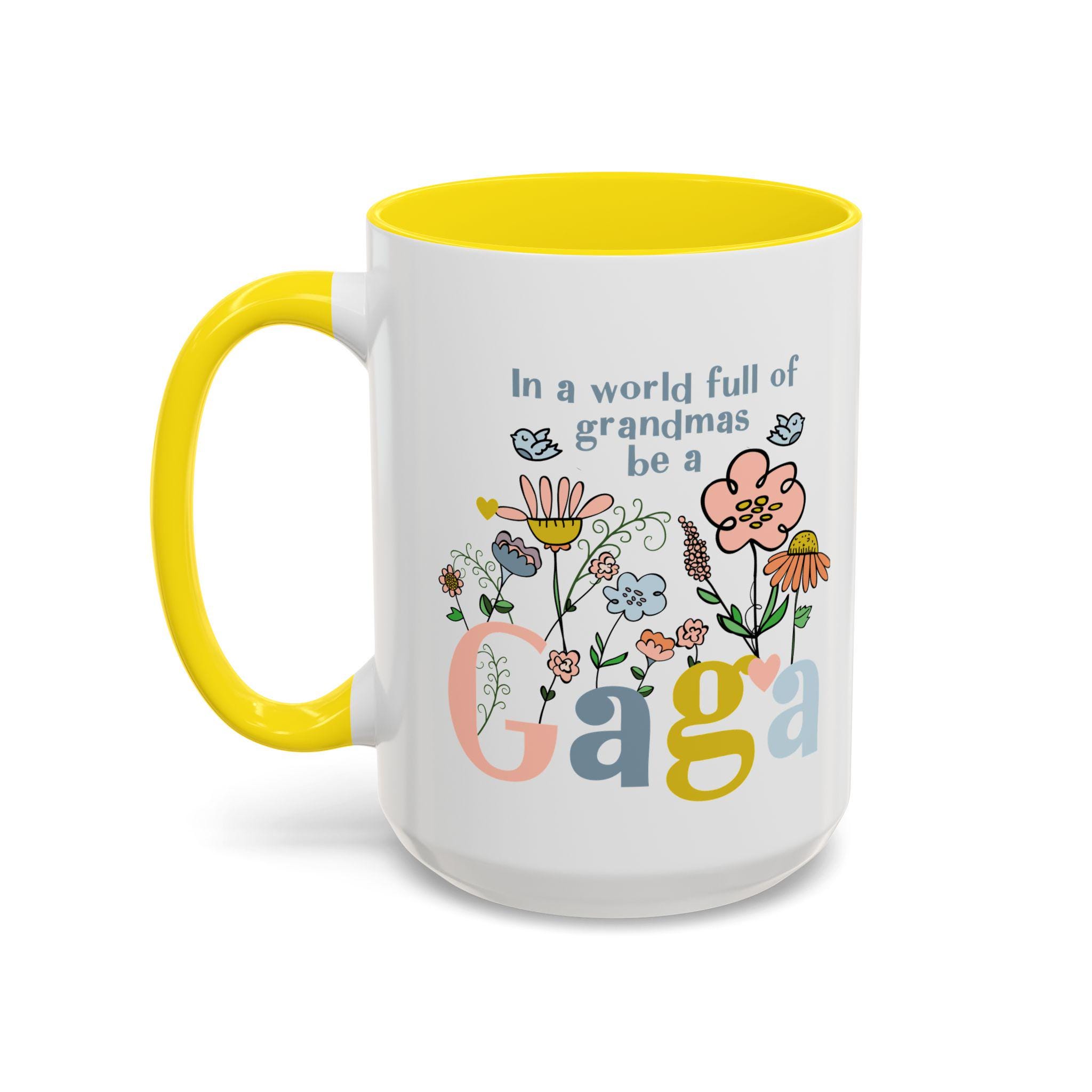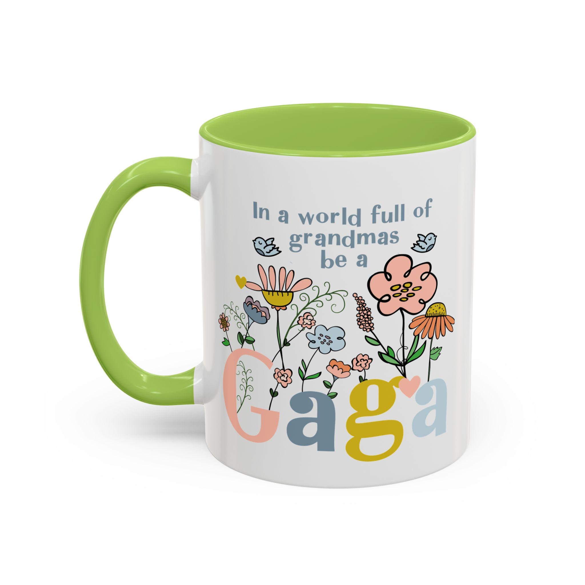 Celebrate the one-of-a-kind grandmother in your life with this charming “In a world full of grandmas, be a Gaga” coffee mug. Designed with playful florals, soft pastel tones, and a sweet message, this mug makes a thoughtful daily reminder of her unique spirit. The pink handle and interior add a warm, cheerful touch—perfect for morning coffee, evening tea, or displaying proudly on her shelf.