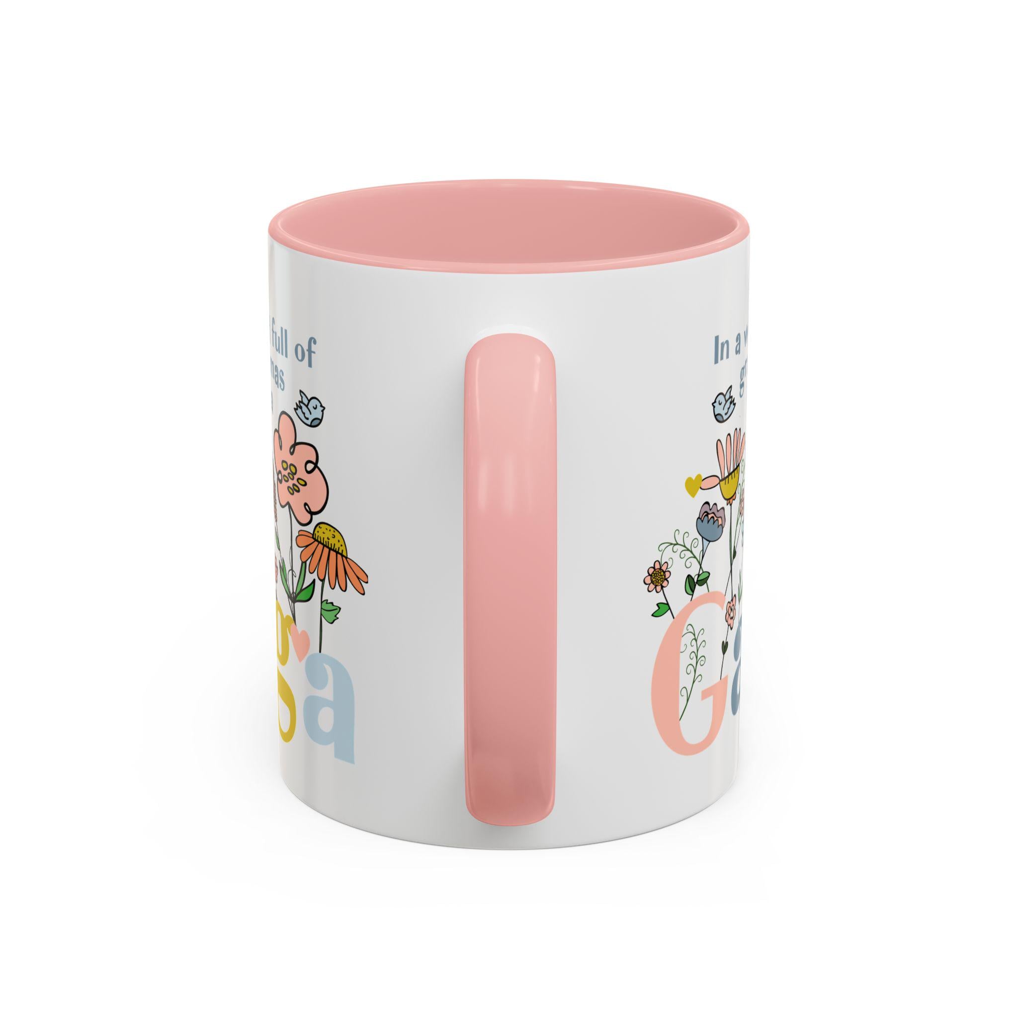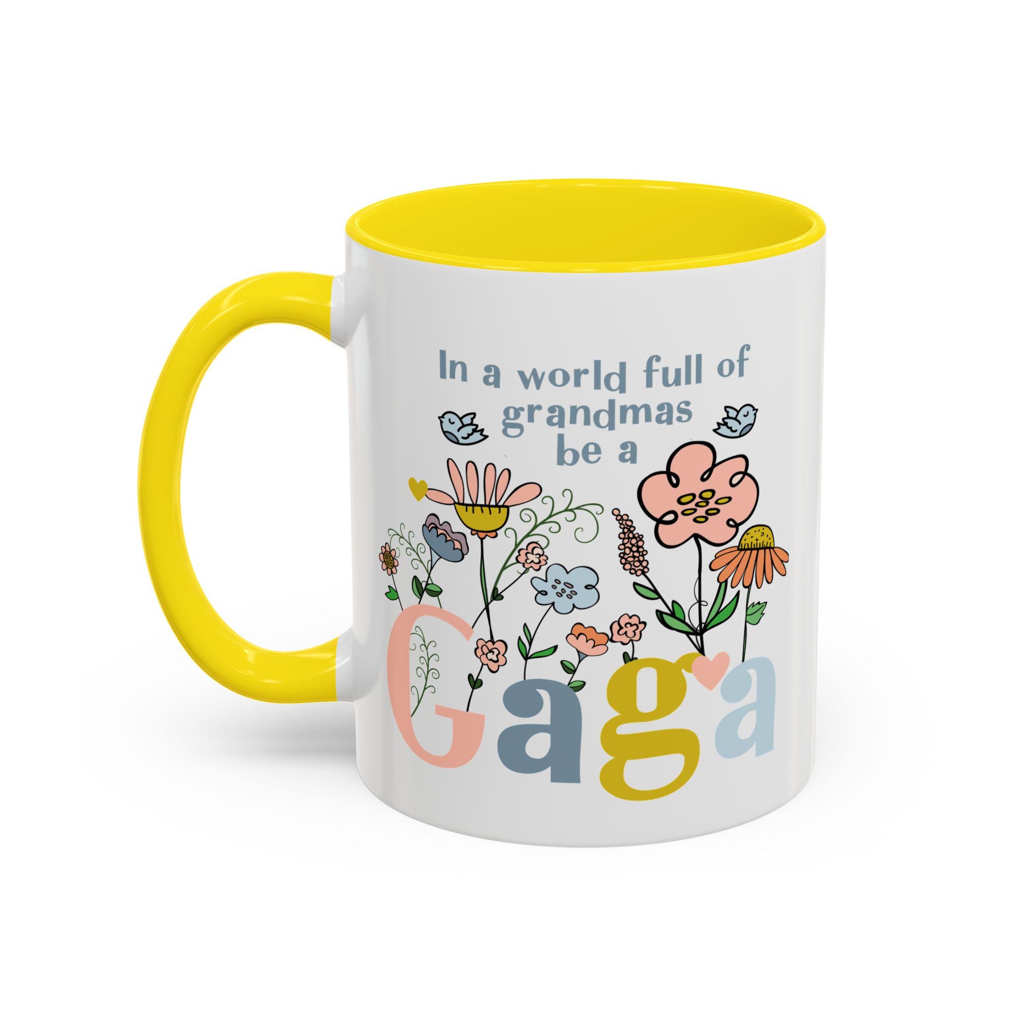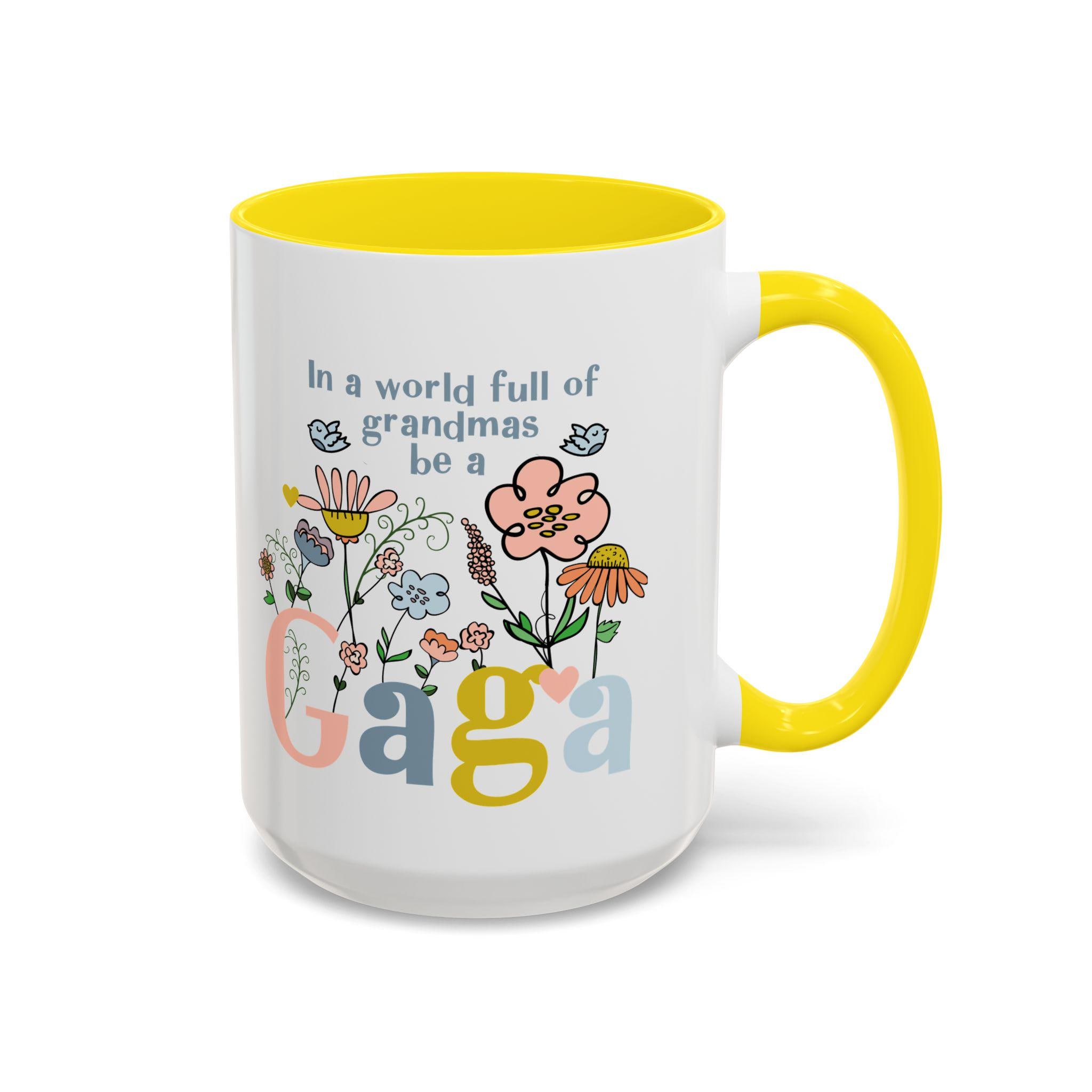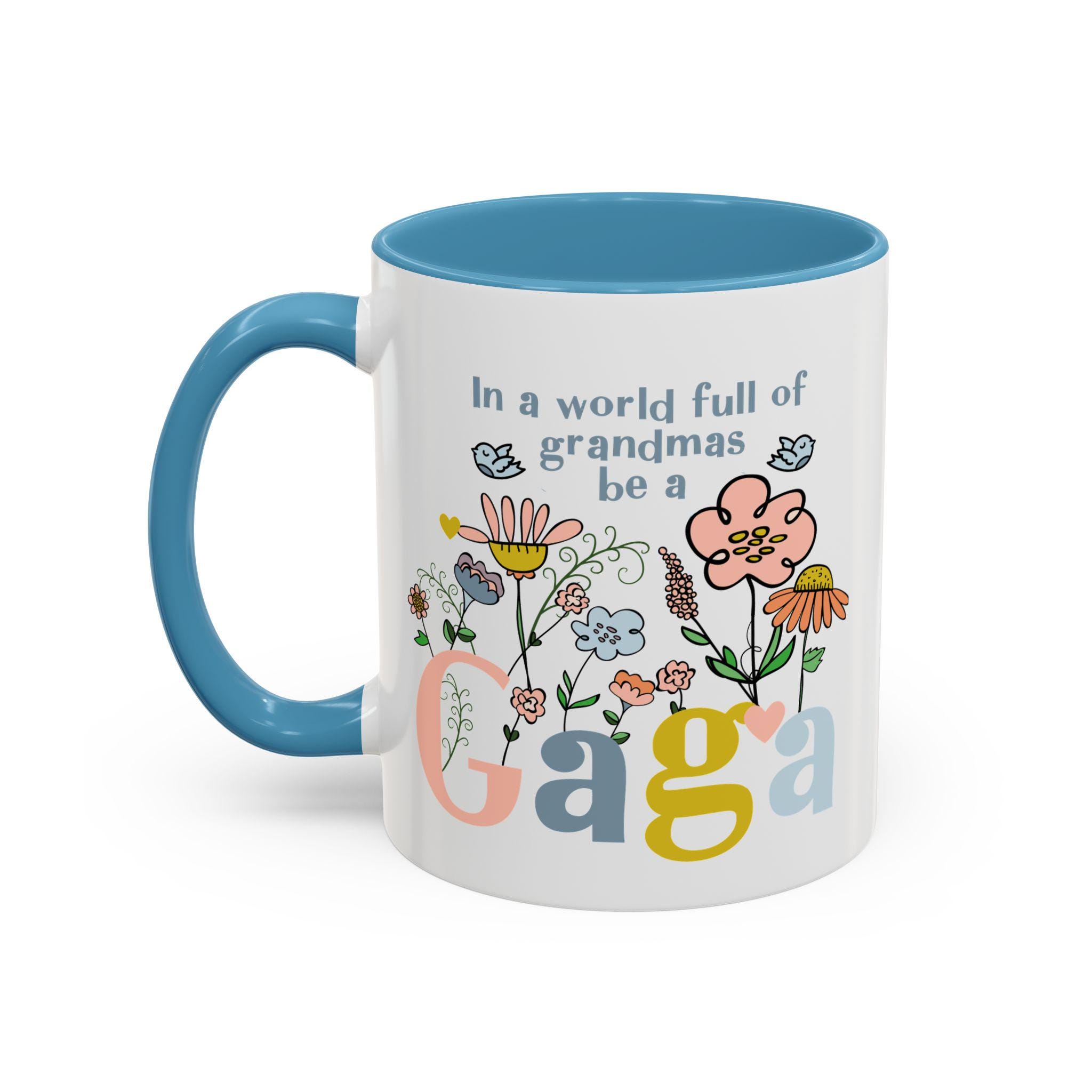 Celebrate the one-of-a-kind grandmother in your life with this charming “In a world full of grandmas, be a Gaga” coffee mug. Designed with playful florals, soft pastel tones, and a sweet message, this mug makes a thoughtful daily reminder of her unique spirit. The pink handle and interior add a warm, cheerful touch—perfect for morning coffee, evening tea, or displaying proudly on her shelf.